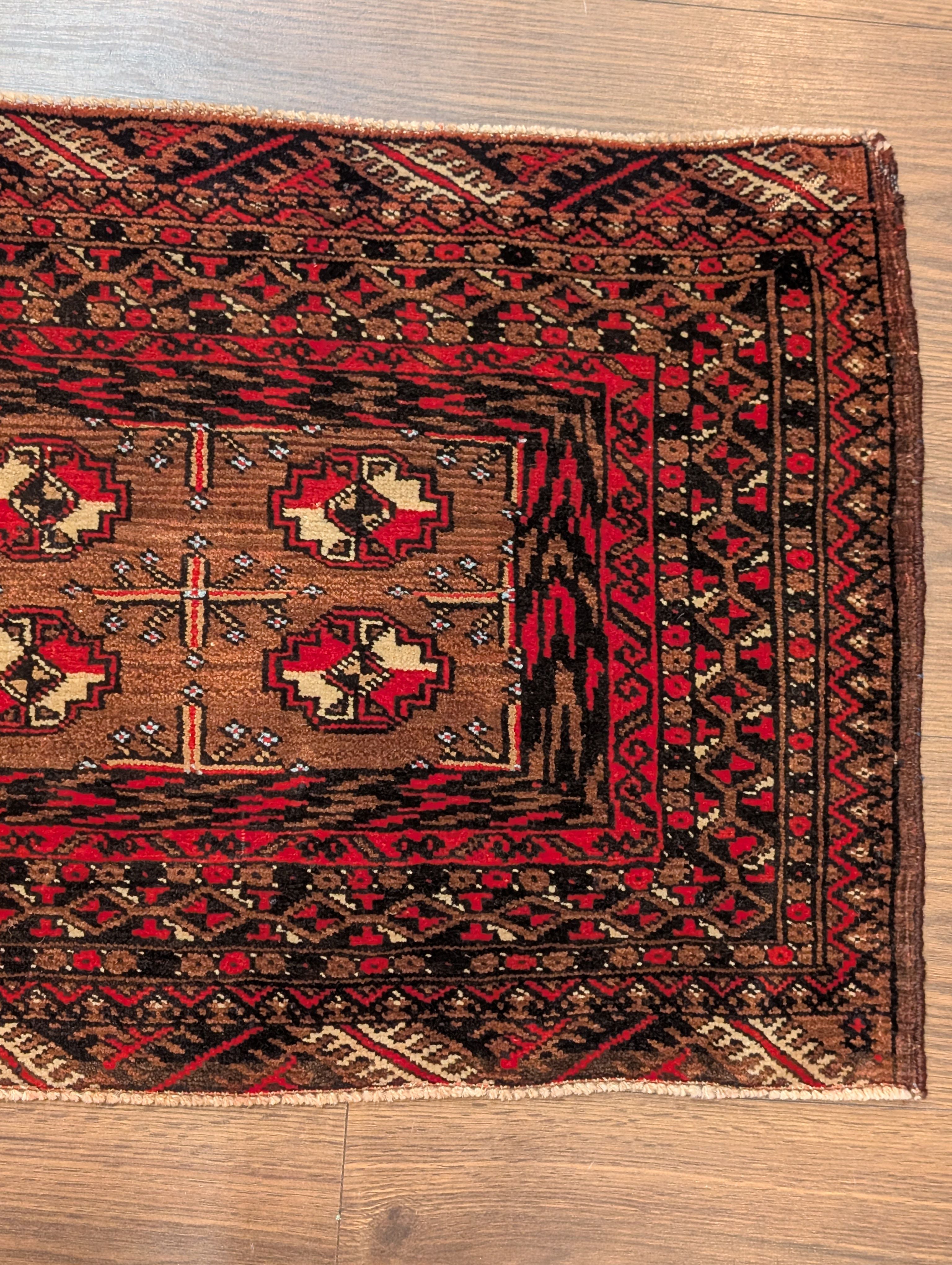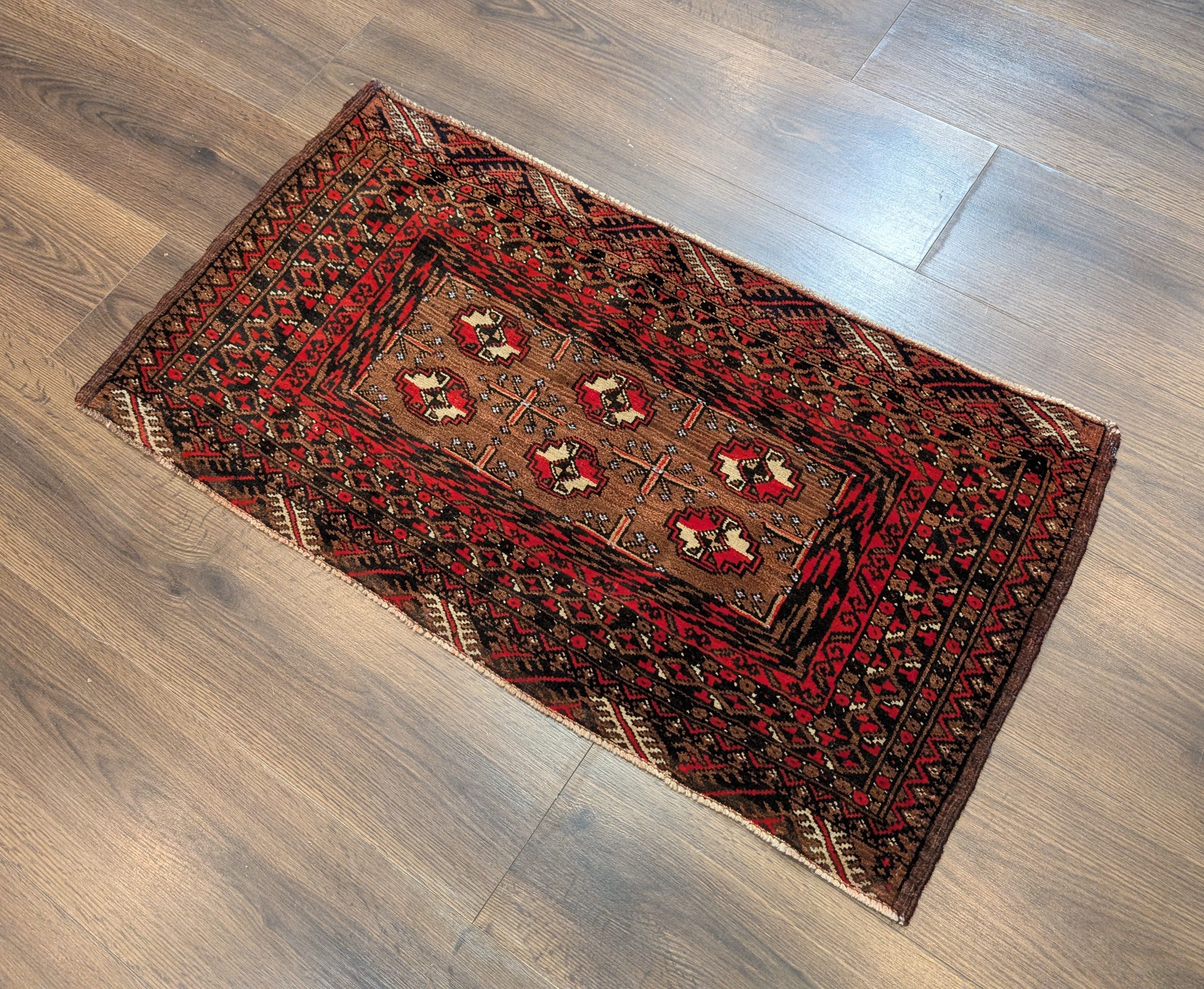 Afghan Turkoman Rug 3x2, Handmade, Tribal, Wool