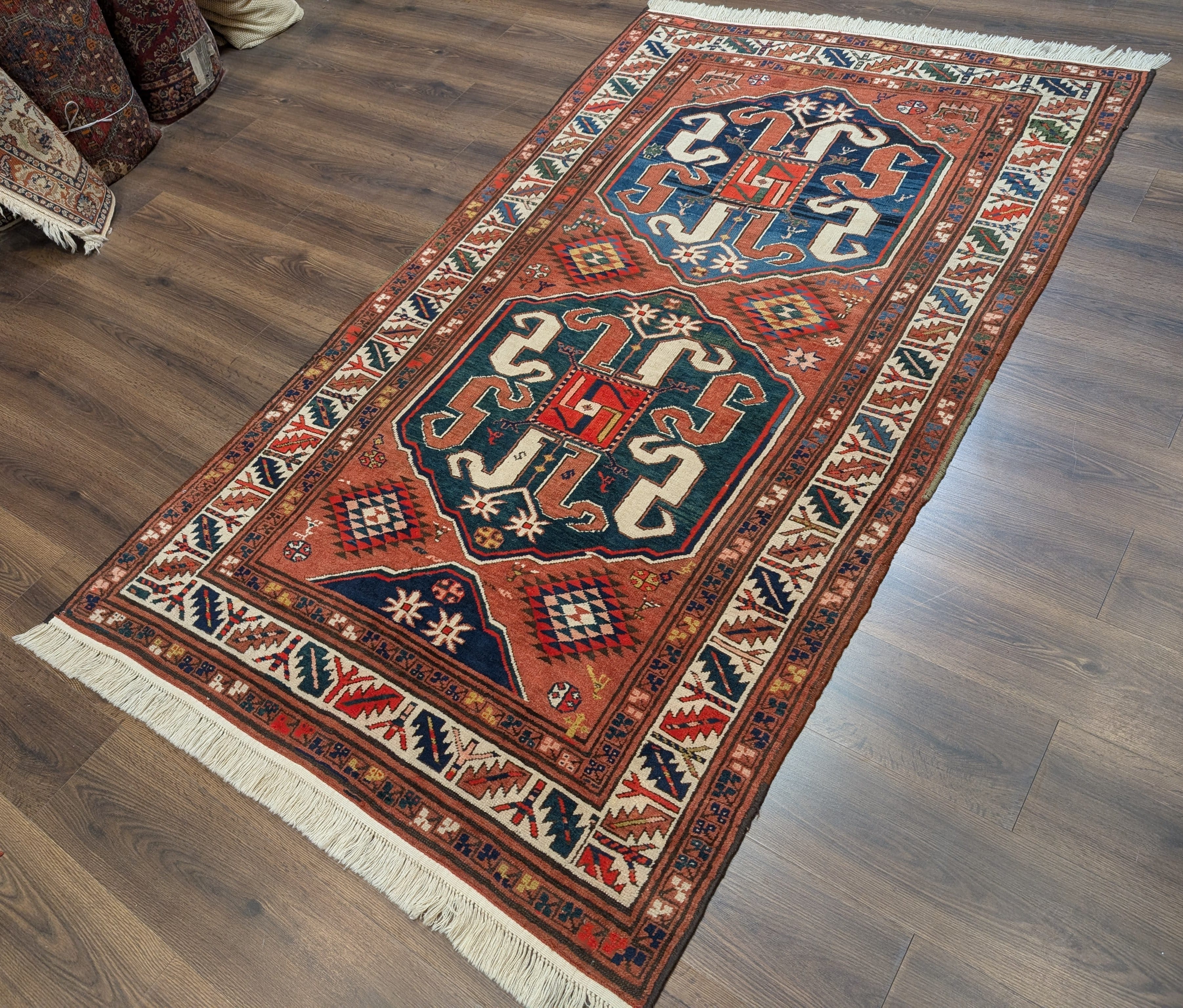 Antique Caucasian Rug 5x8, Cloudband Kazak Carpet, Collectible Rare