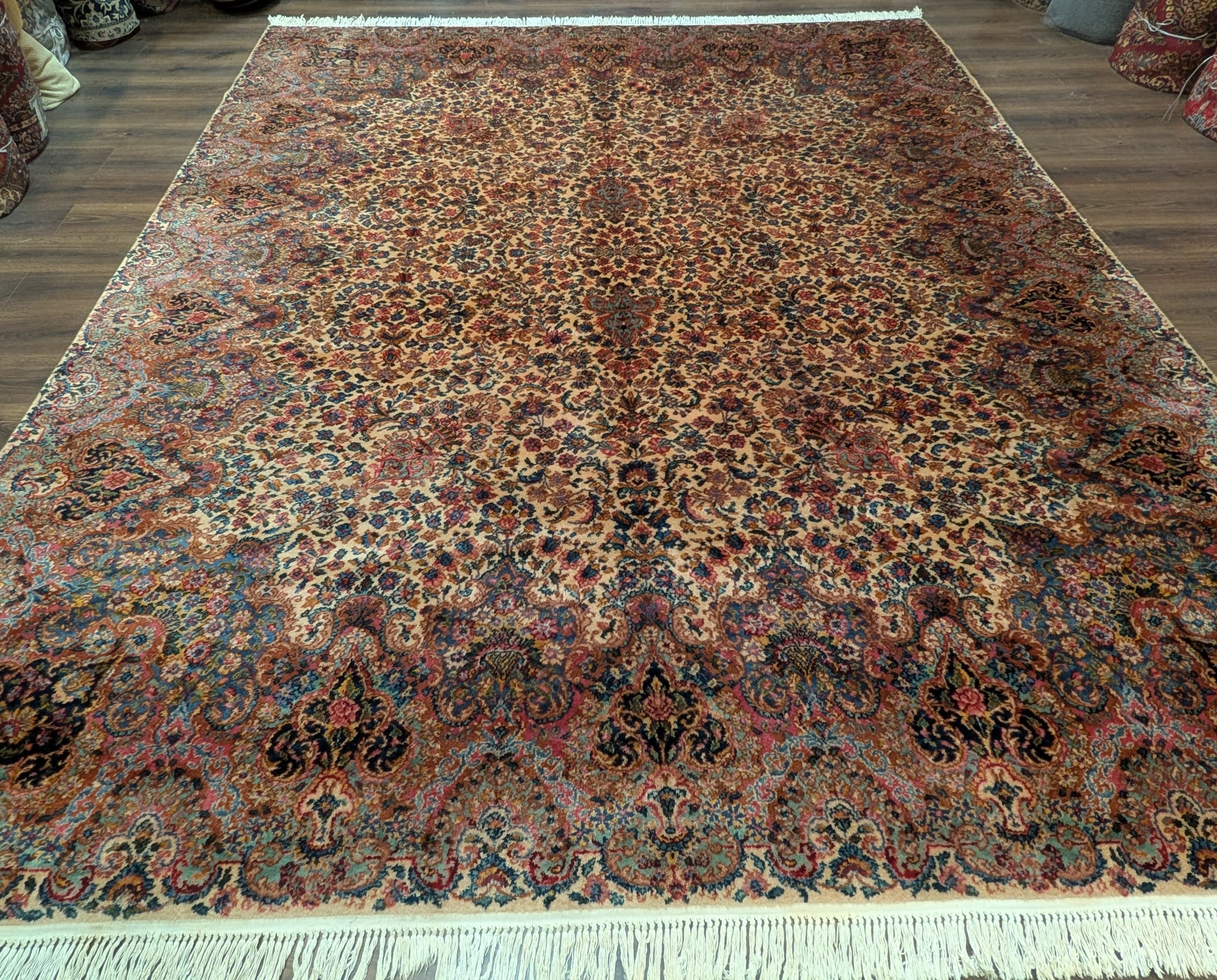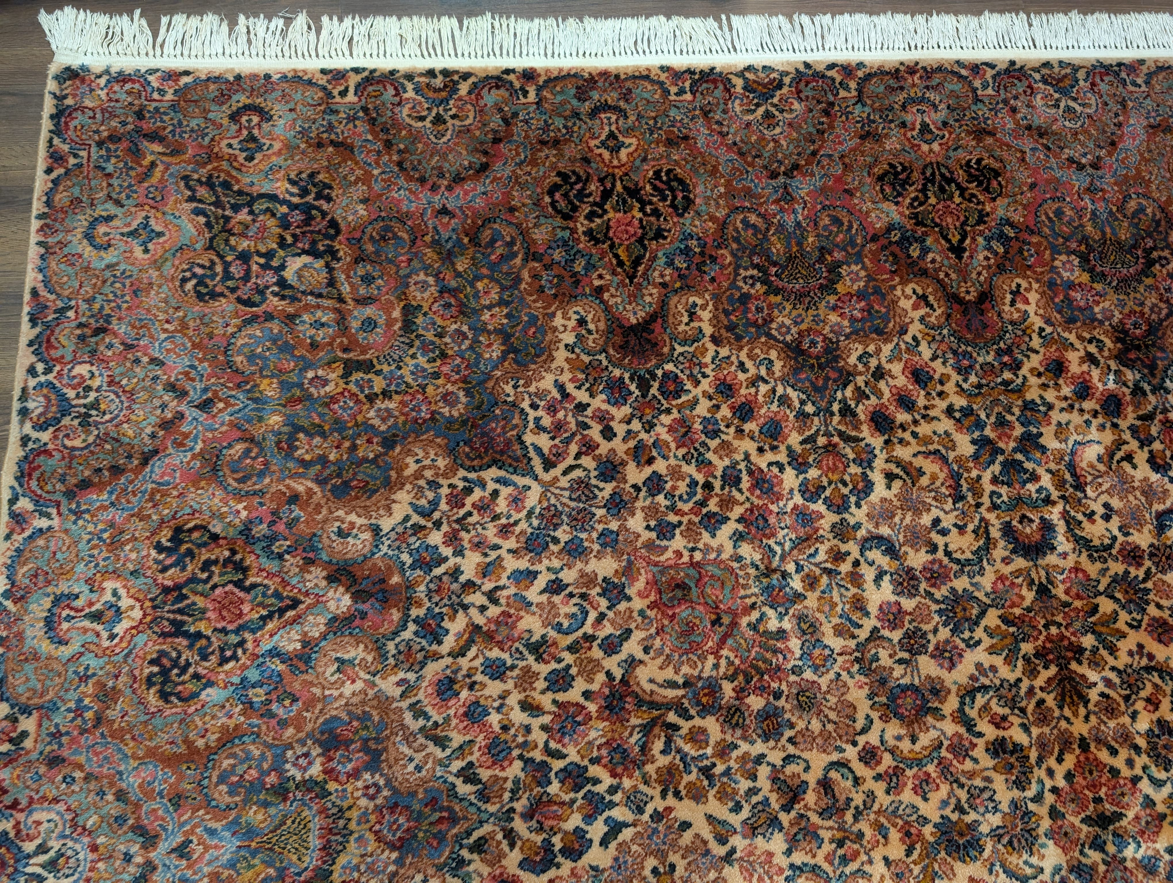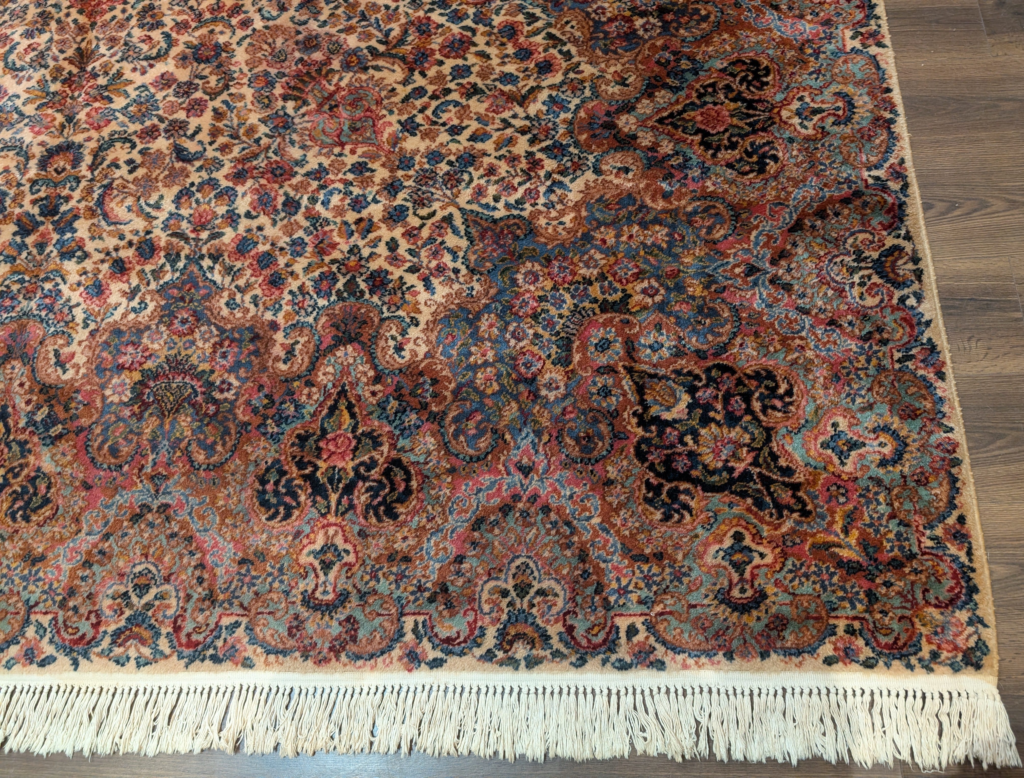 Antique Karastan Kirman Rug 10x12, Ivory Floral Kirman #759, Wool