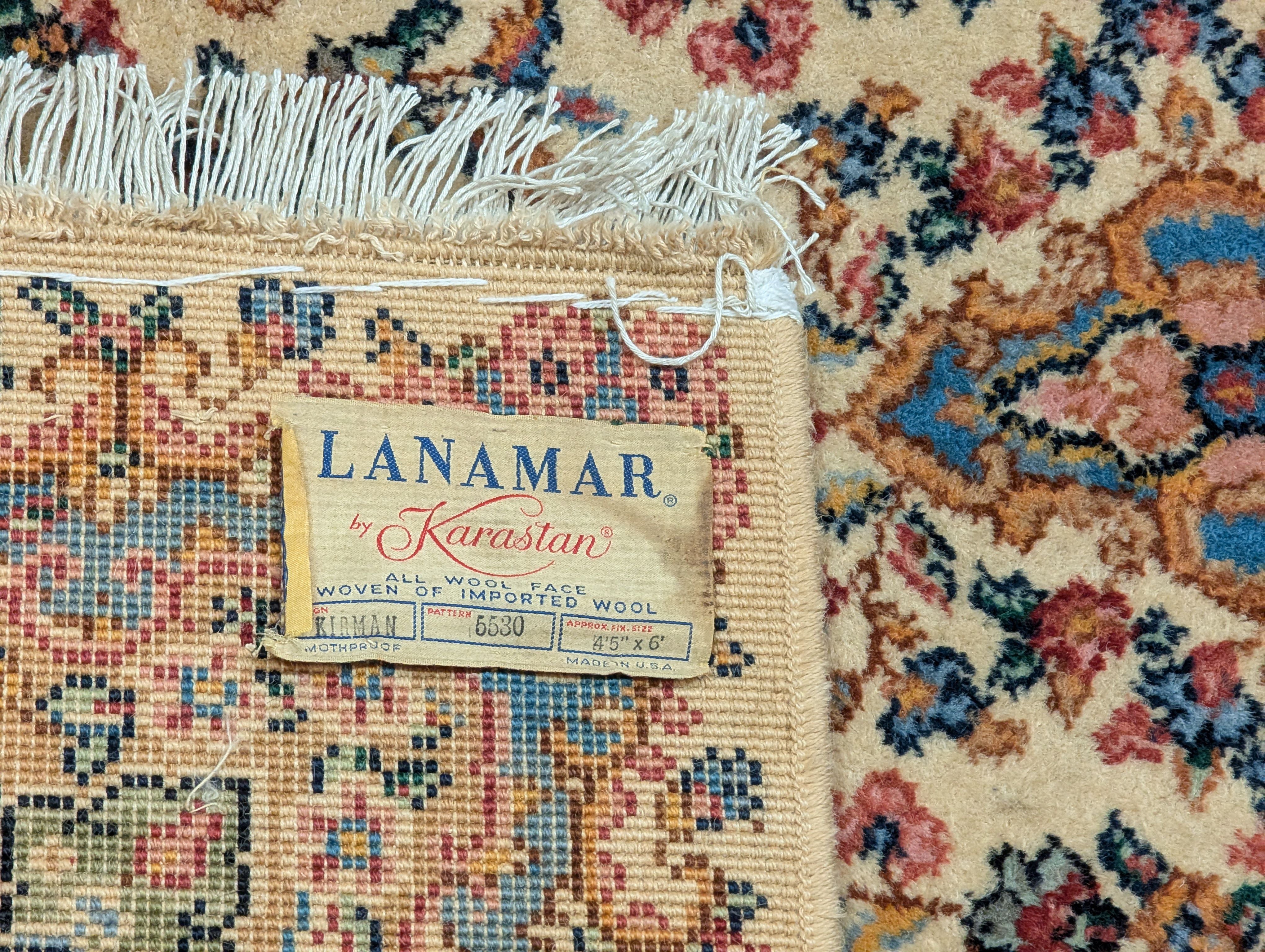 Antique Karastan Rug 4x6, Lanamar Kirman 5530, Floral, Wool