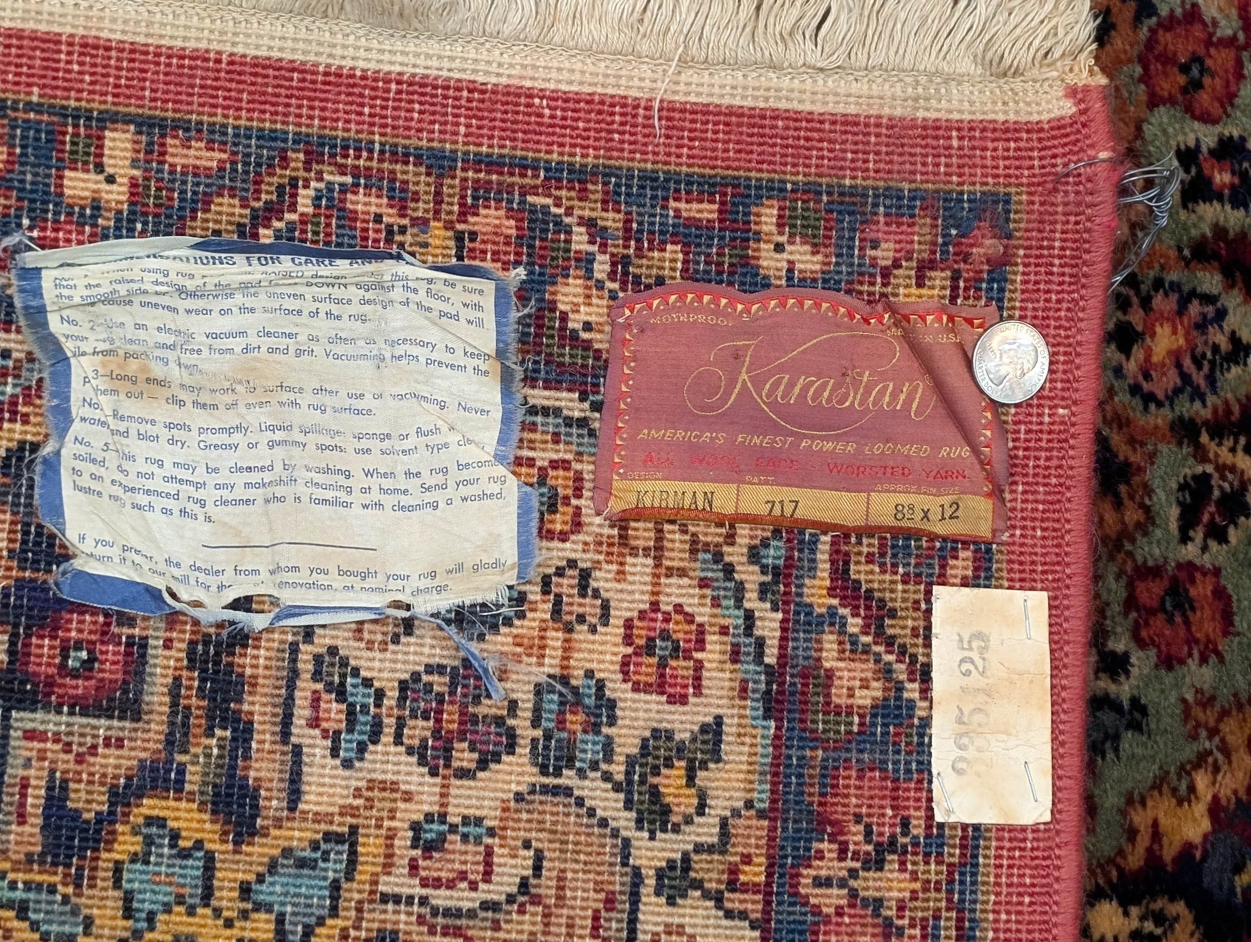 Antique Karastan Rug 8.8 x 12 Multicolor Panel Kirman #717, Wool