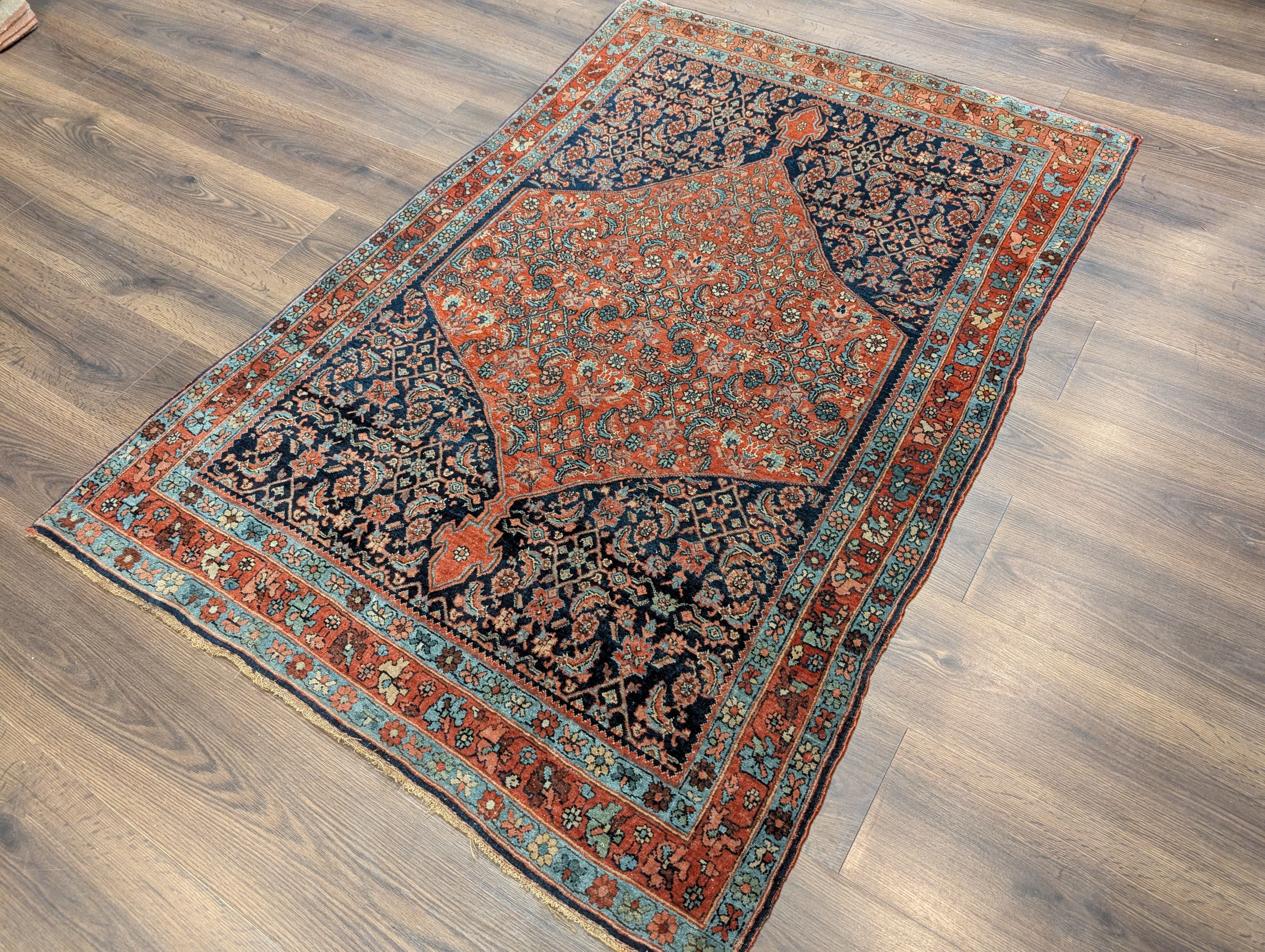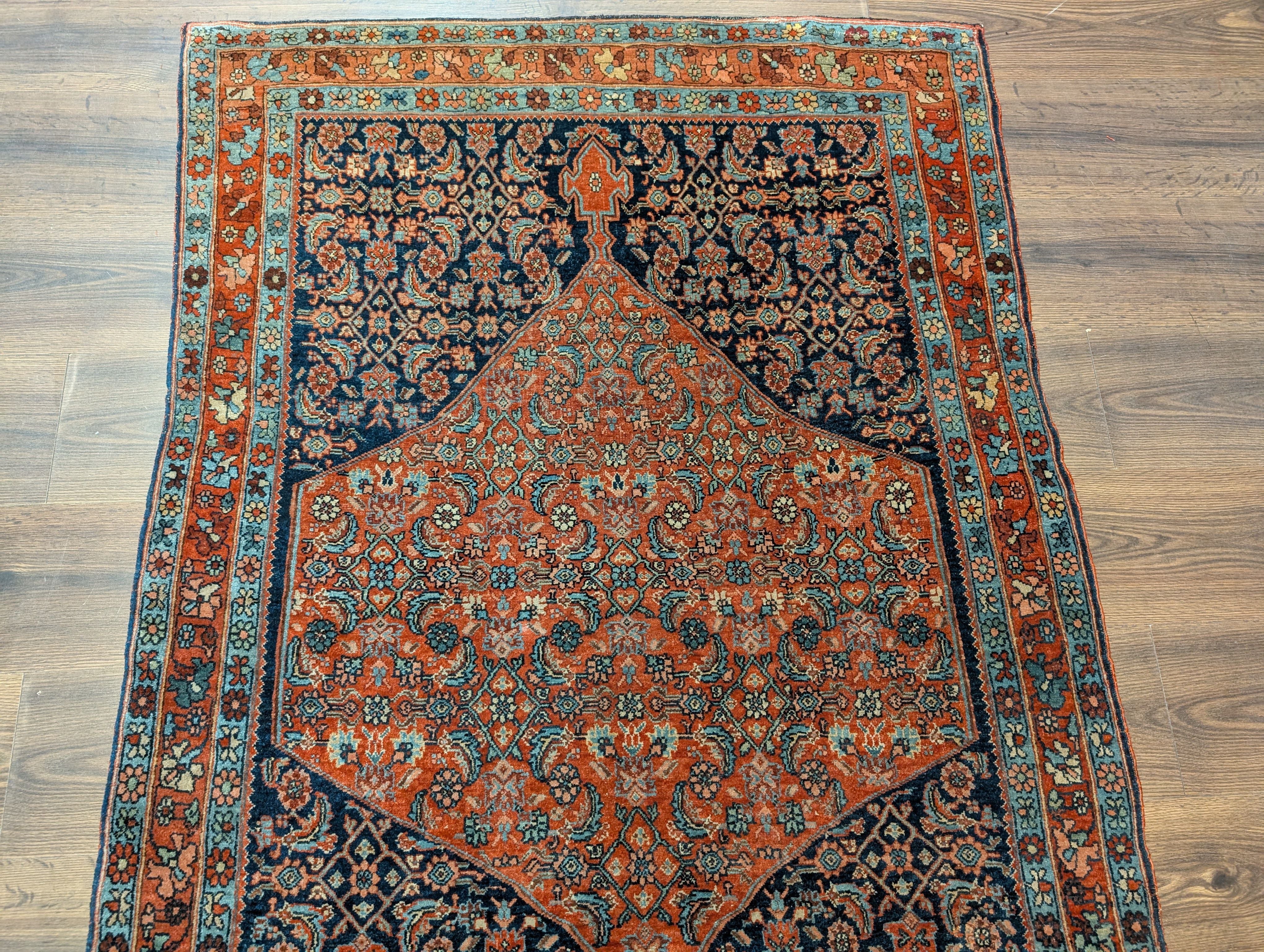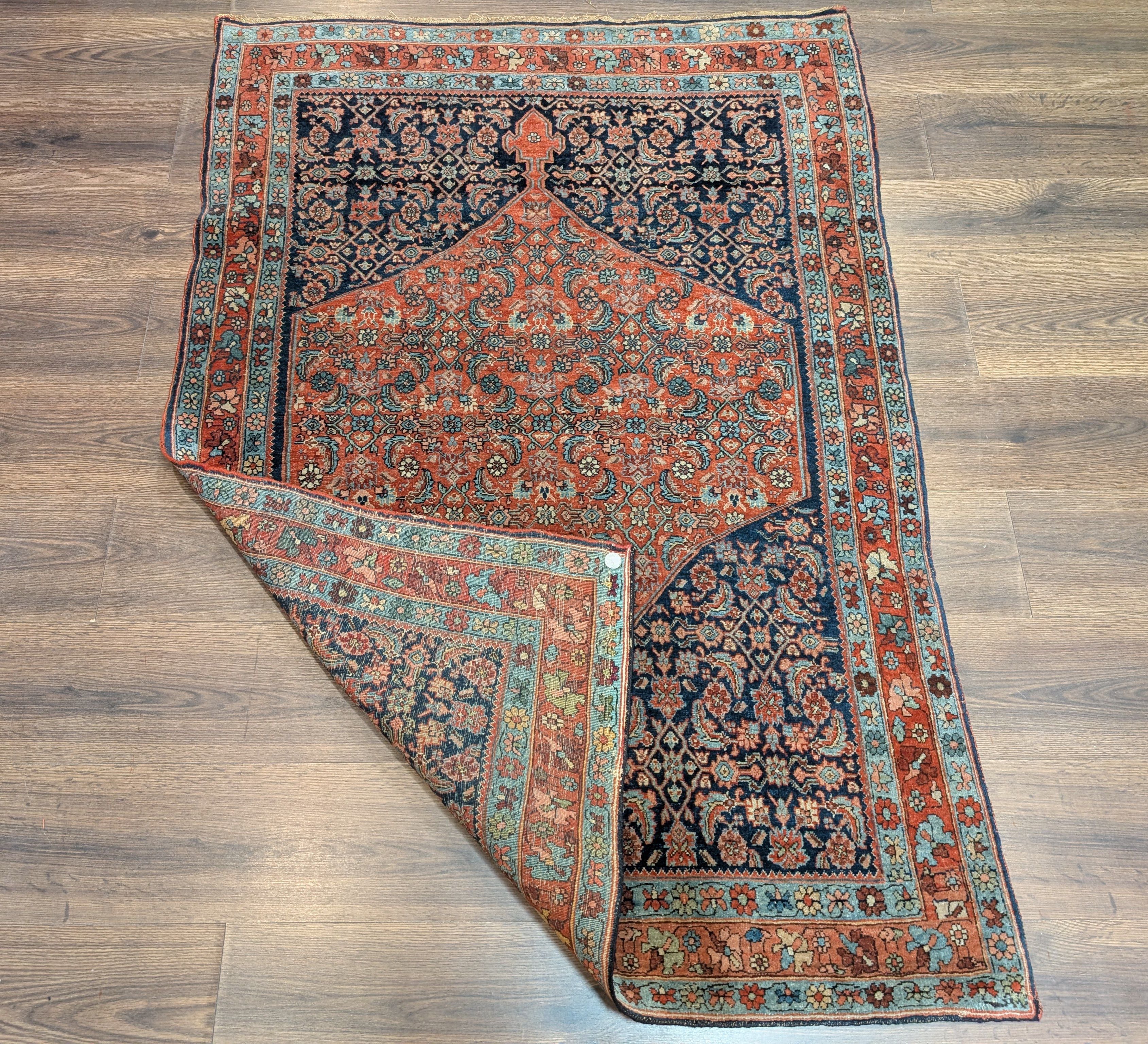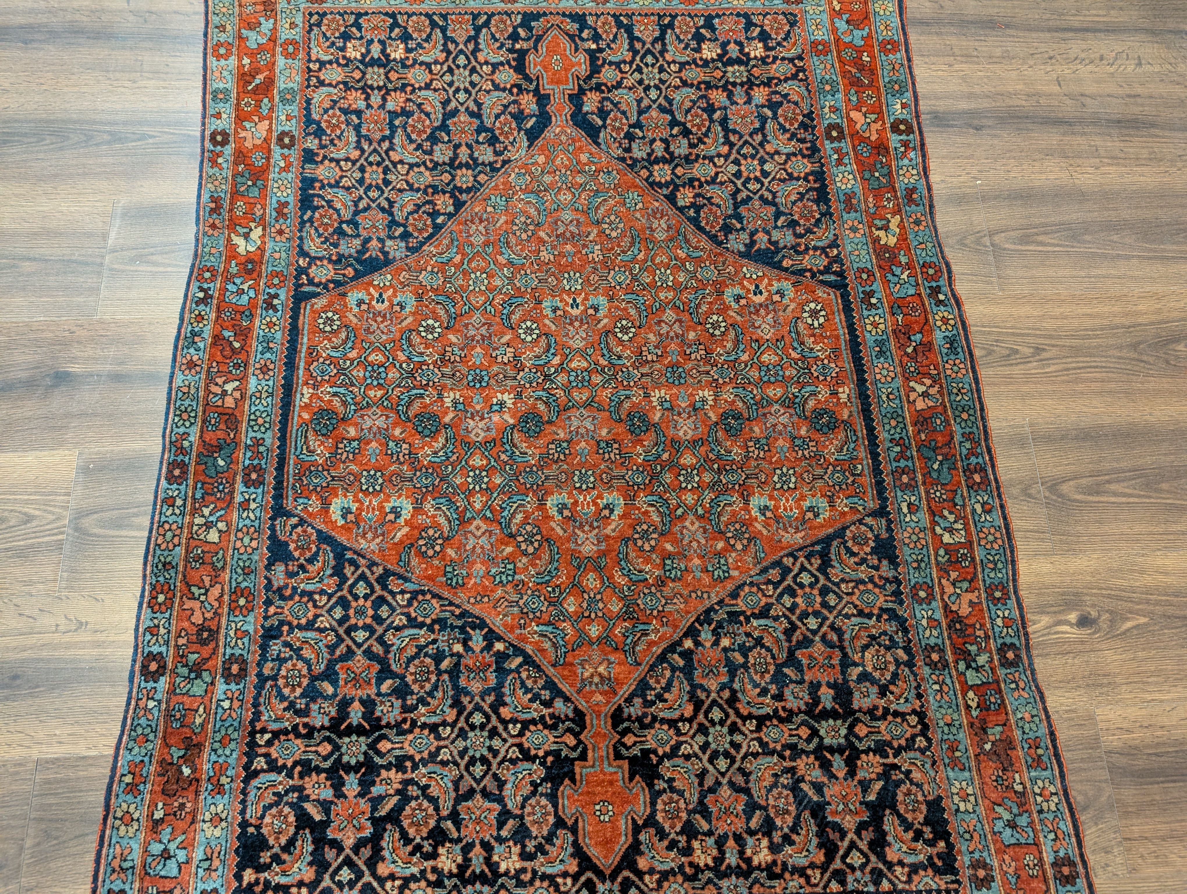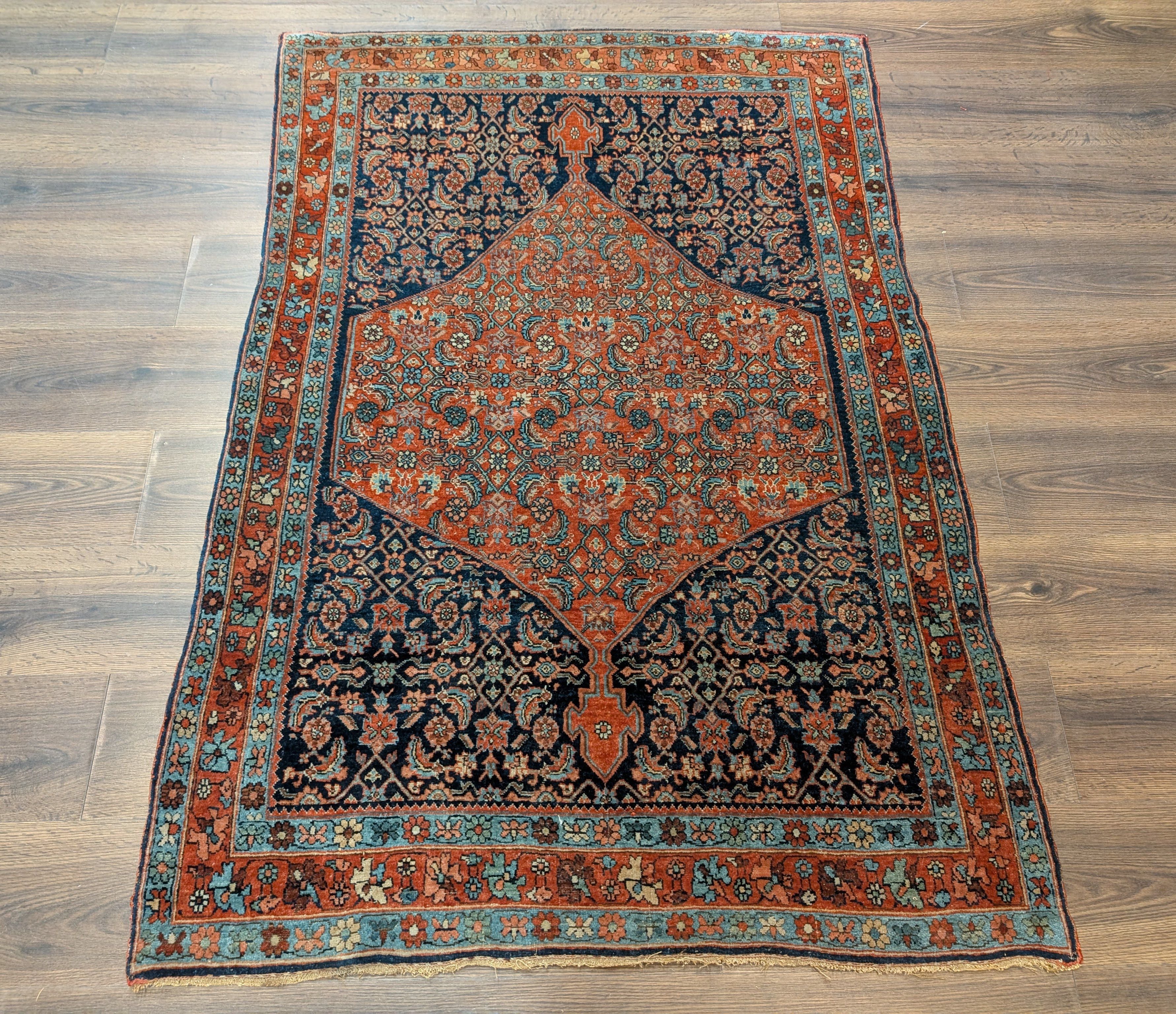 Antique Persian Bidjar Rug 4x5, Red and Navy Blue