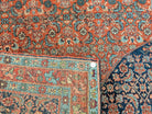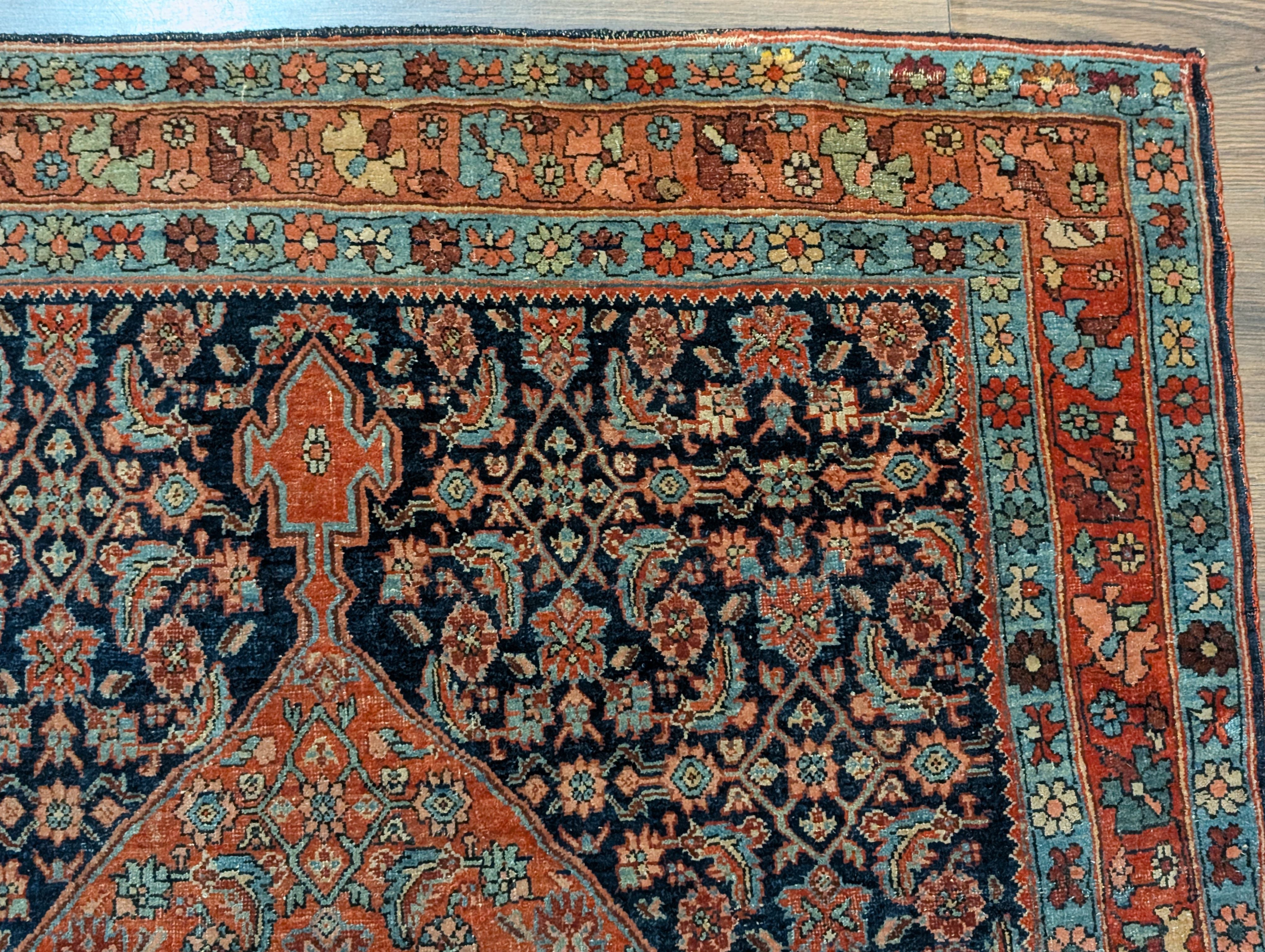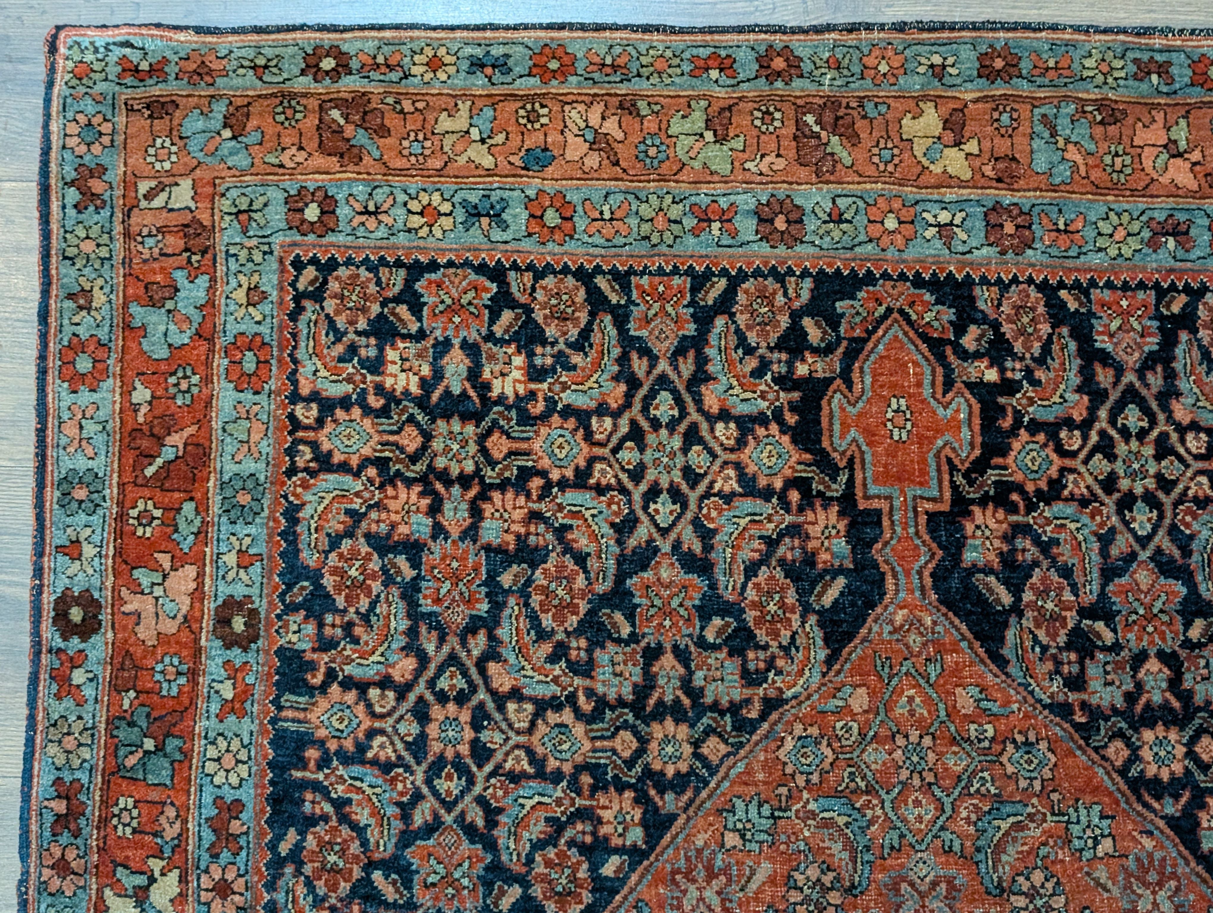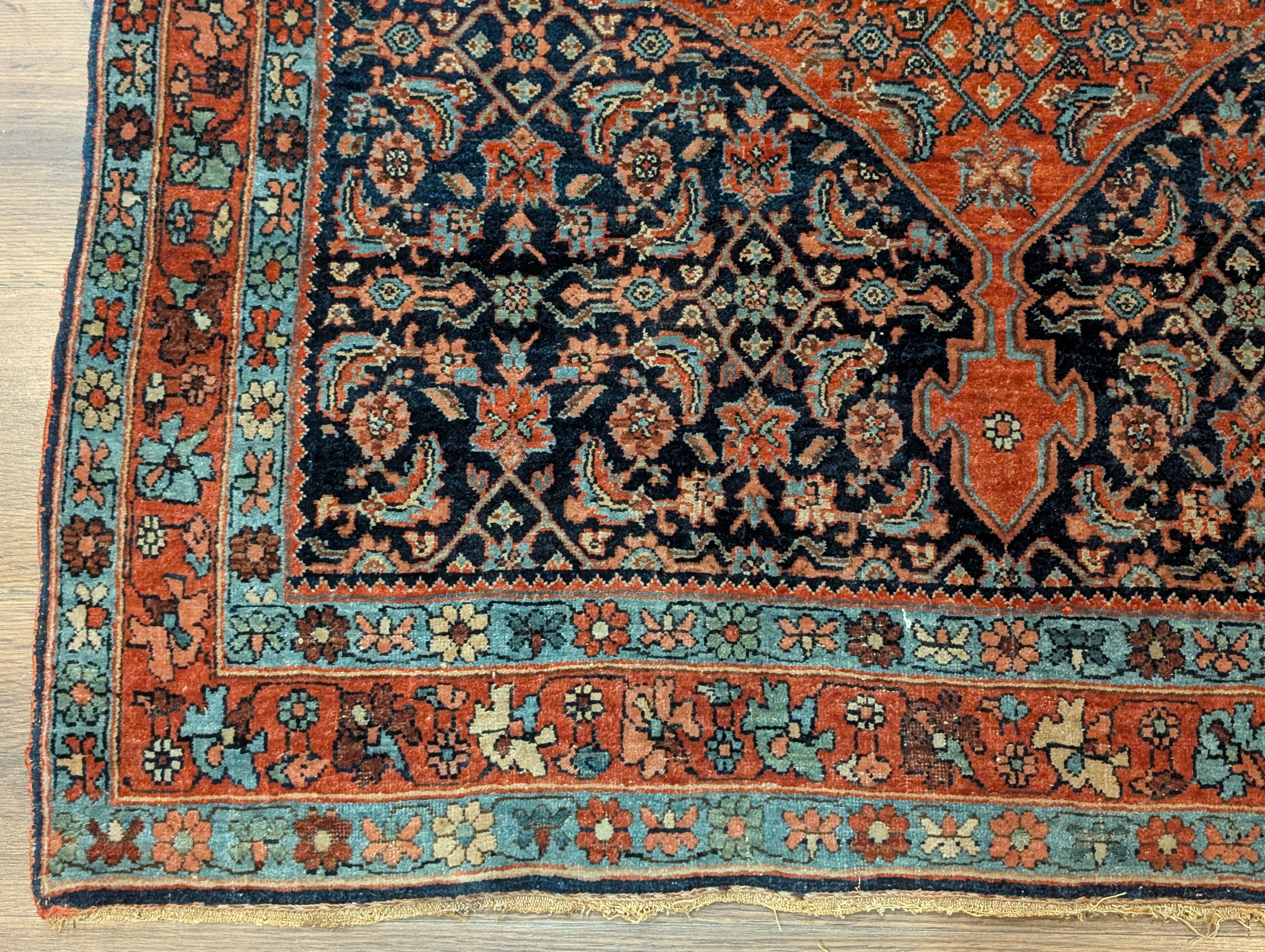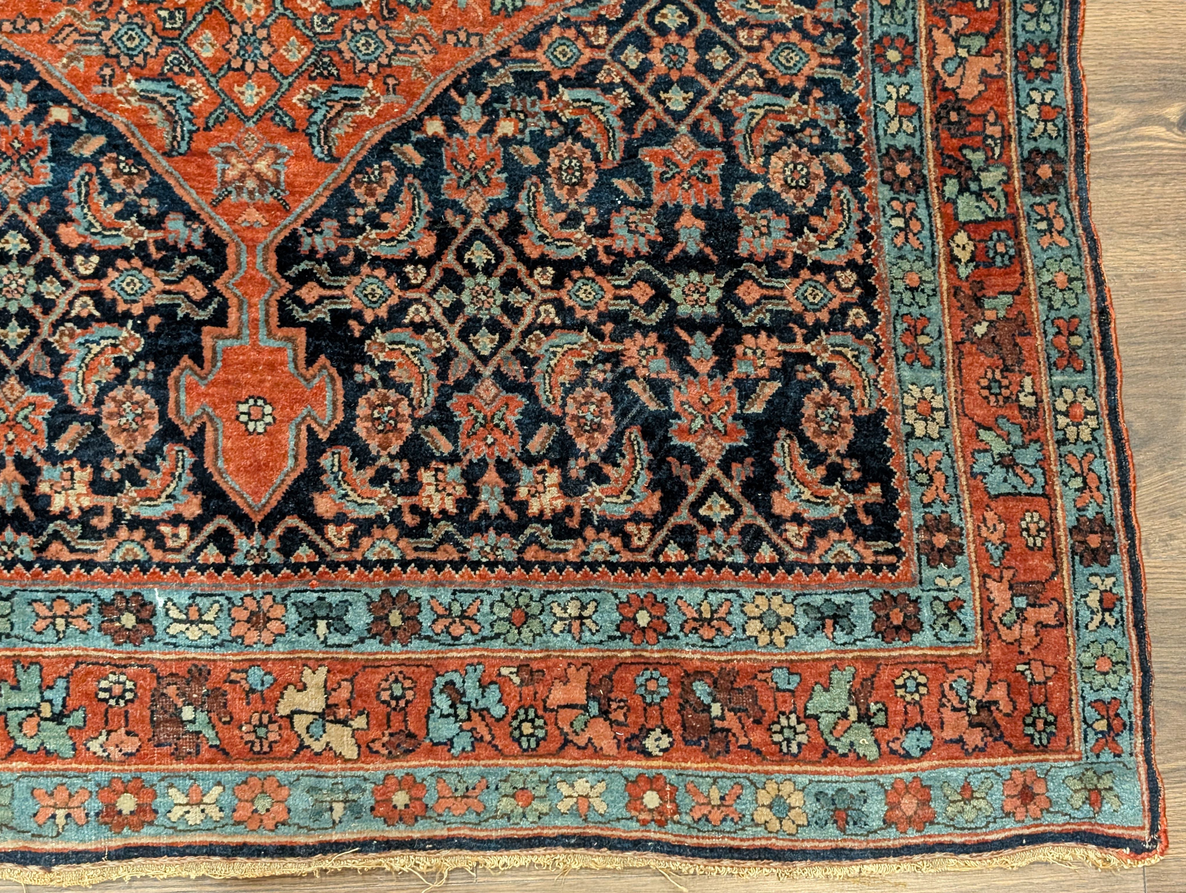 Antique Persian Bidjar Rug 4x5, Red and Navy Blue
