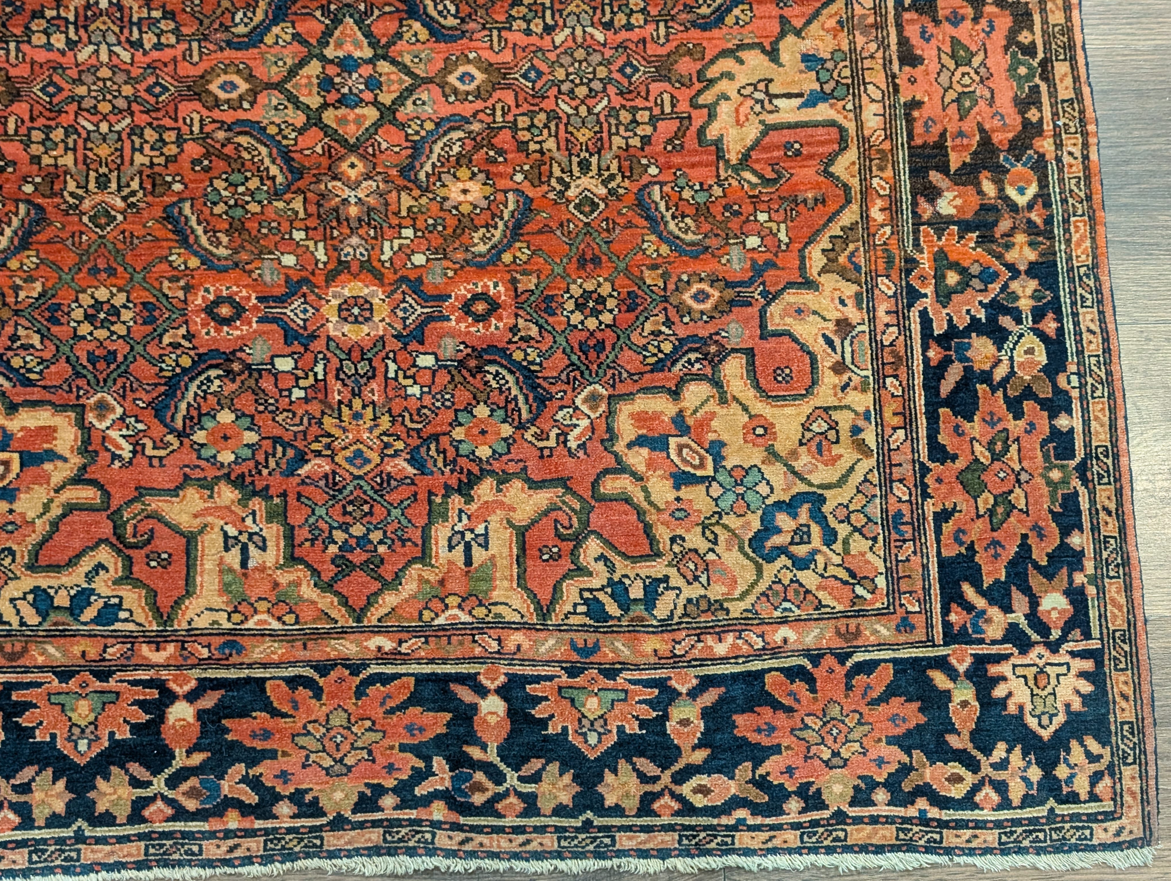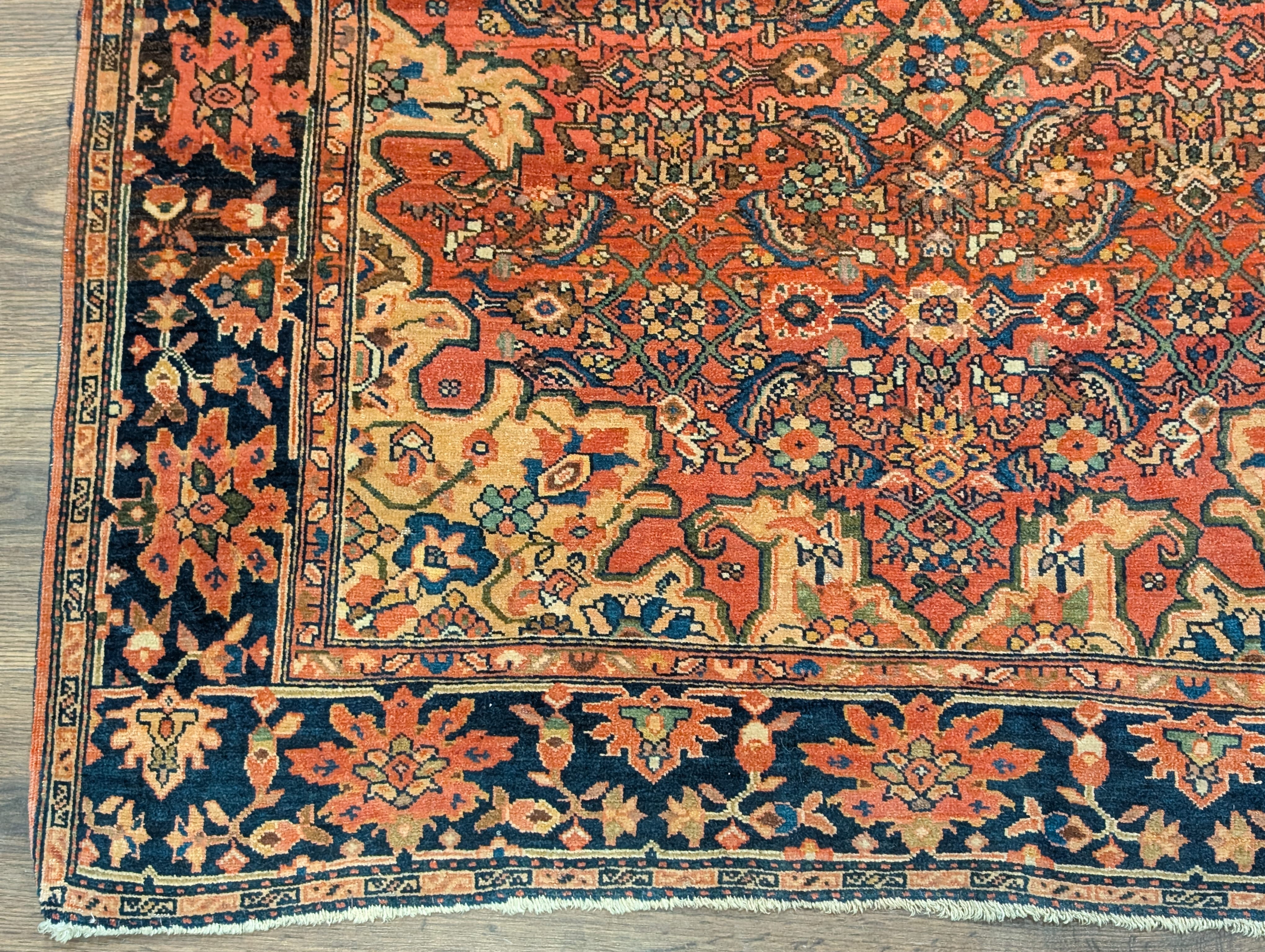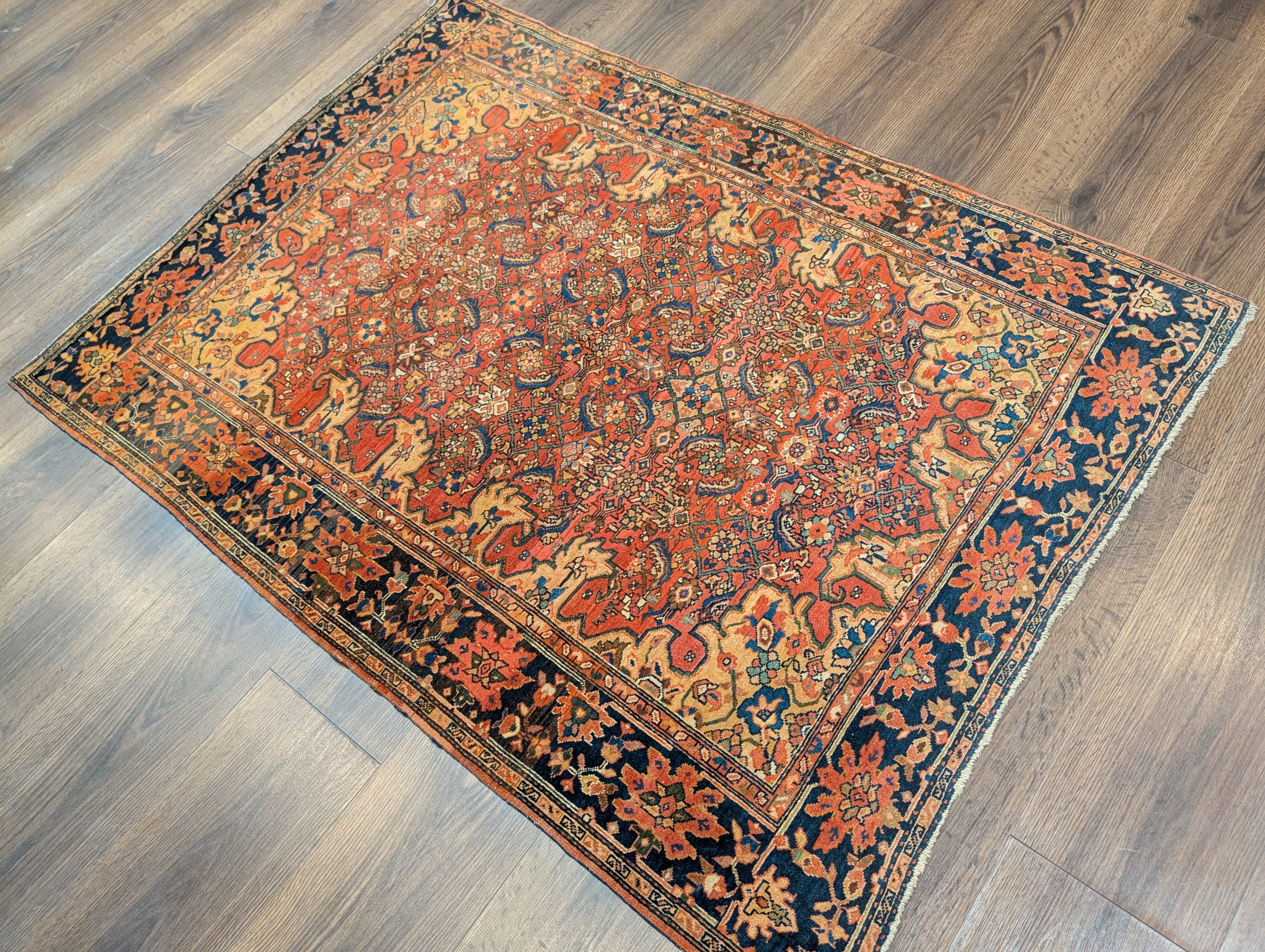 Antique Persian Farahan Sarouk Rug 3x5, Terracotta and Navy Blue, Collectible Rare
