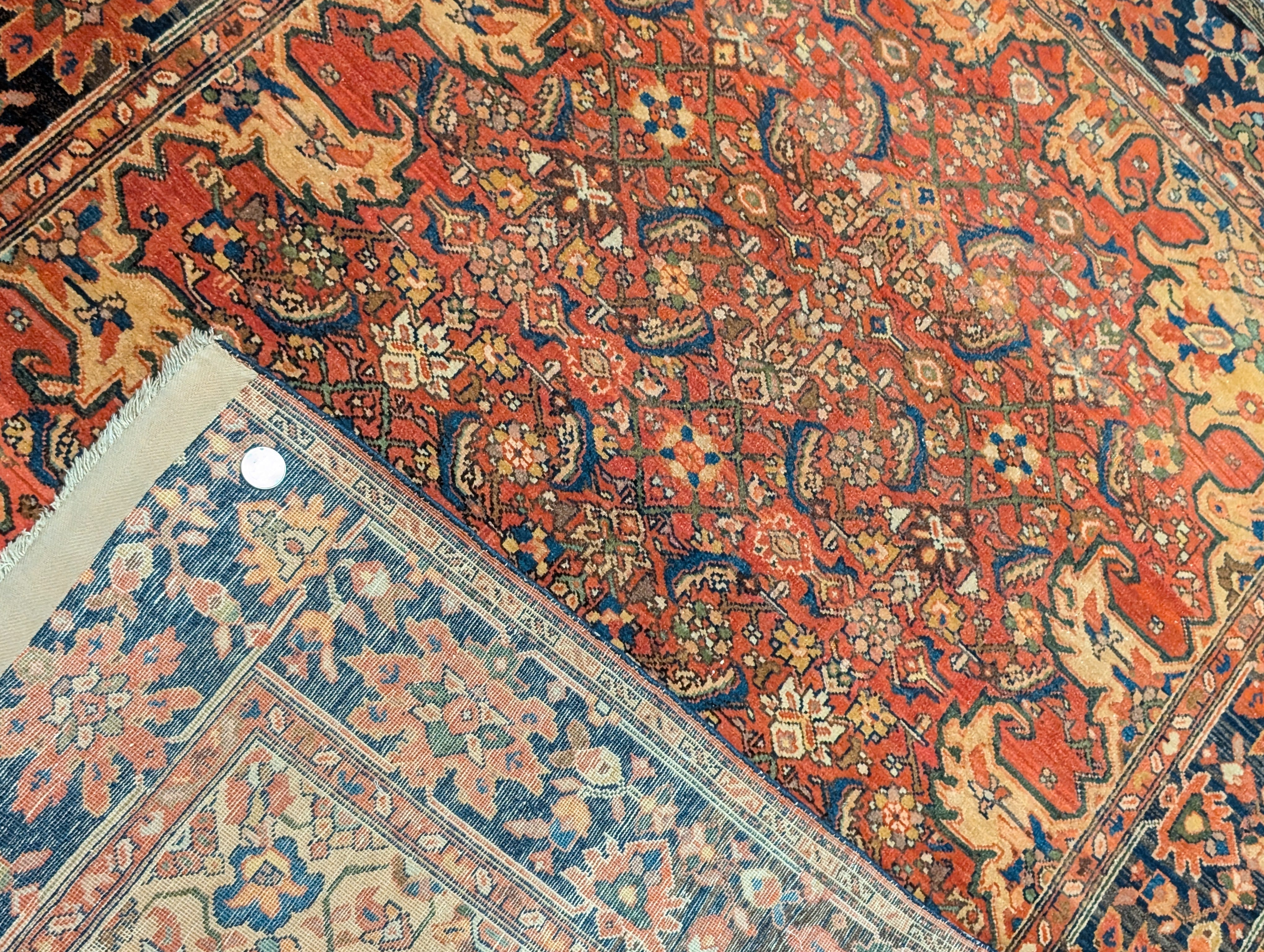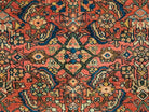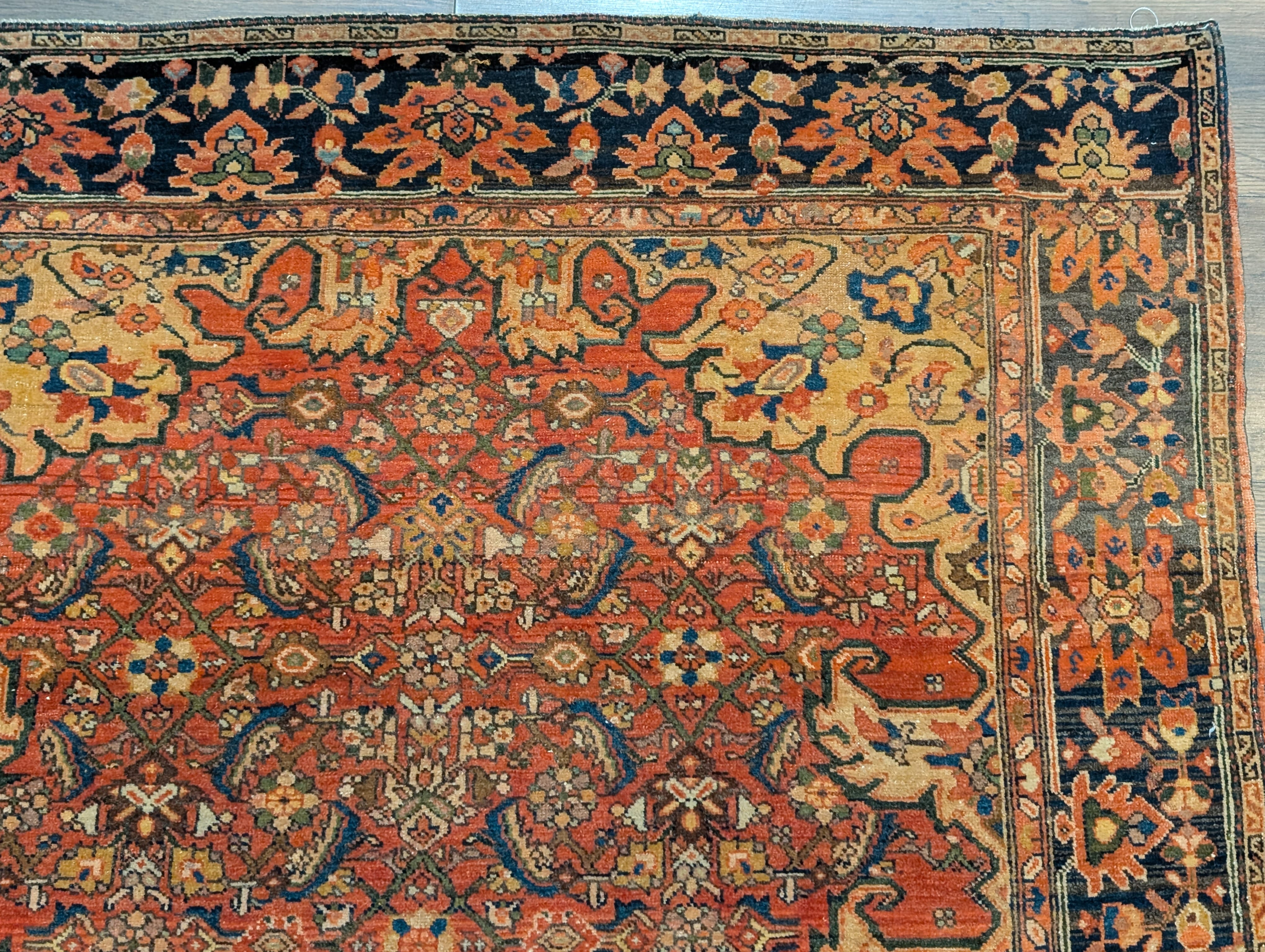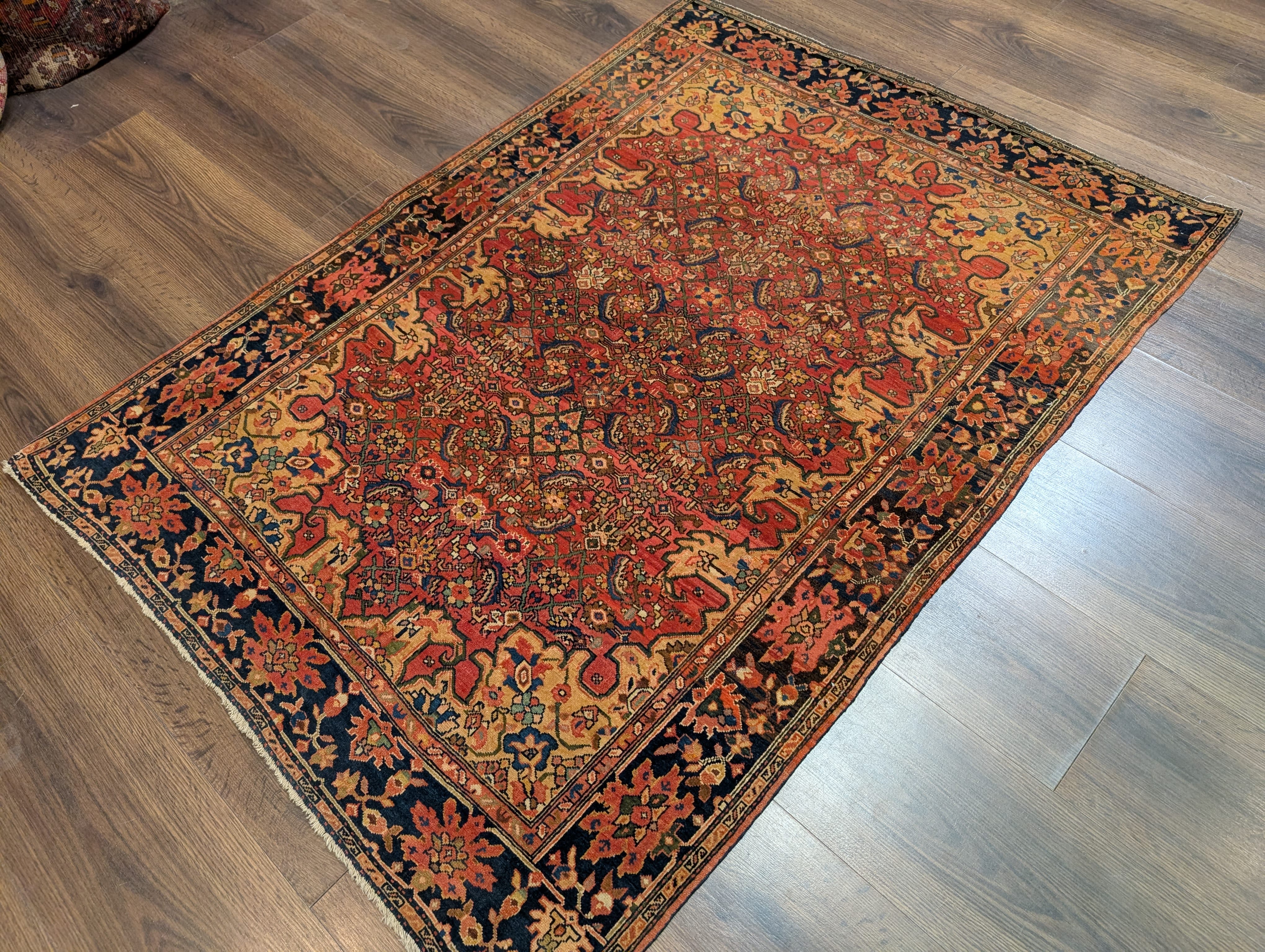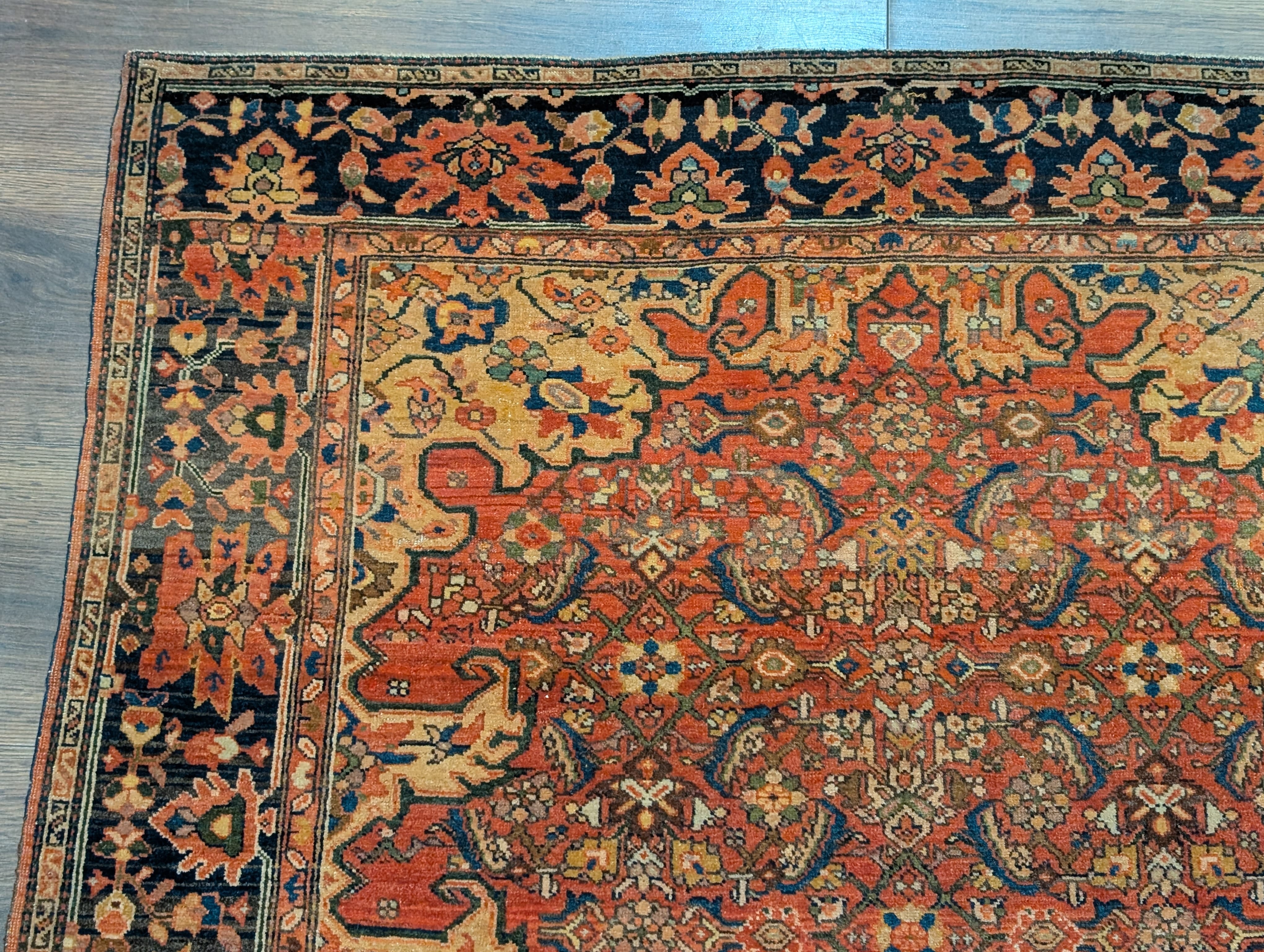 Antique Persian Farahan Sarouk Rug 3x5, Terracotta and Navy Blue, Collectible Rare