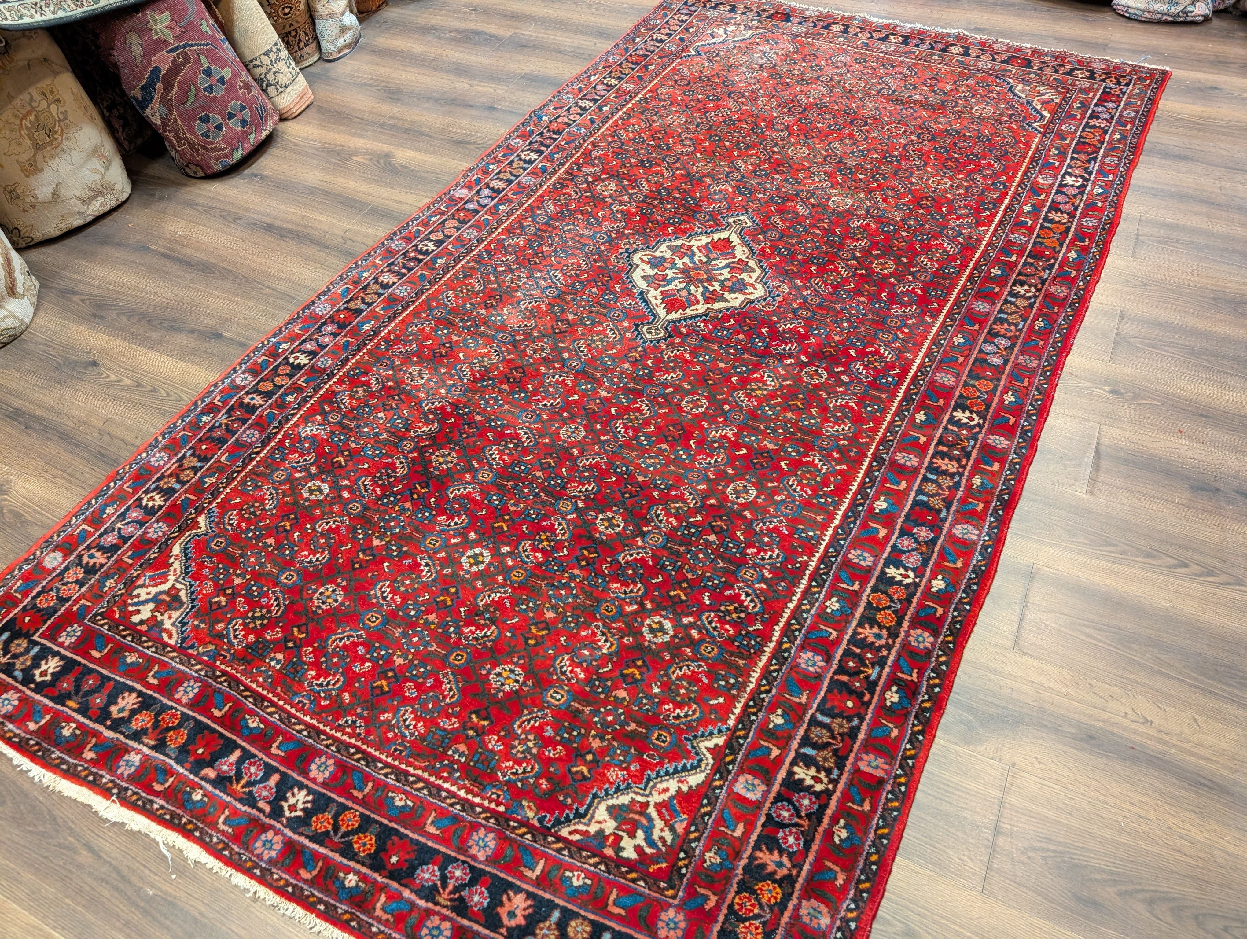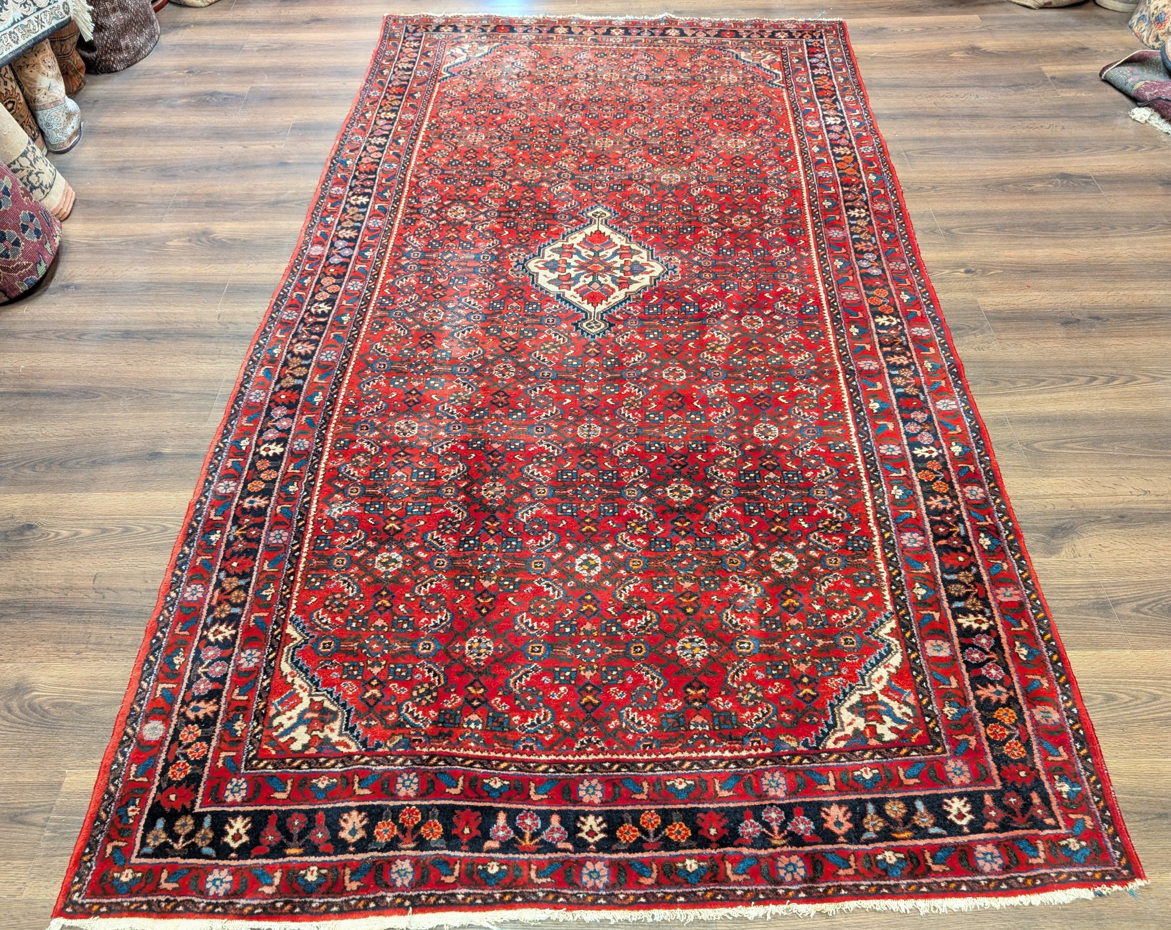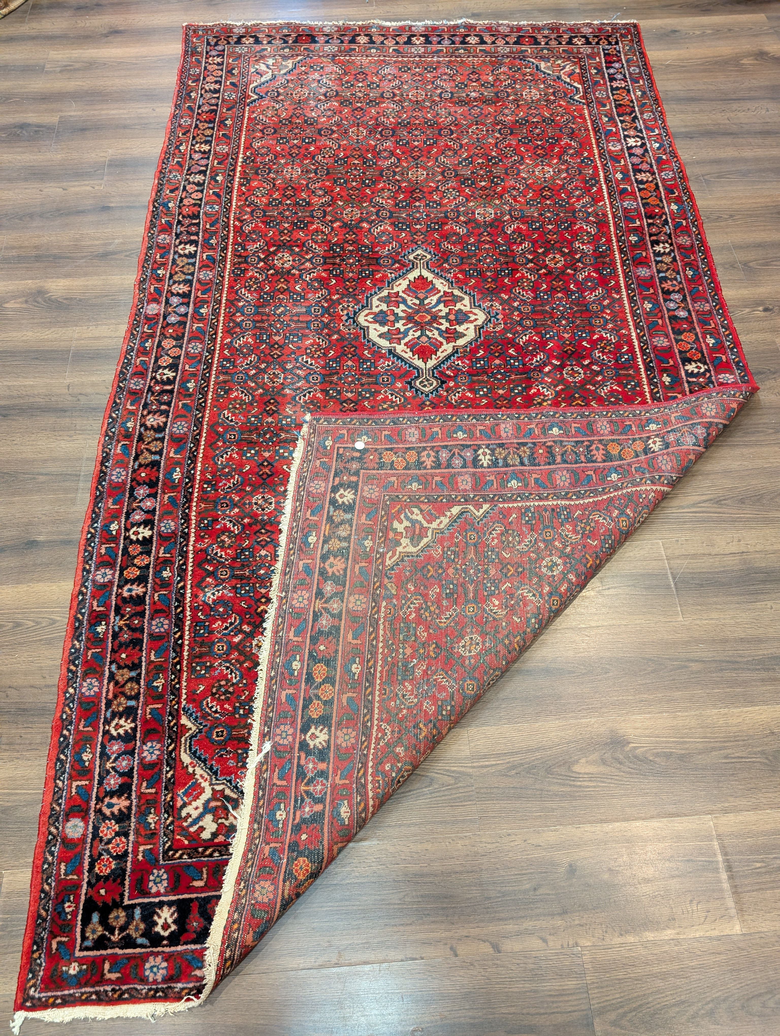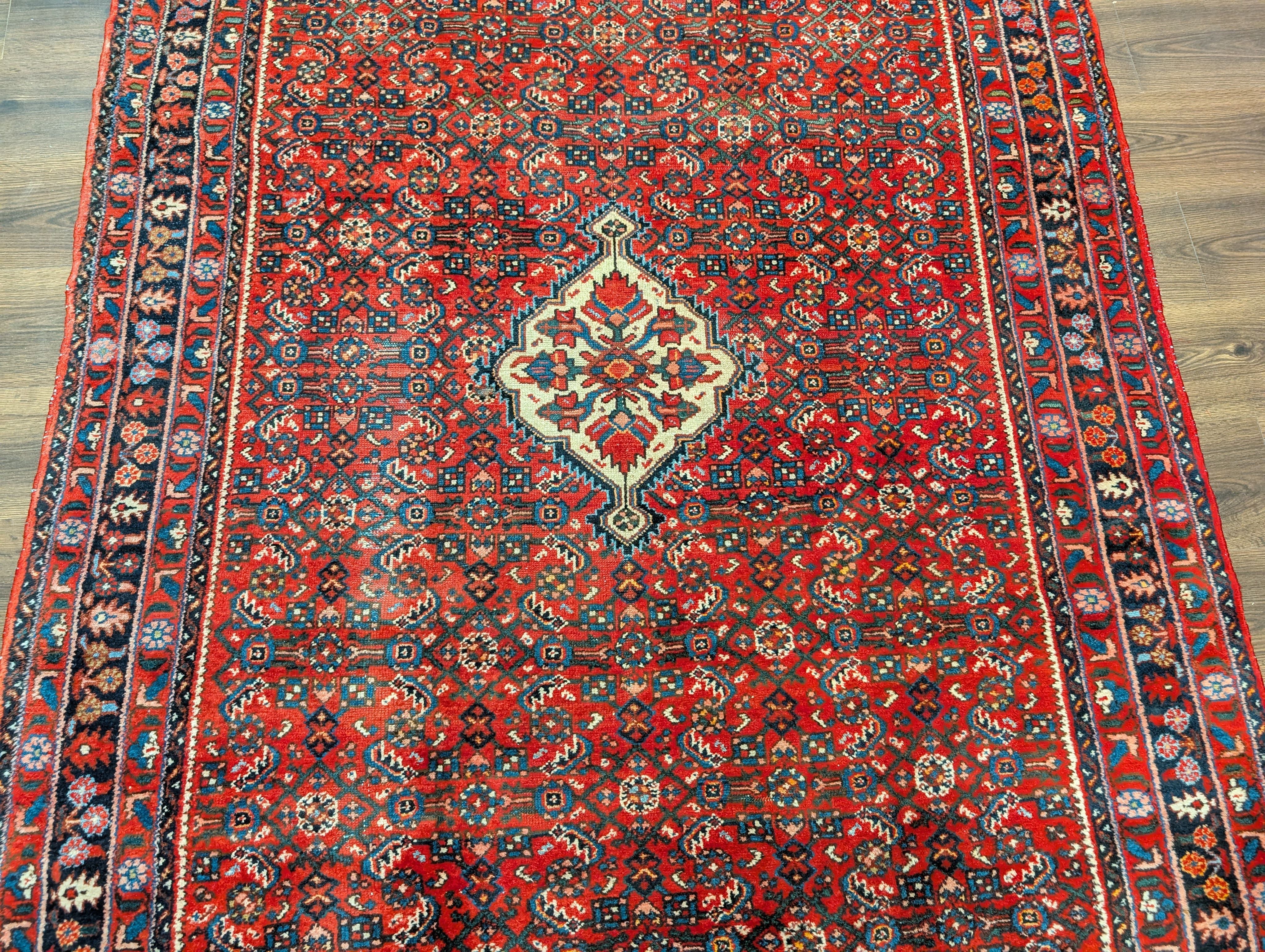 Antique Persian Hamadan Wide Runner Rug 5x10, Red, Handmade, Wool, Dargazin Carpet