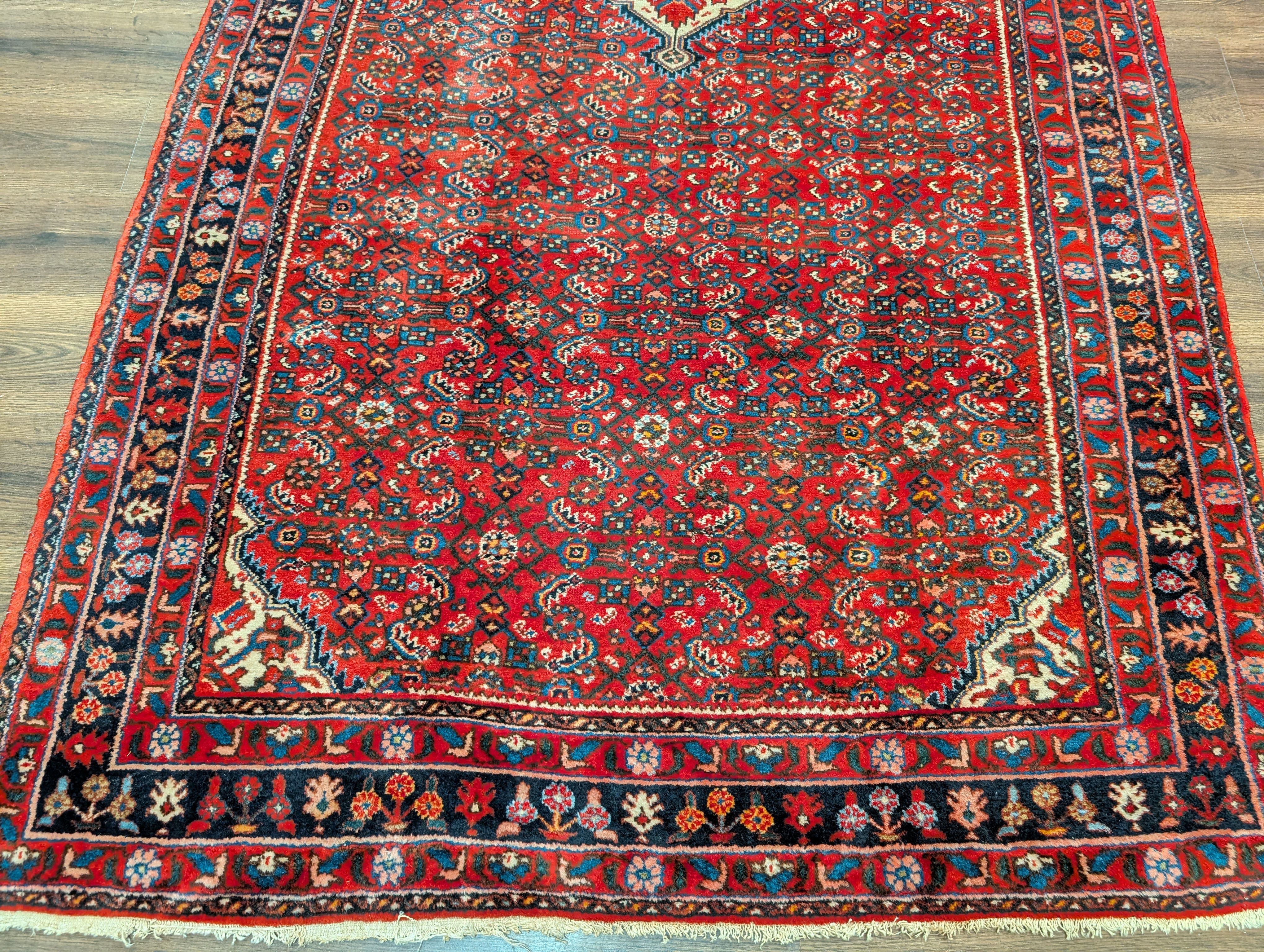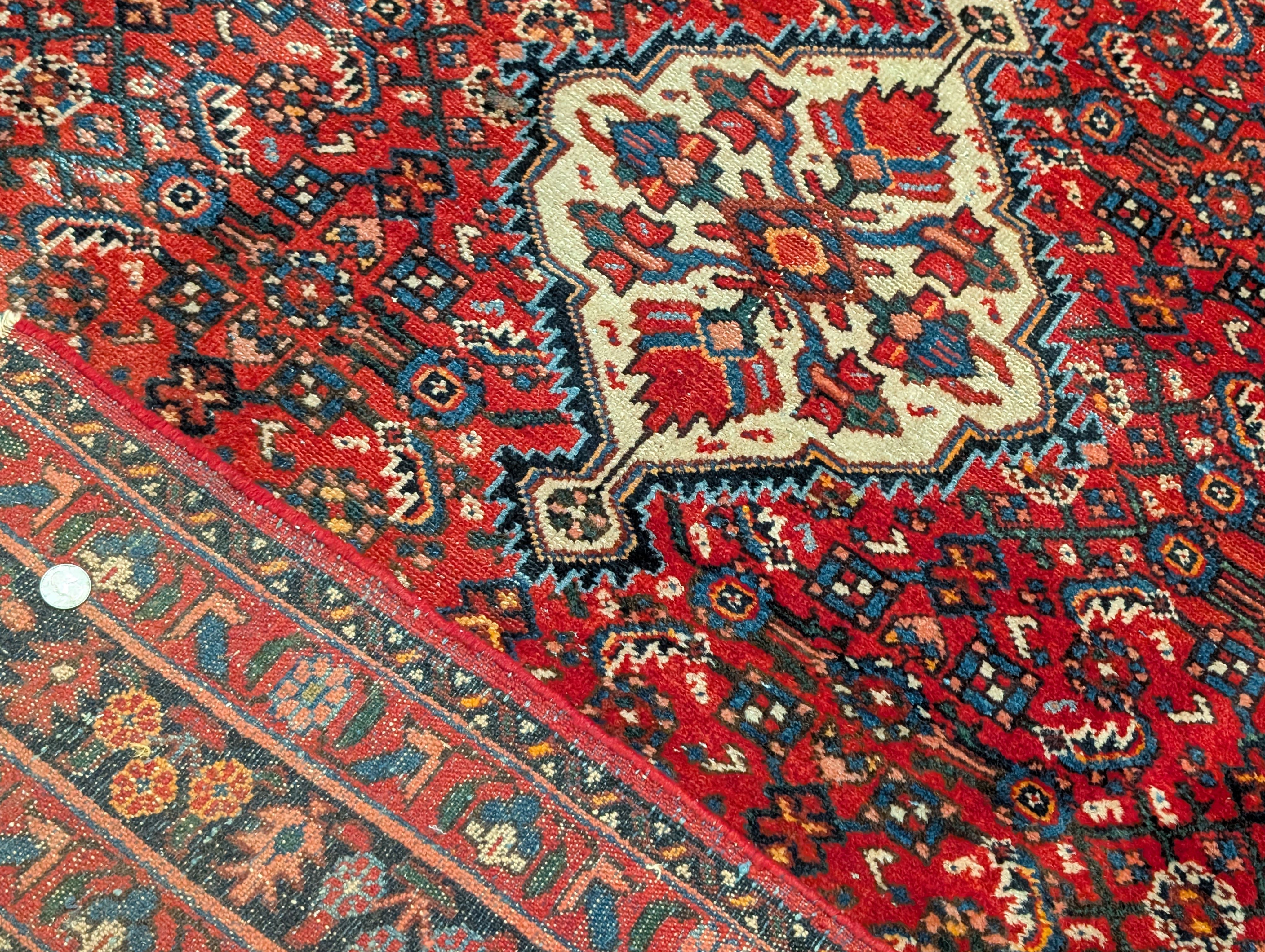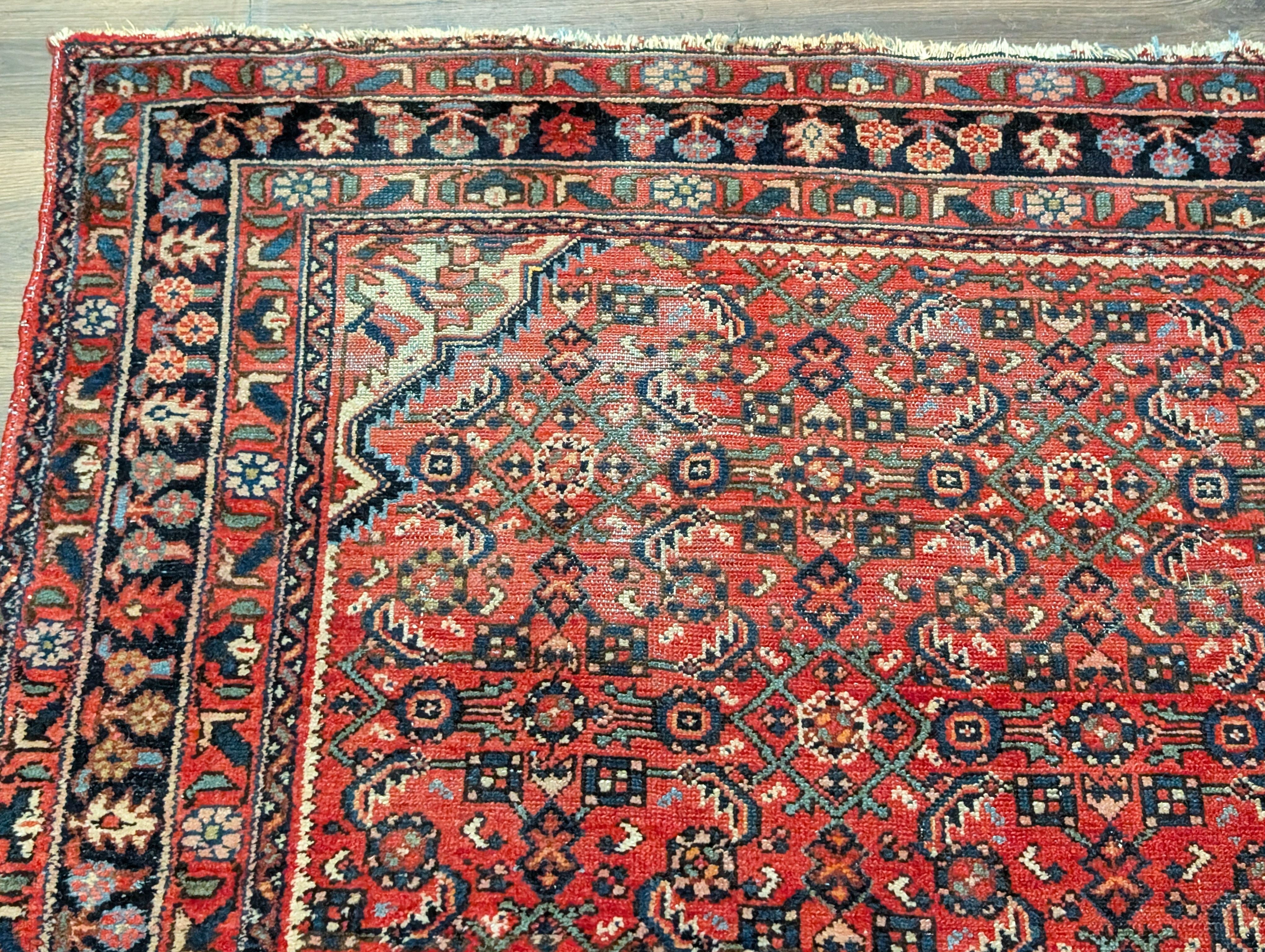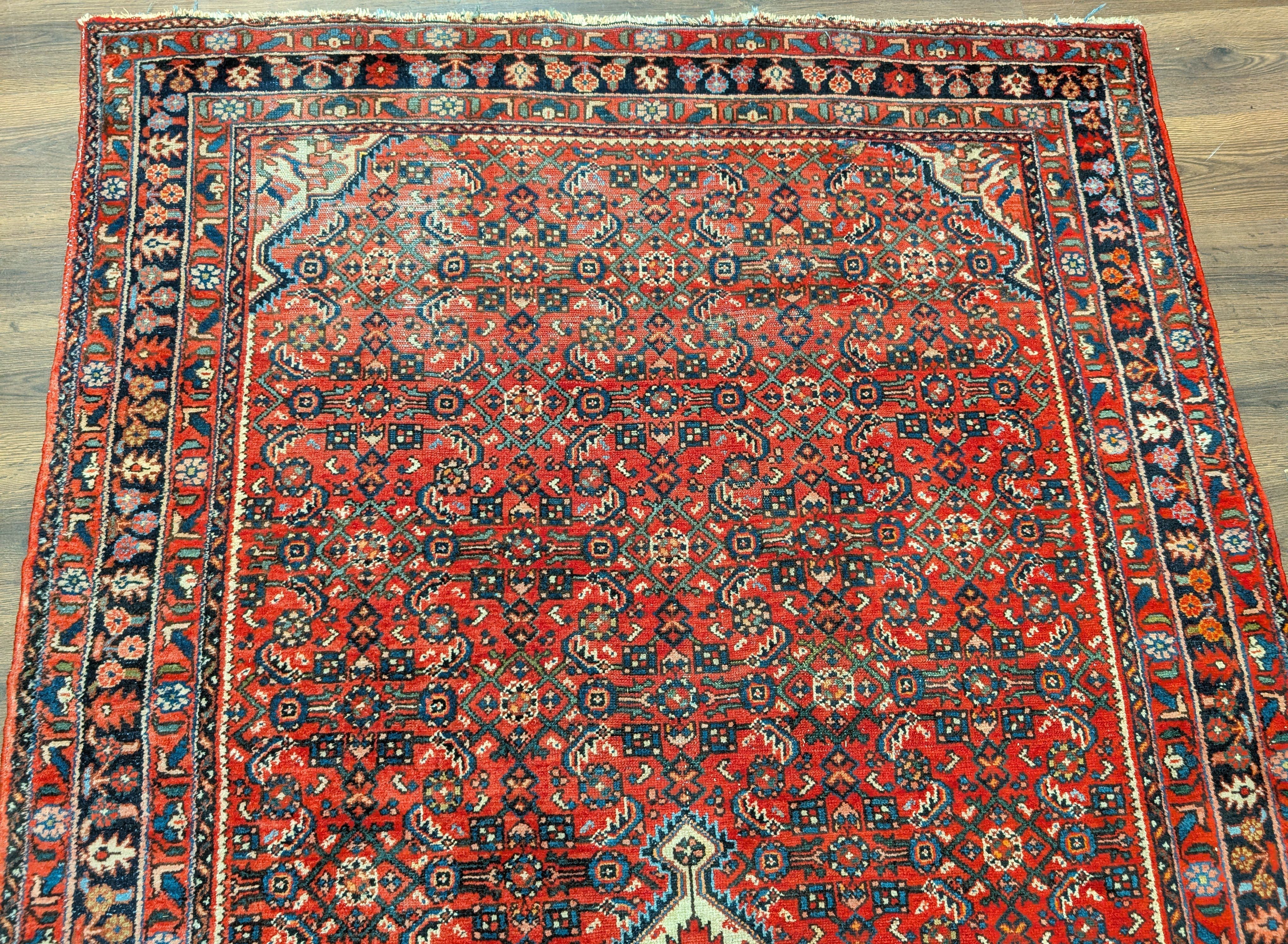 Antique Persian Hamadan Wide Runner Rug 5x10, Red, Handmade, Wool, Dargazin Carpet