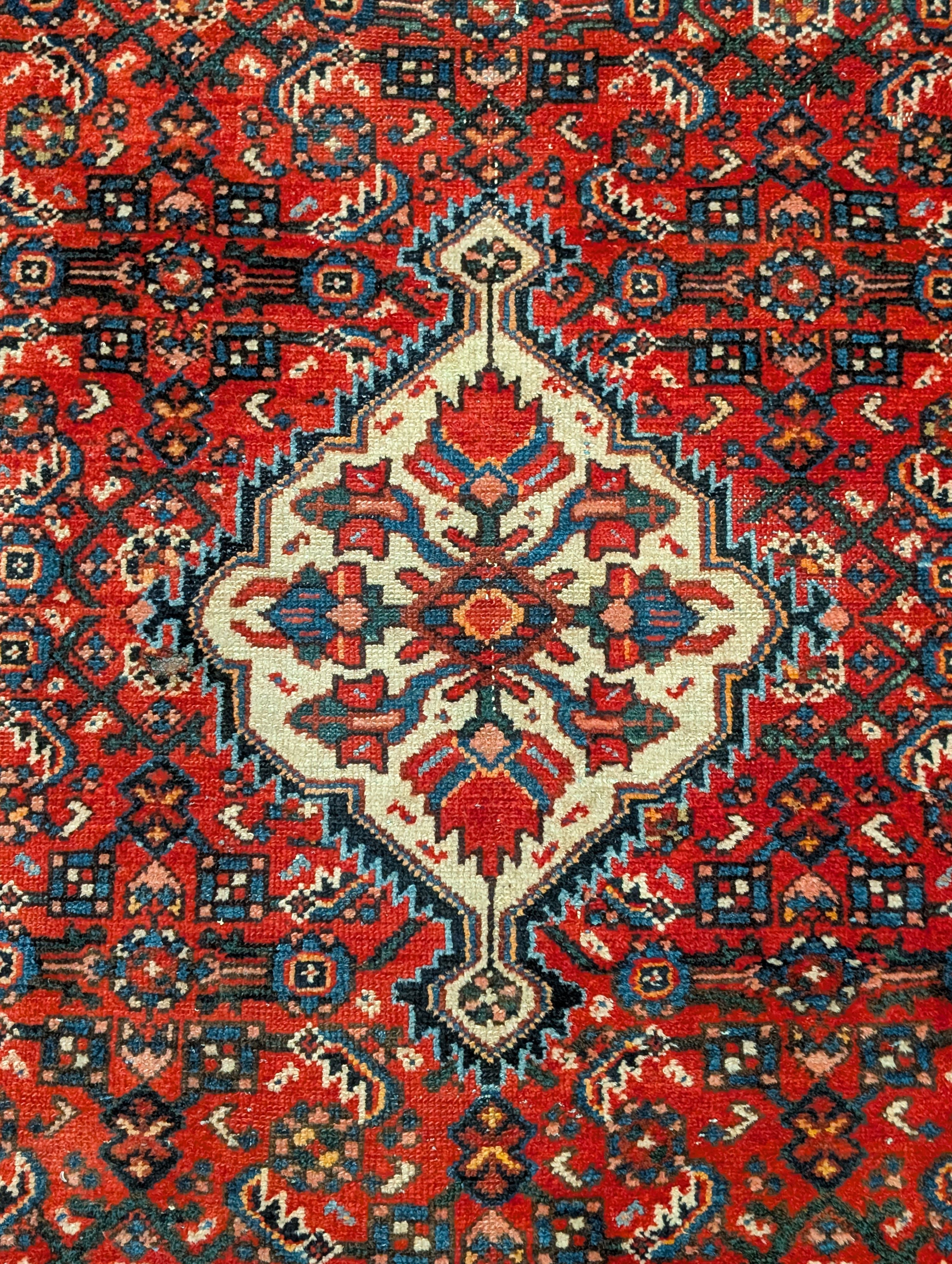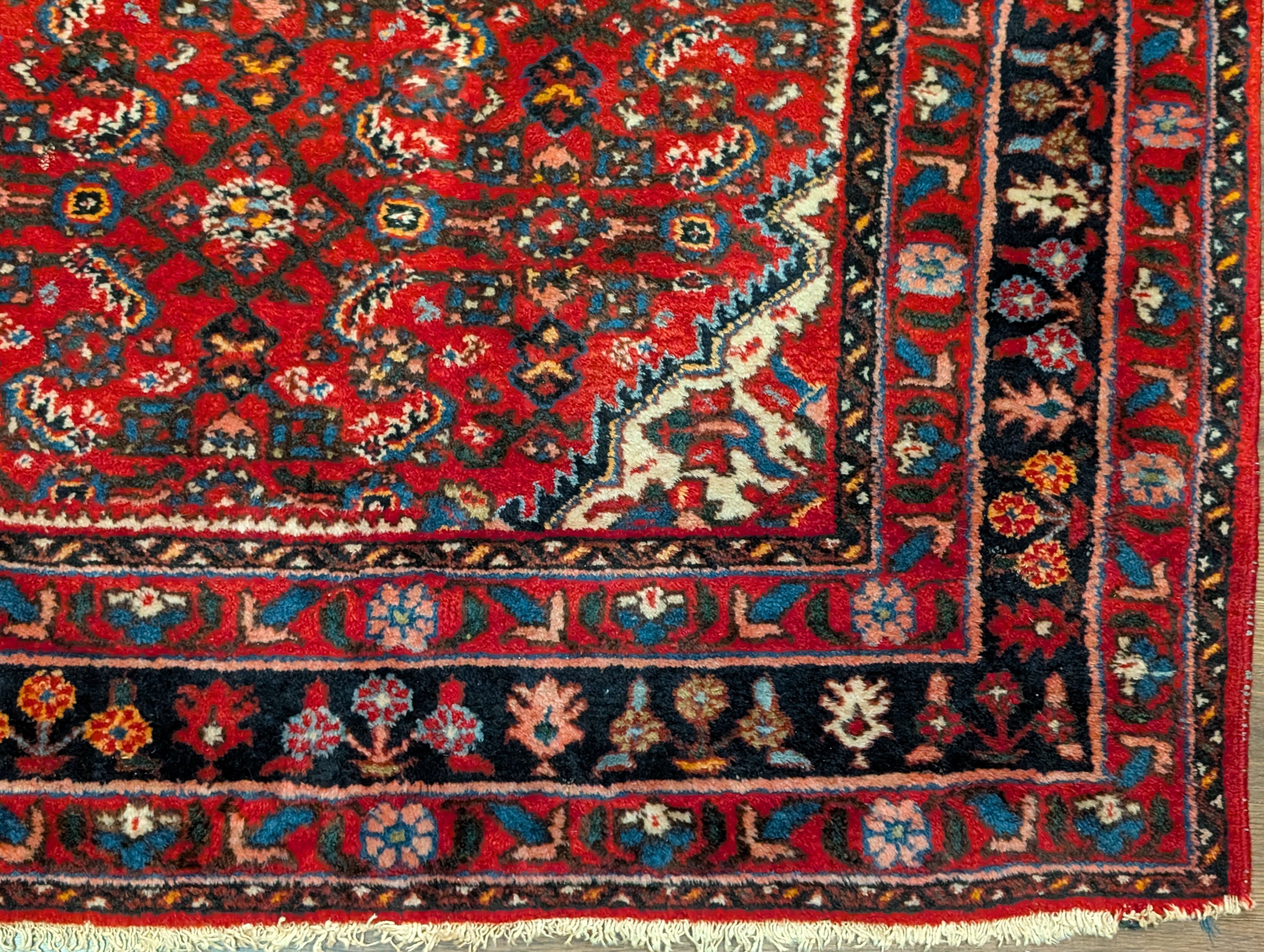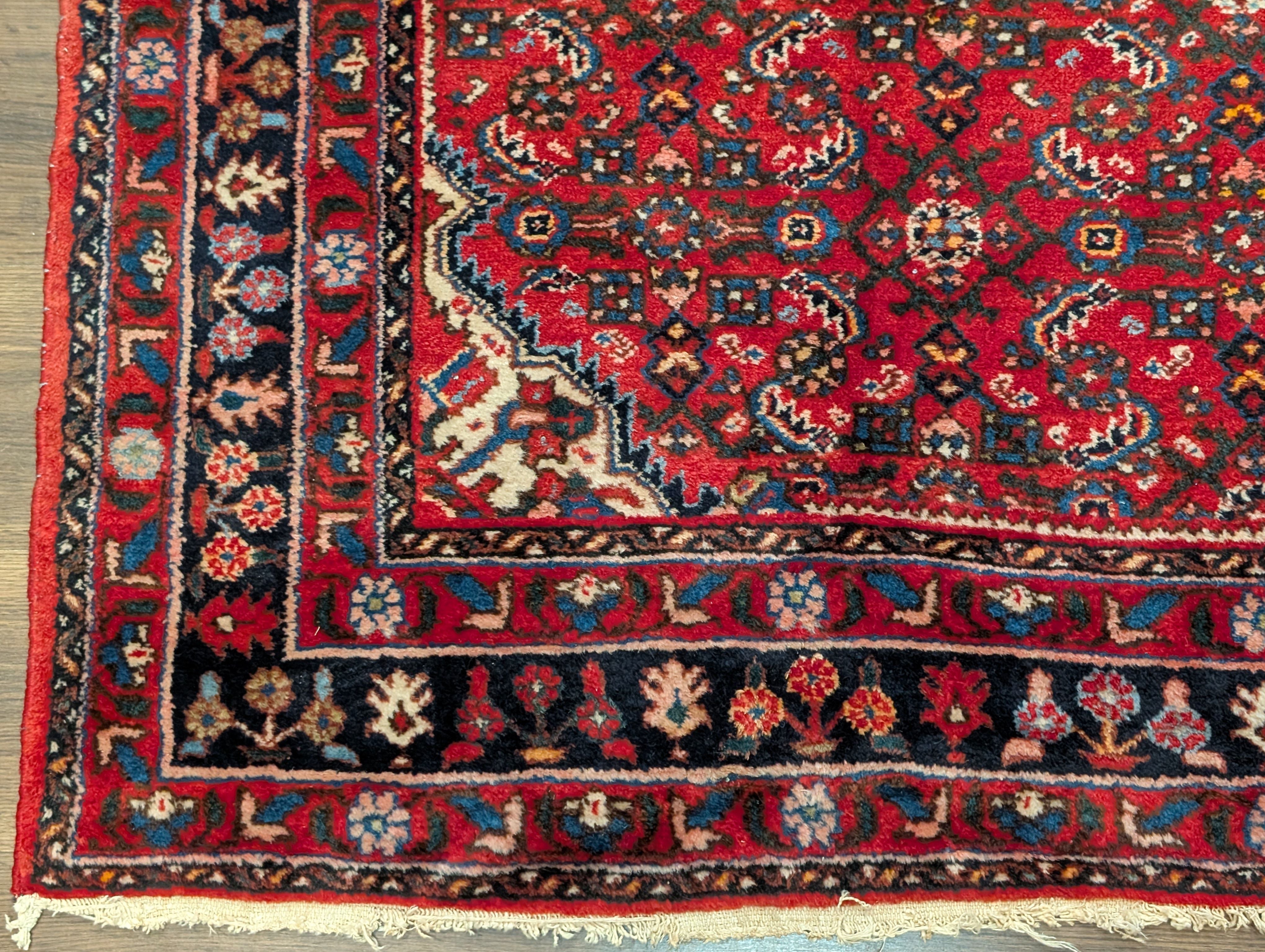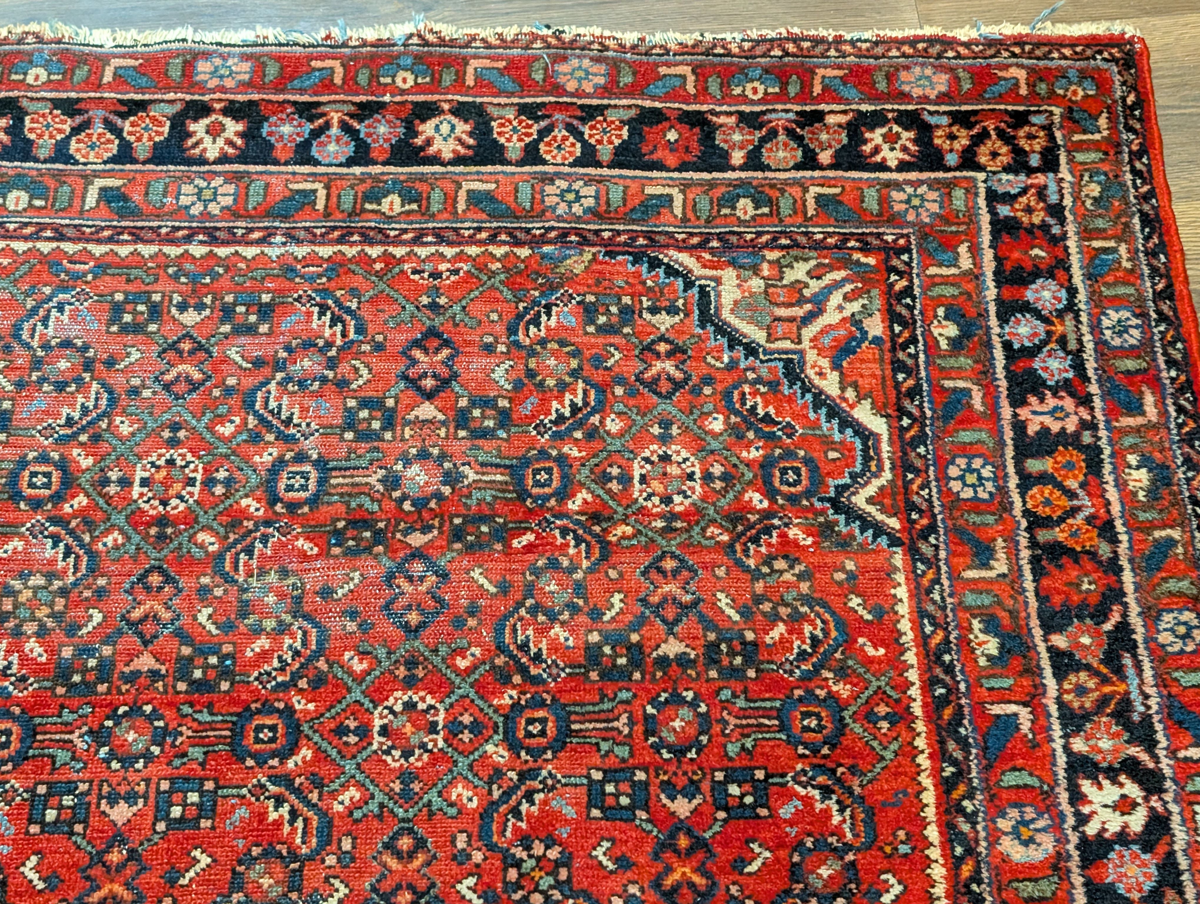 Antique Persian Hamadan Wide Runner Rug 5x10, Red, Handmade, Wool, Dargazin Carpet