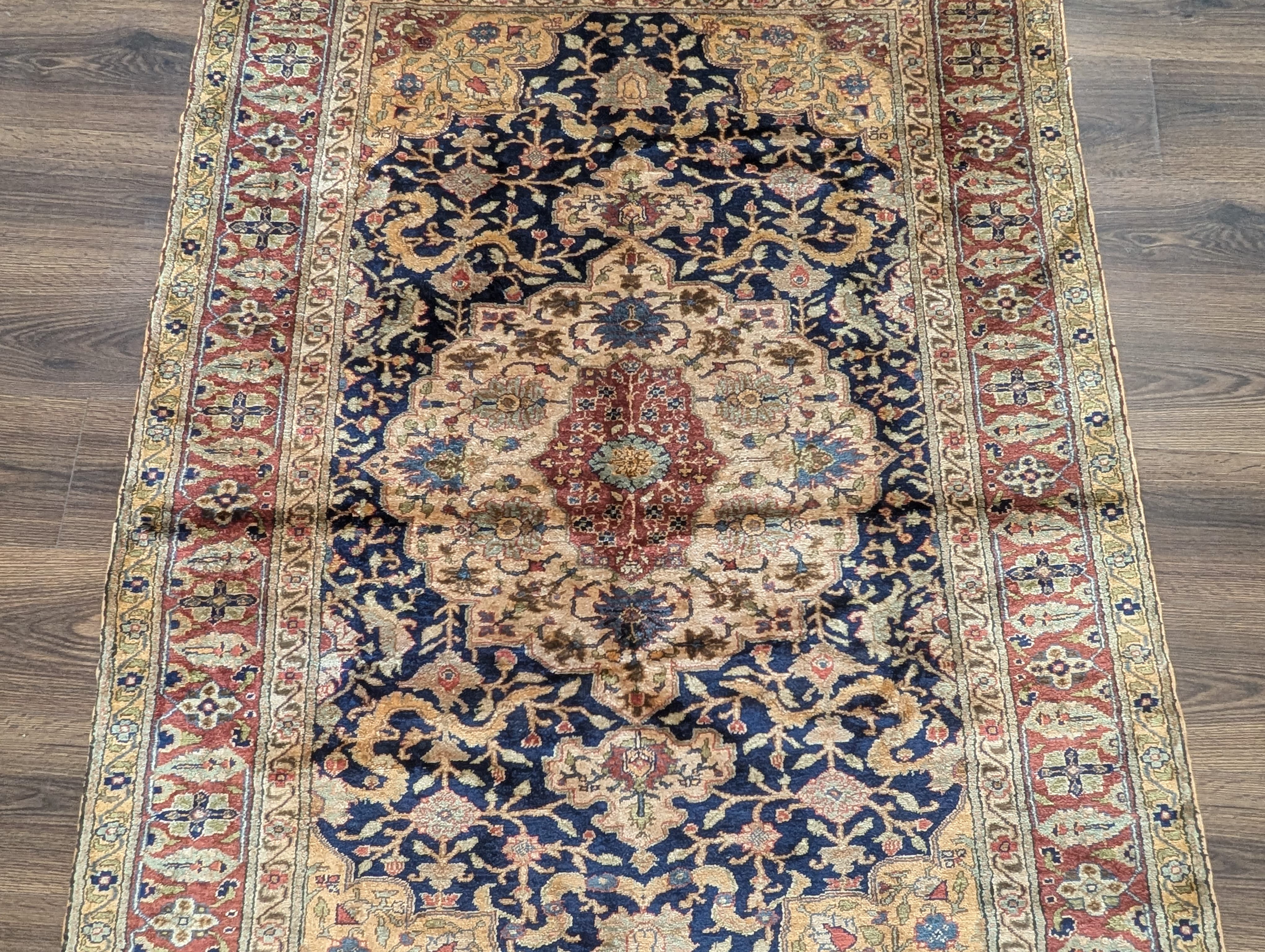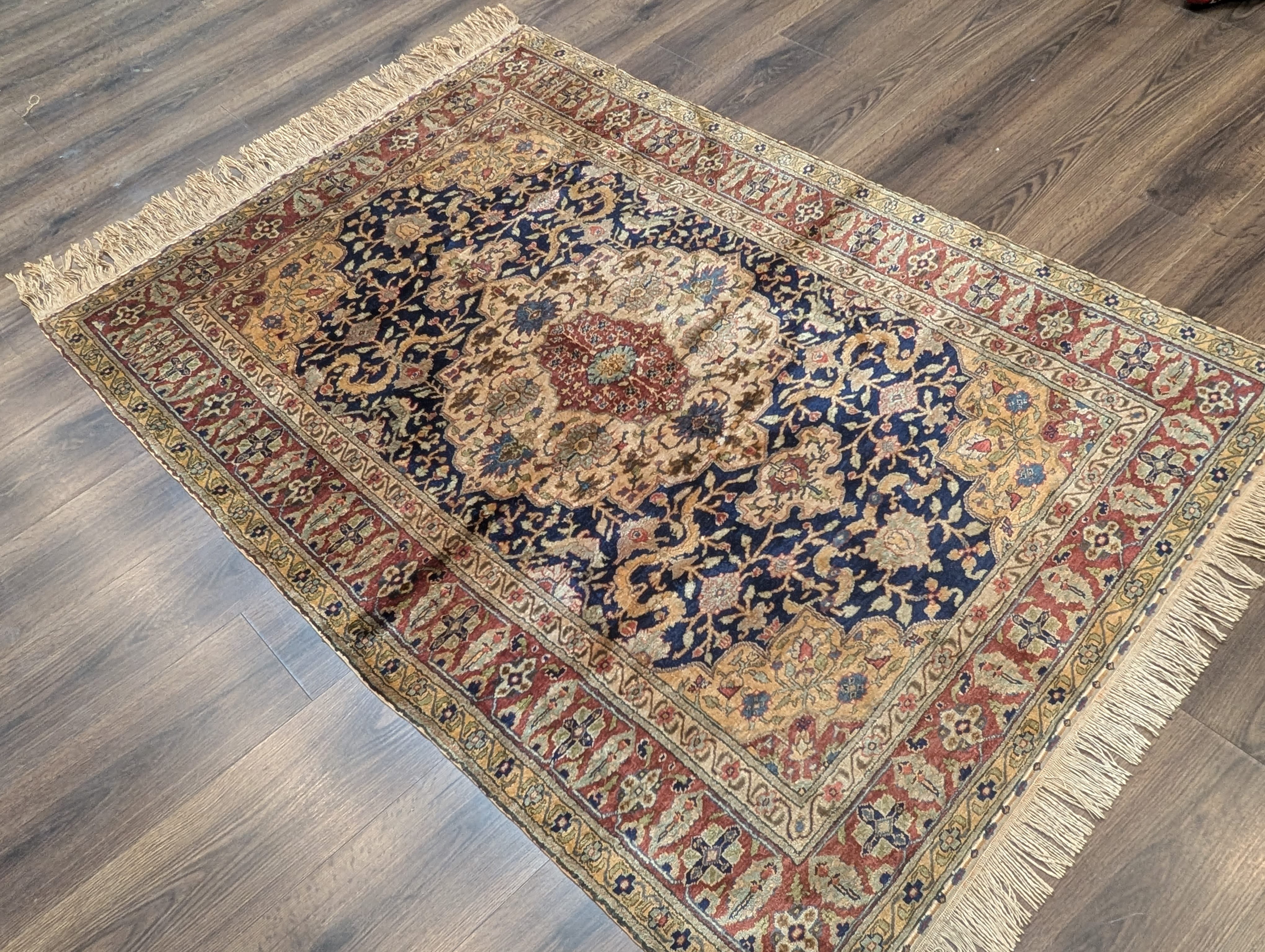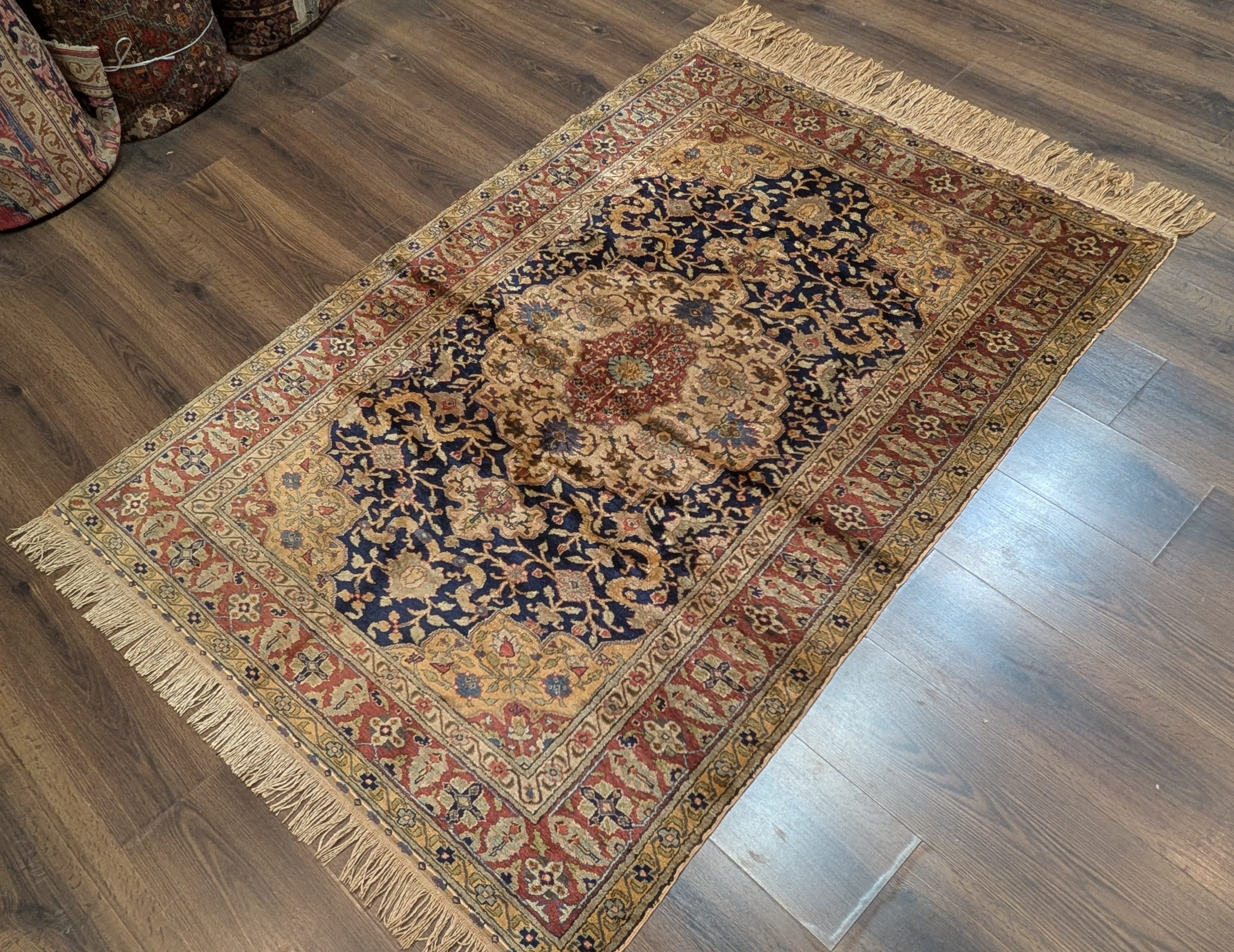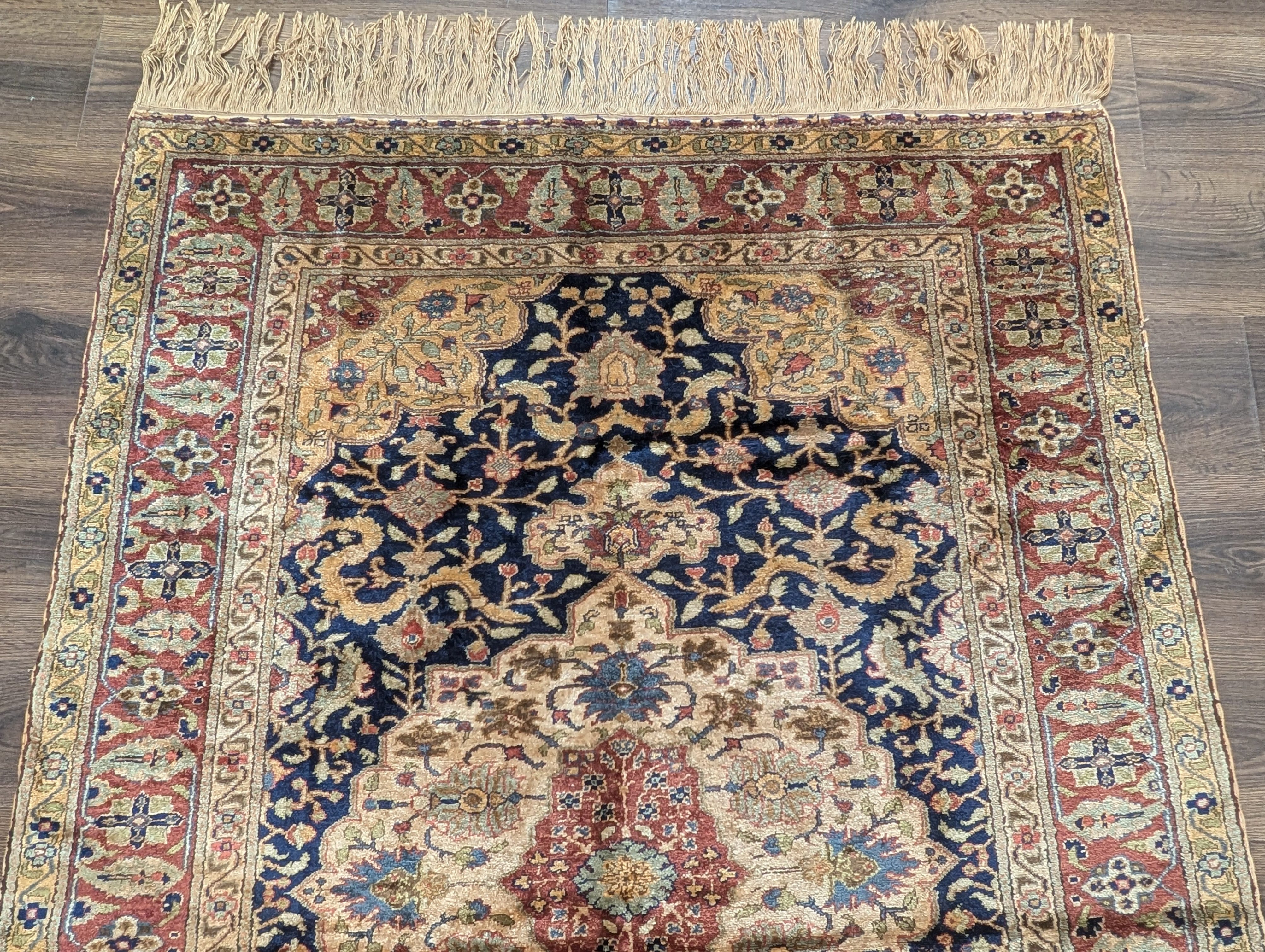 Antique Turkish Silk Rug 4x6, Navy Blue