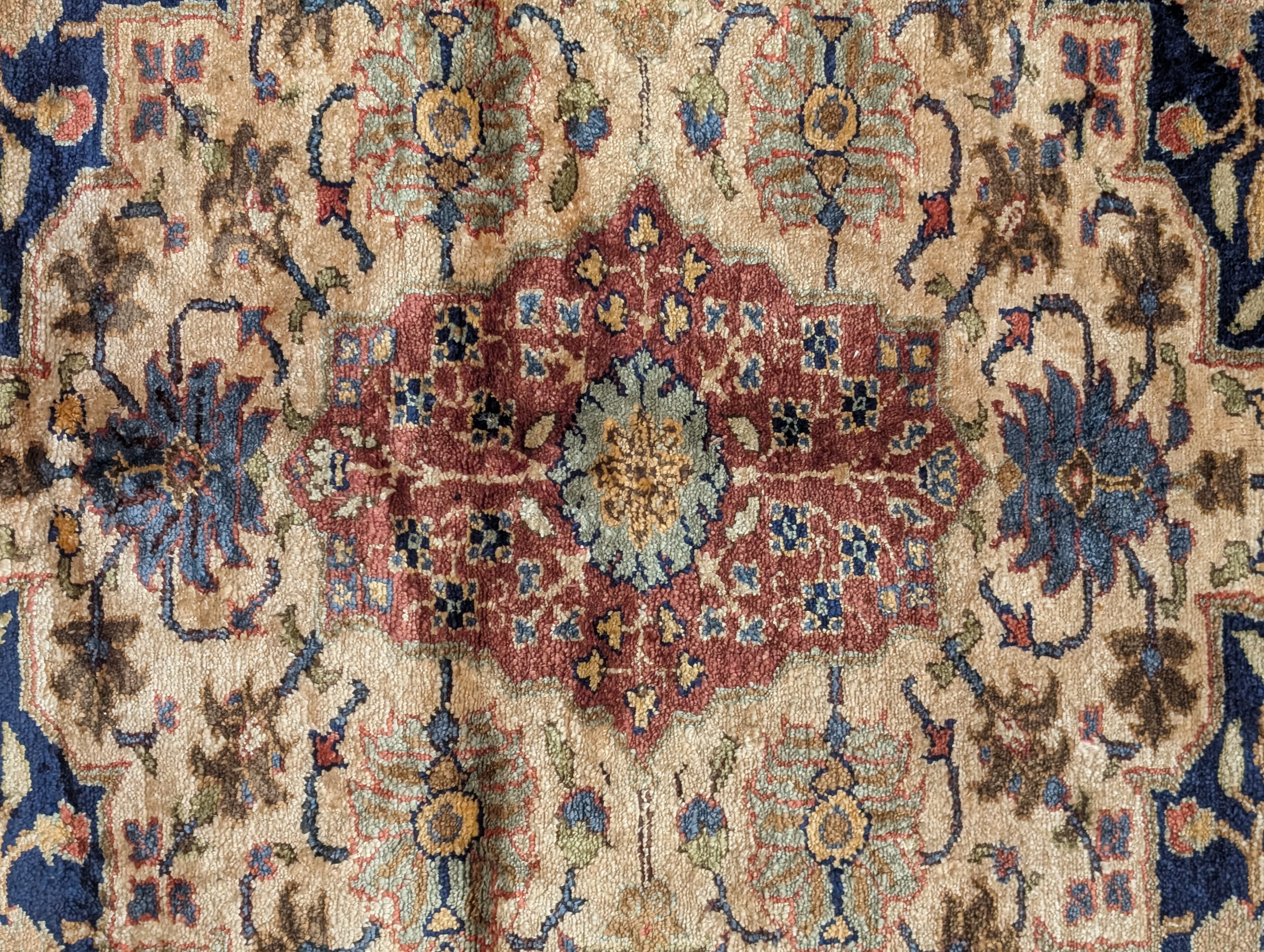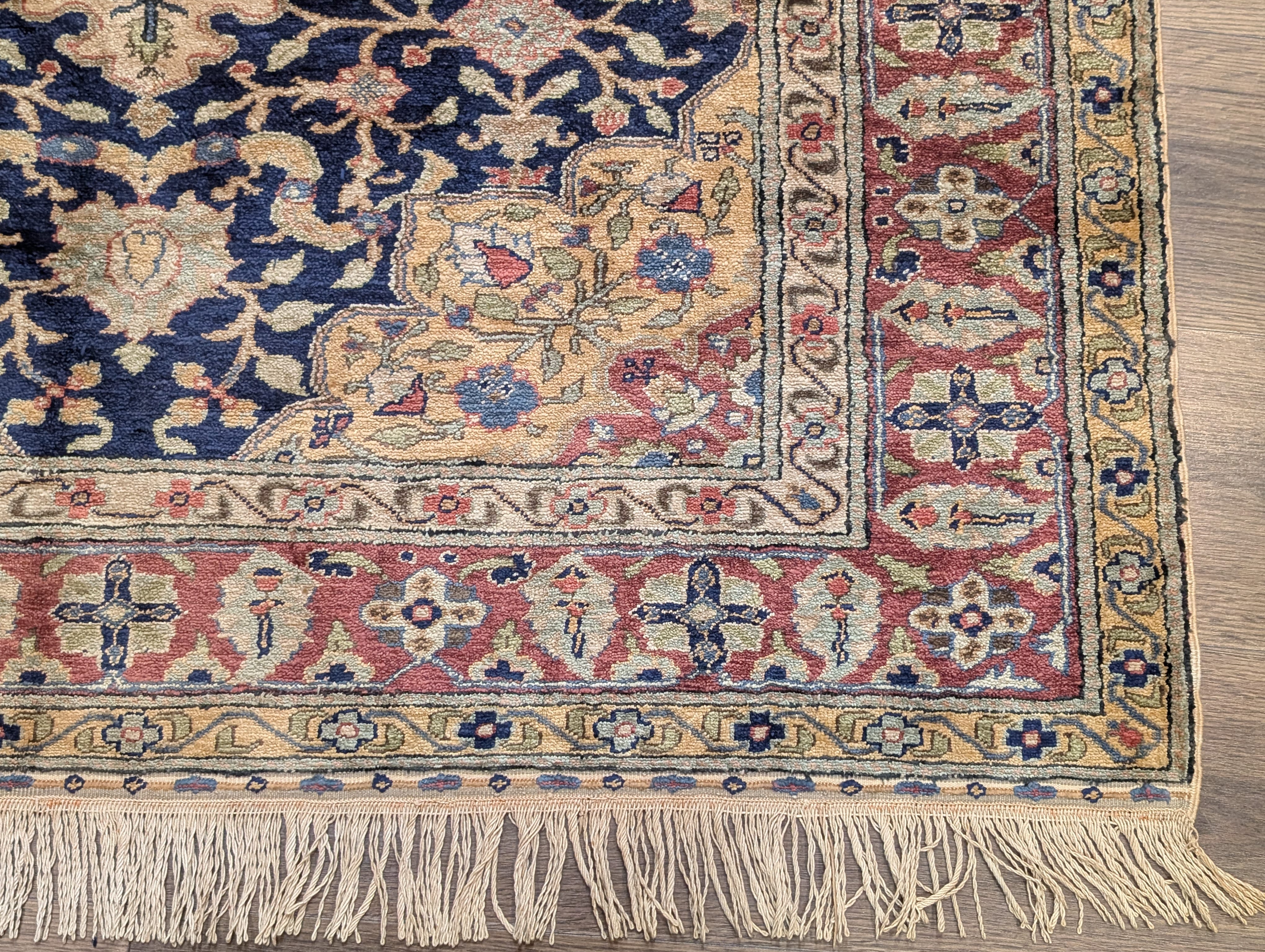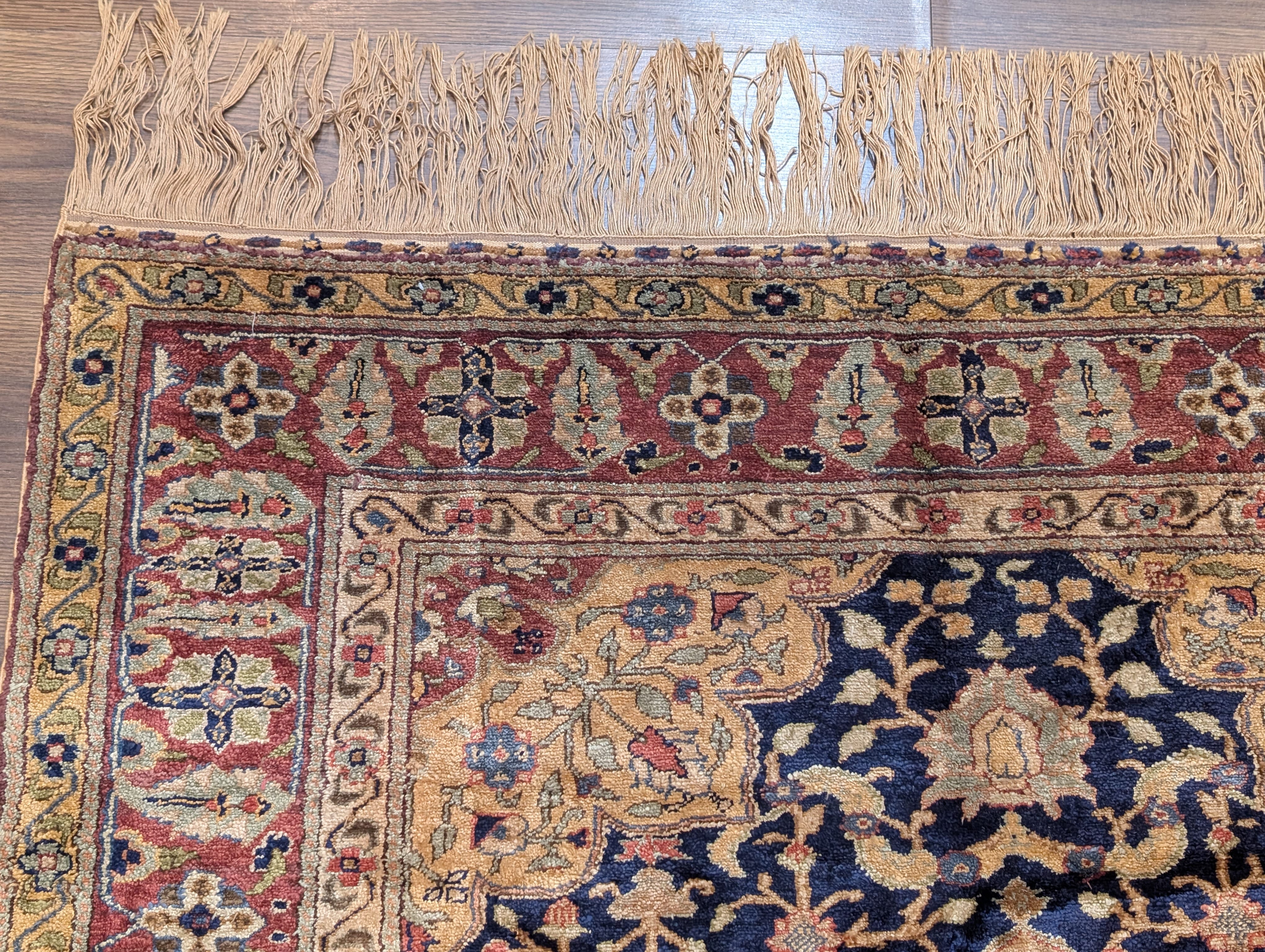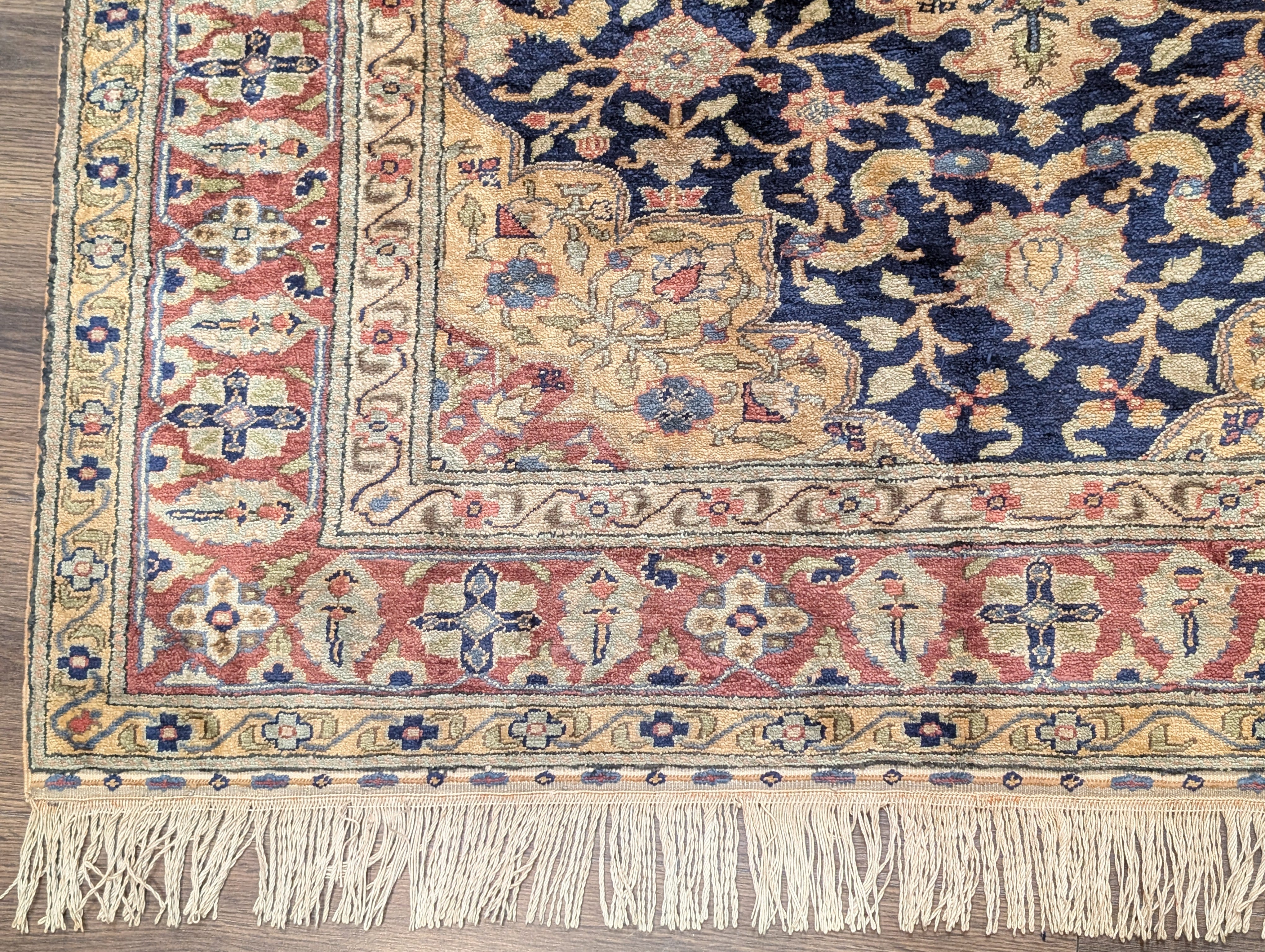 Antique Turkish Silk Rug 4x6, Navy Blue