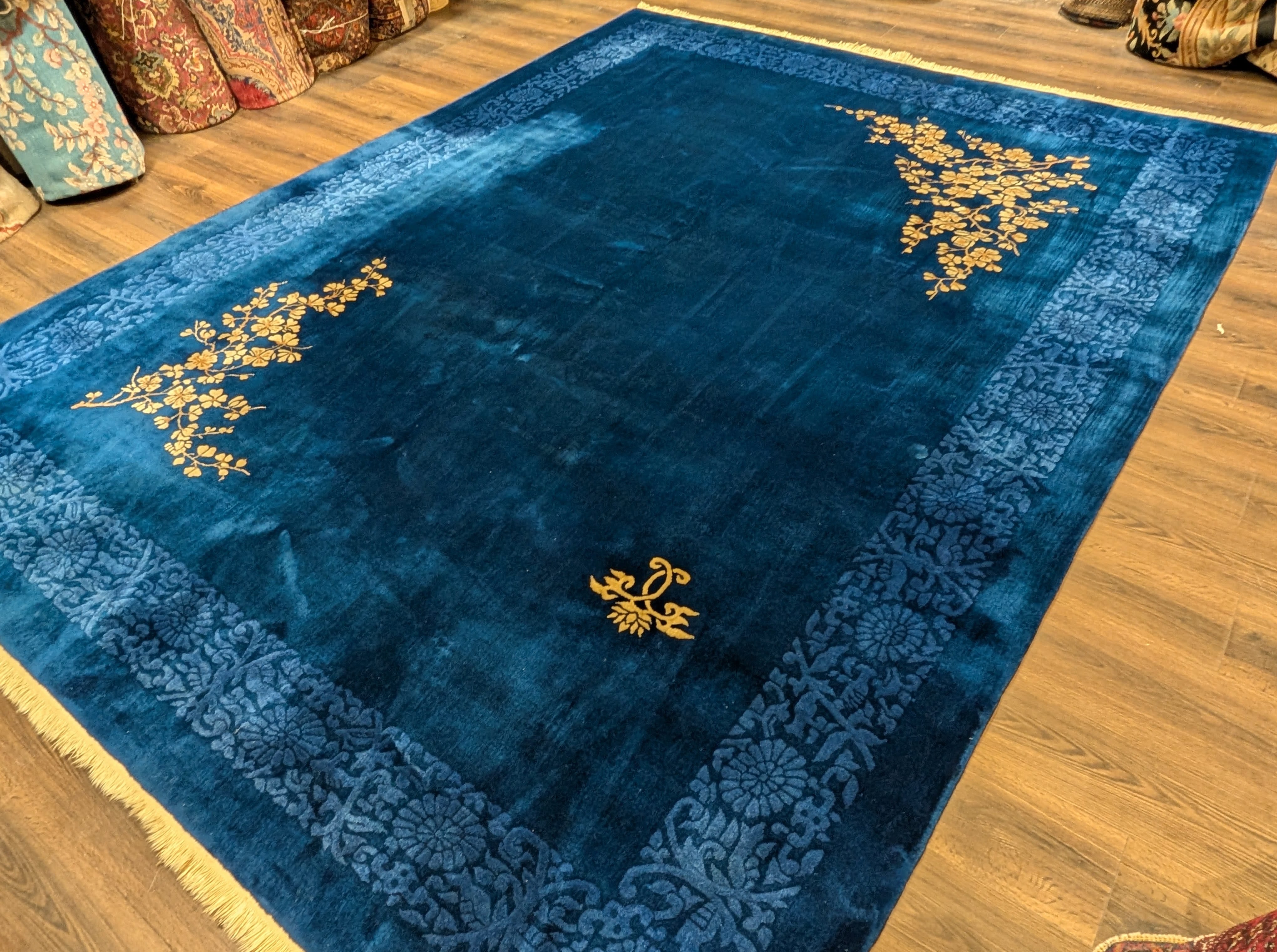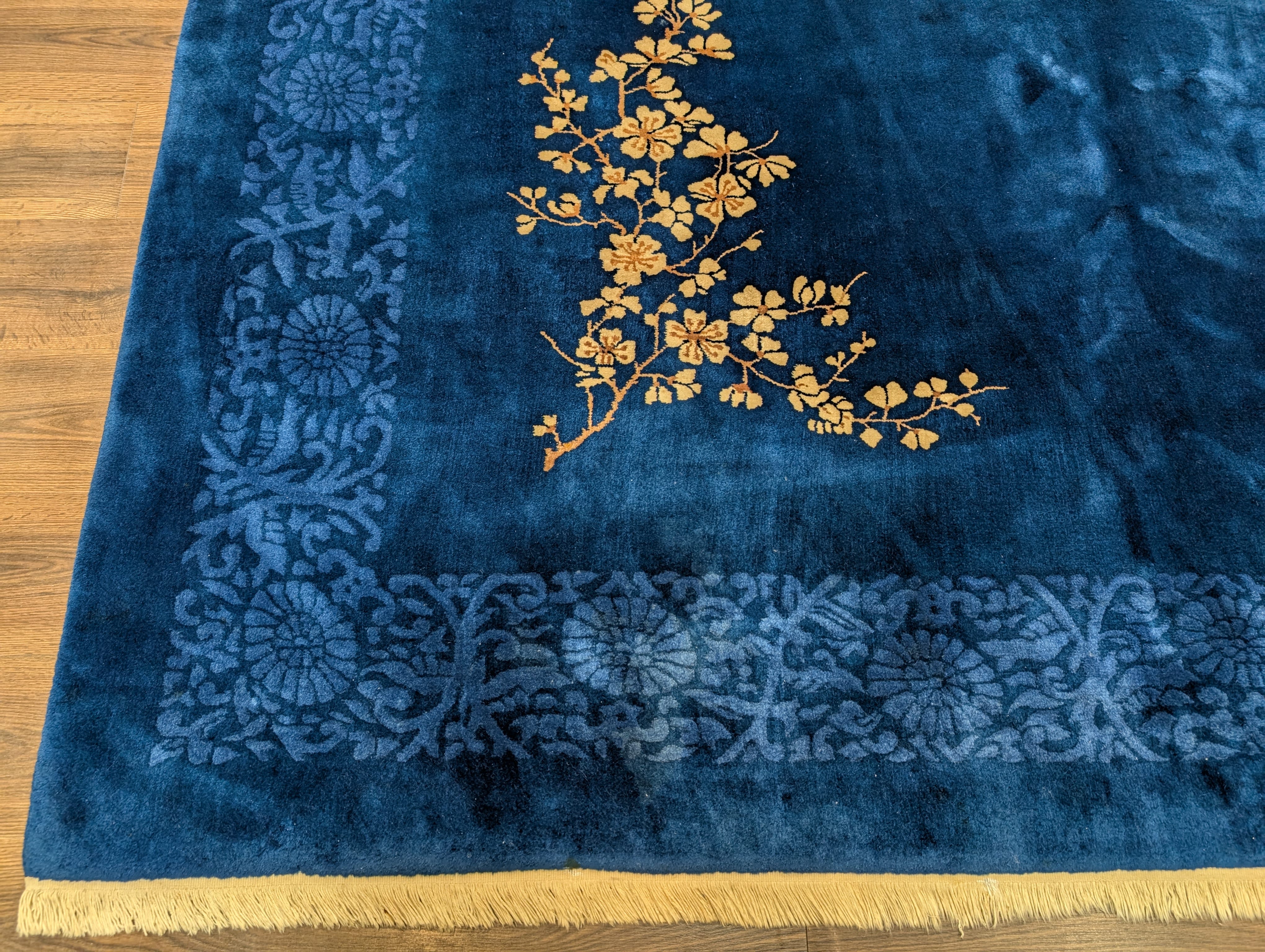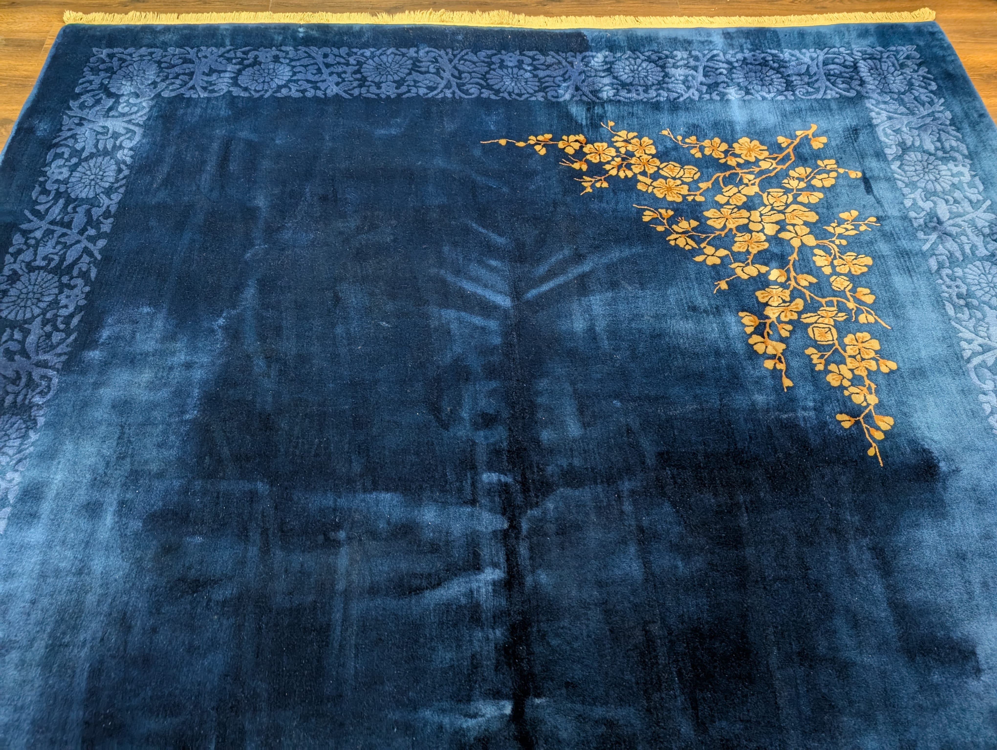 Blue Chinese Art Deco Rug 9x12, Nichols Carpet, Chinese Wool Rug