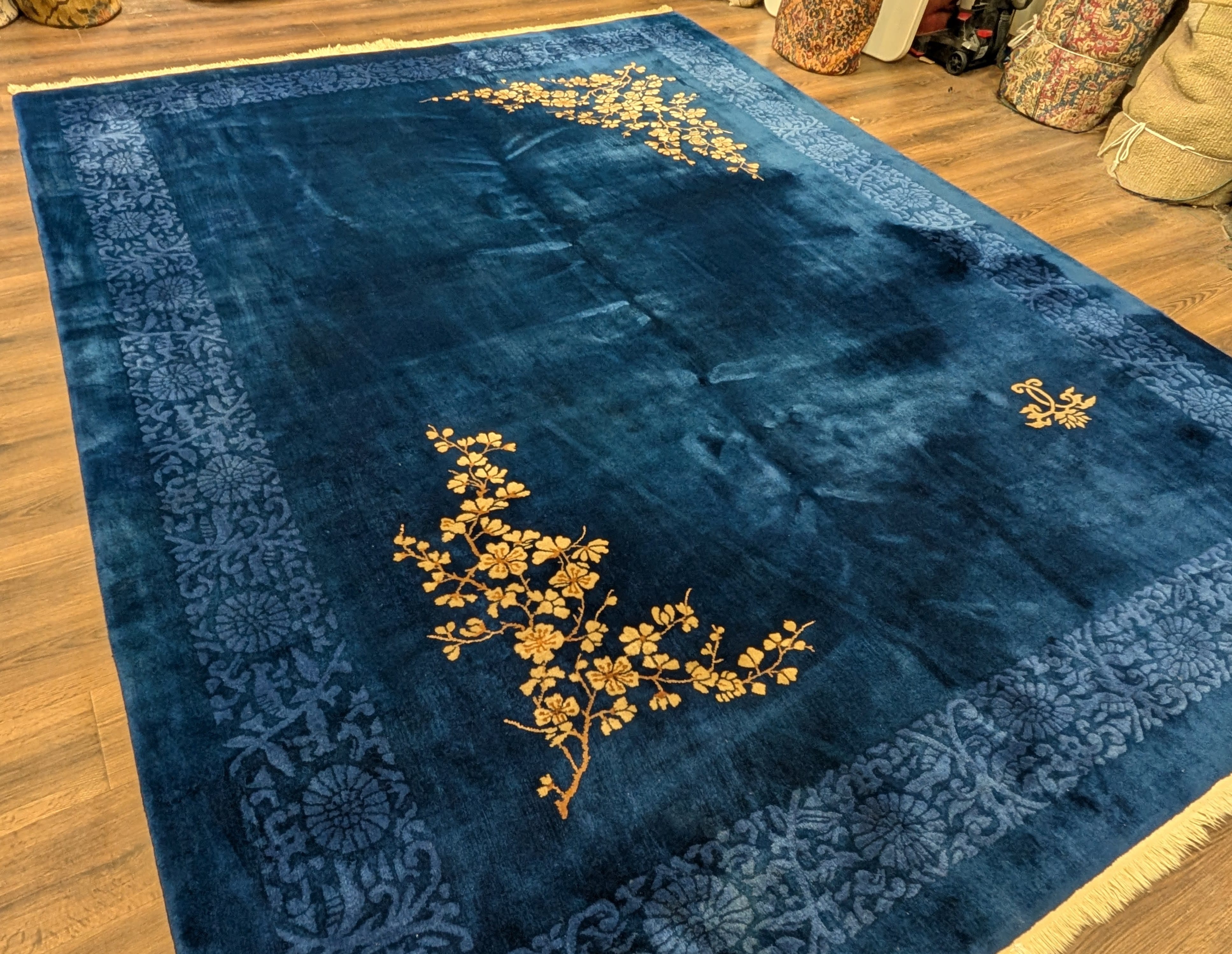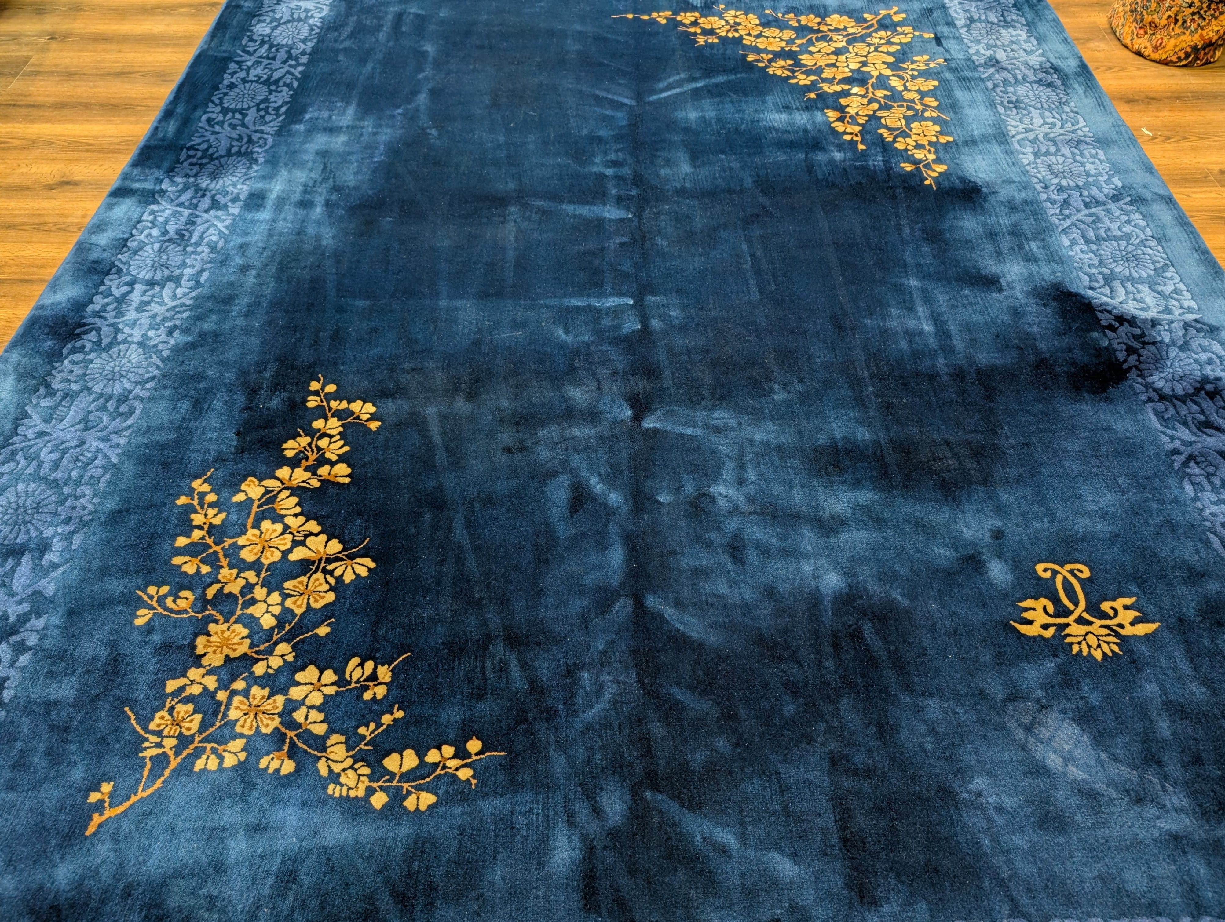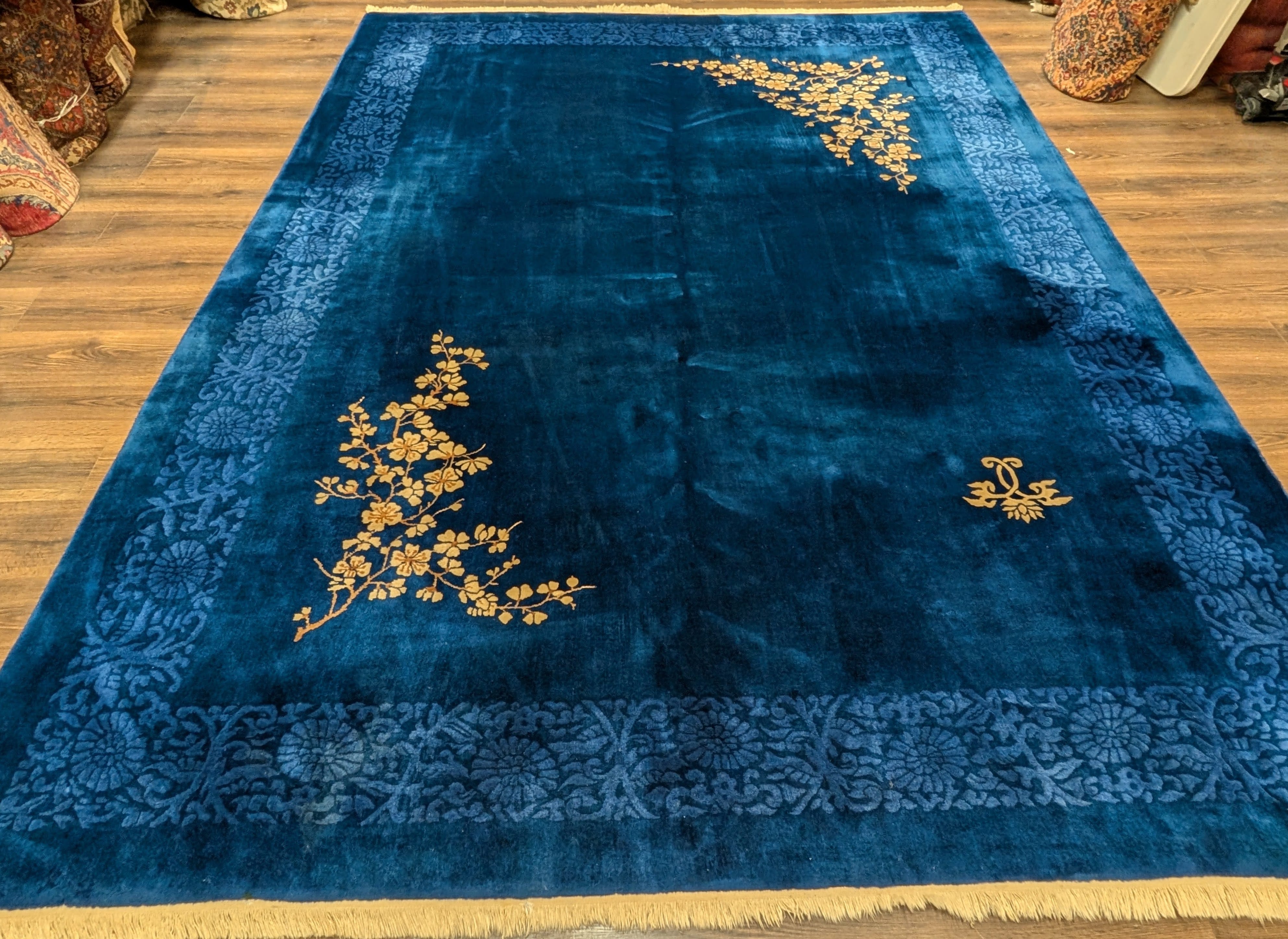 Blue Chinese Art Deco Rug 9x12, Nichols Carpet, Chinese Wool Rug