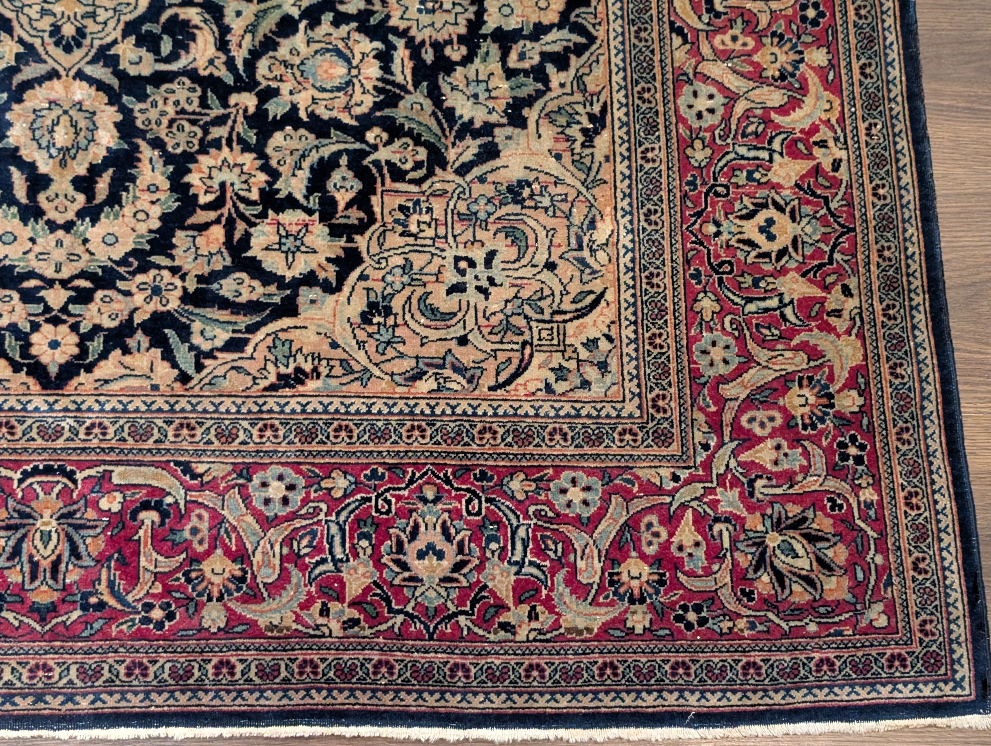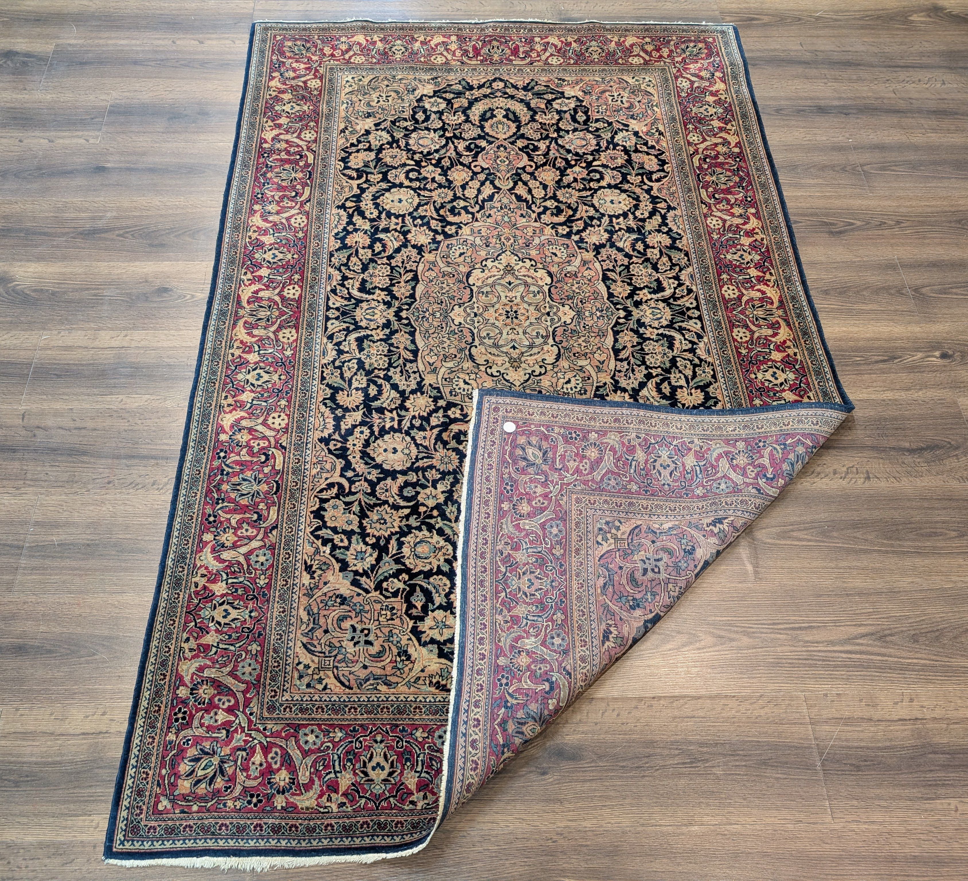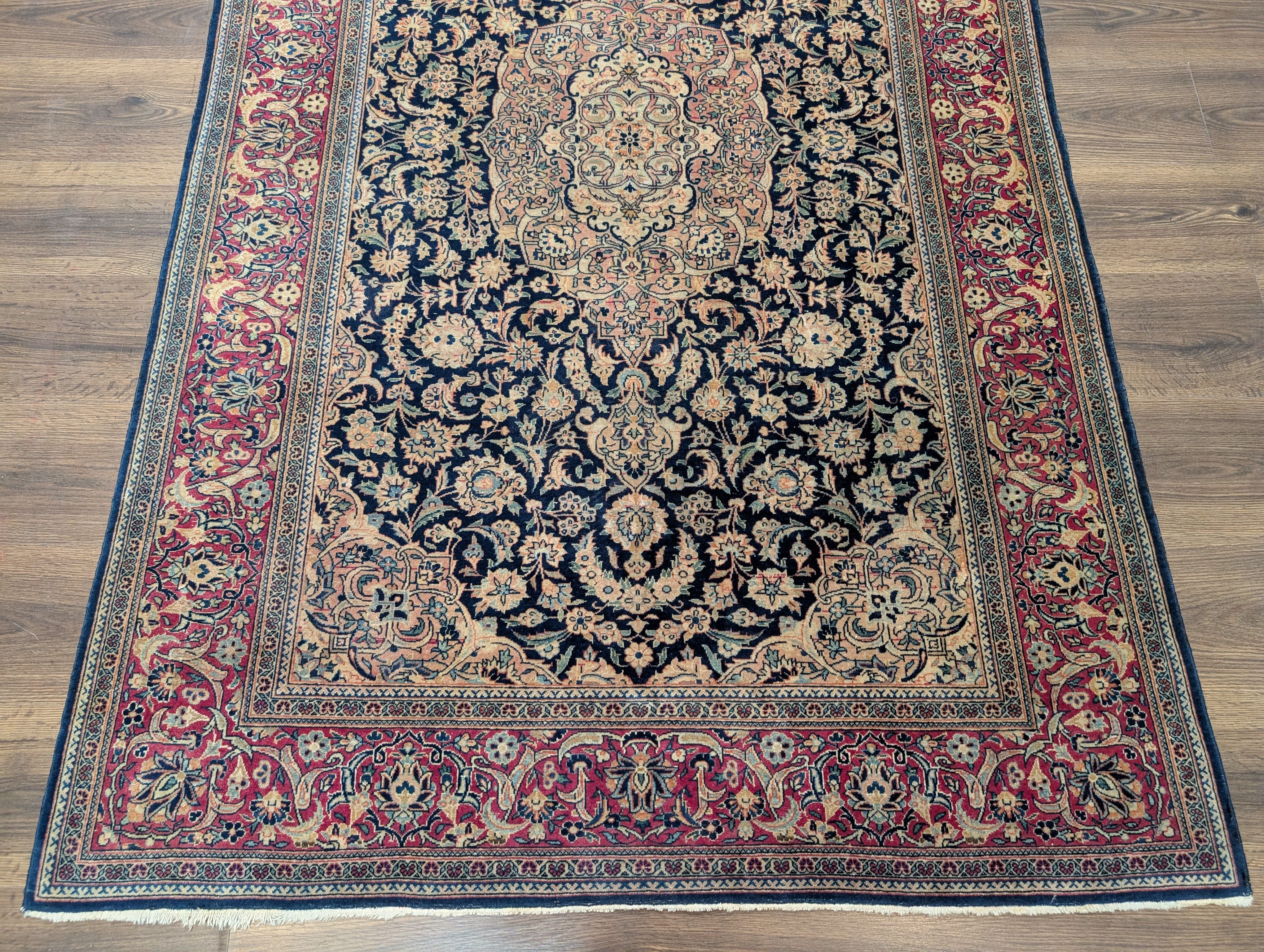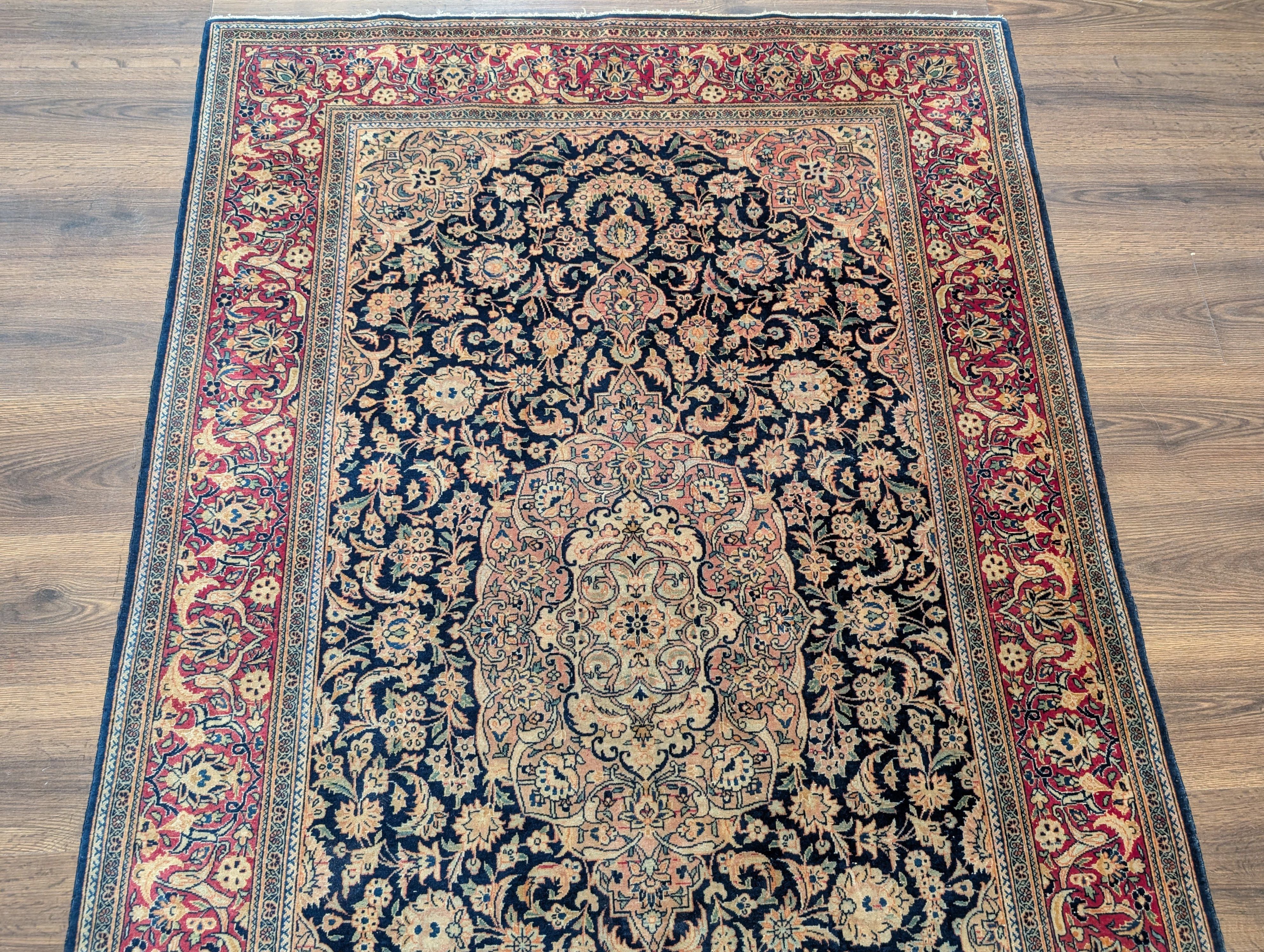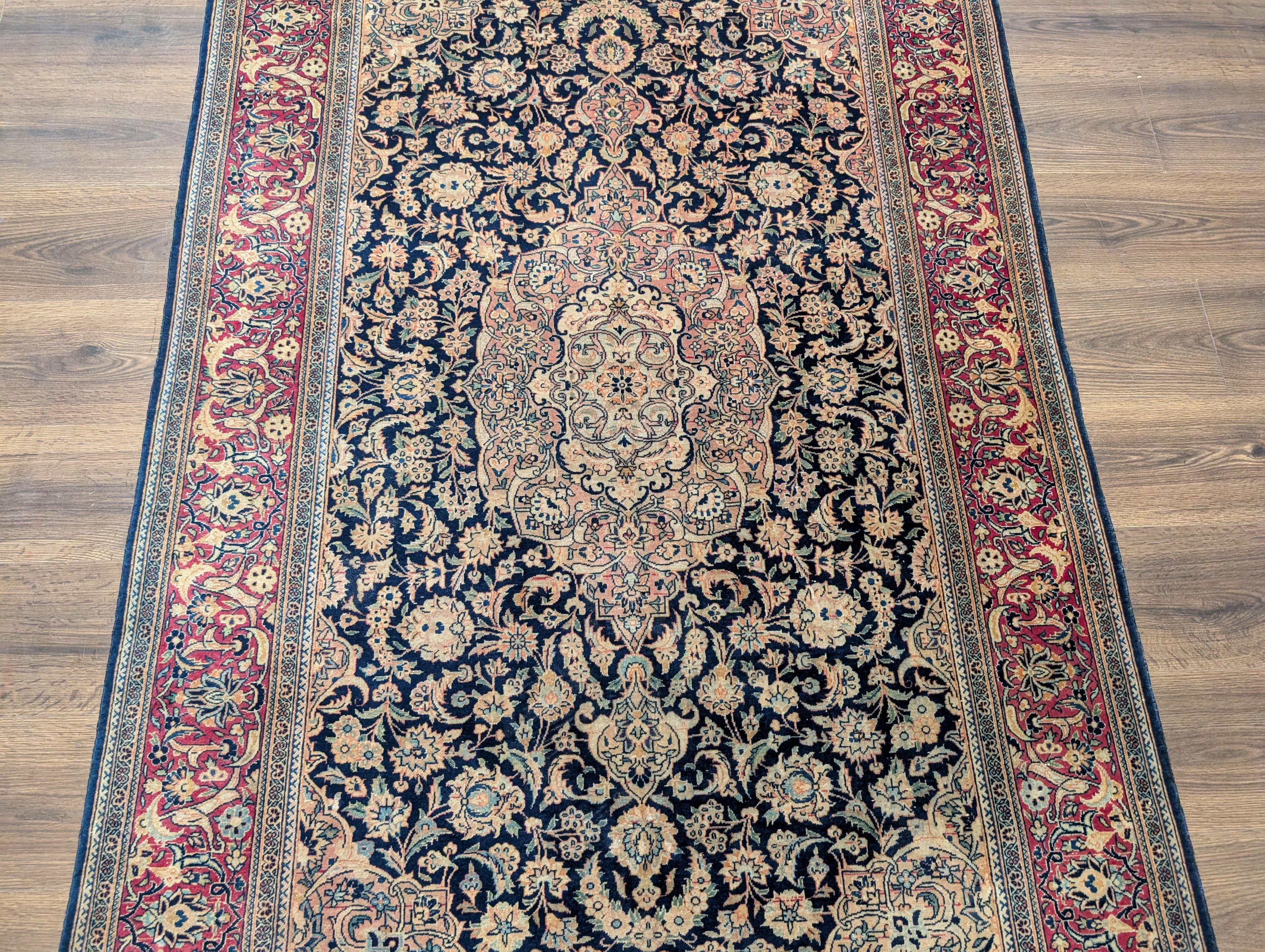 Blue Persian Kashan Rug 4x7, Fine 320 KPSI, Wool, Handmade, Antique