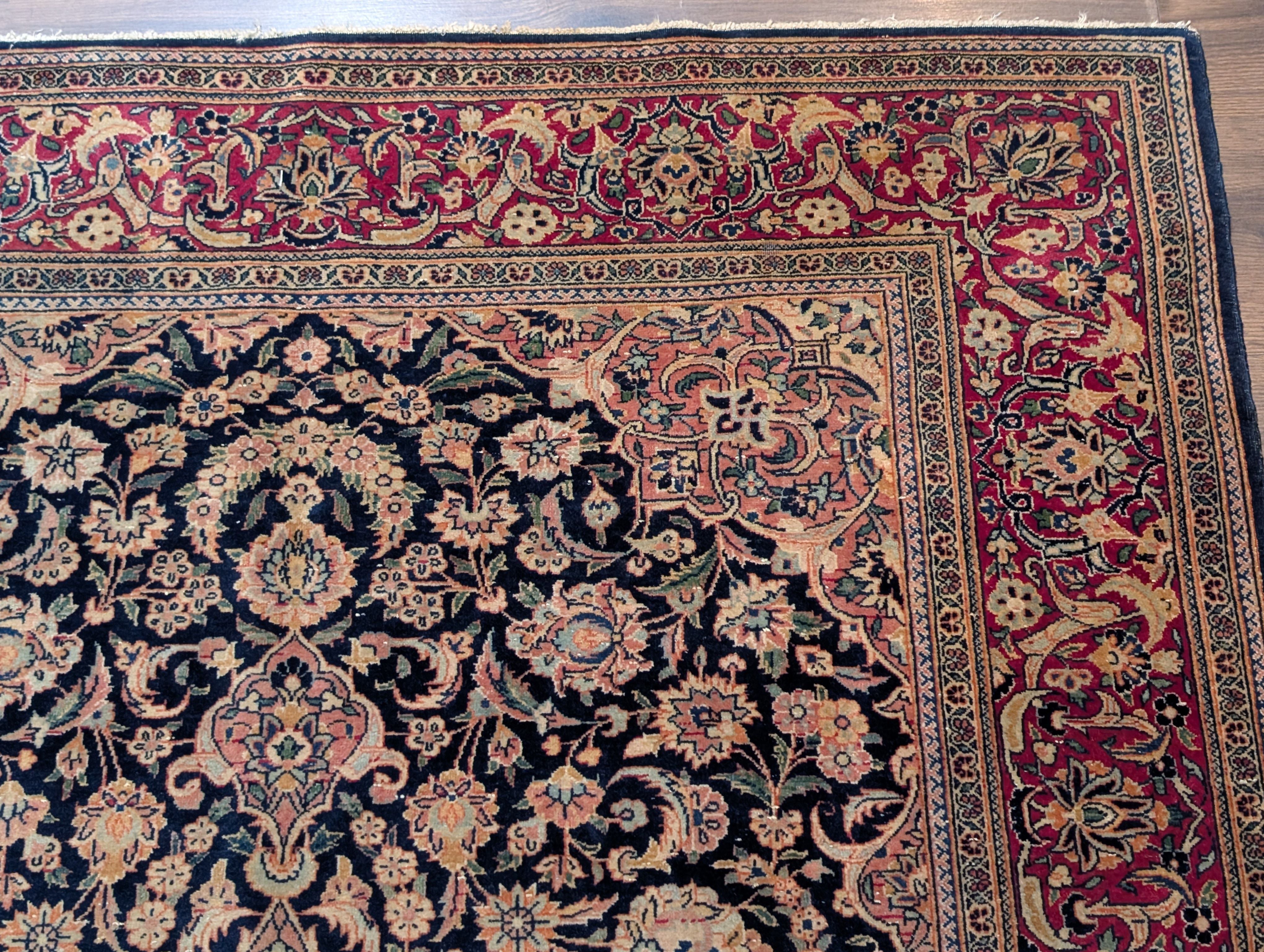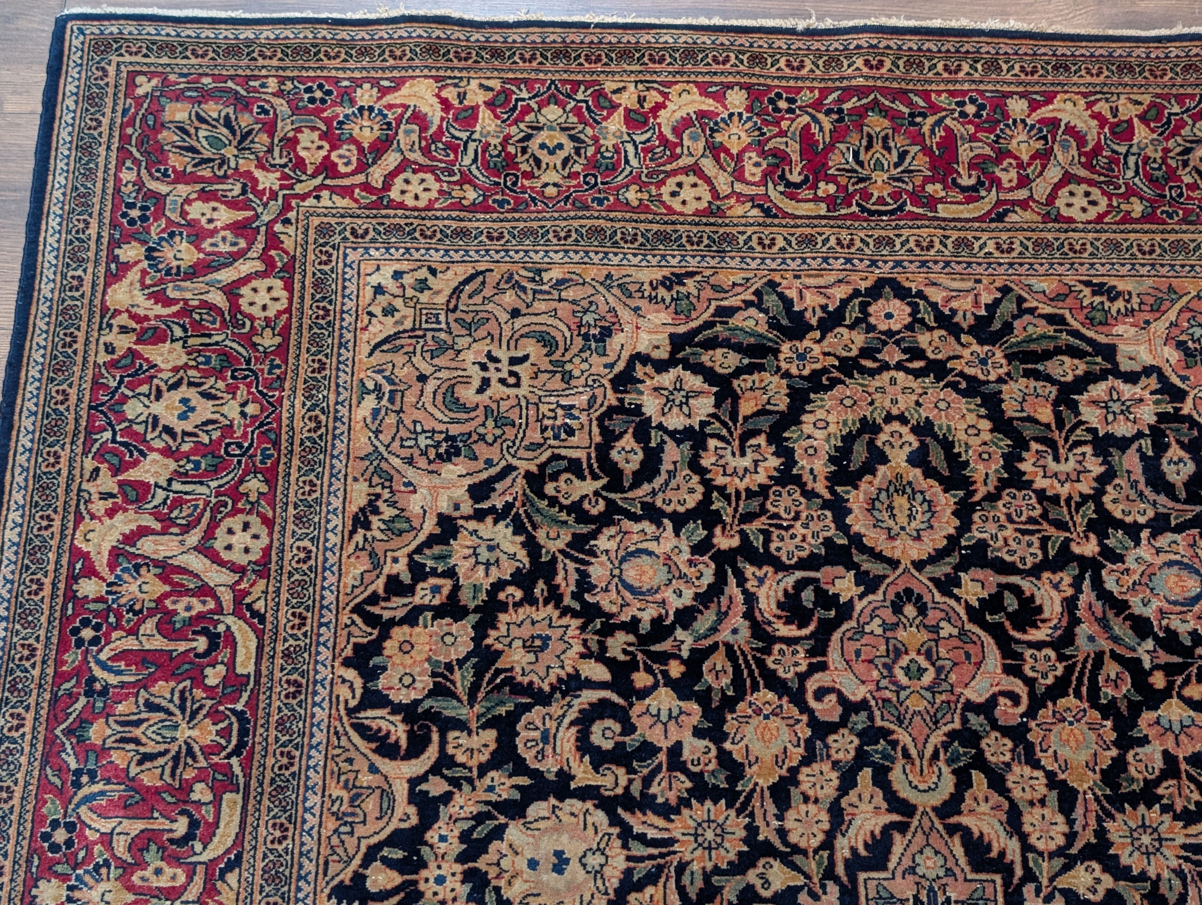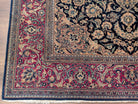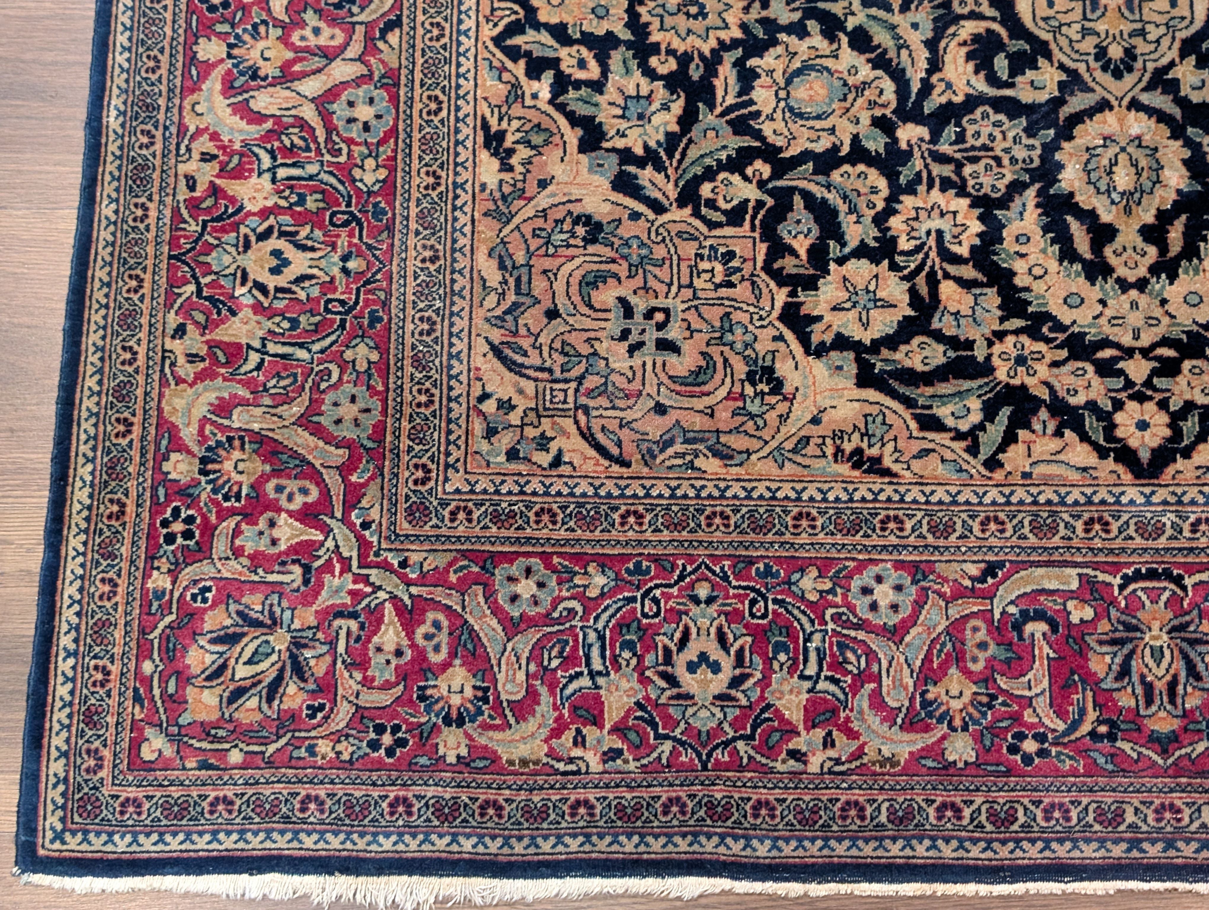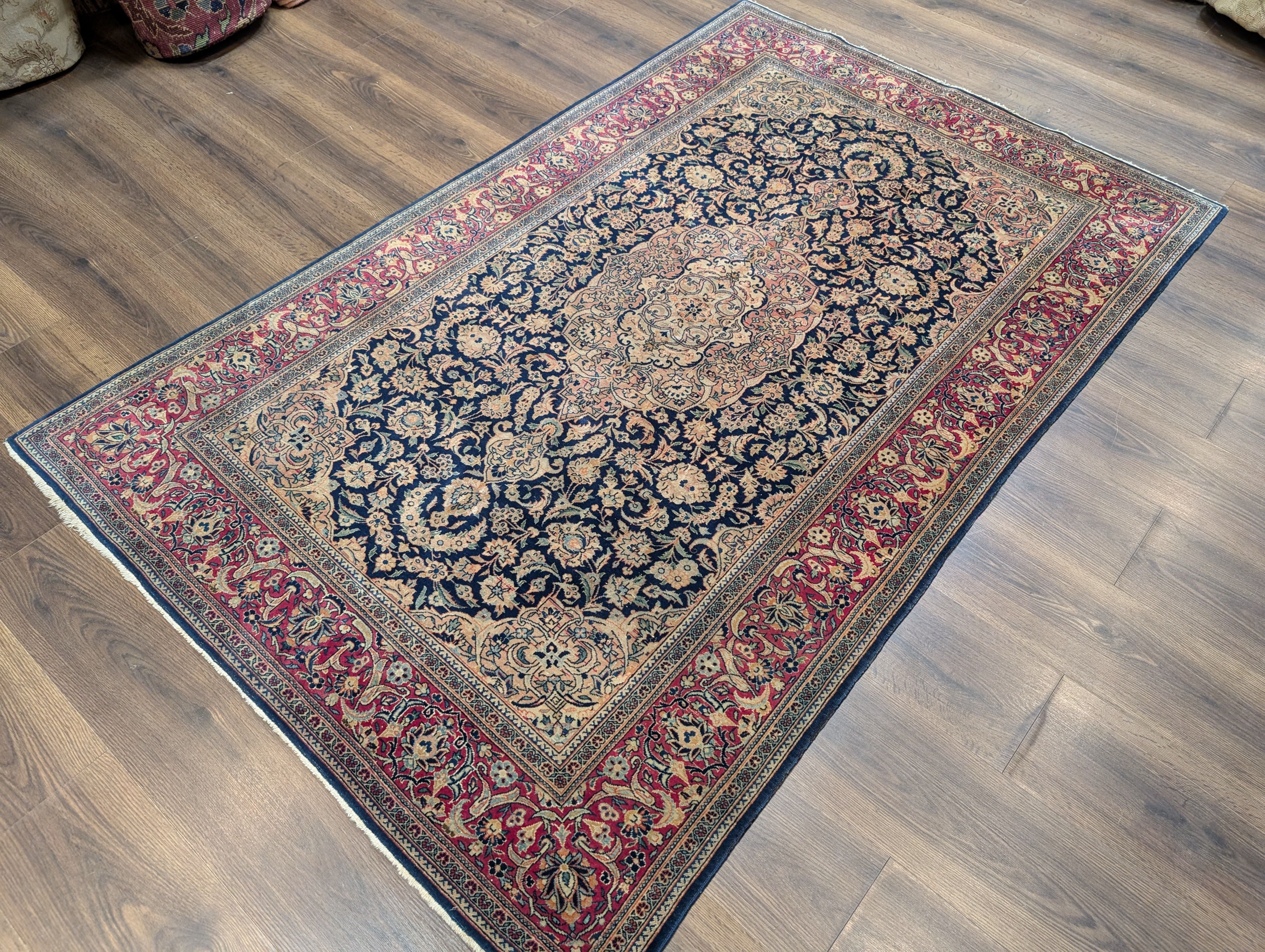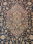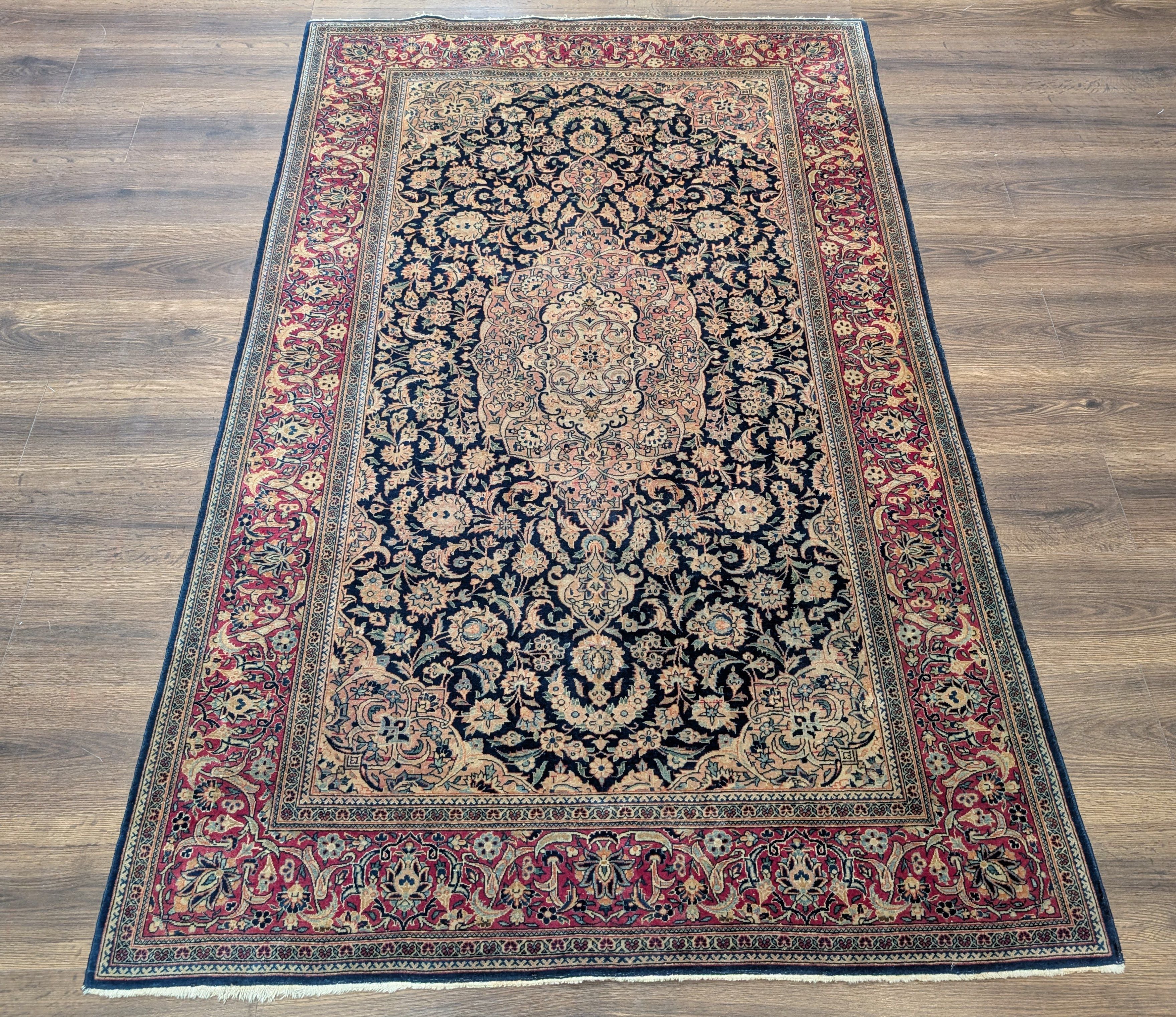 Blue Persian Kashan Rug 4x7, Fine 320 KPSI, Wool, Handmade, Antique