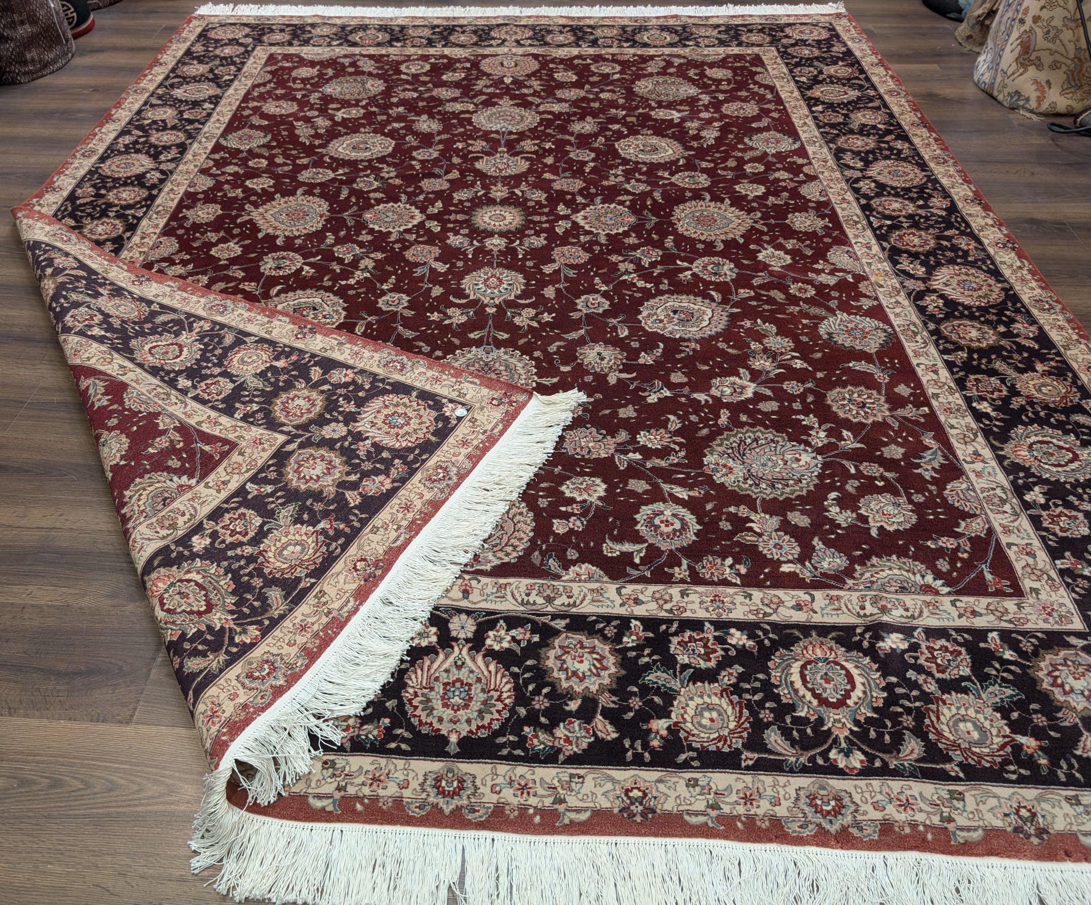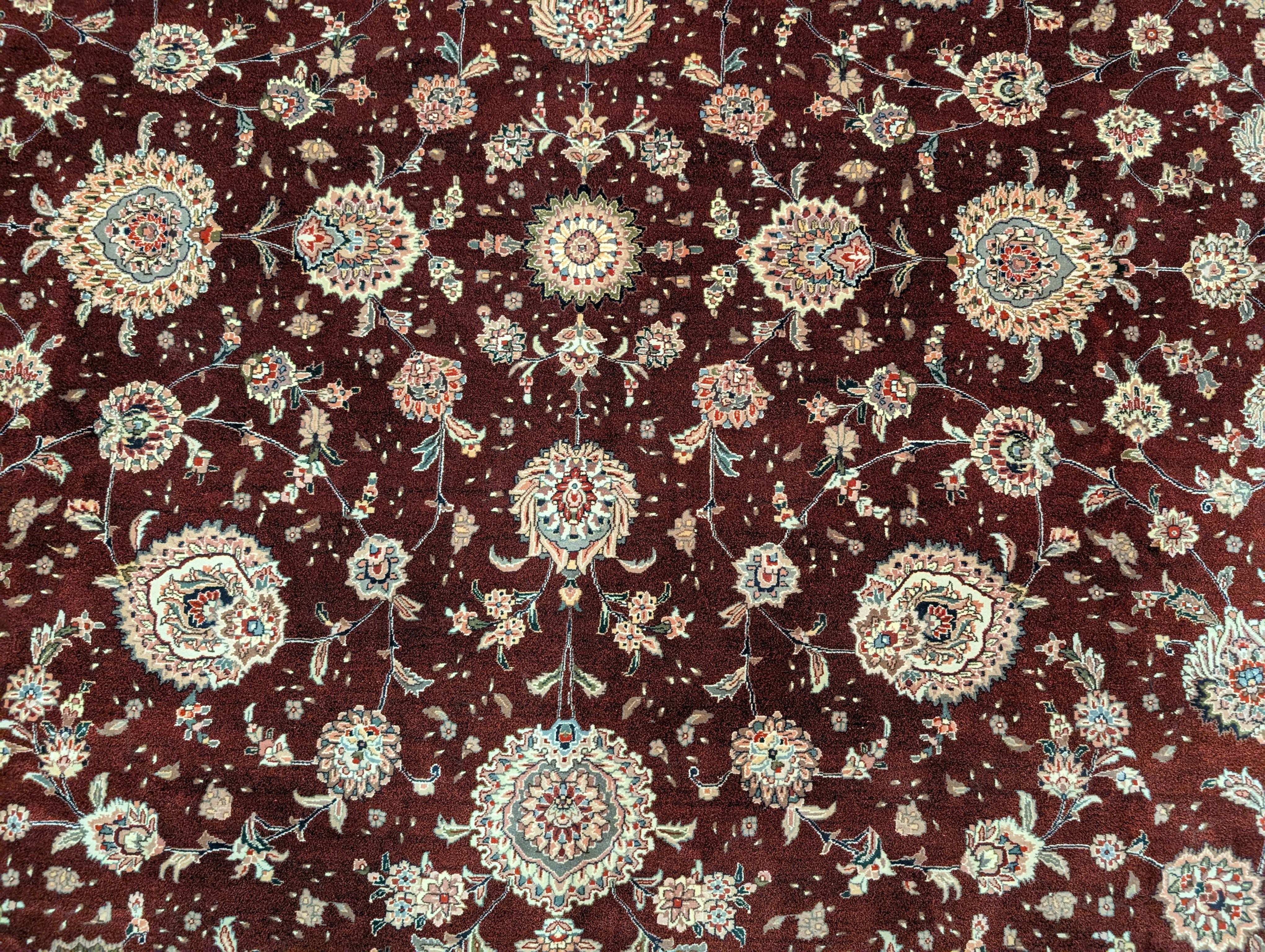 Burgundy Sino Persian Rug 8x10, Fine 320 KPSI, Allover Pattern, Handmade