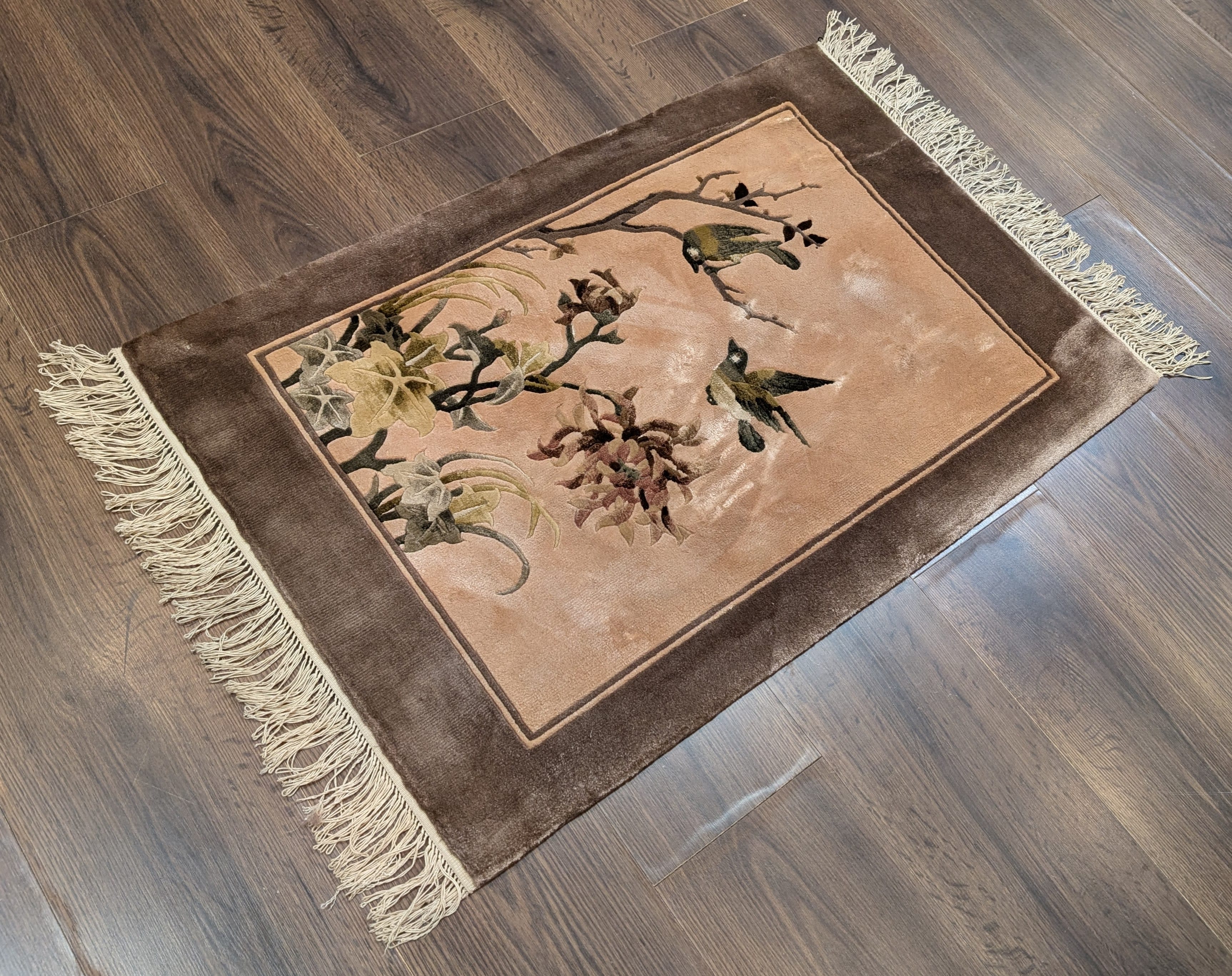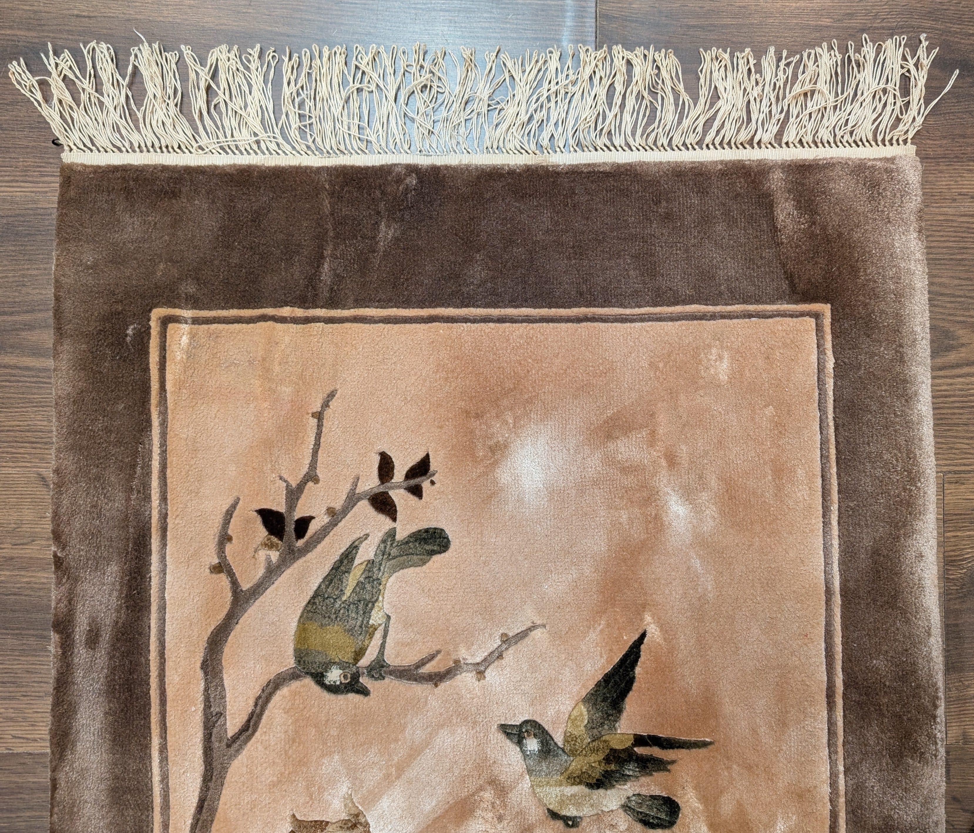Chinese Silk Rug 2x3, Pictorial, Birds