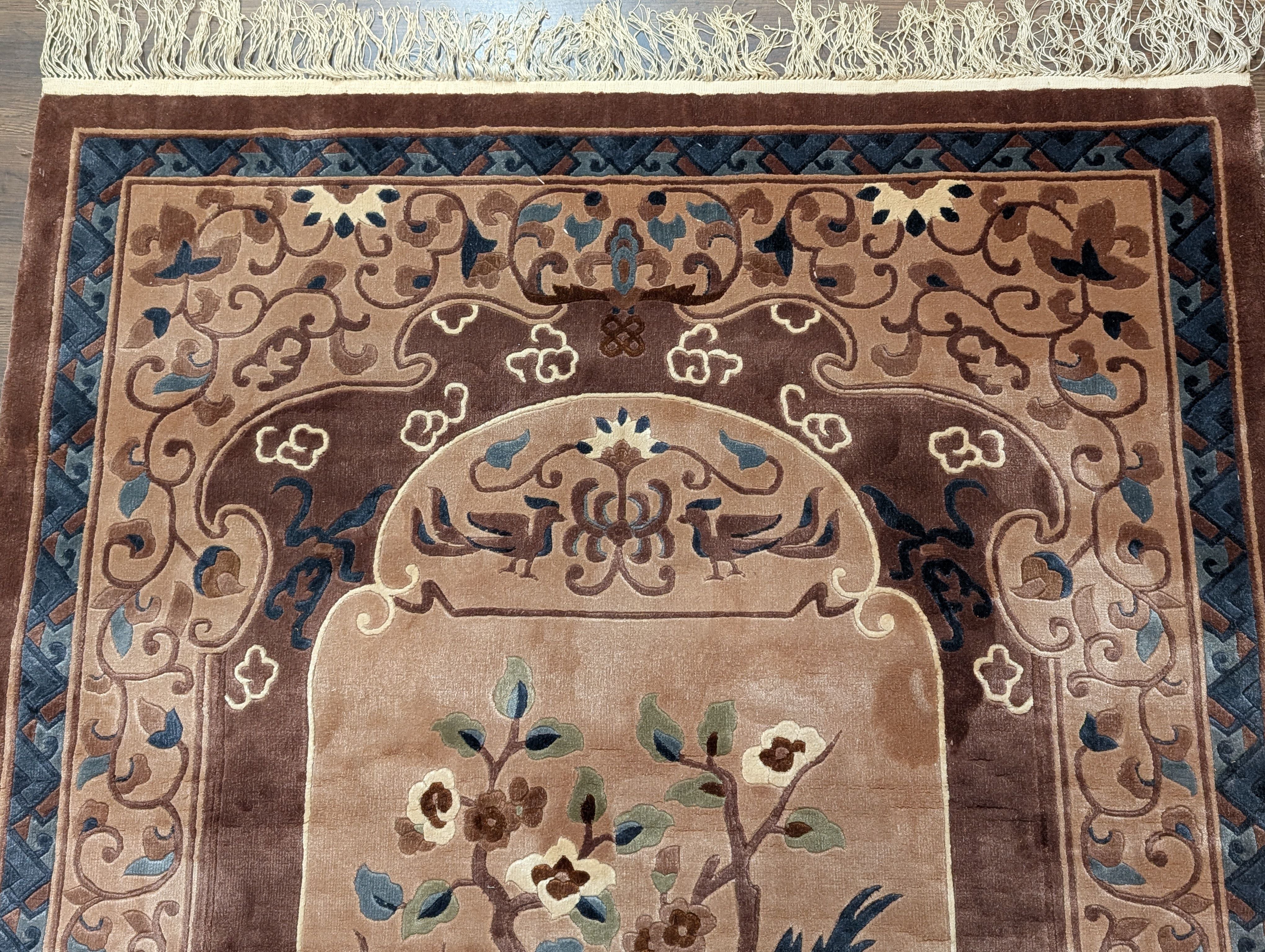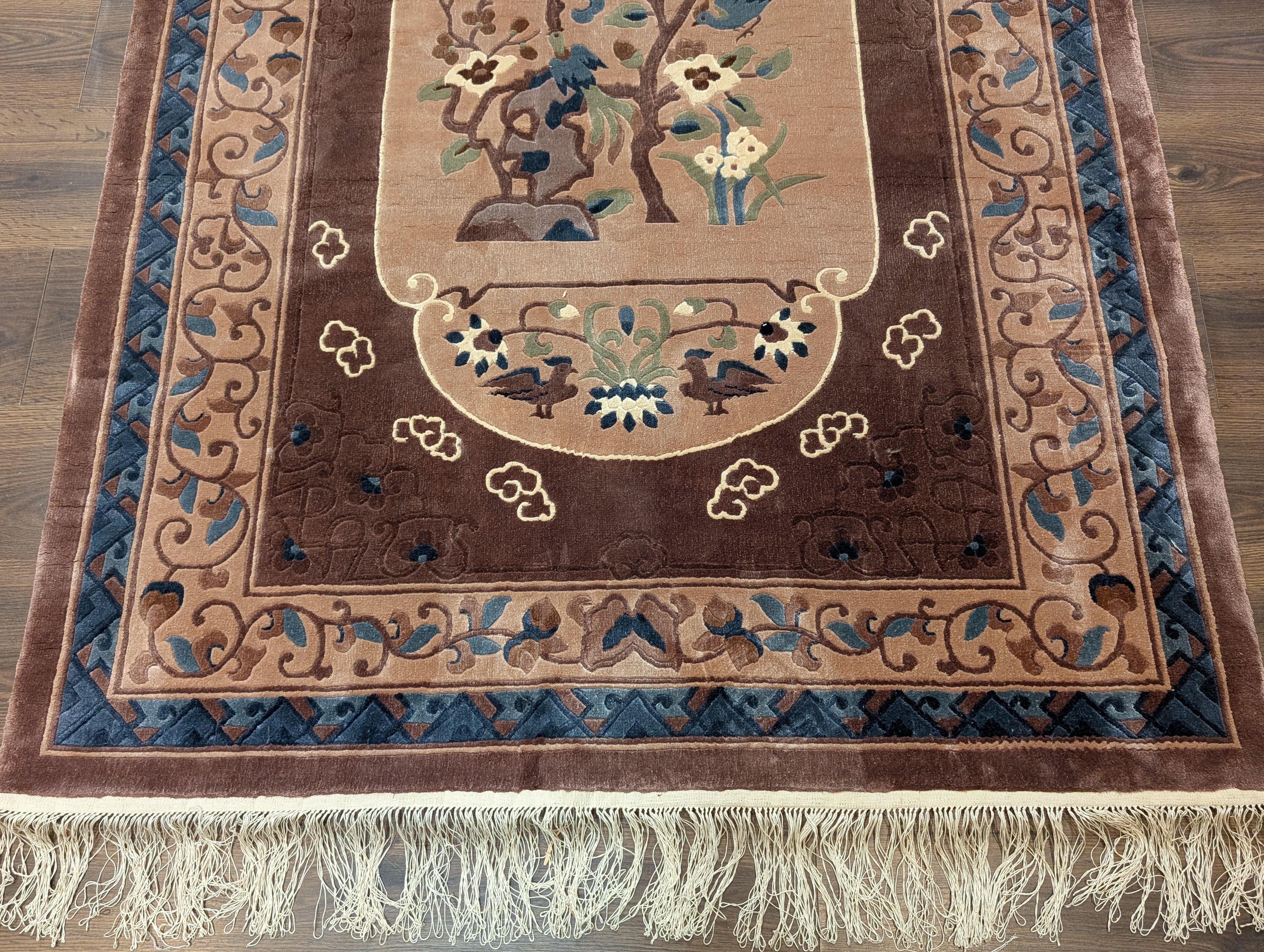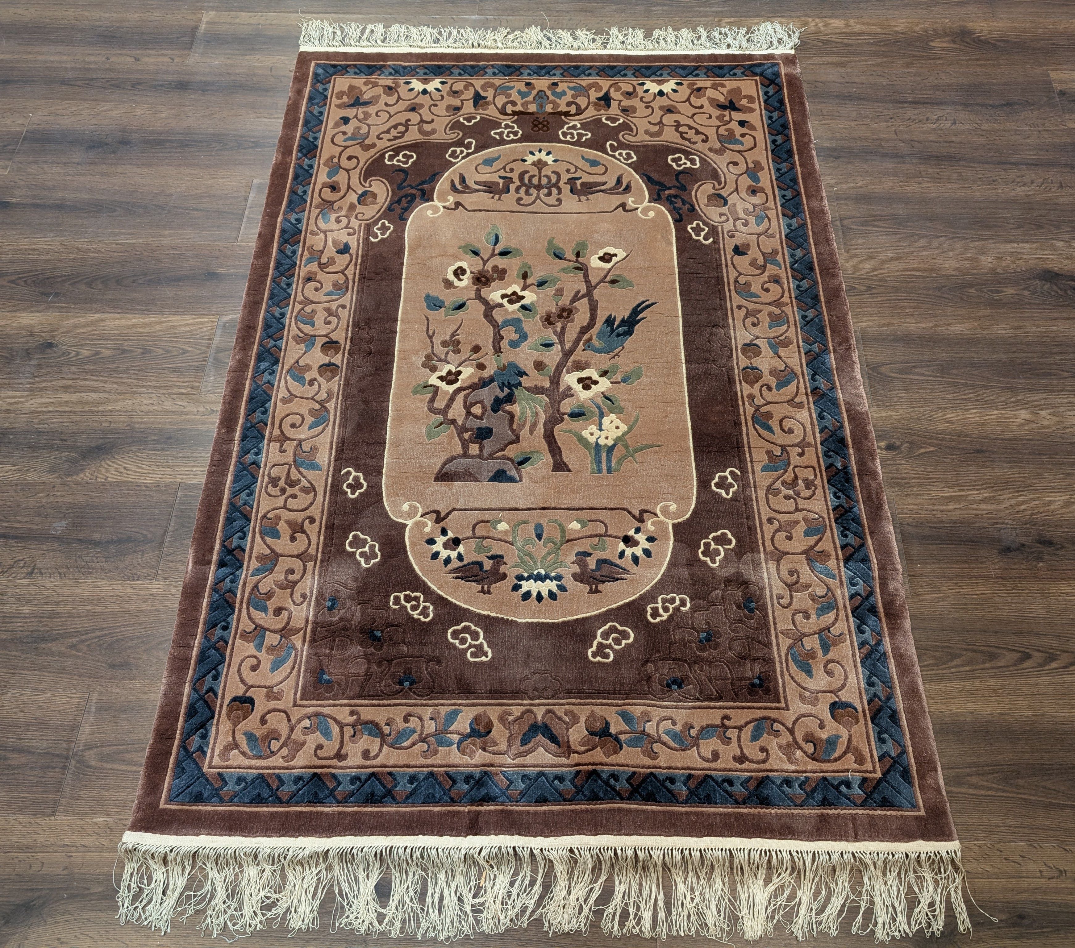 Chinese Silk Rug 4x6, Hand Knotted, Tree of Life, Birds