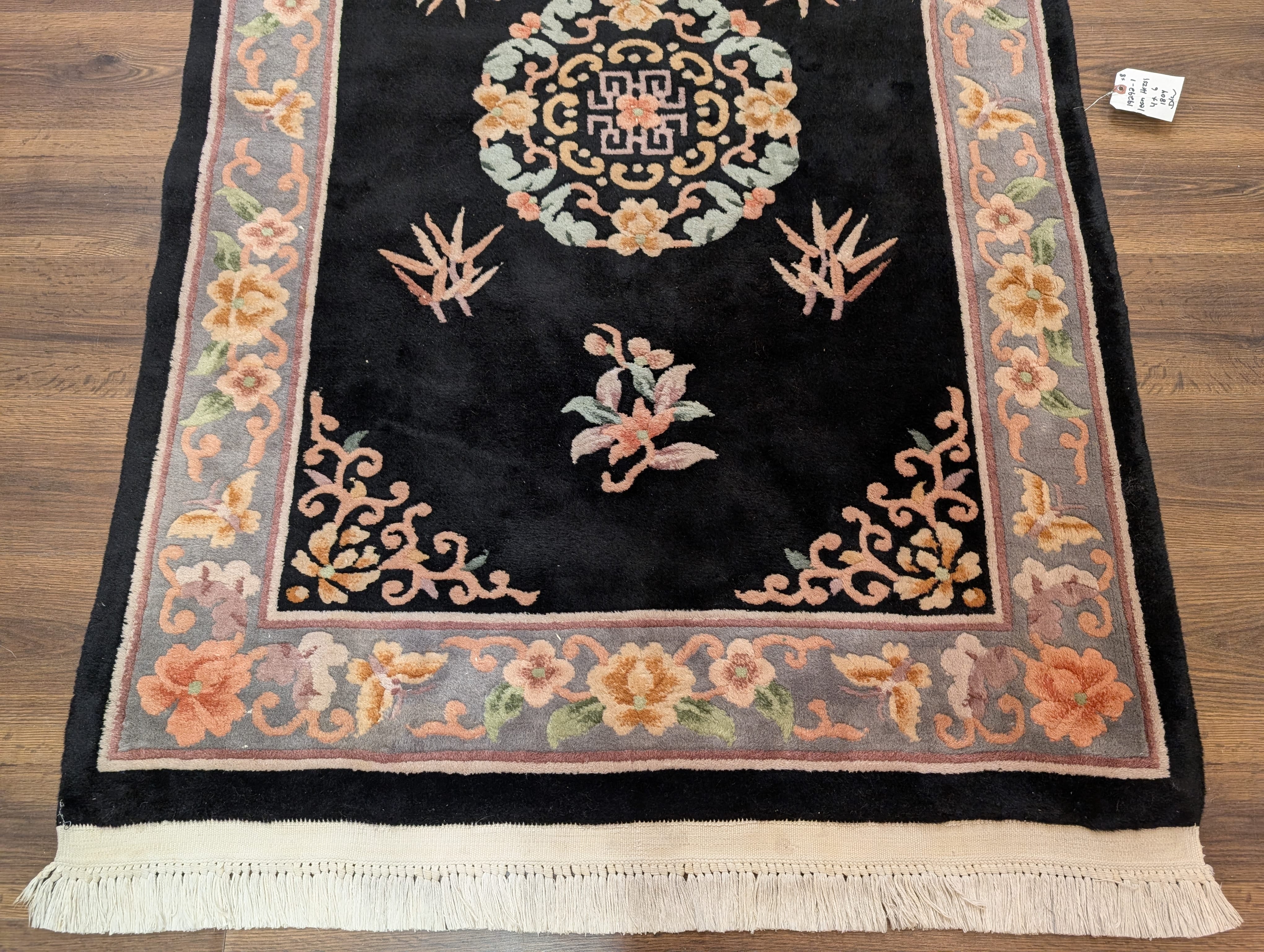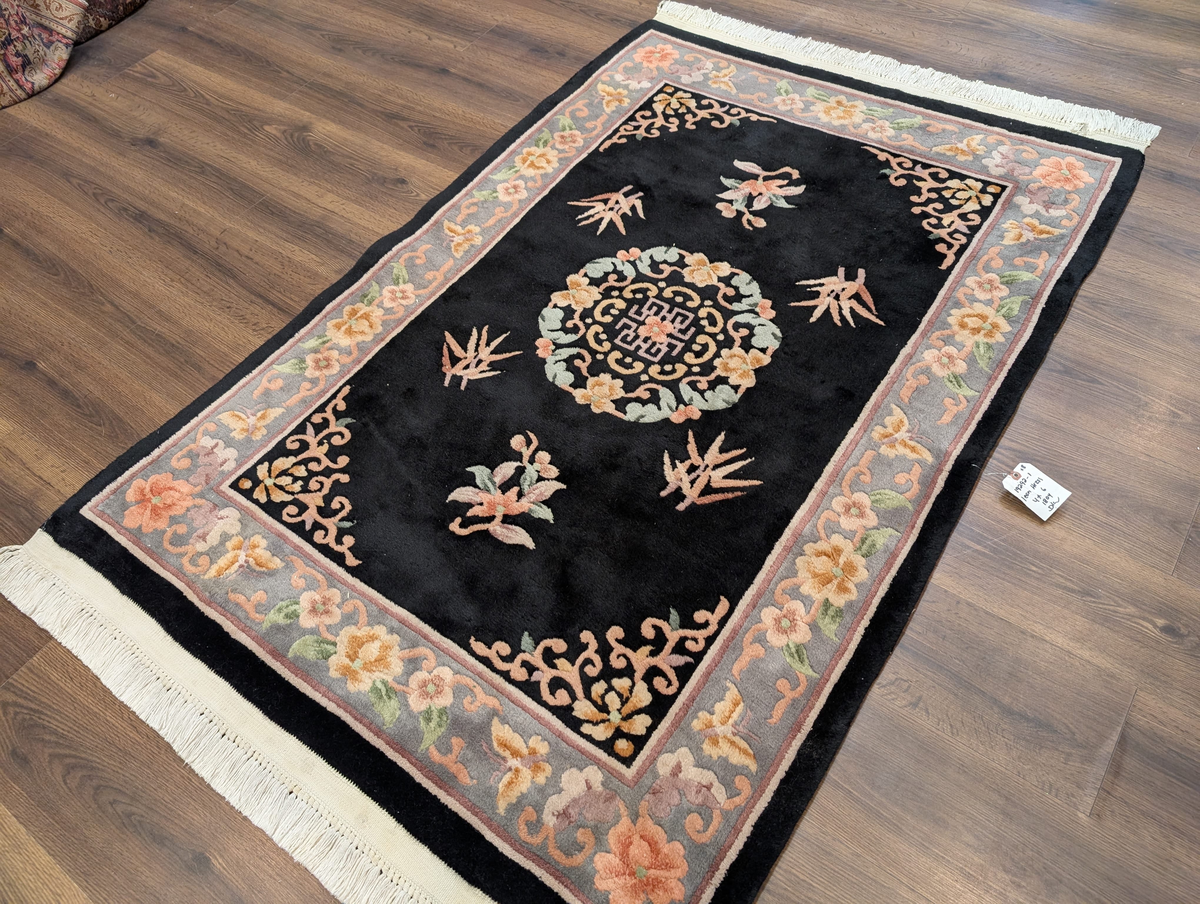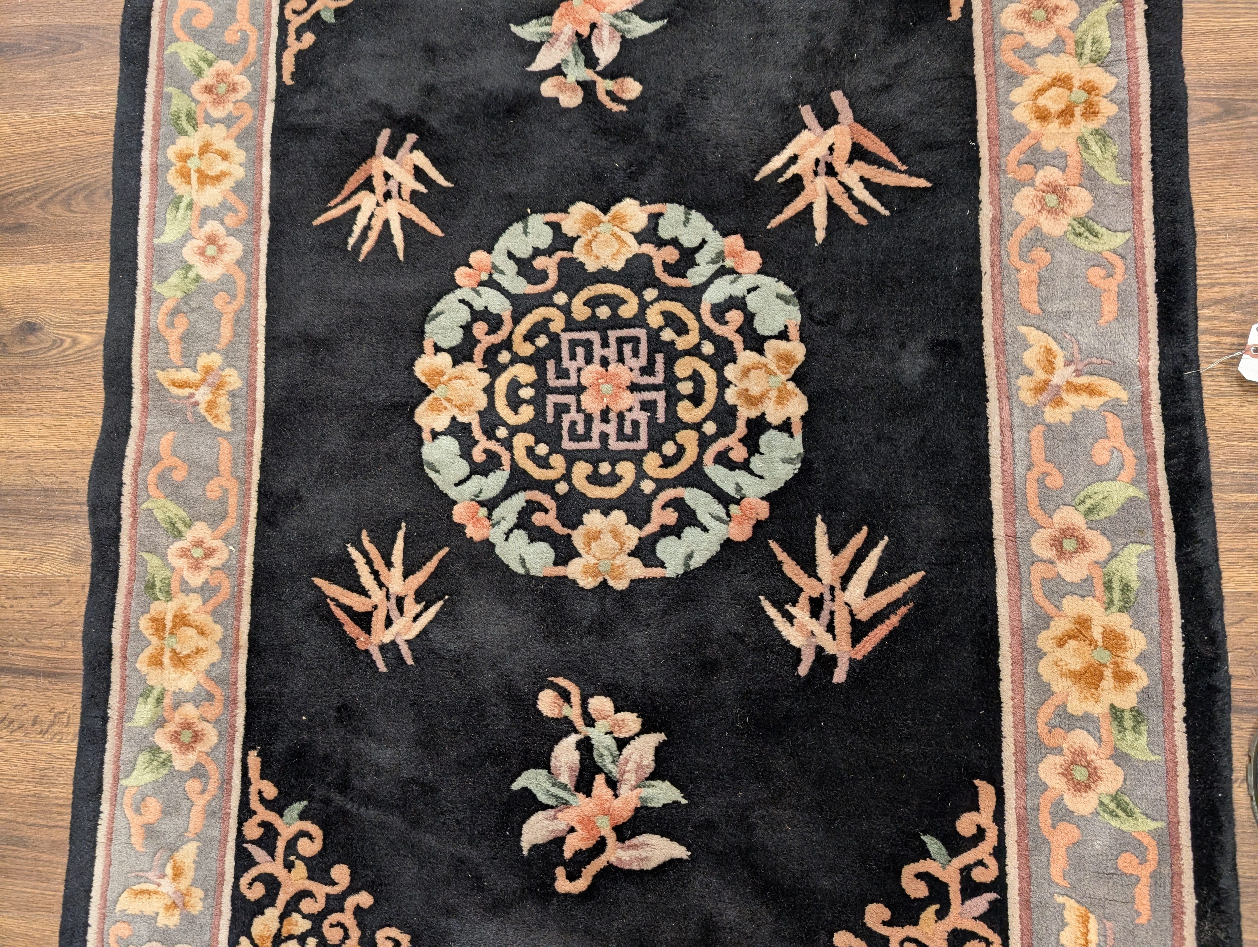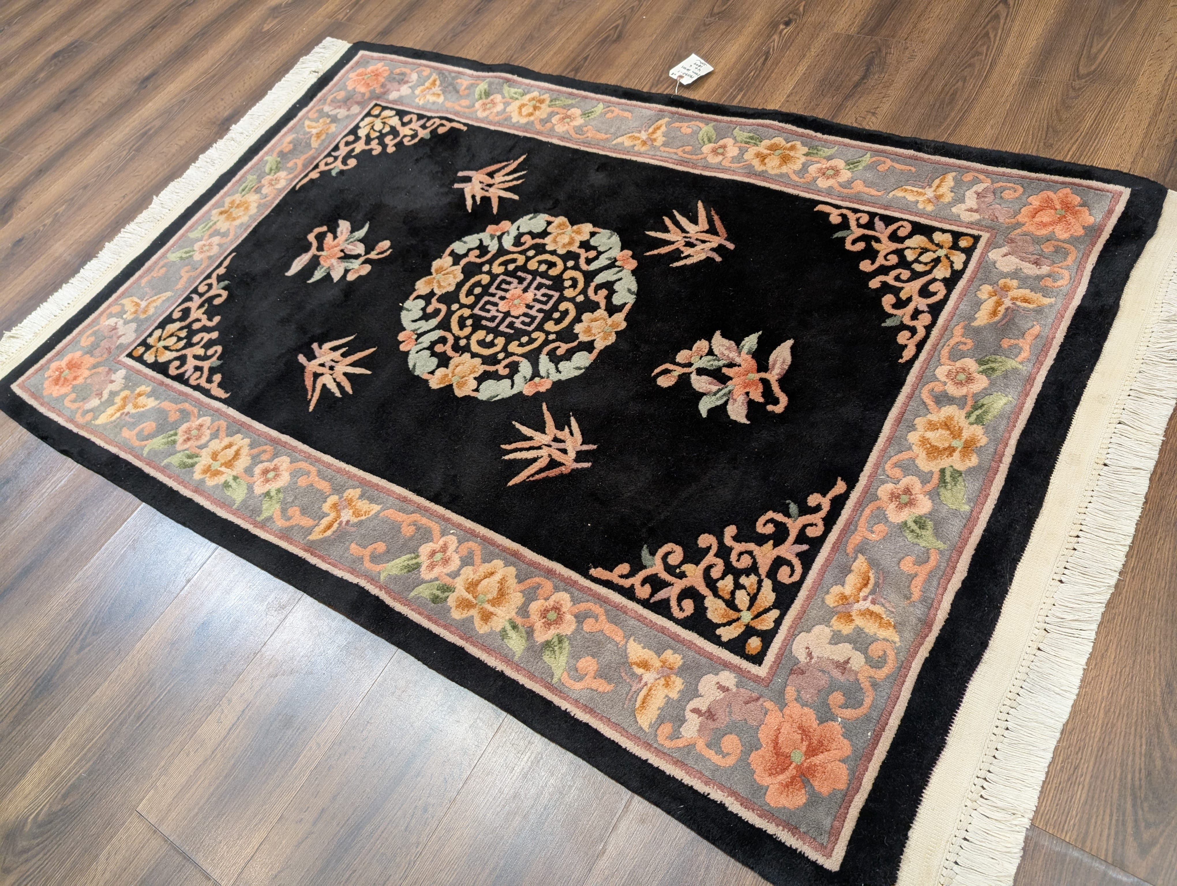 Chinese Wool Rug 4x6, Black, Chinese 90 Line Carpet, Vintage