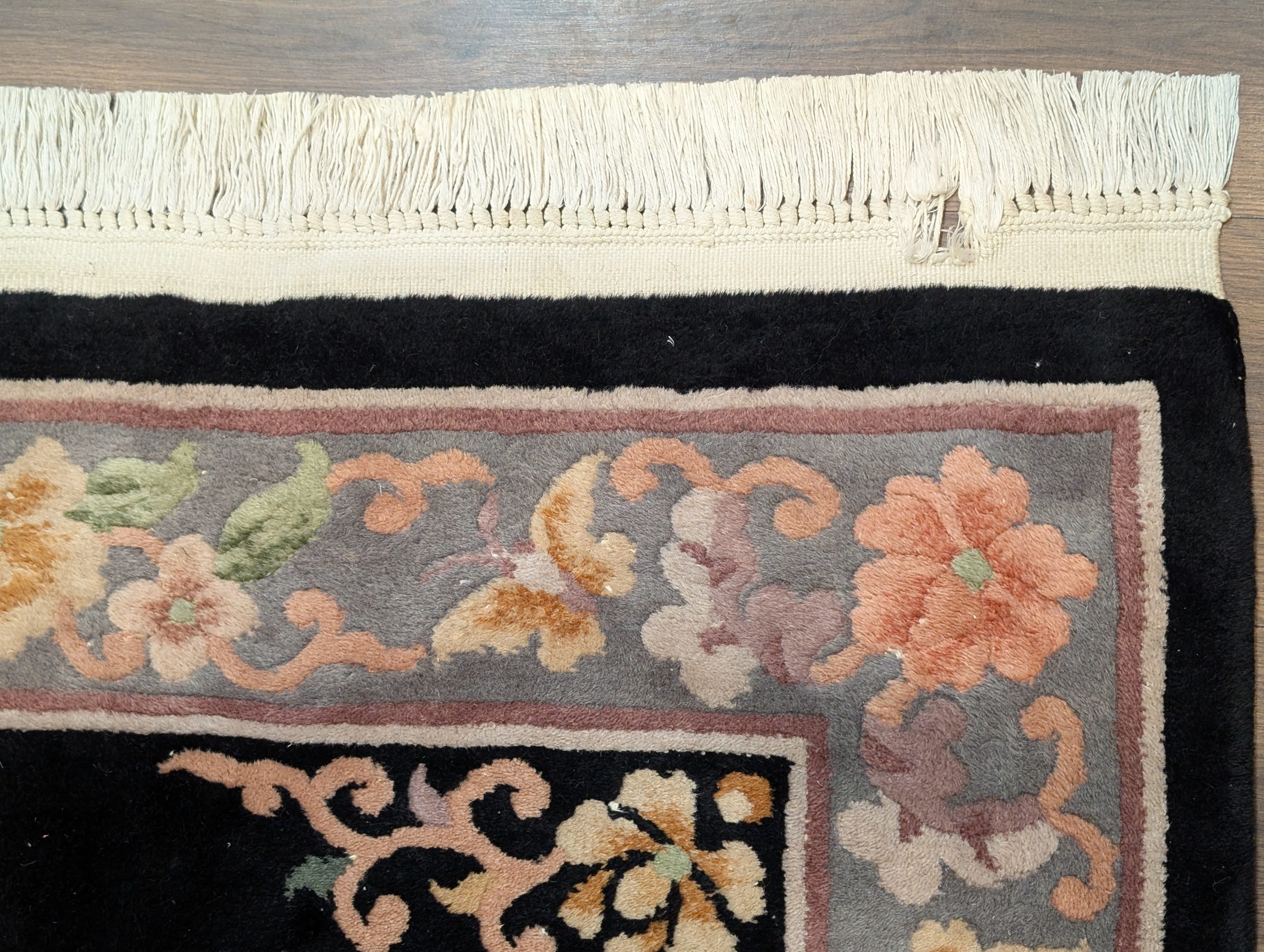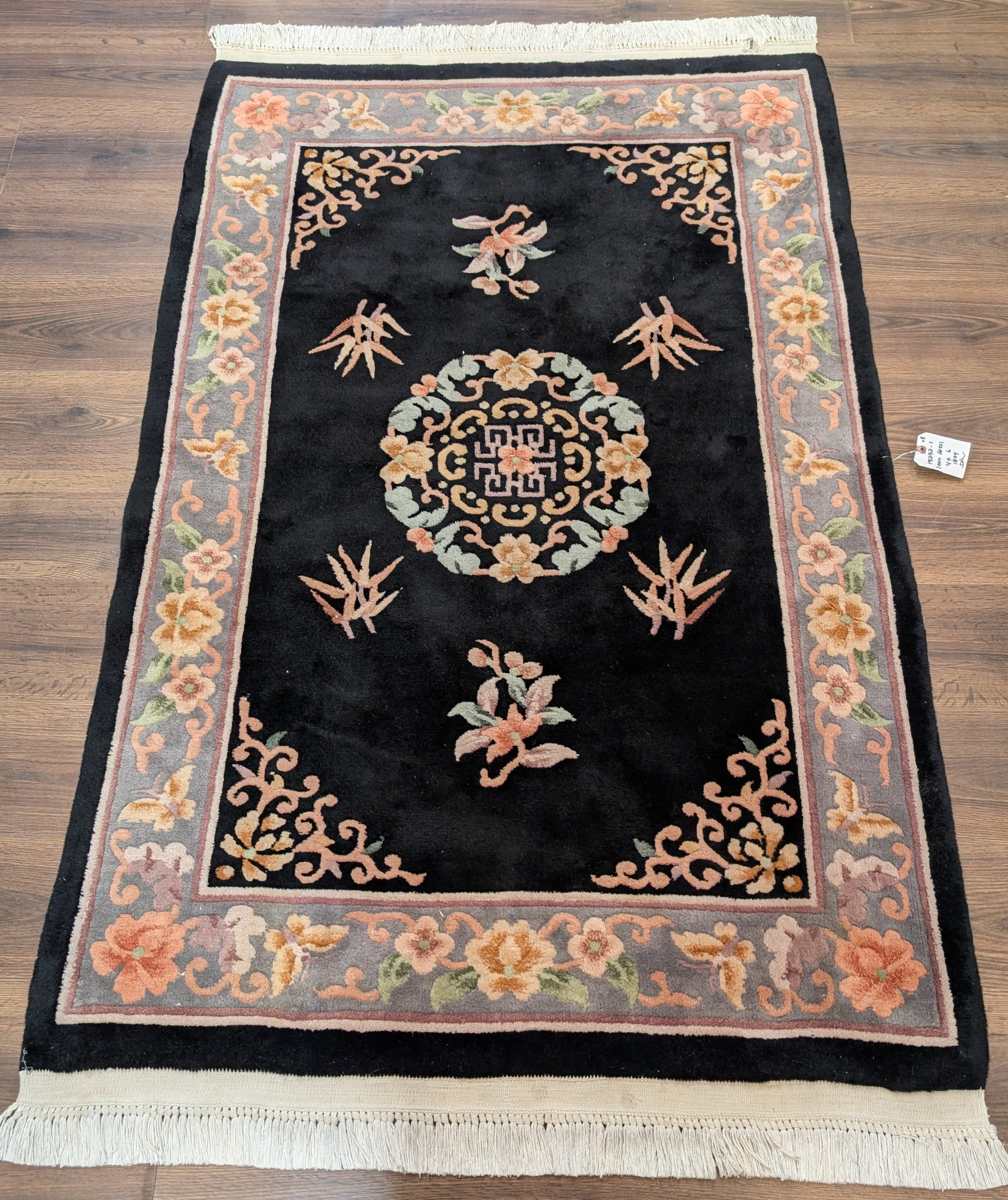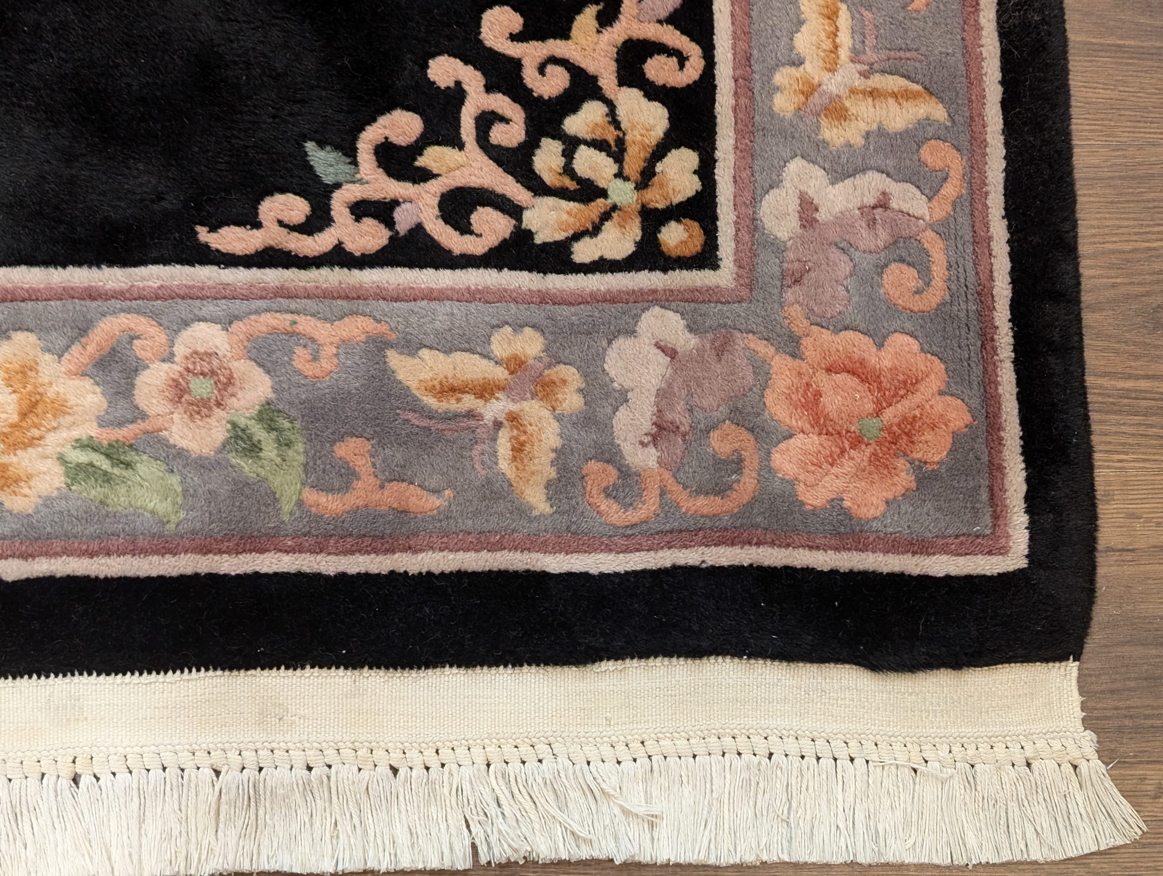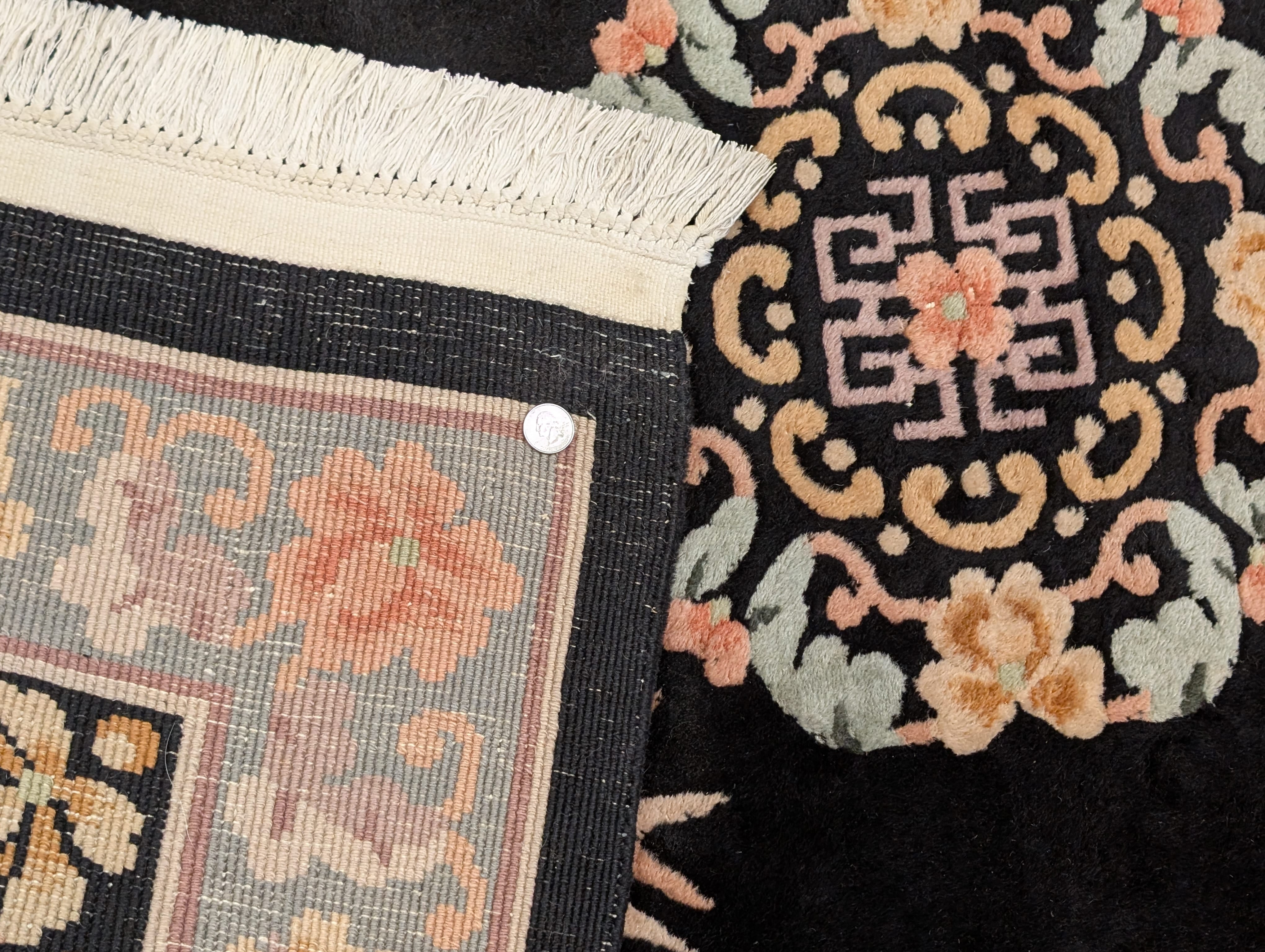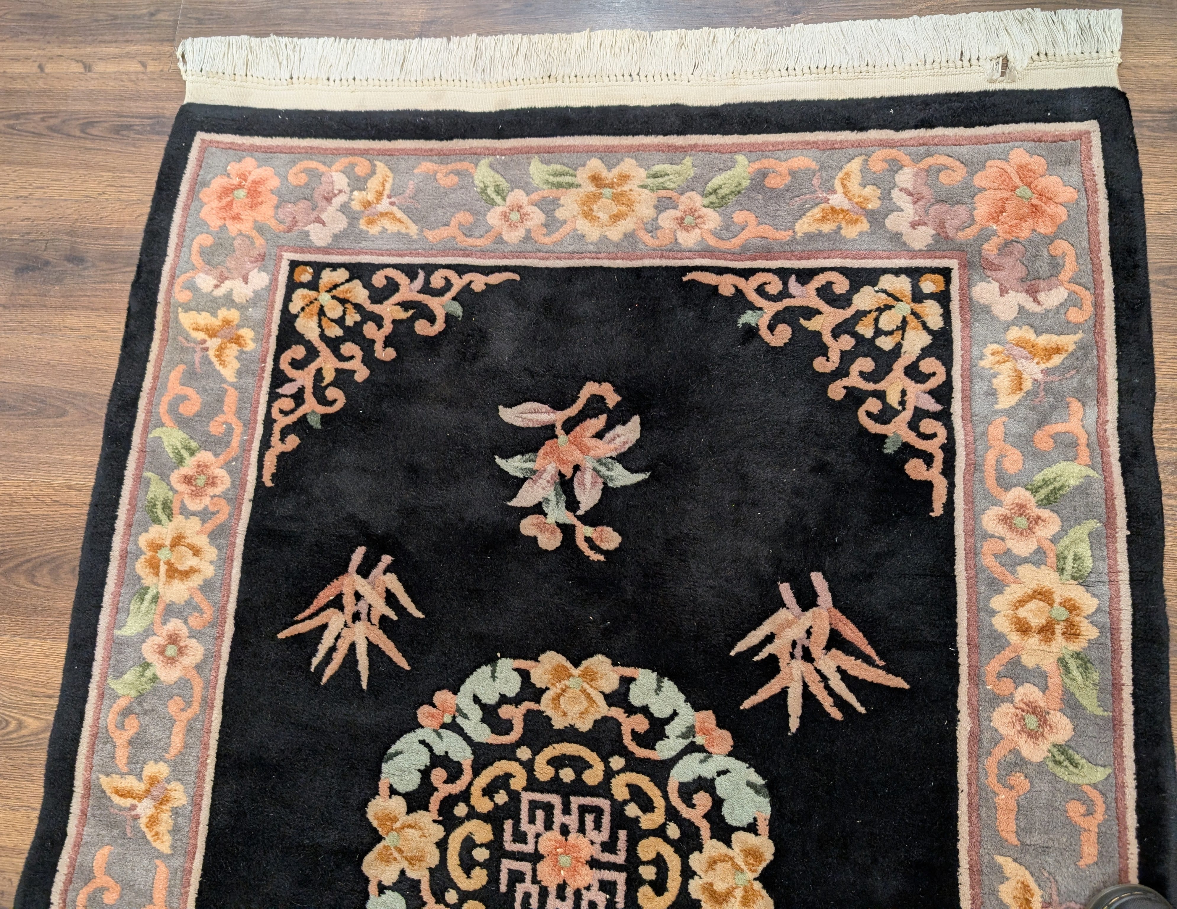 Chinese Wool Rug 4x6, Black, Chinese 90 Line Carpet, Vintage