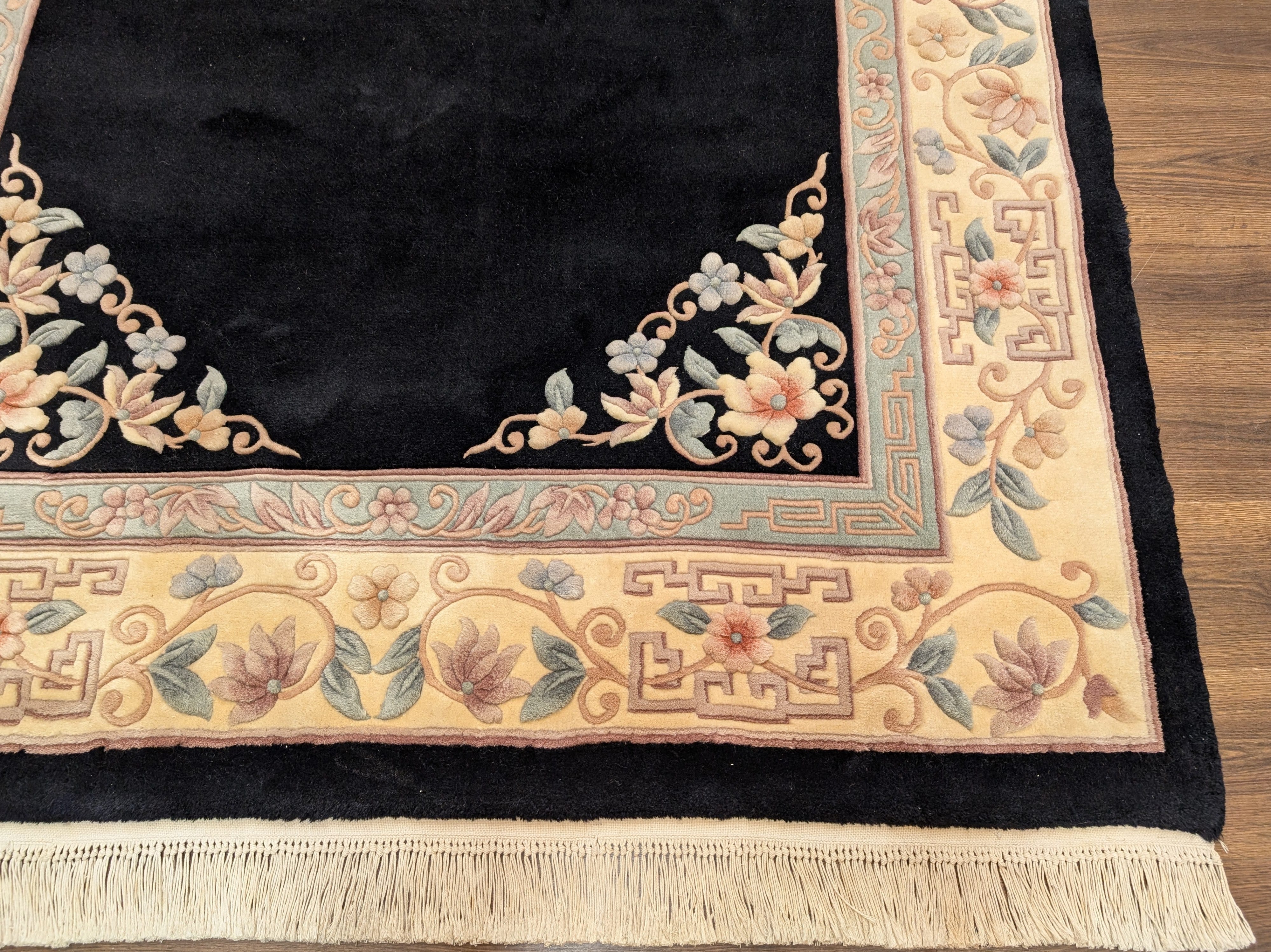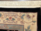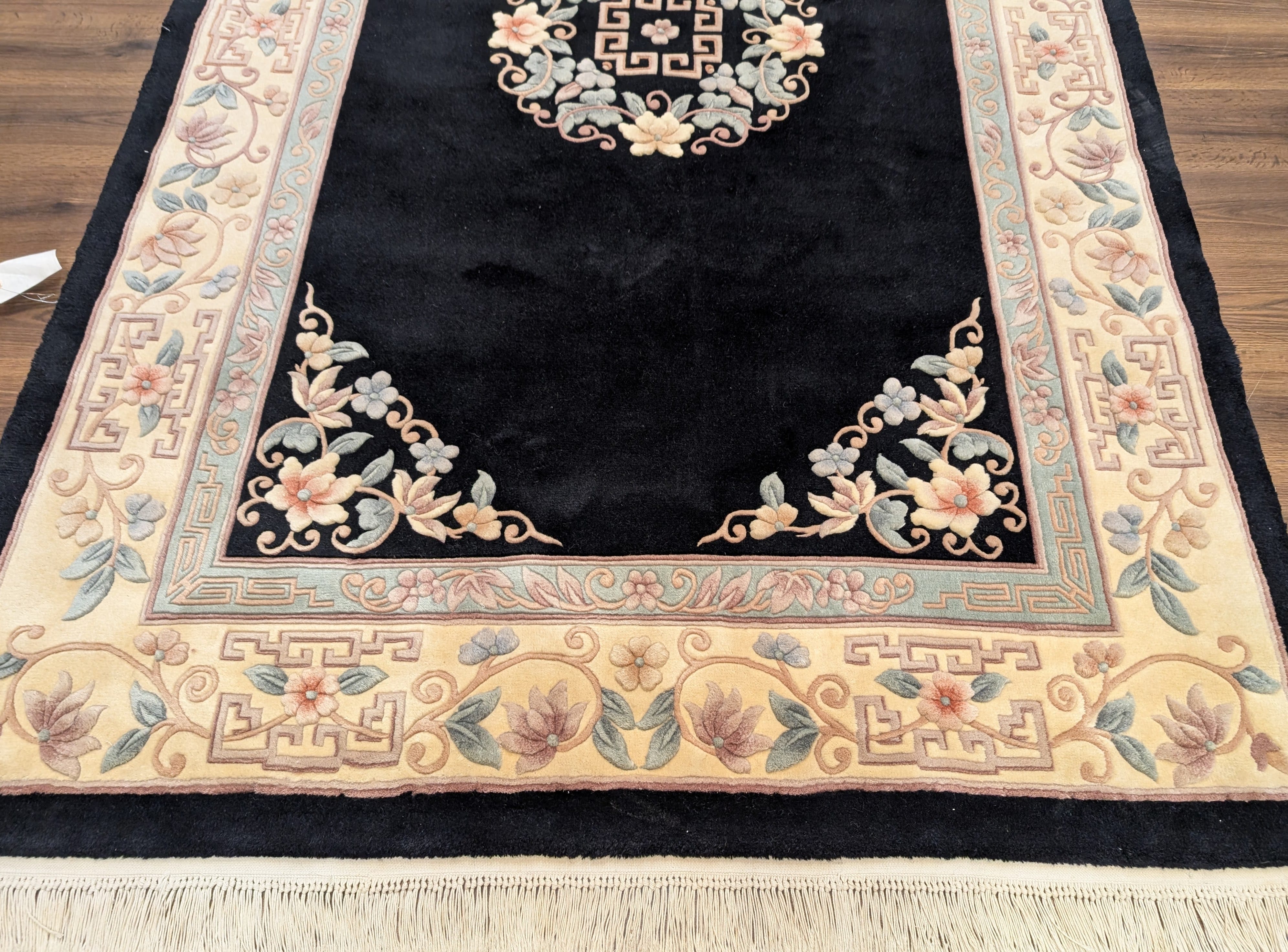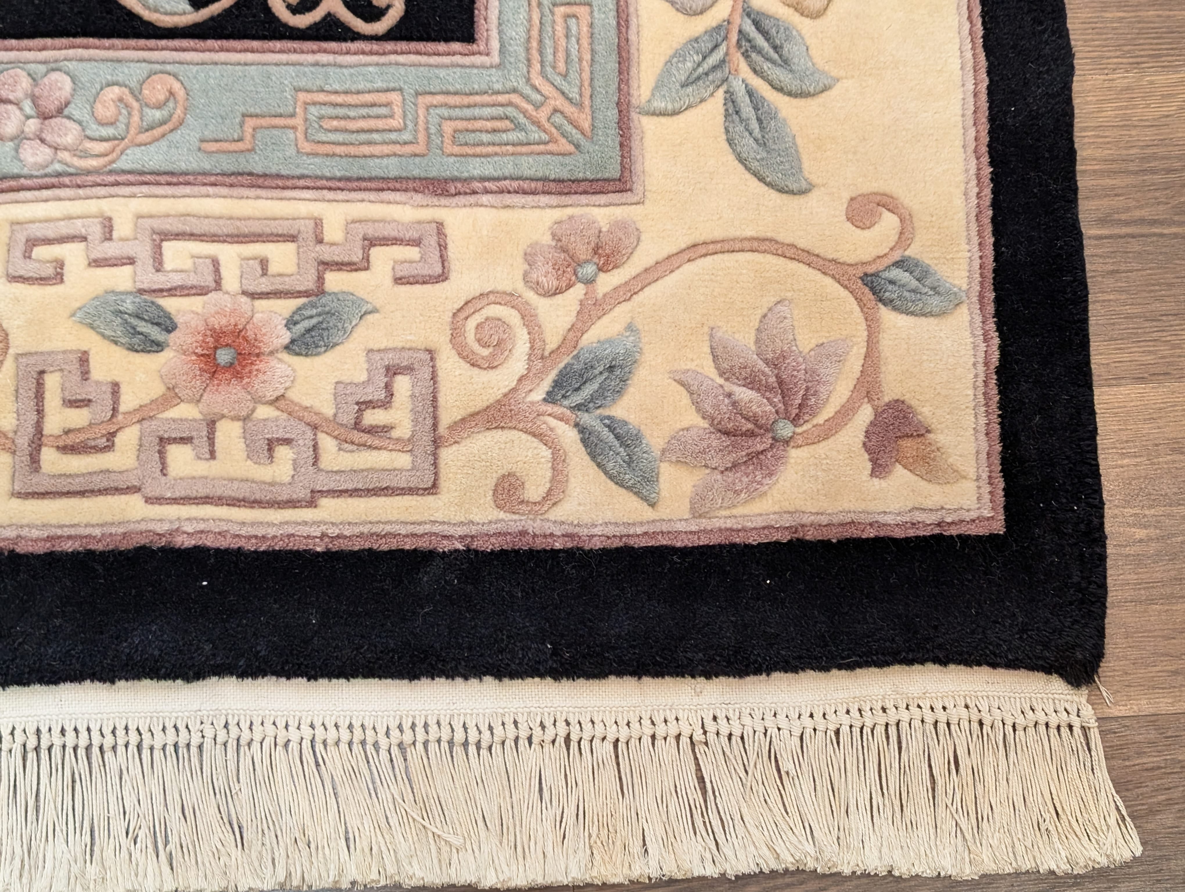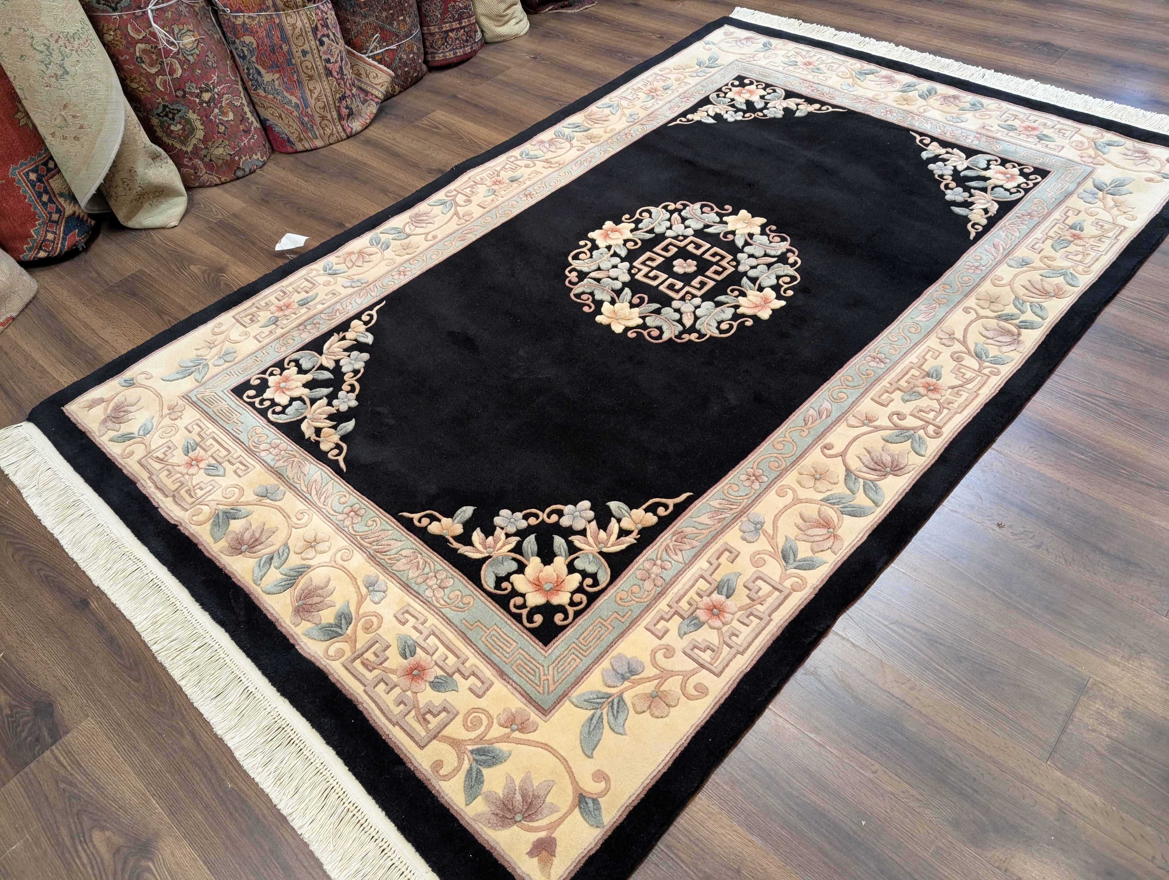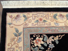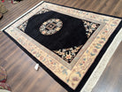 Chinese Wool Rug 6x9, Black and Cream, Chinese Carving Rug, Vintage