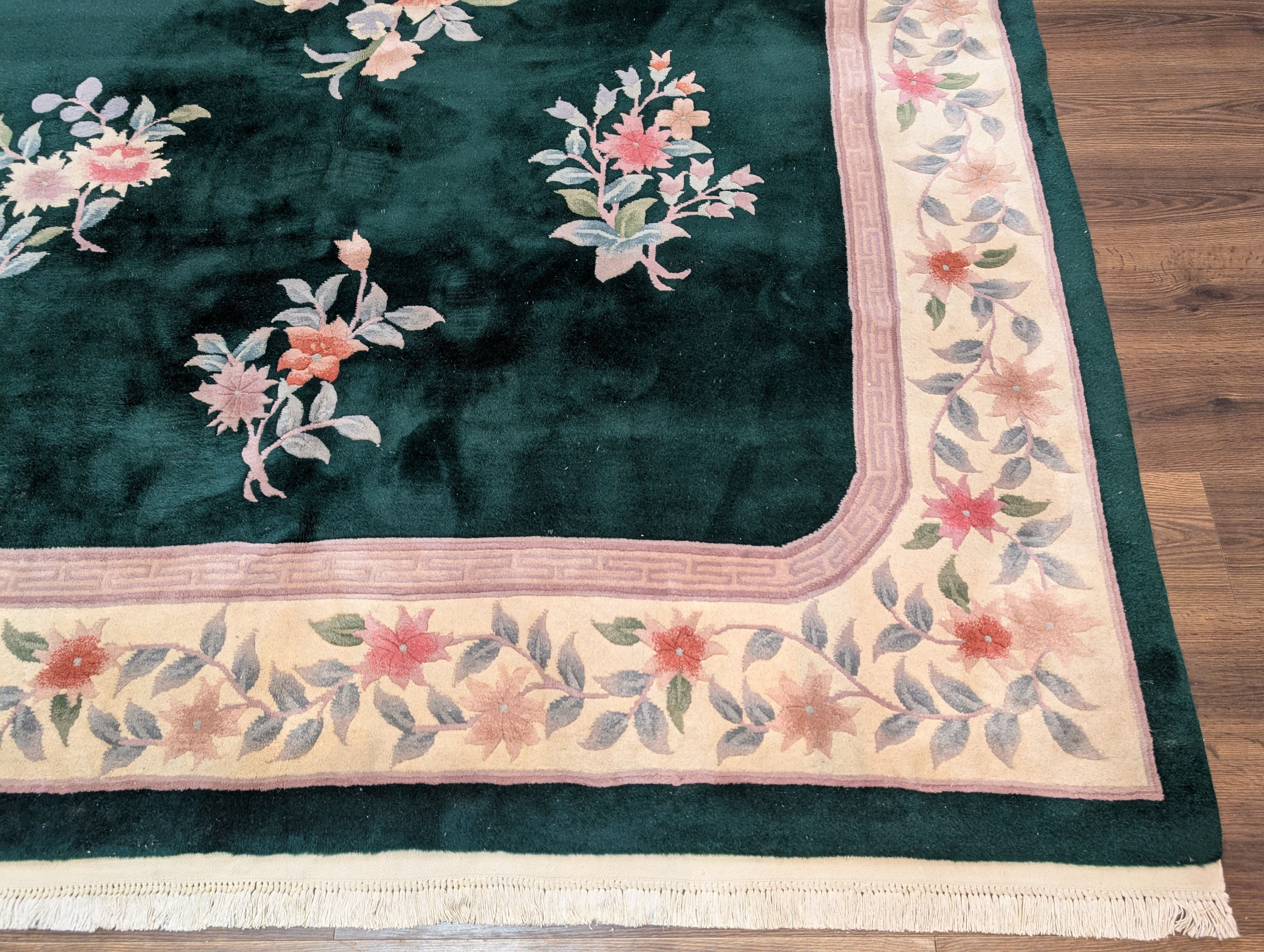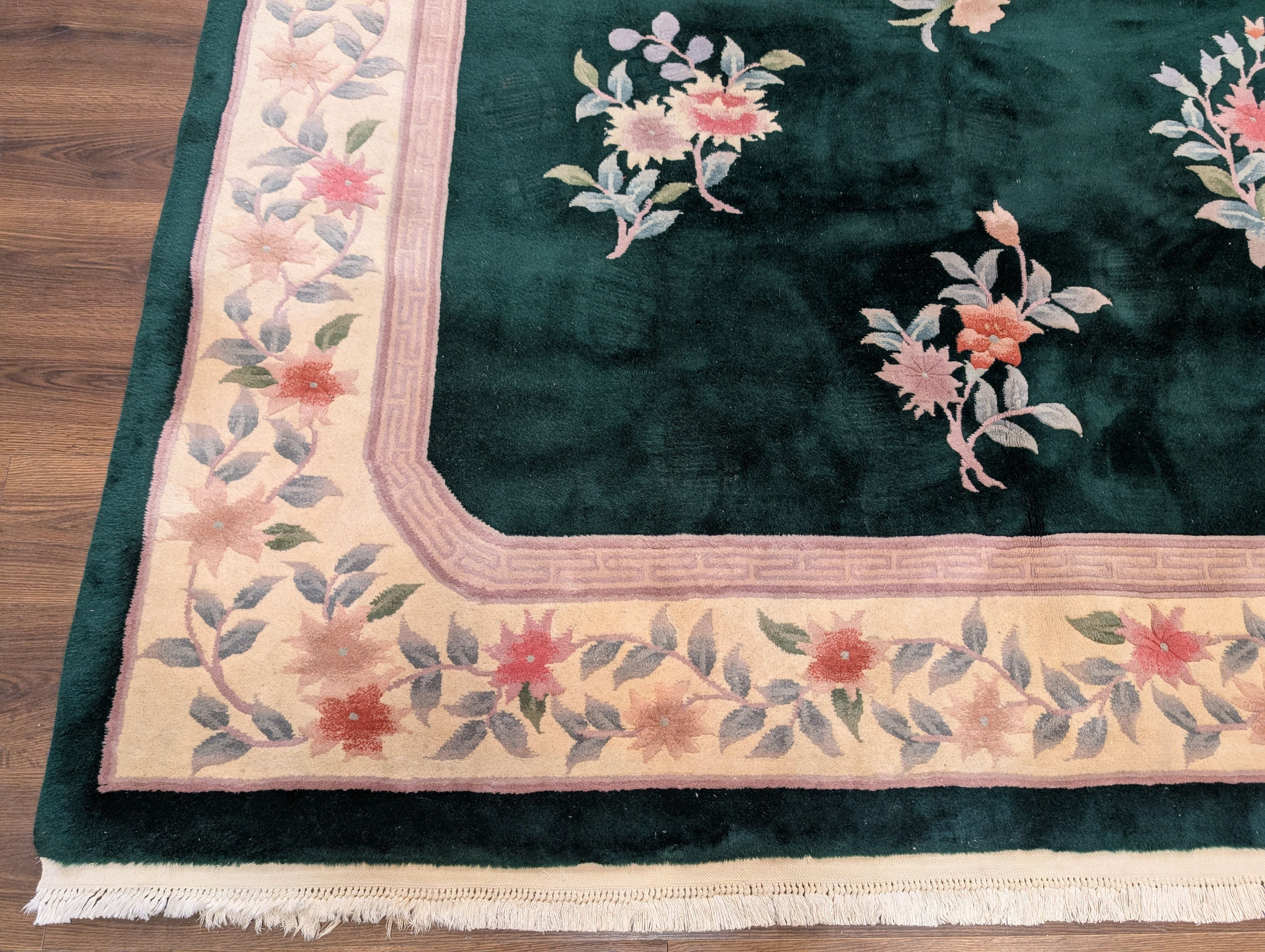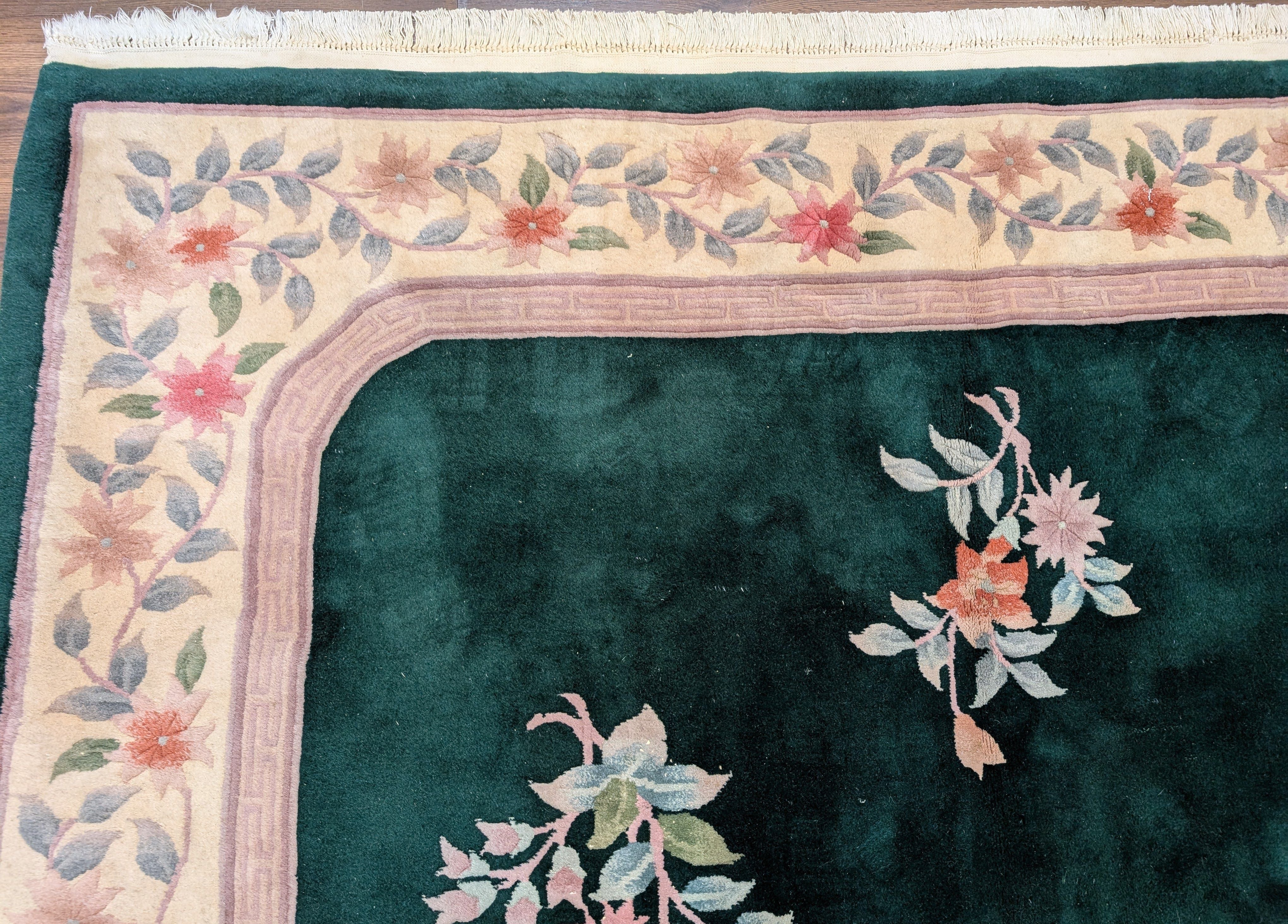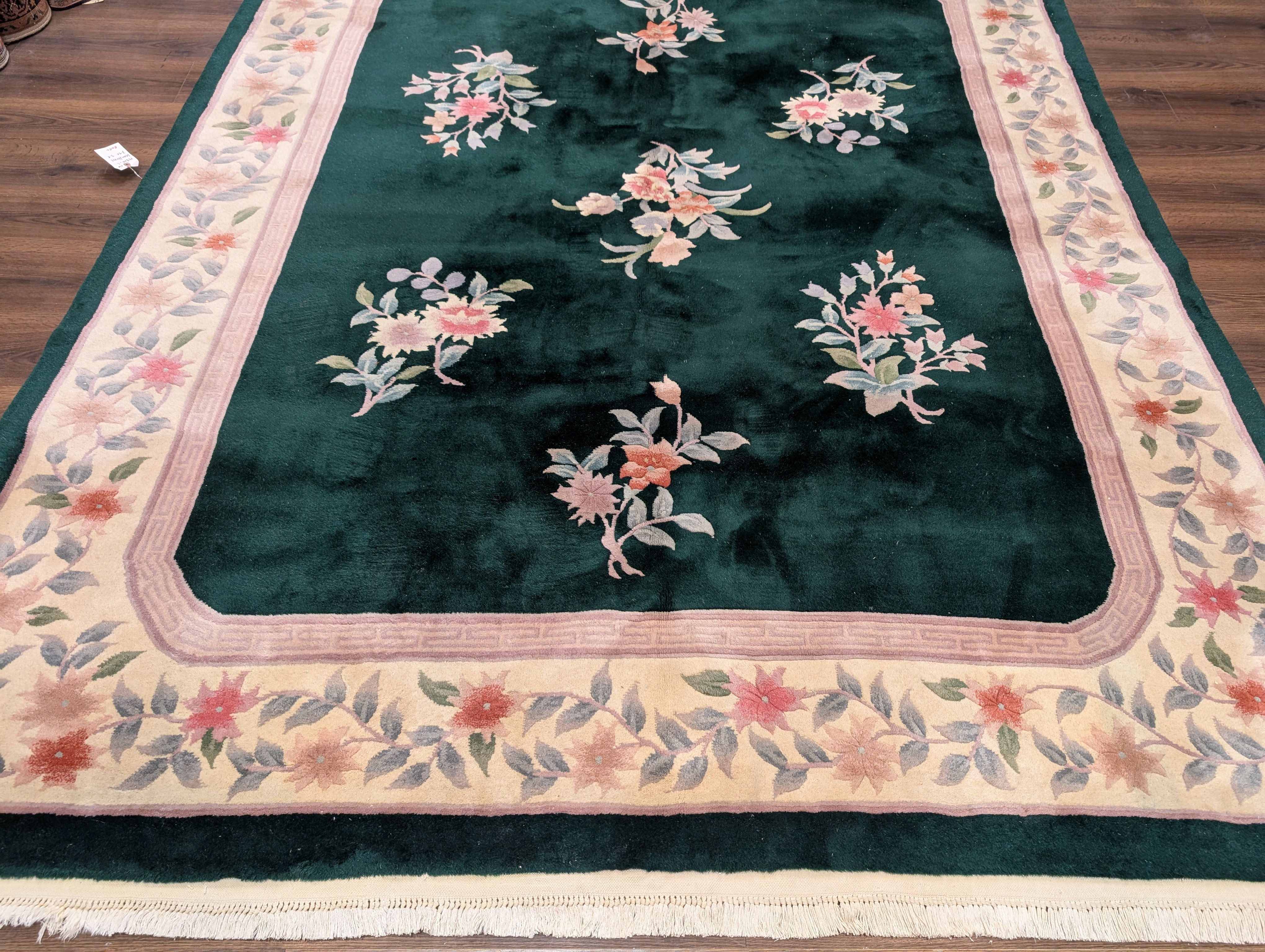 Chinese Wool Rug 8x10, Dark Green, Soft Plush Pile, 90 Line Carpet, Handmade