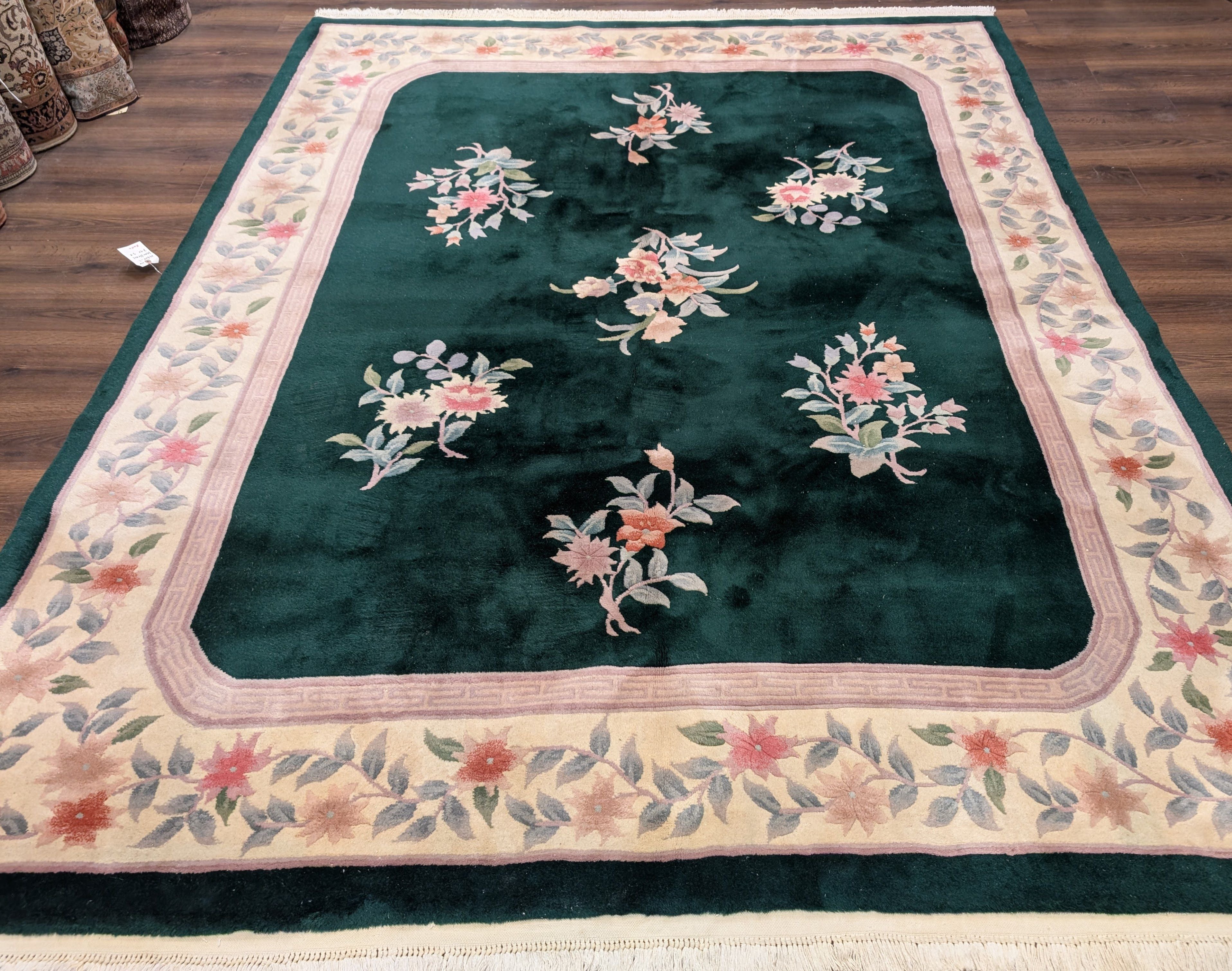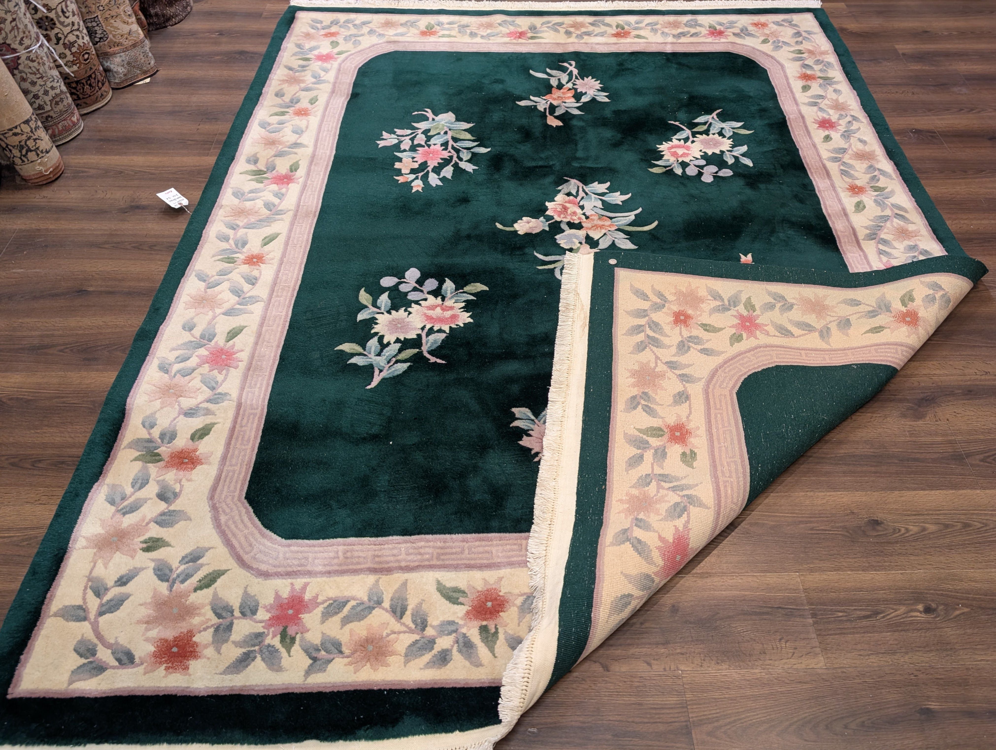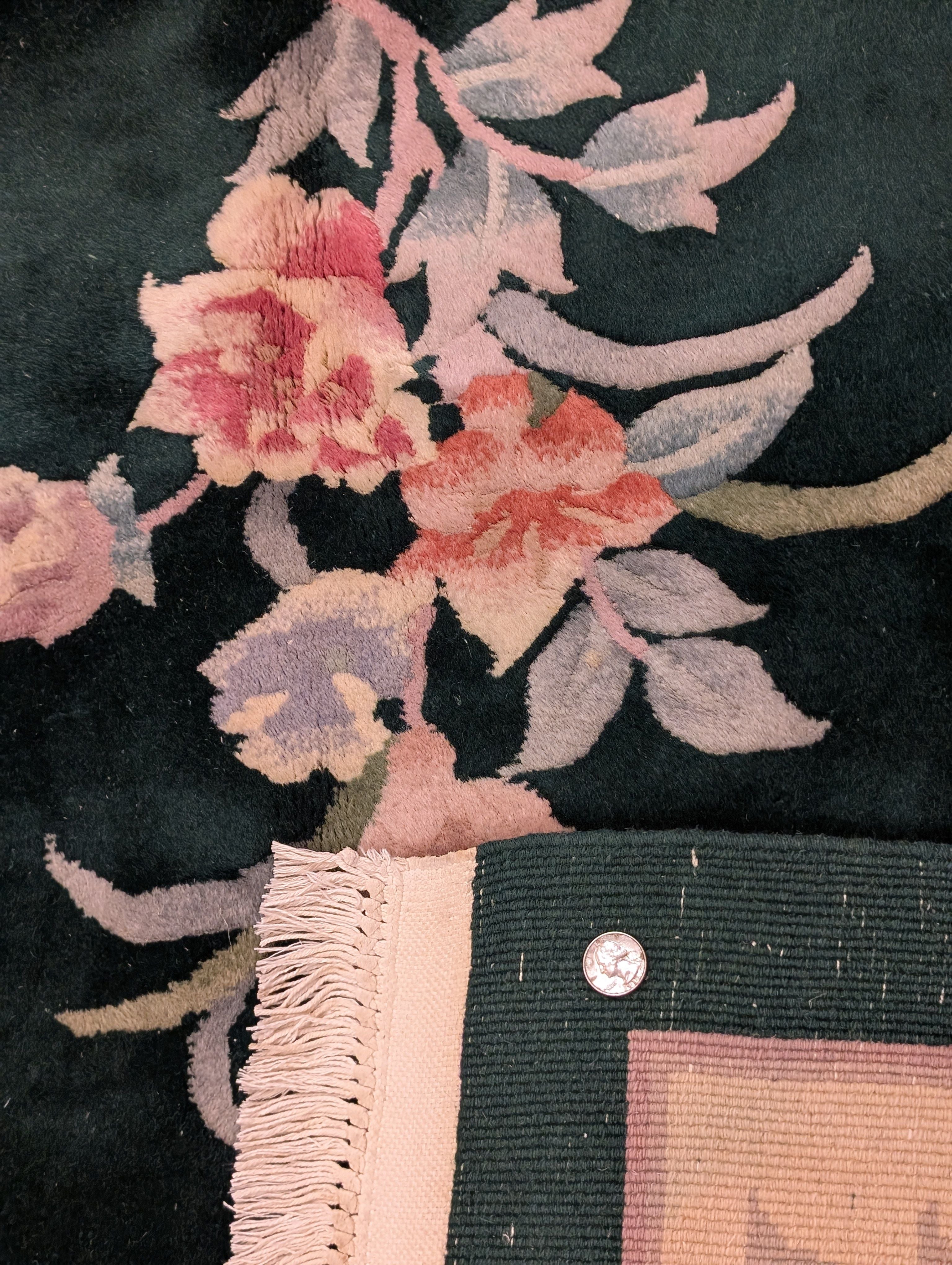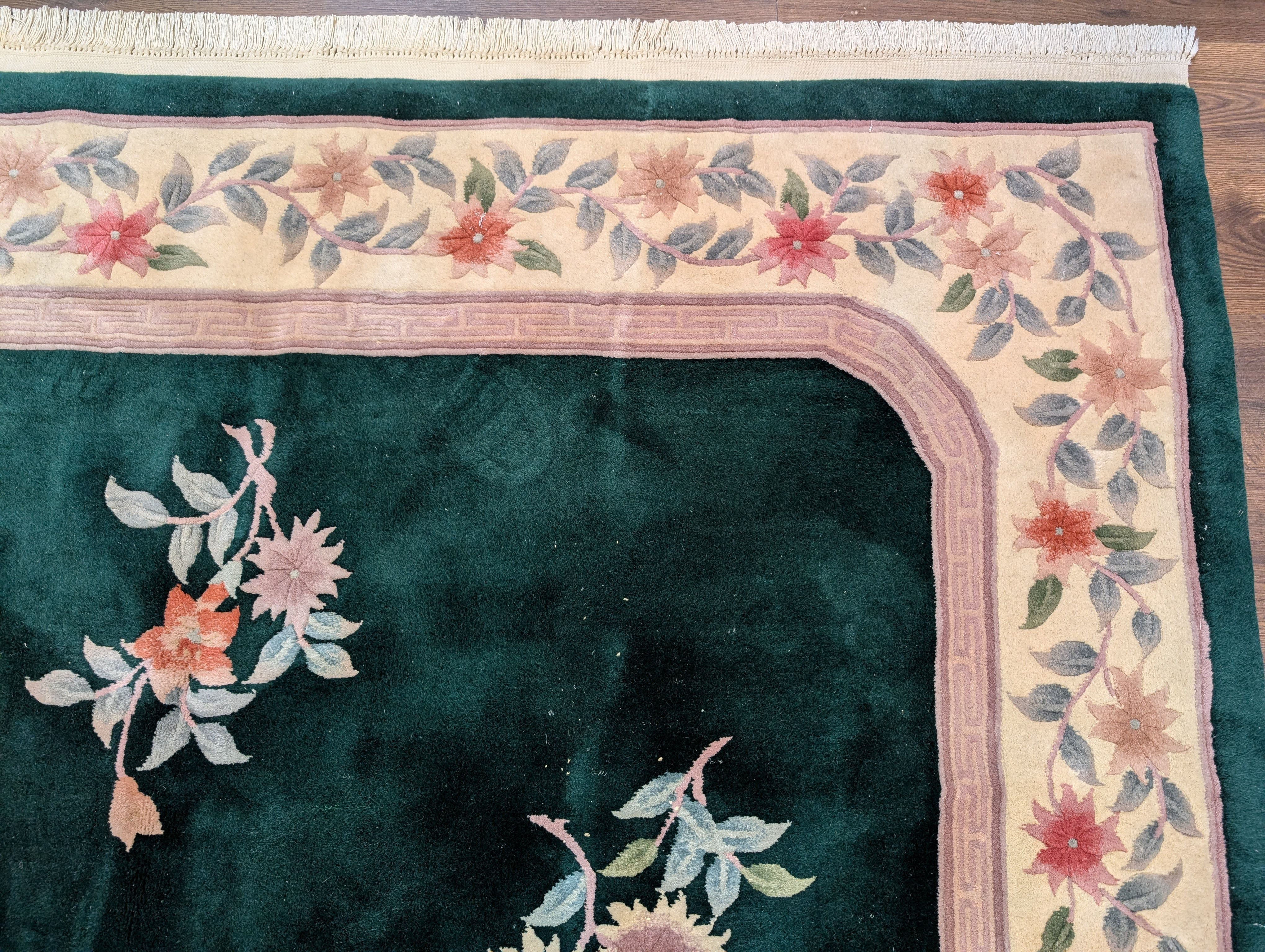 Chinese Wool Rug 8x10, Dark Green, Soft Plush Pile, 90 Line Carpet, Handmade