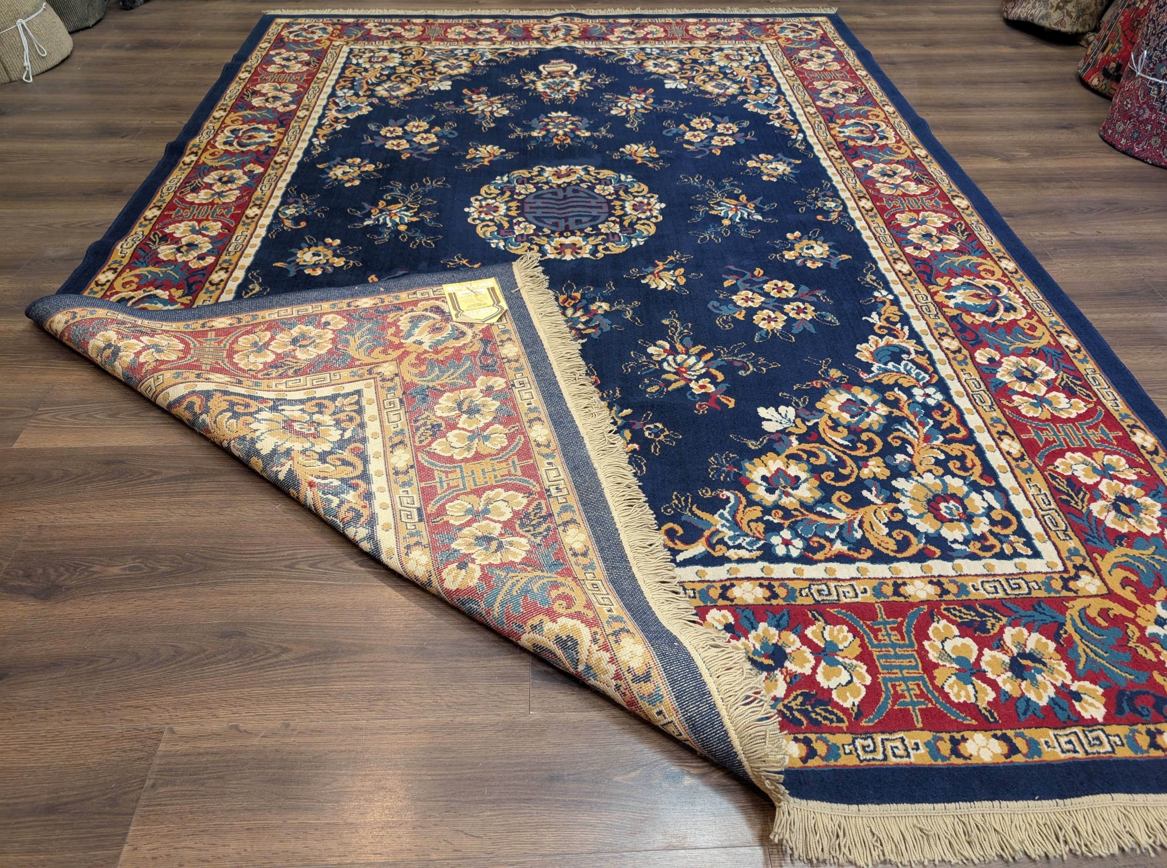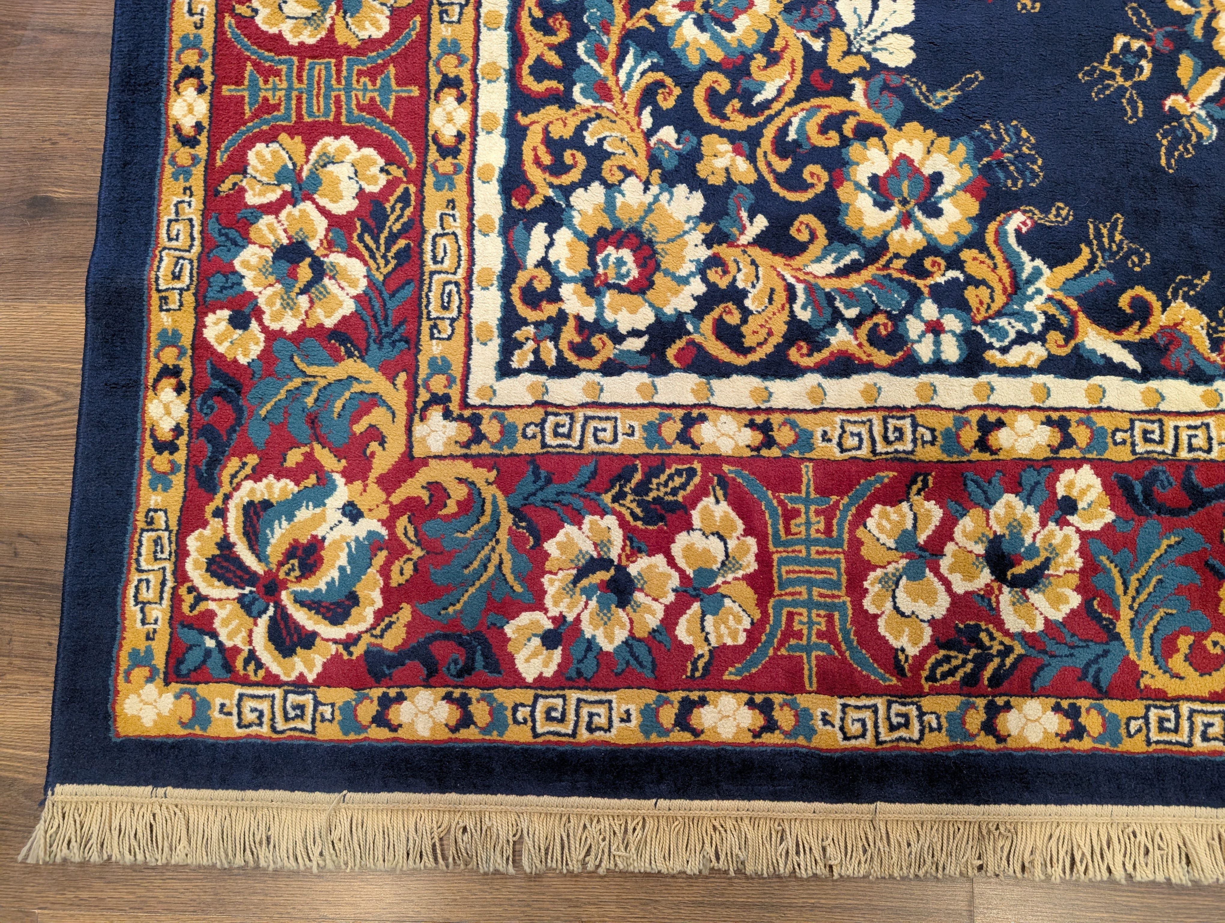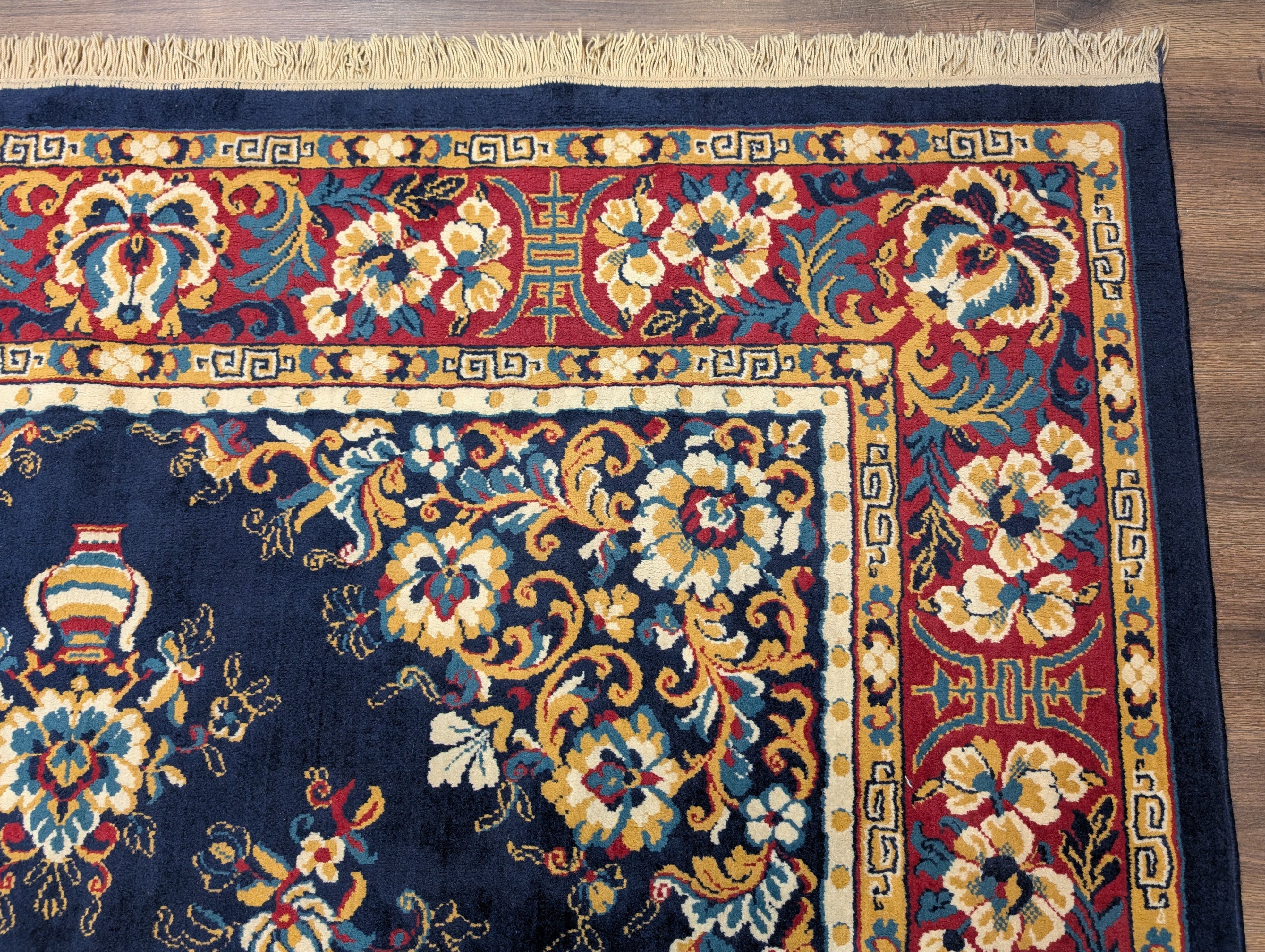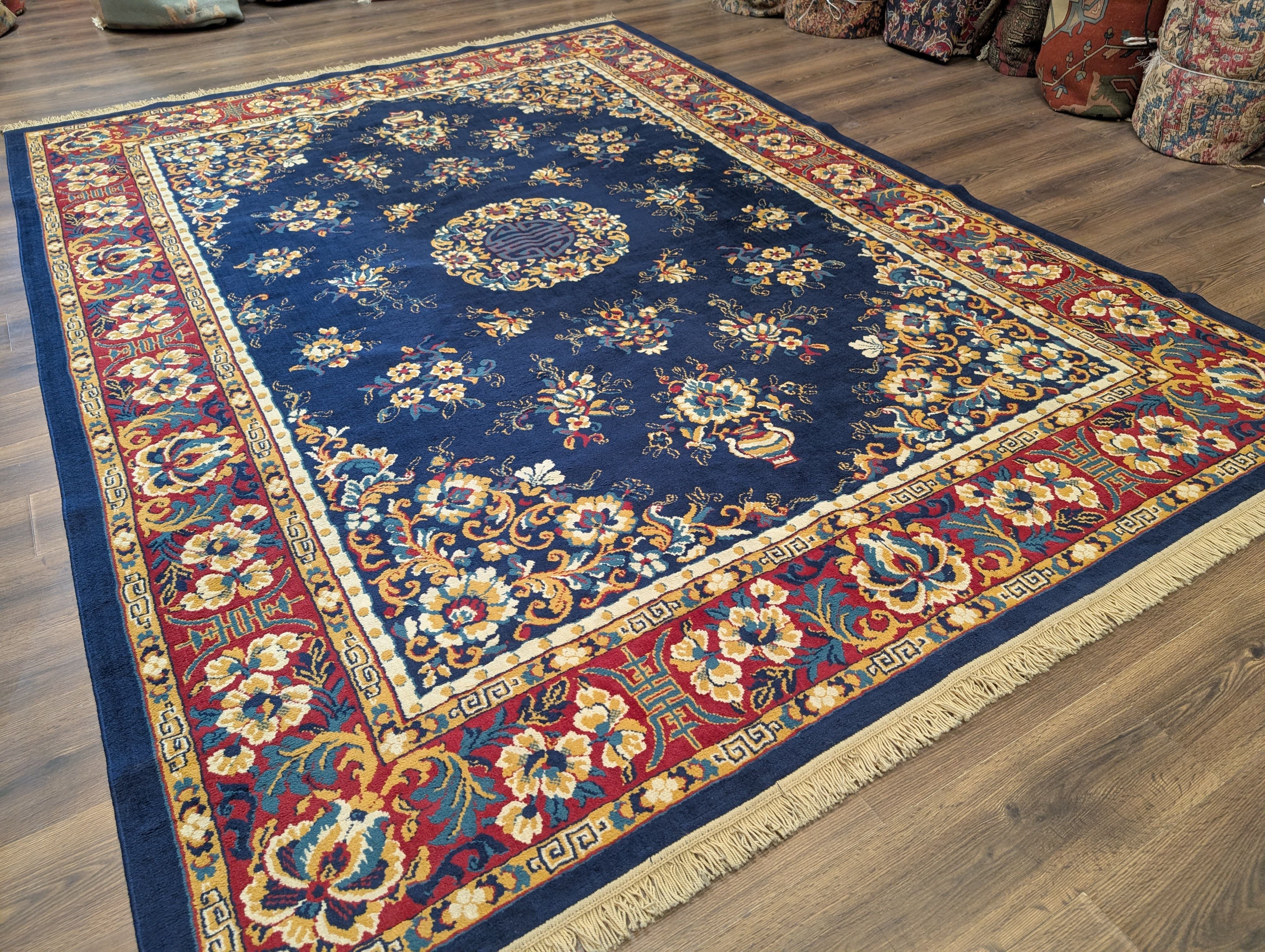 Chinese Wool Rug 8x11, Navy Blue, Asian Oriental Carpet