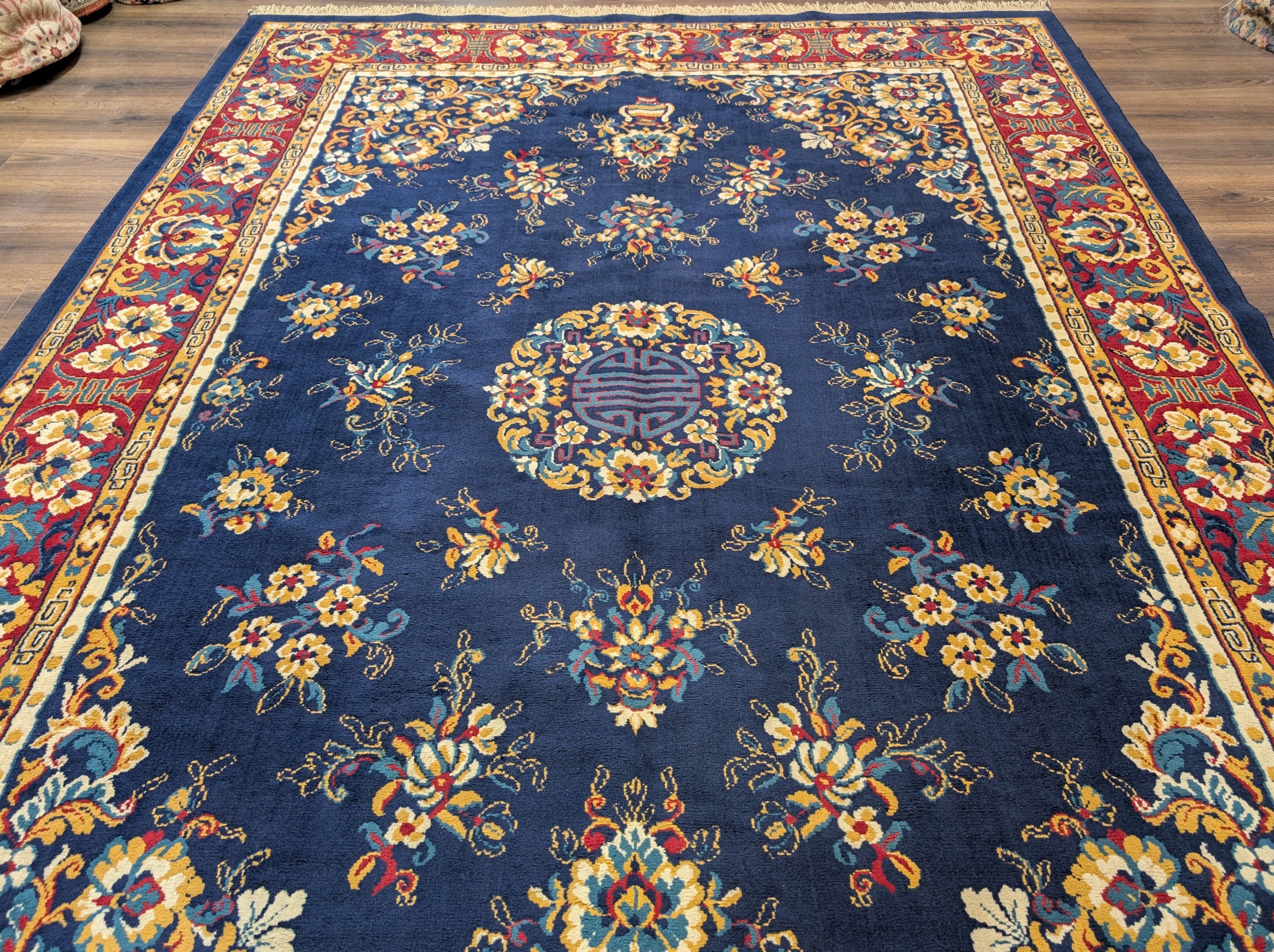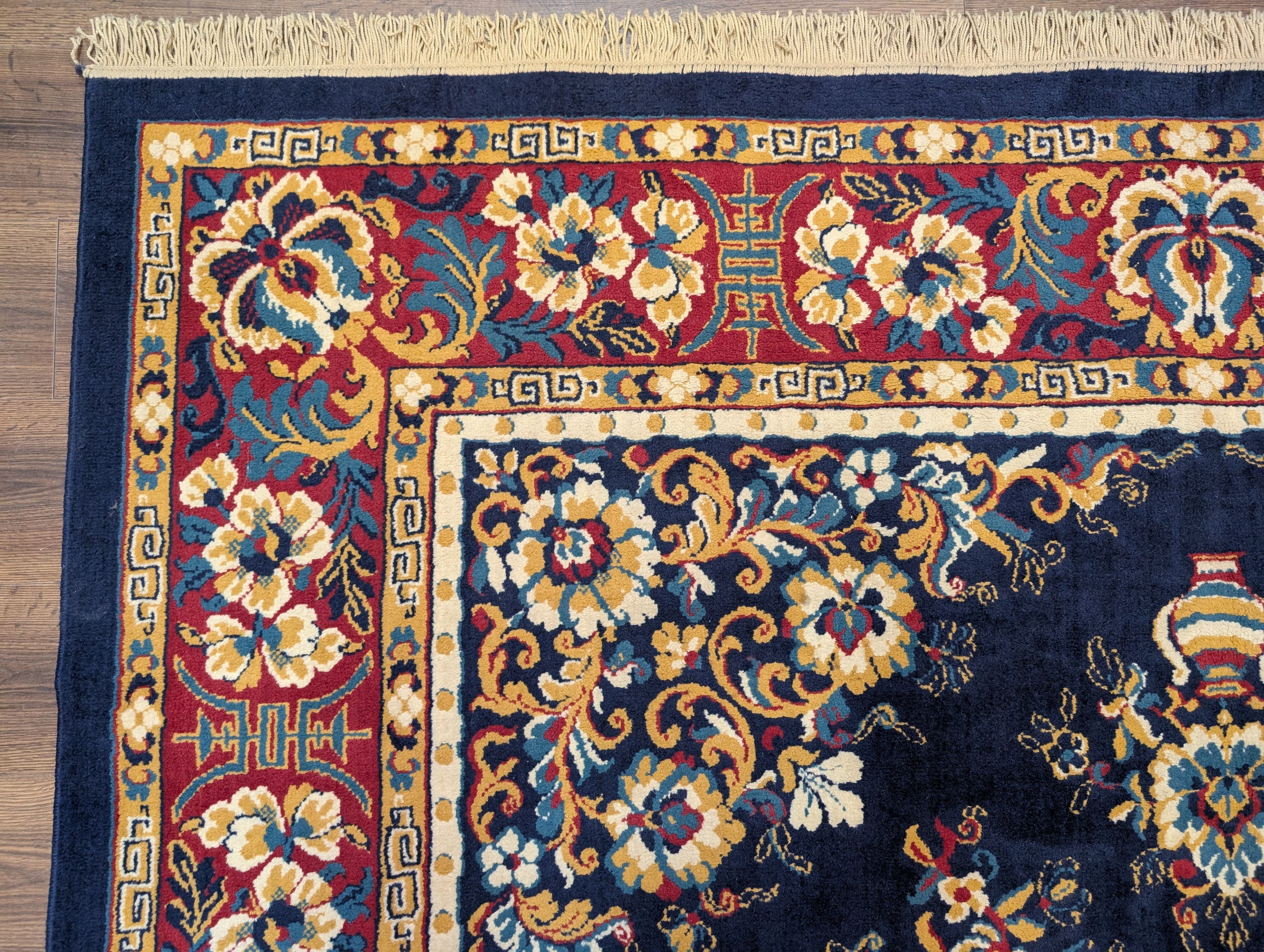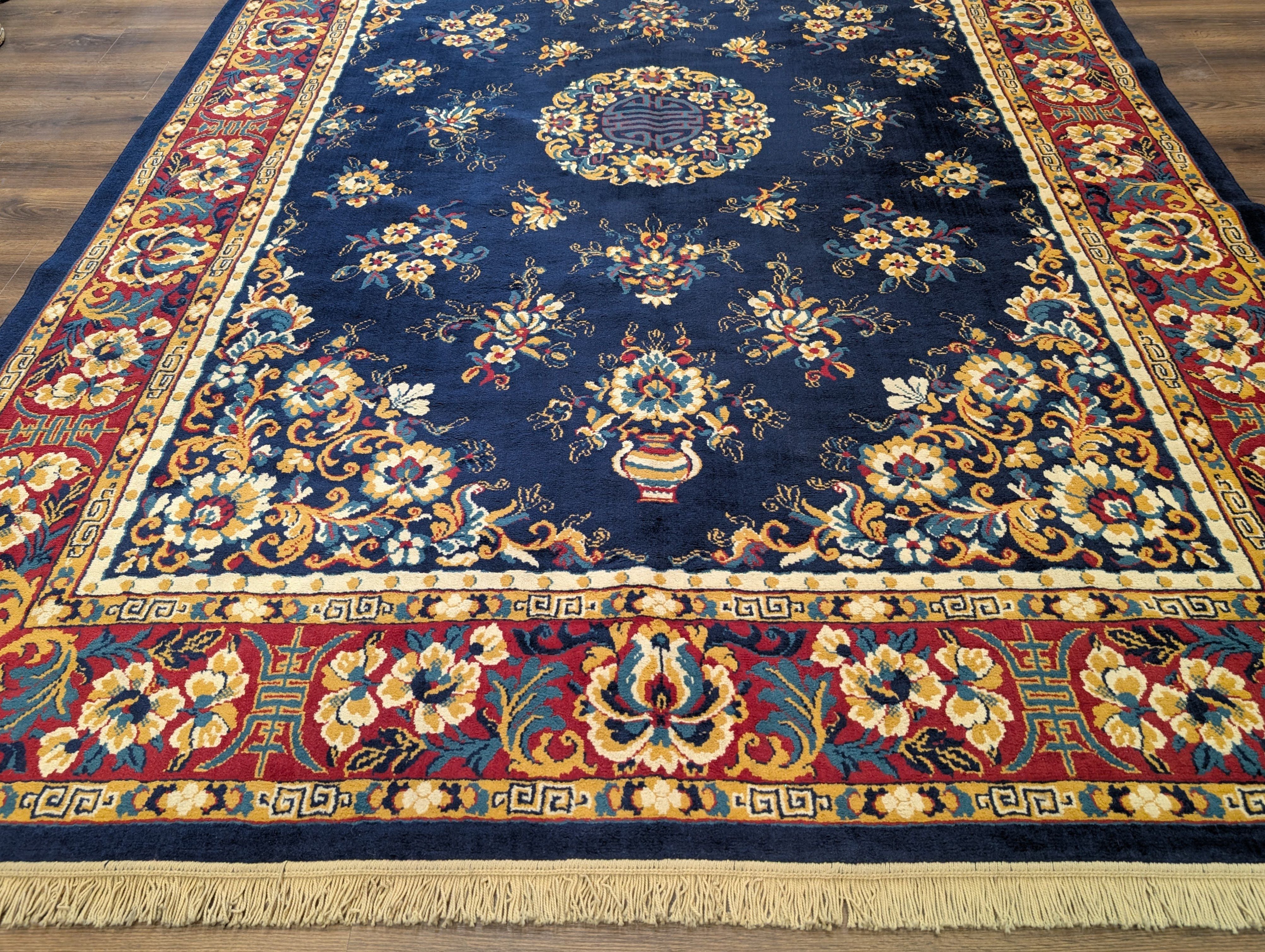 Chinese Wool Rug 8x11, Navy Blue, Asian Oriental Carpet