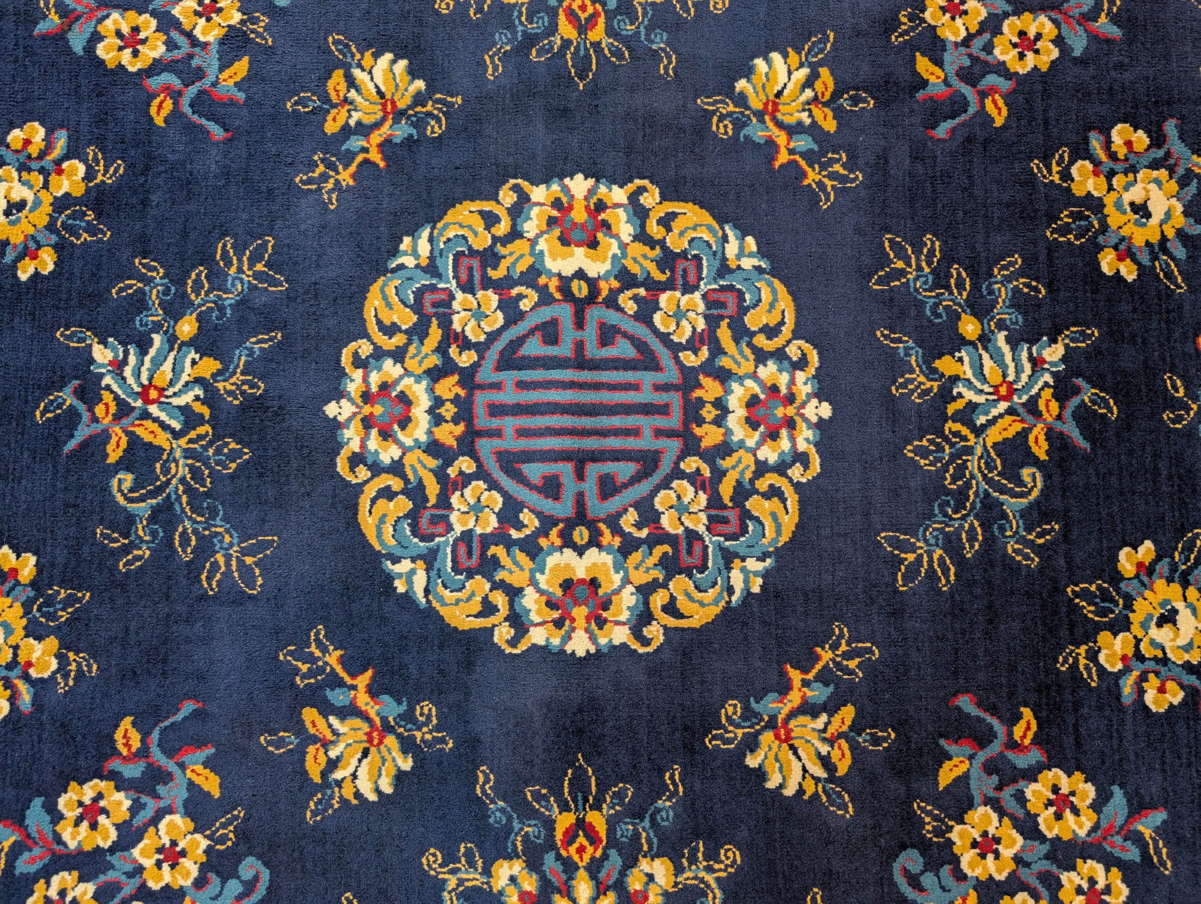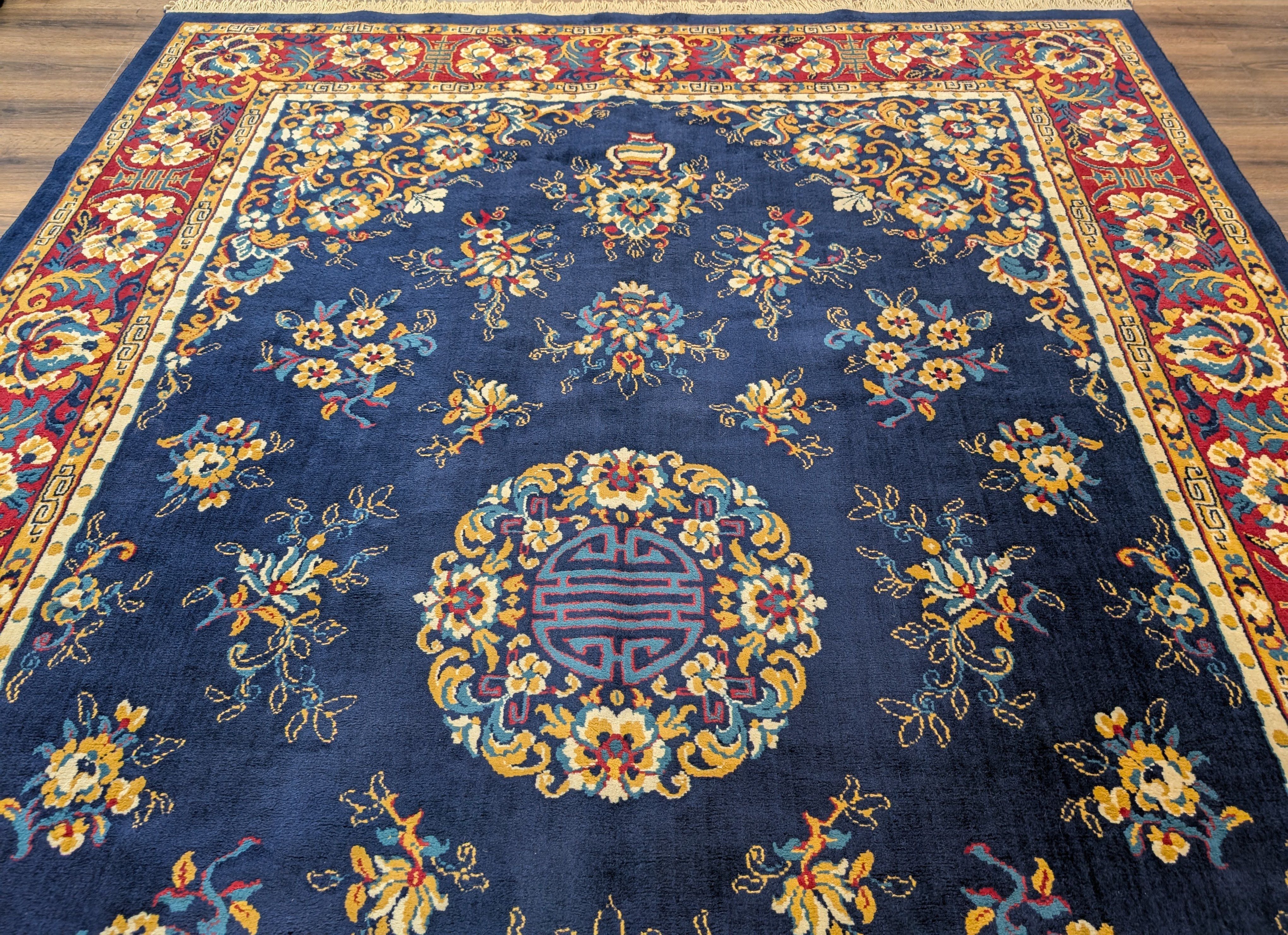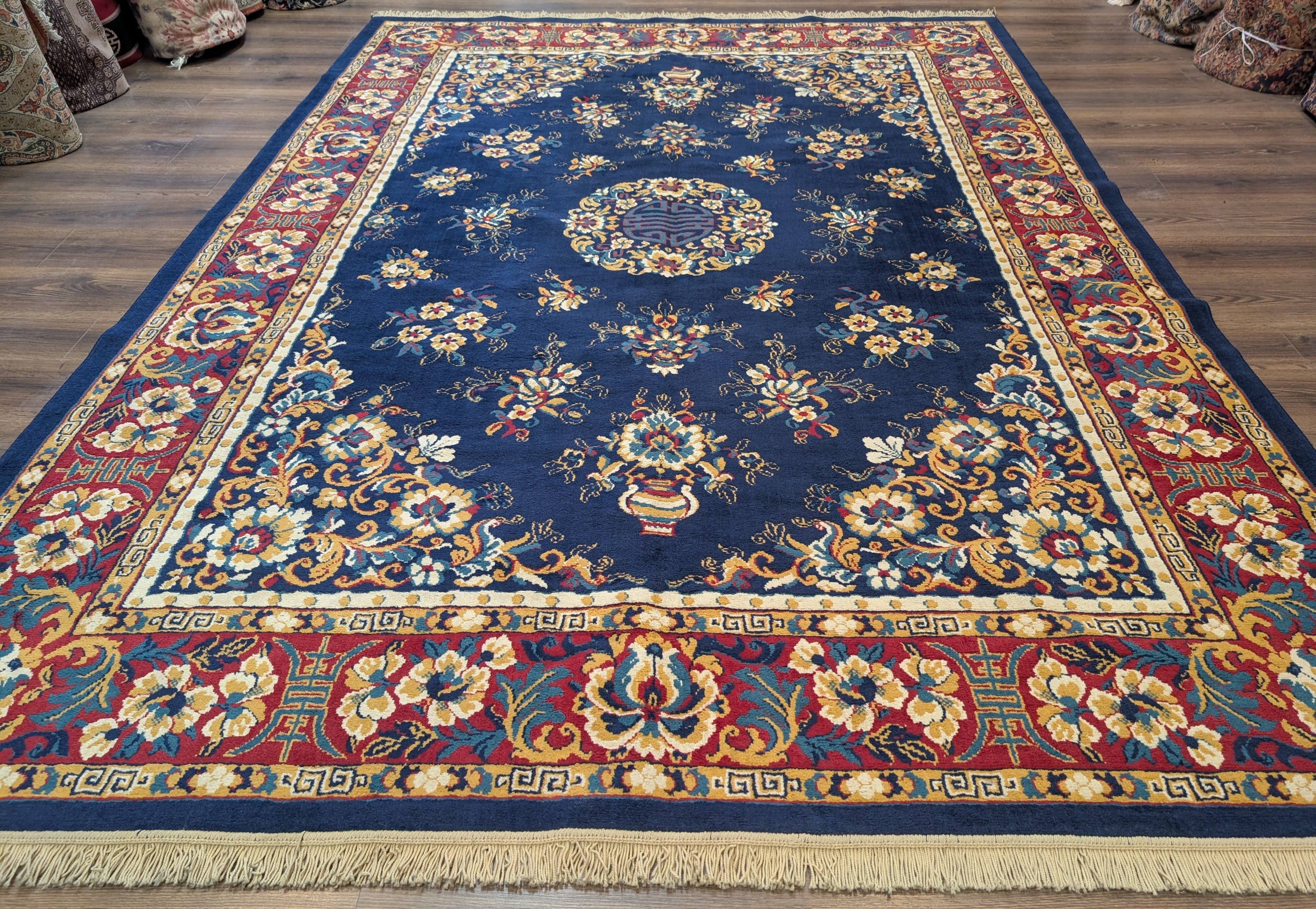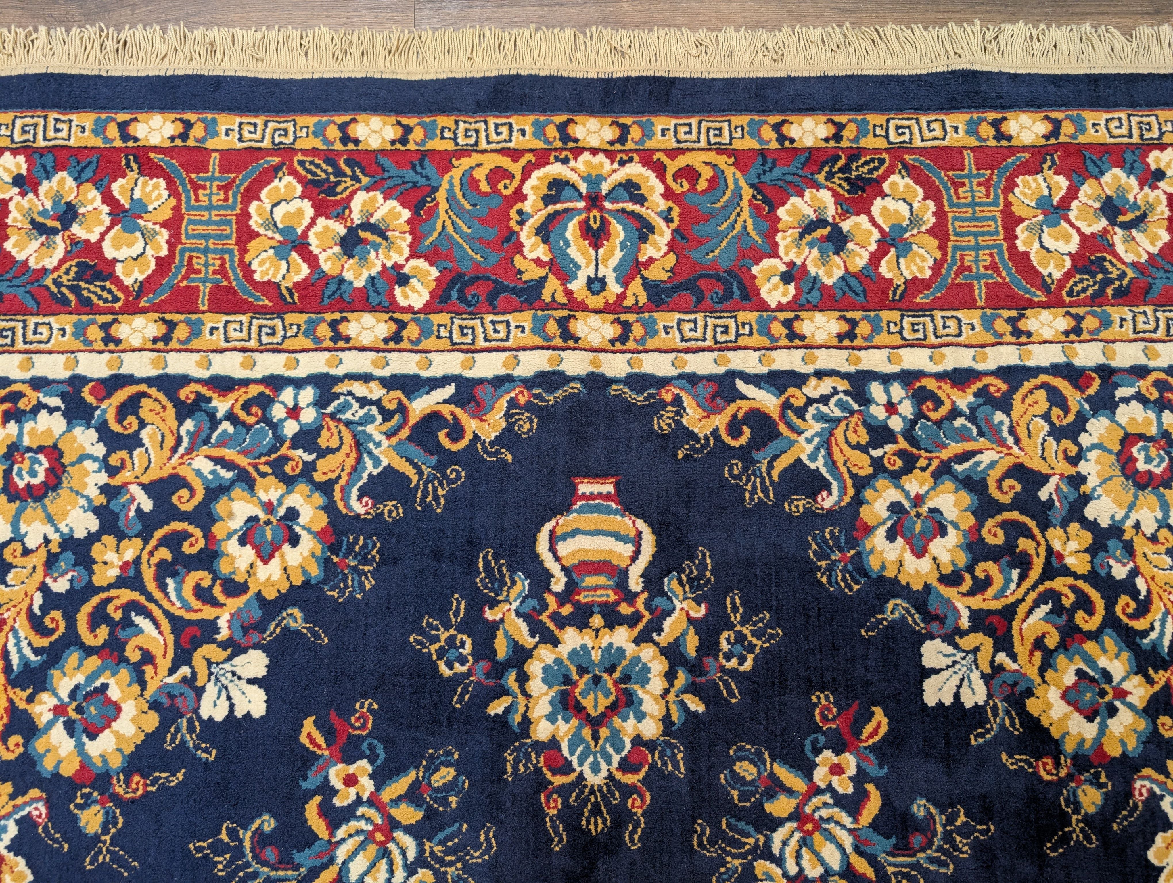 Chinese Wool Rug 8x11, Navy Blue, Asian Oriental Carpet
