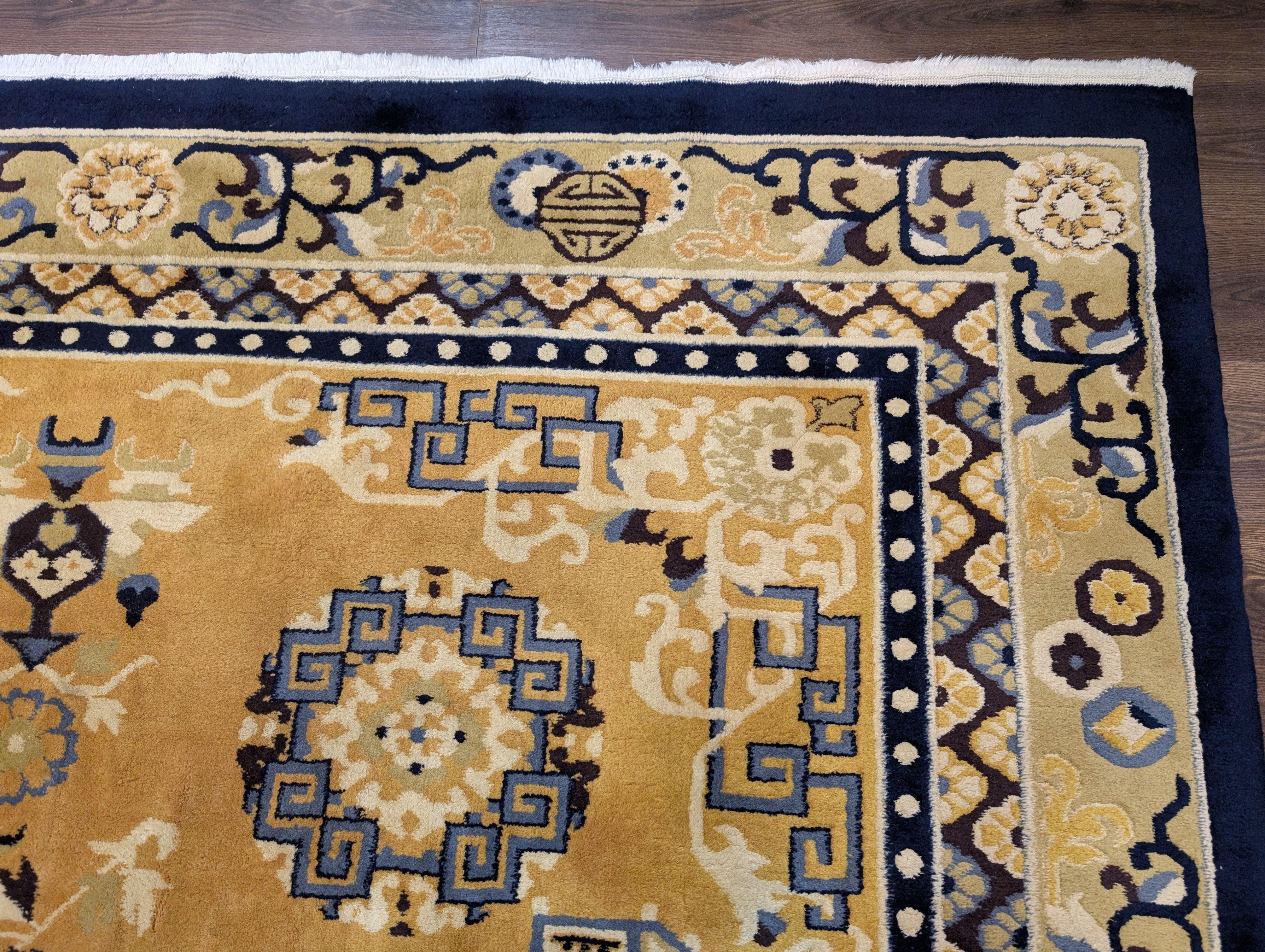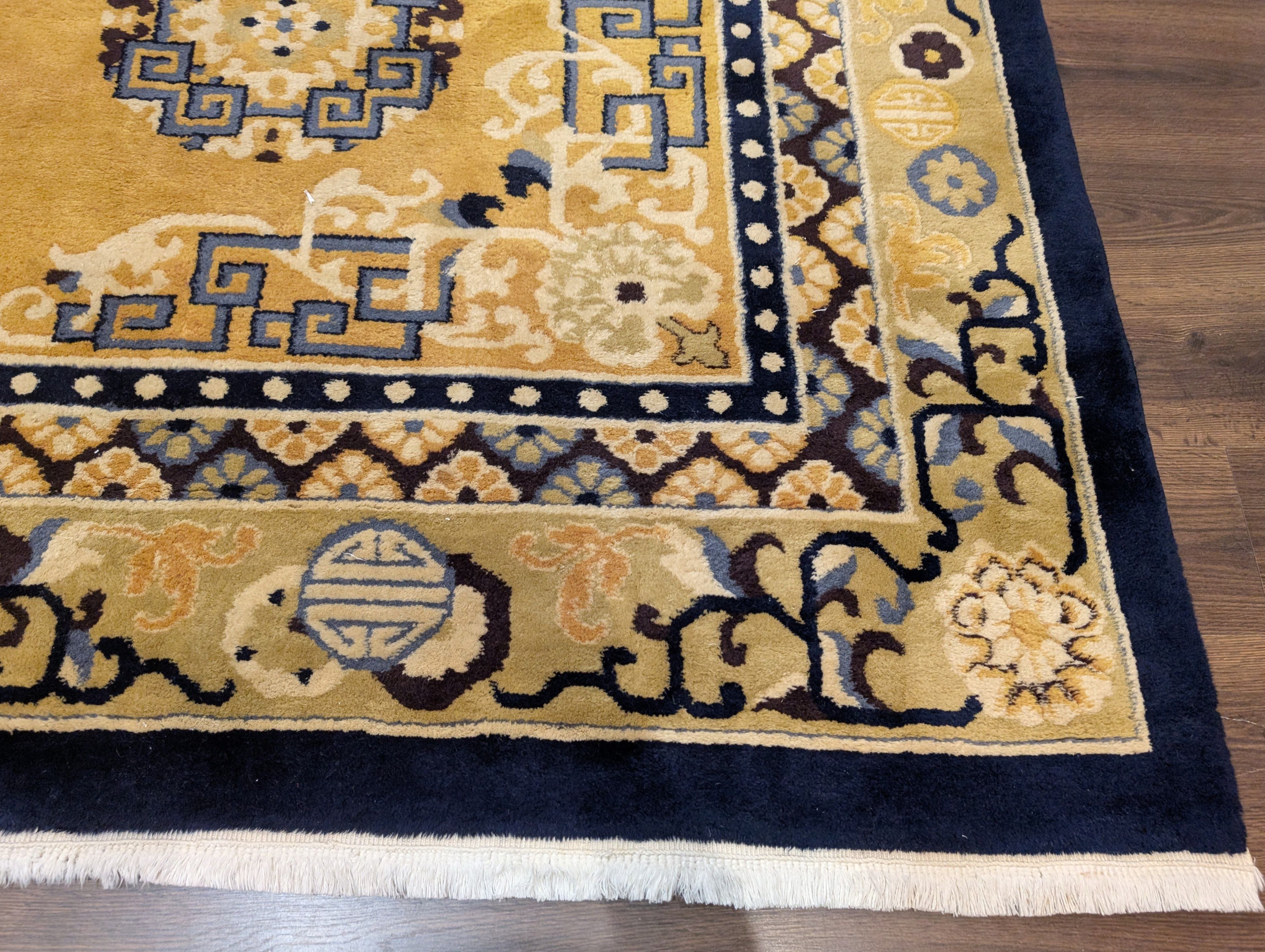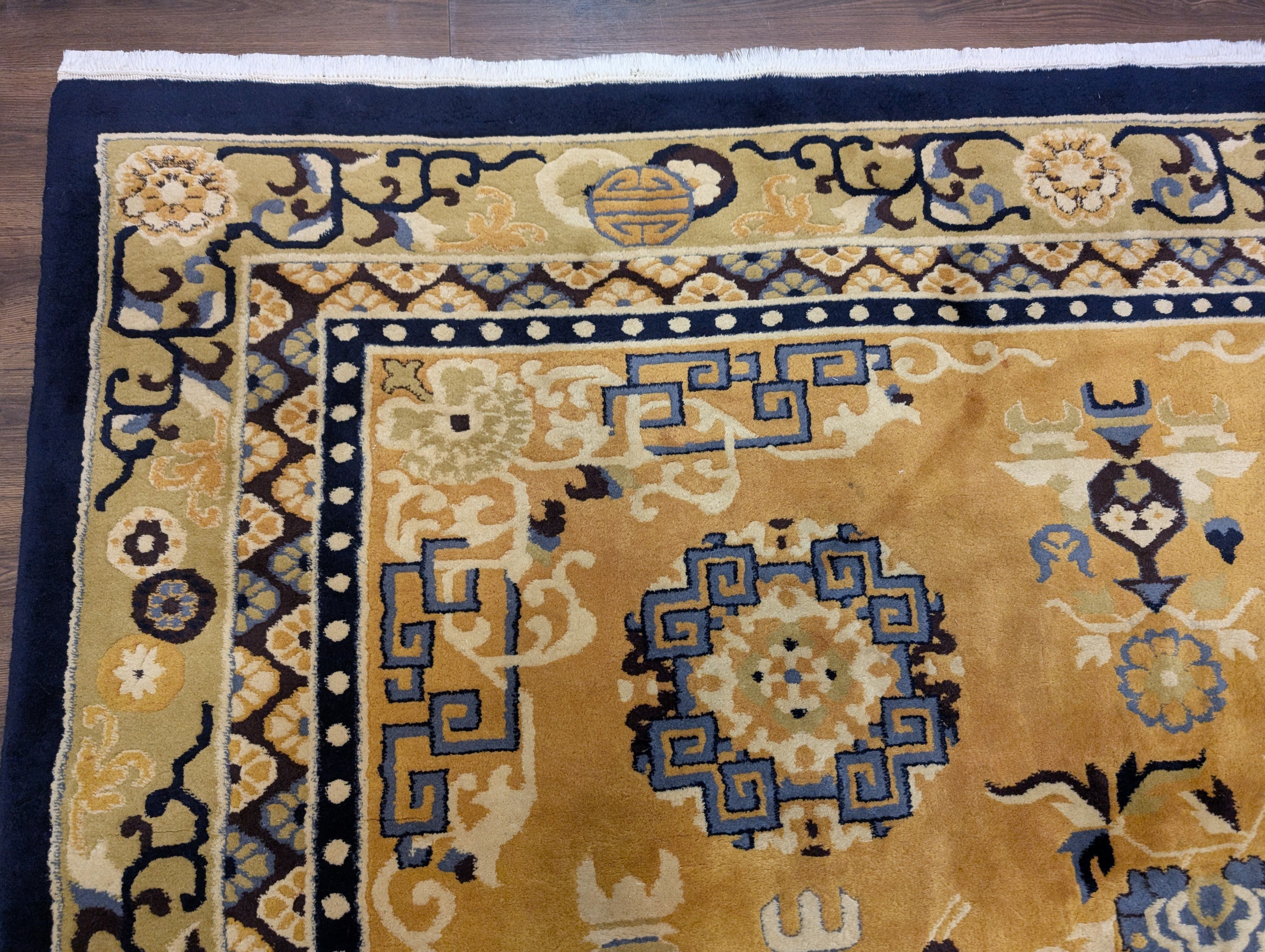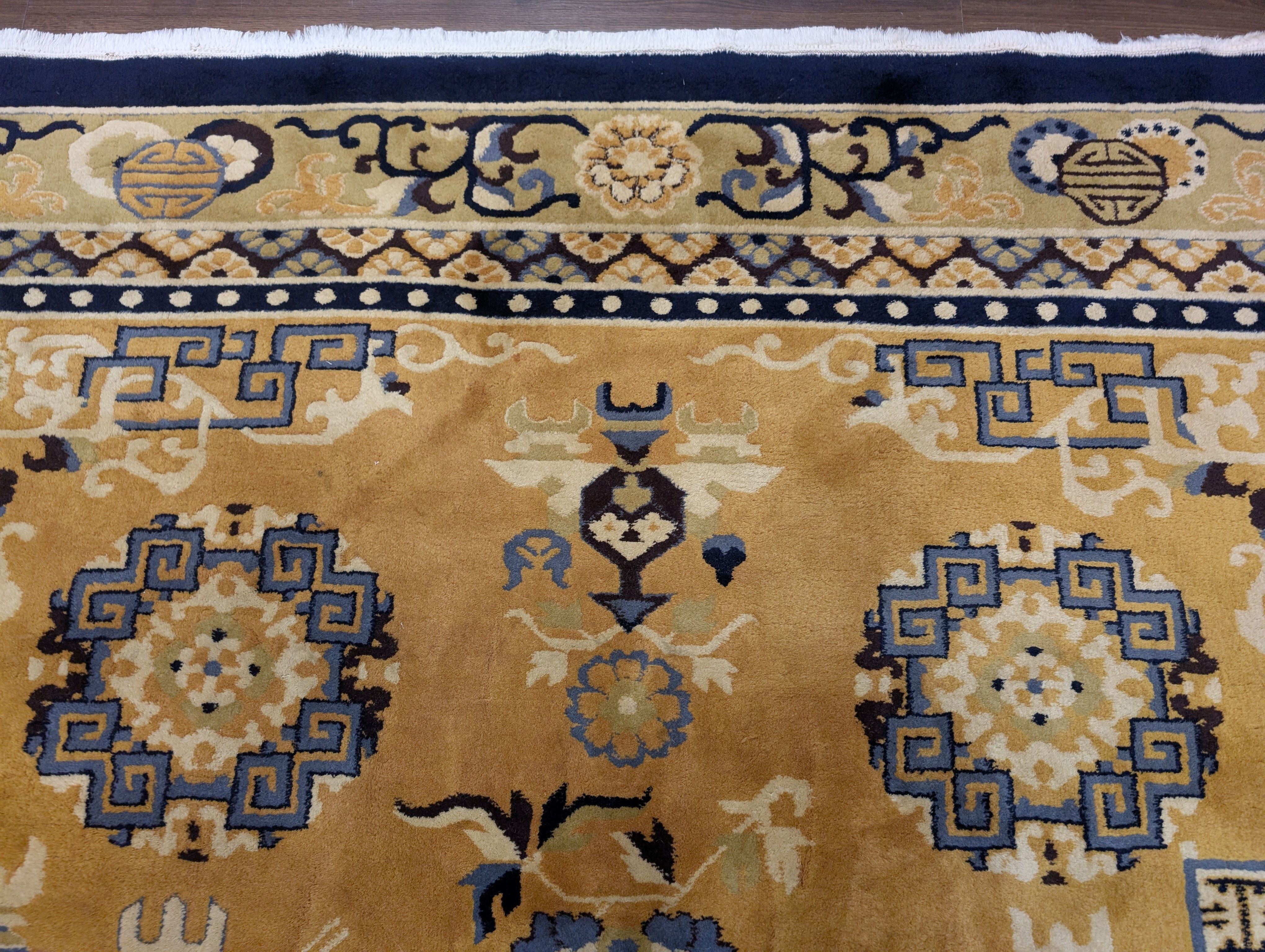 Chinese Wool Rug 9x12, Gold Yellow Chinese 90 Line Carpet
