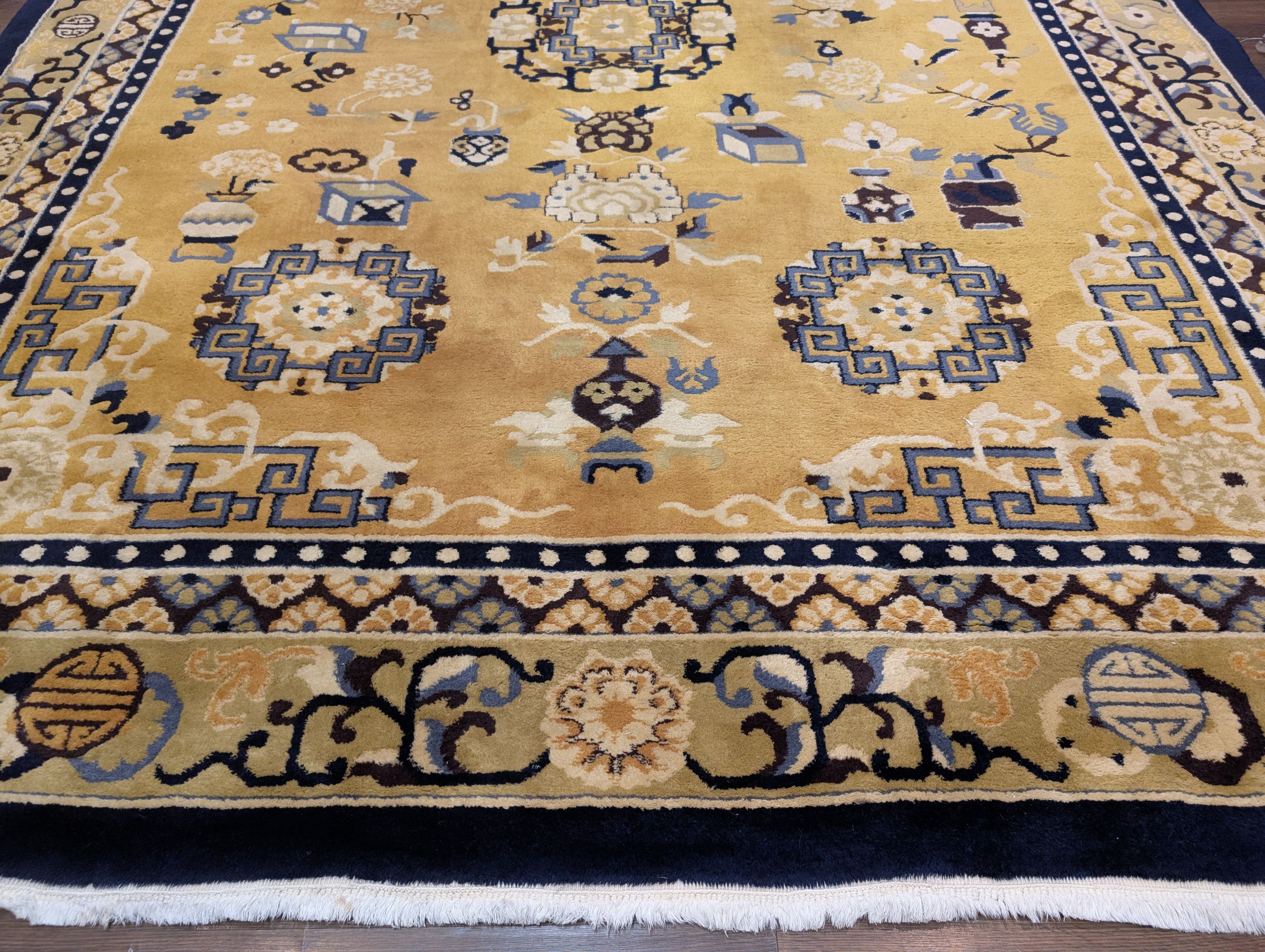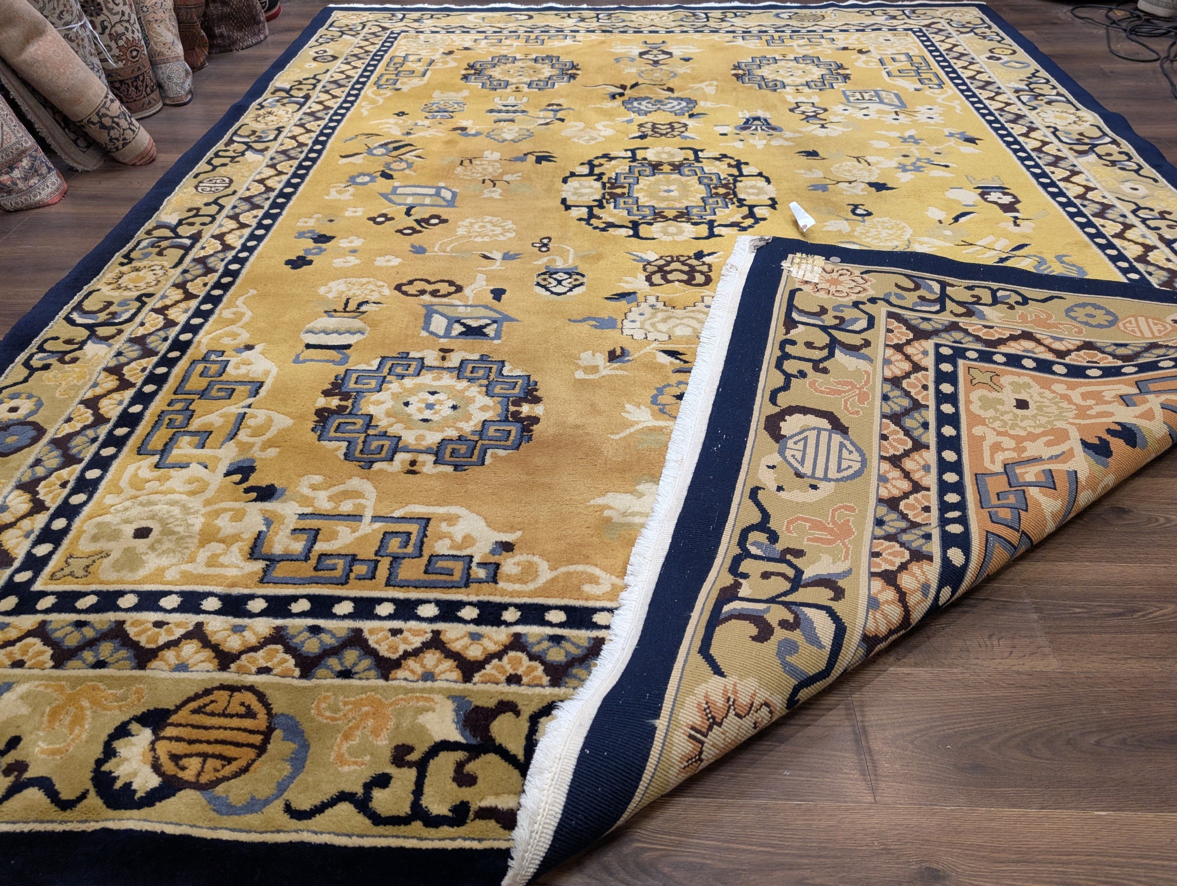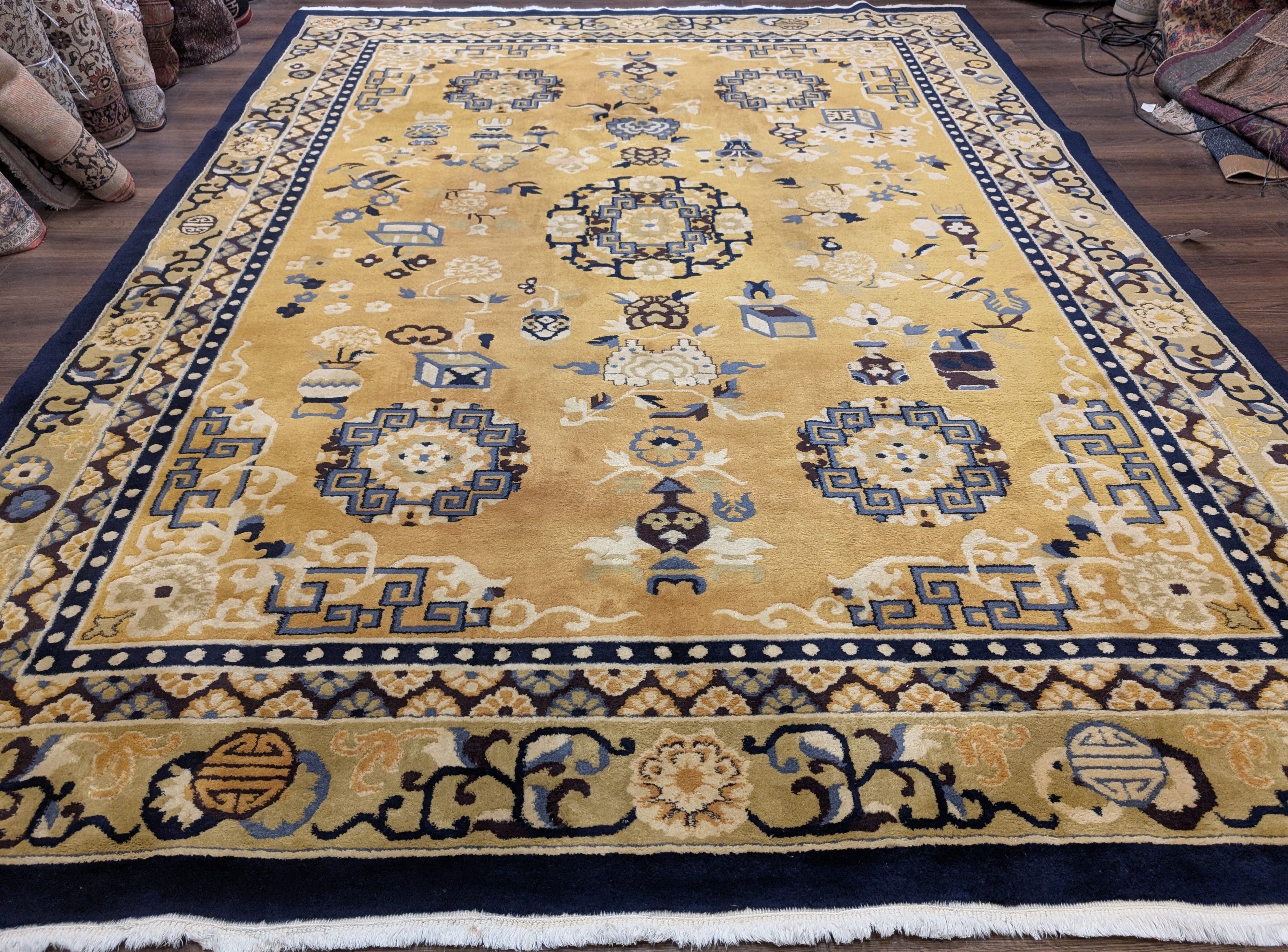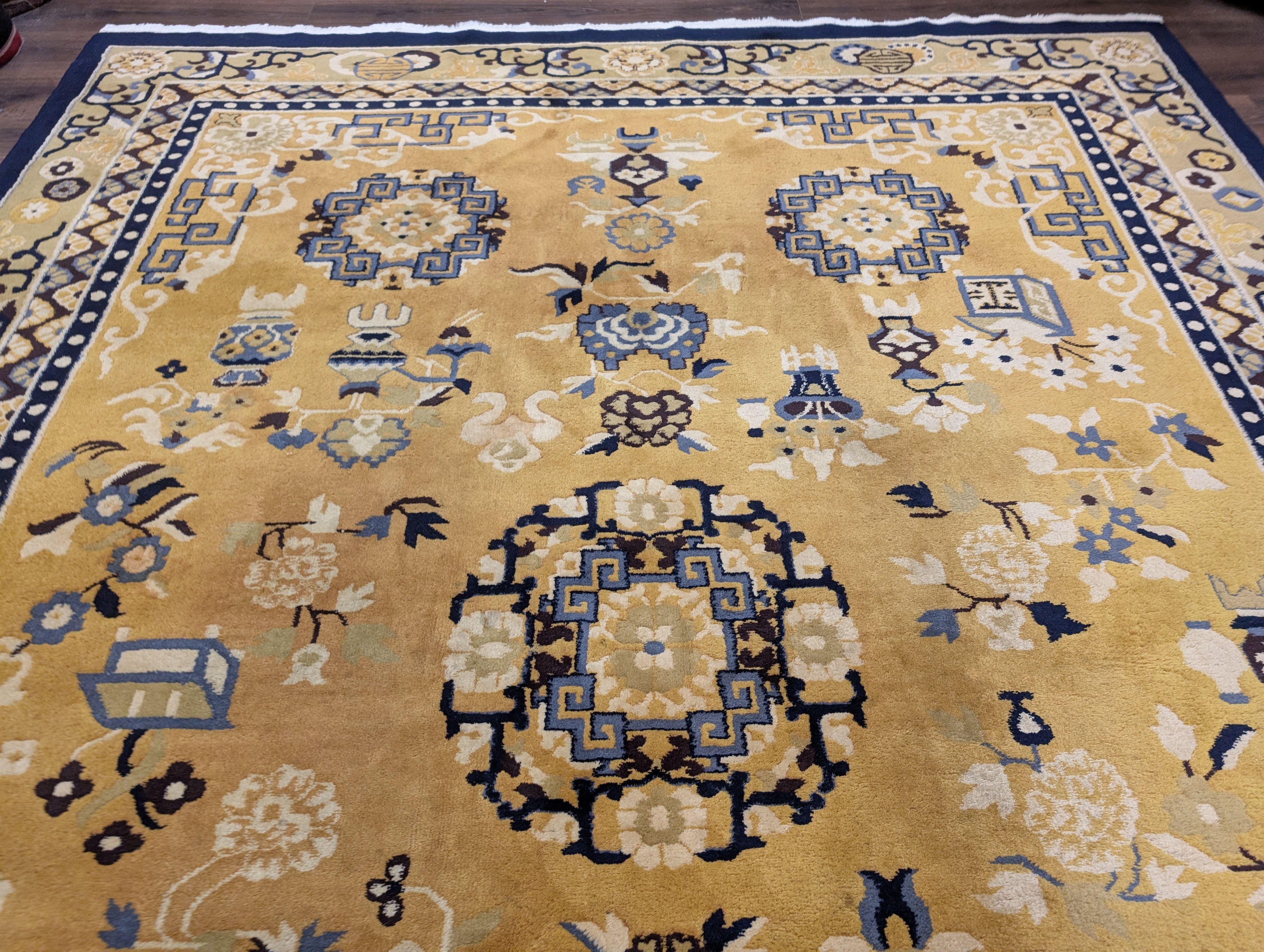 Chinese Wool Rug 9x12, Gold Yellow Chinese 90 Line Carpet