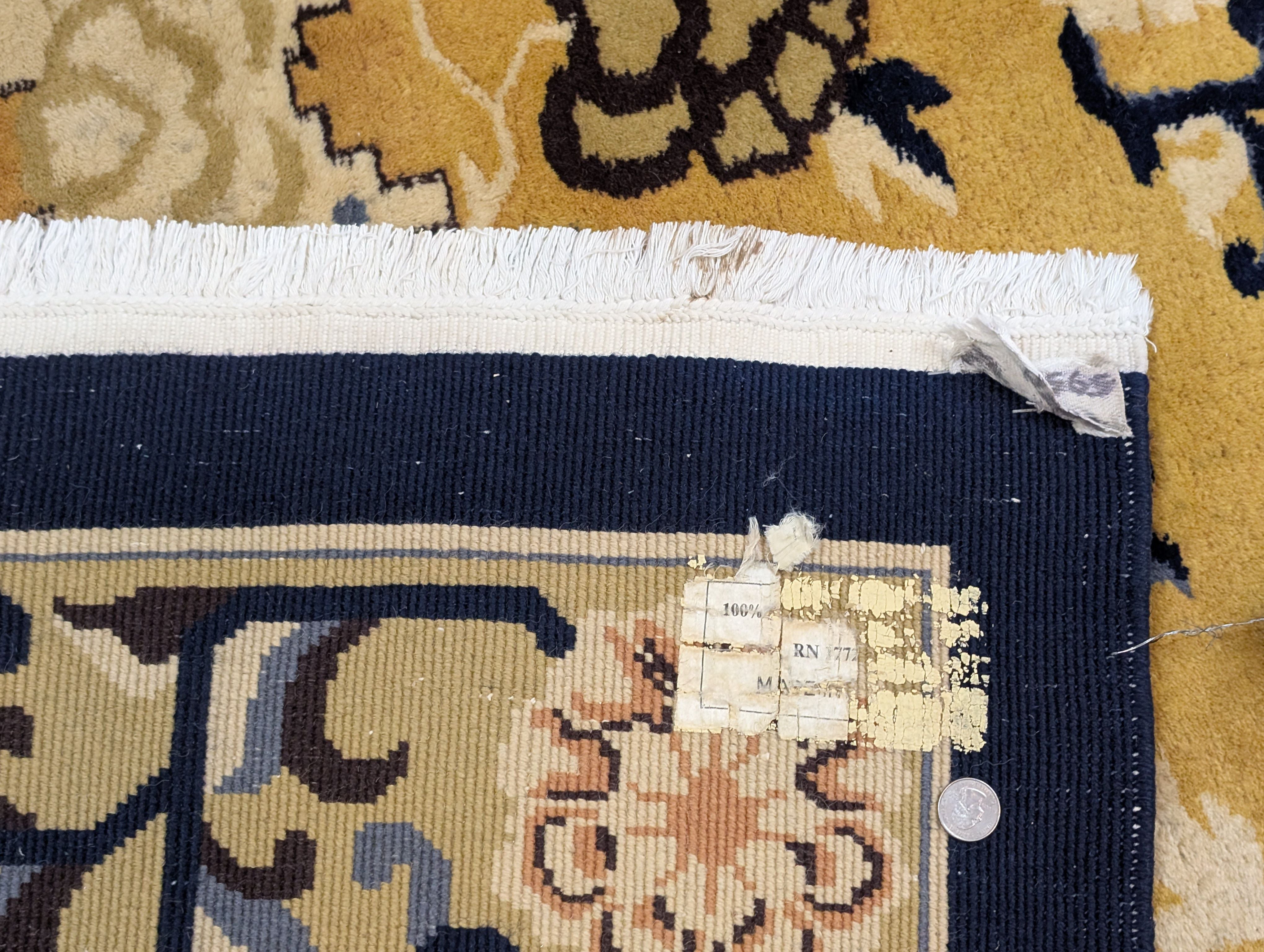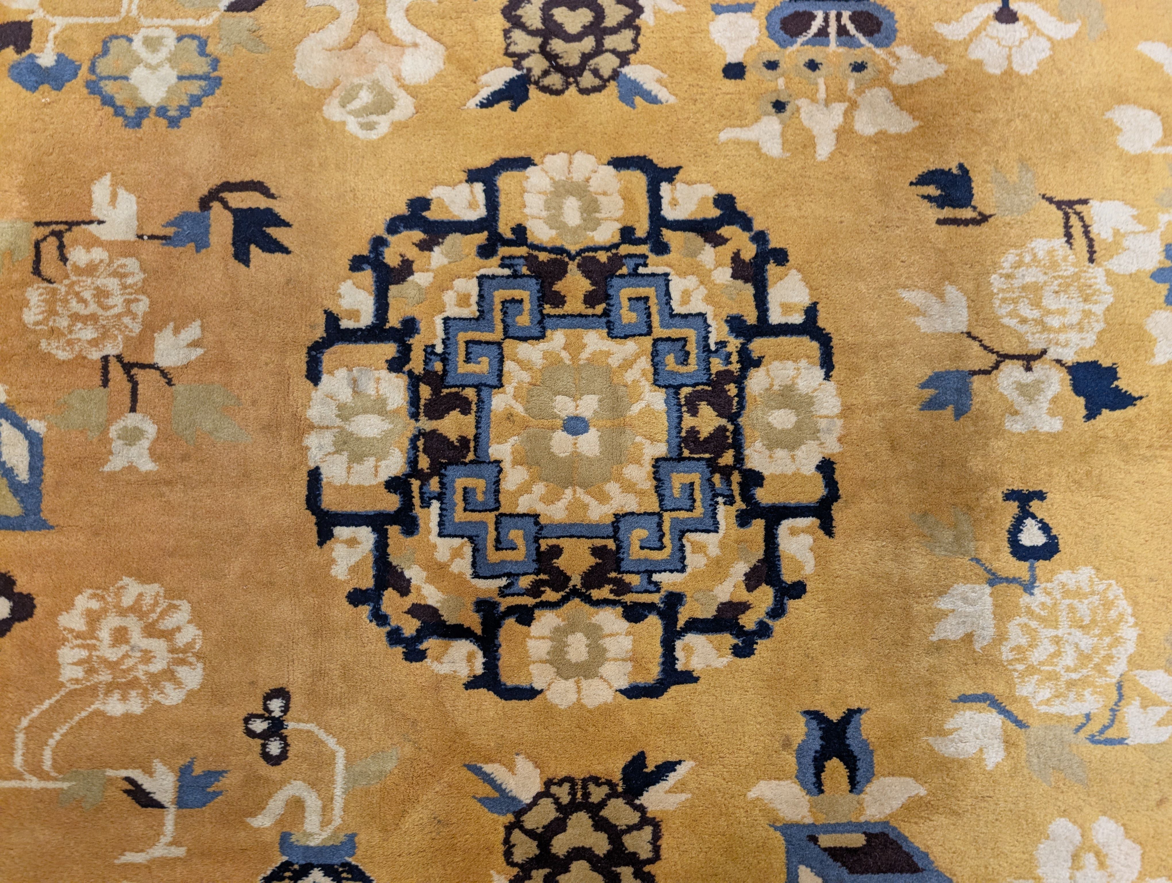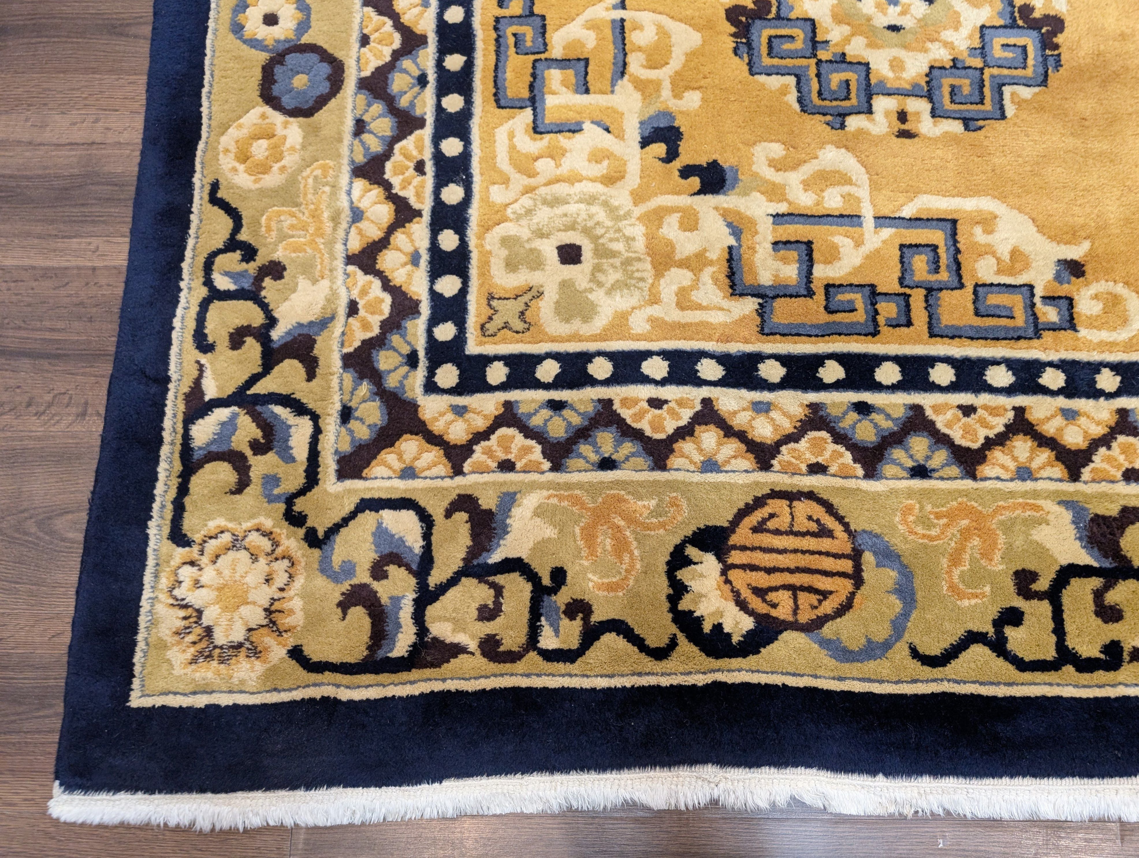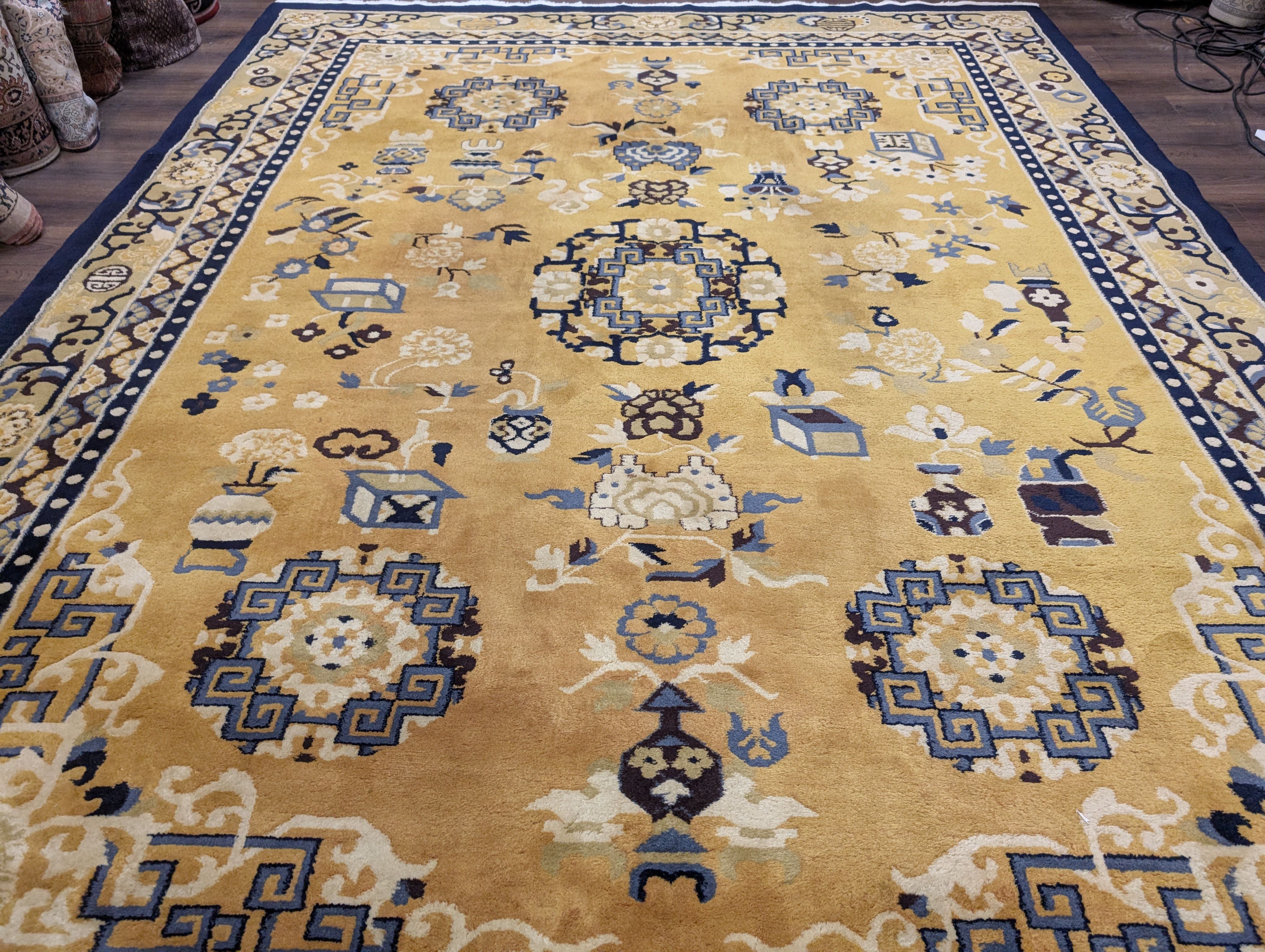 Chinese Wool Rug 9x12, Gold Yellow Chinese 90 Line Carpet