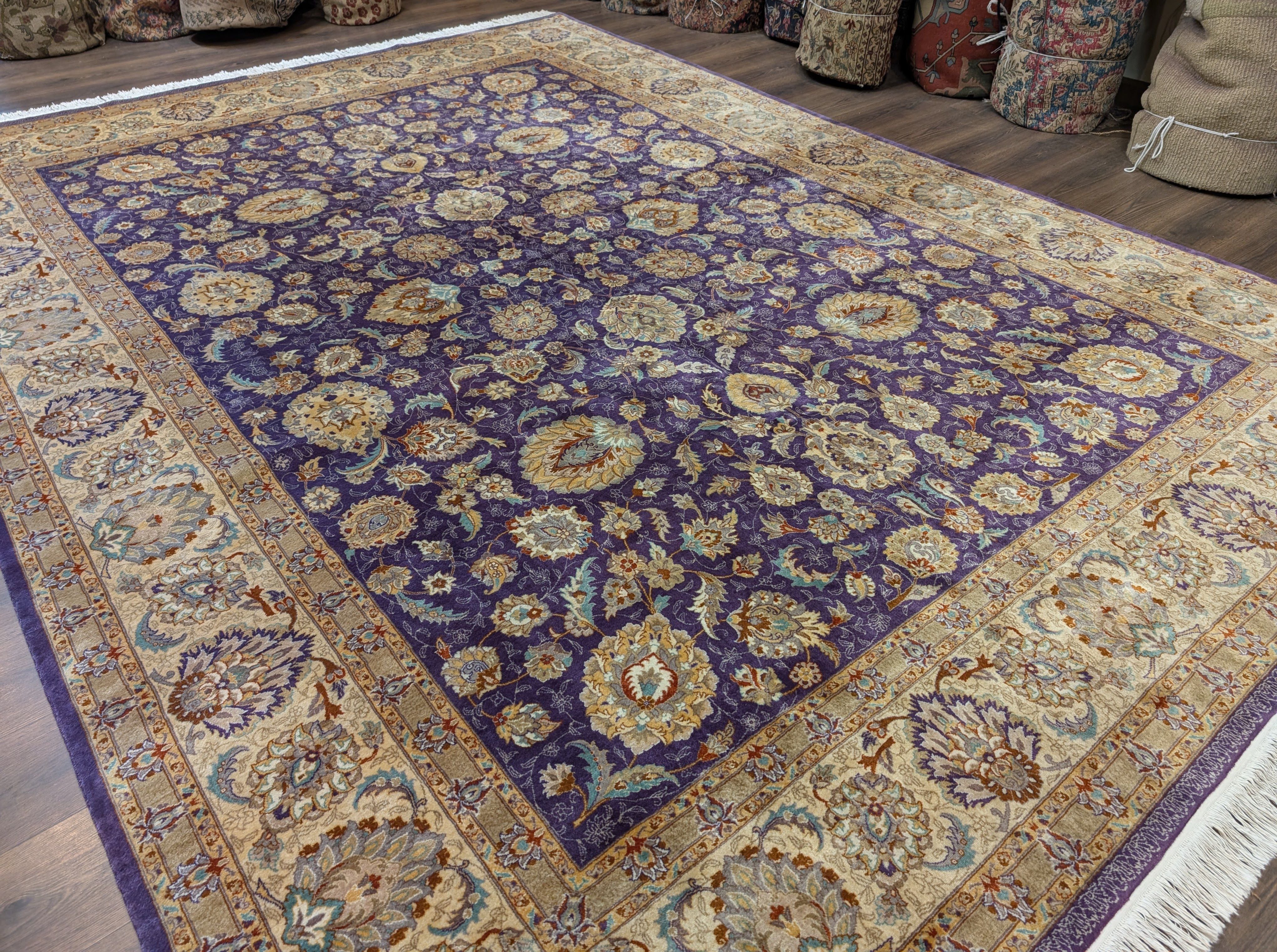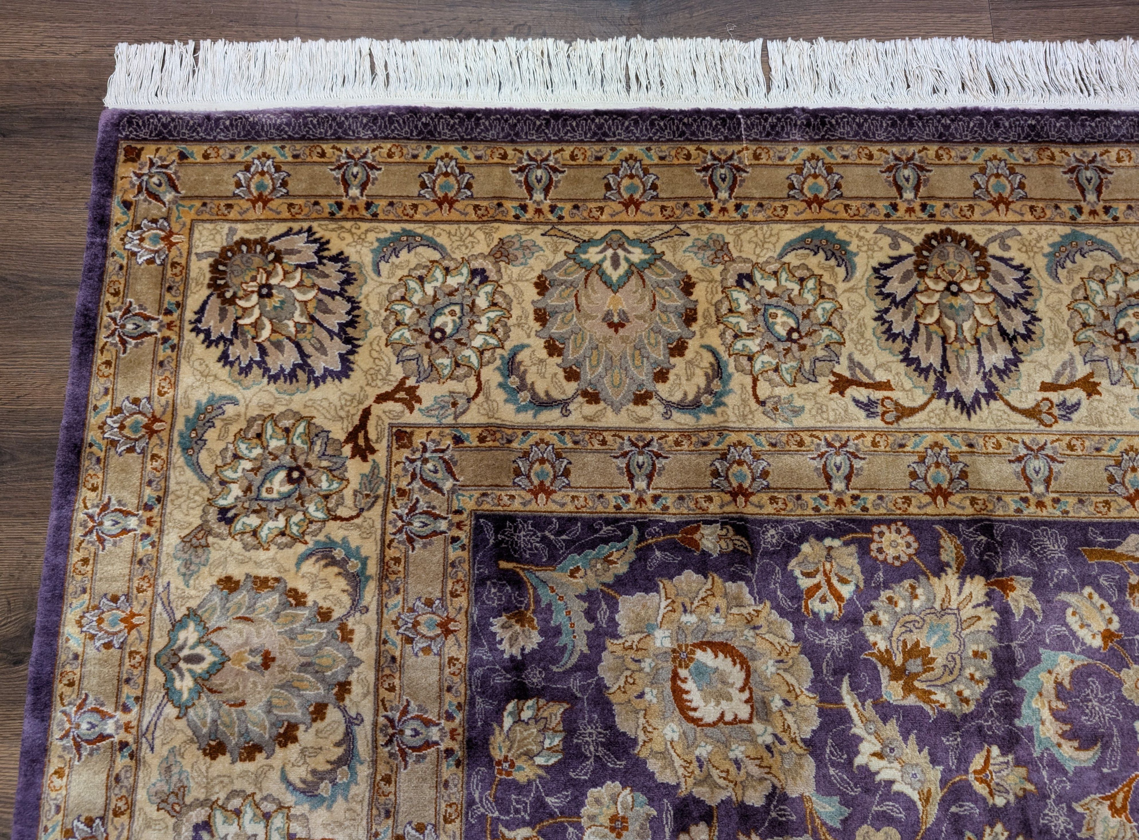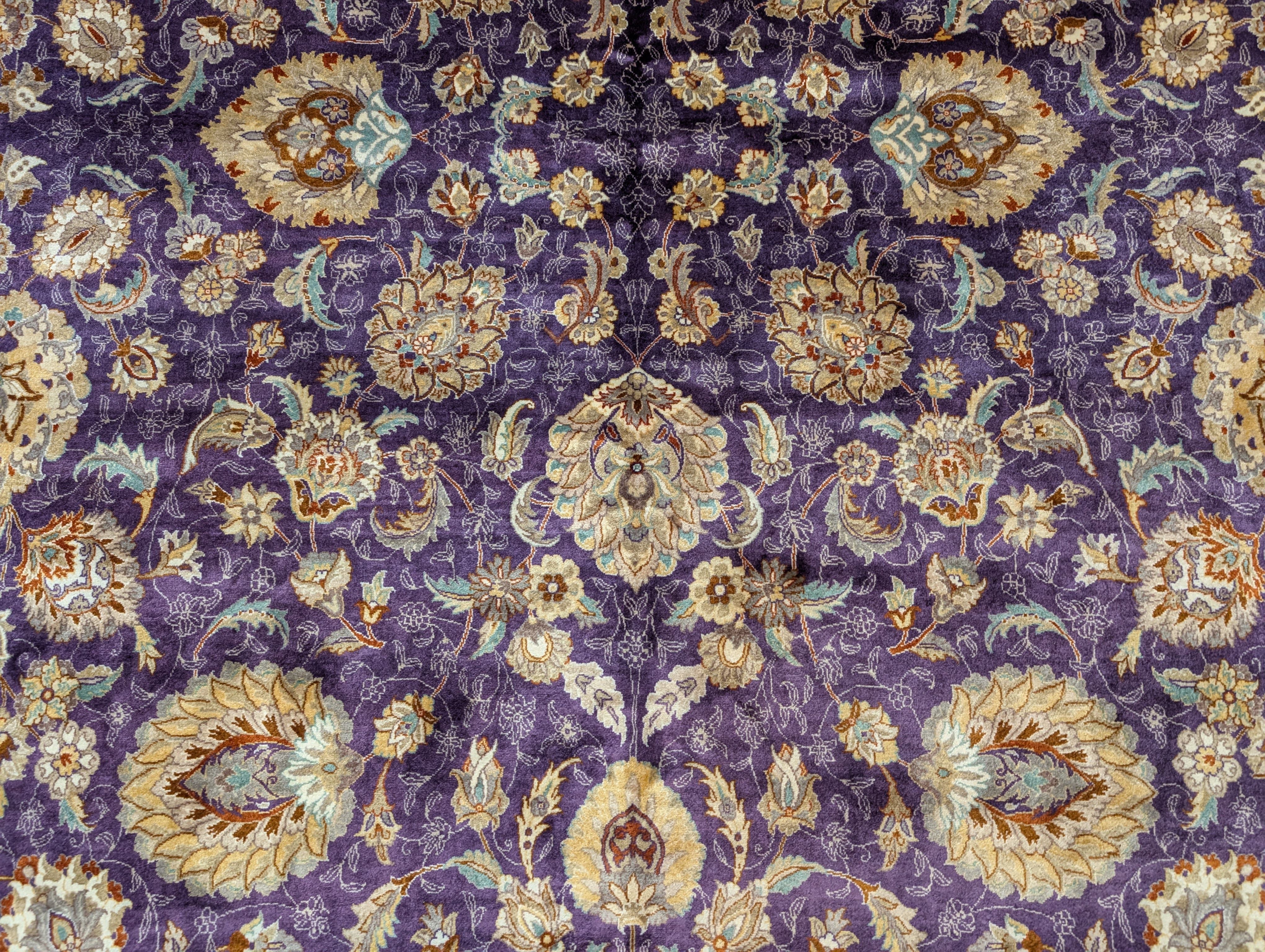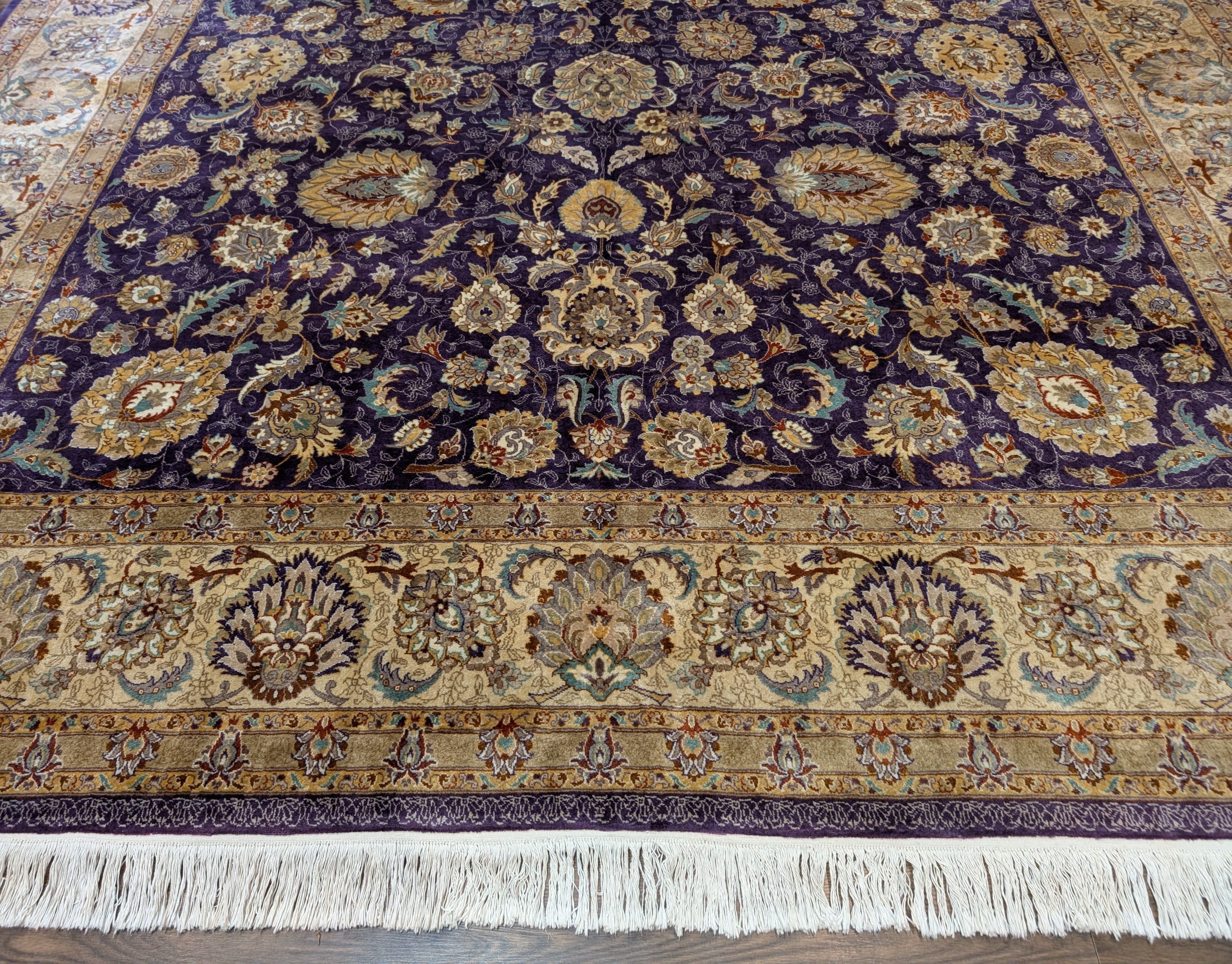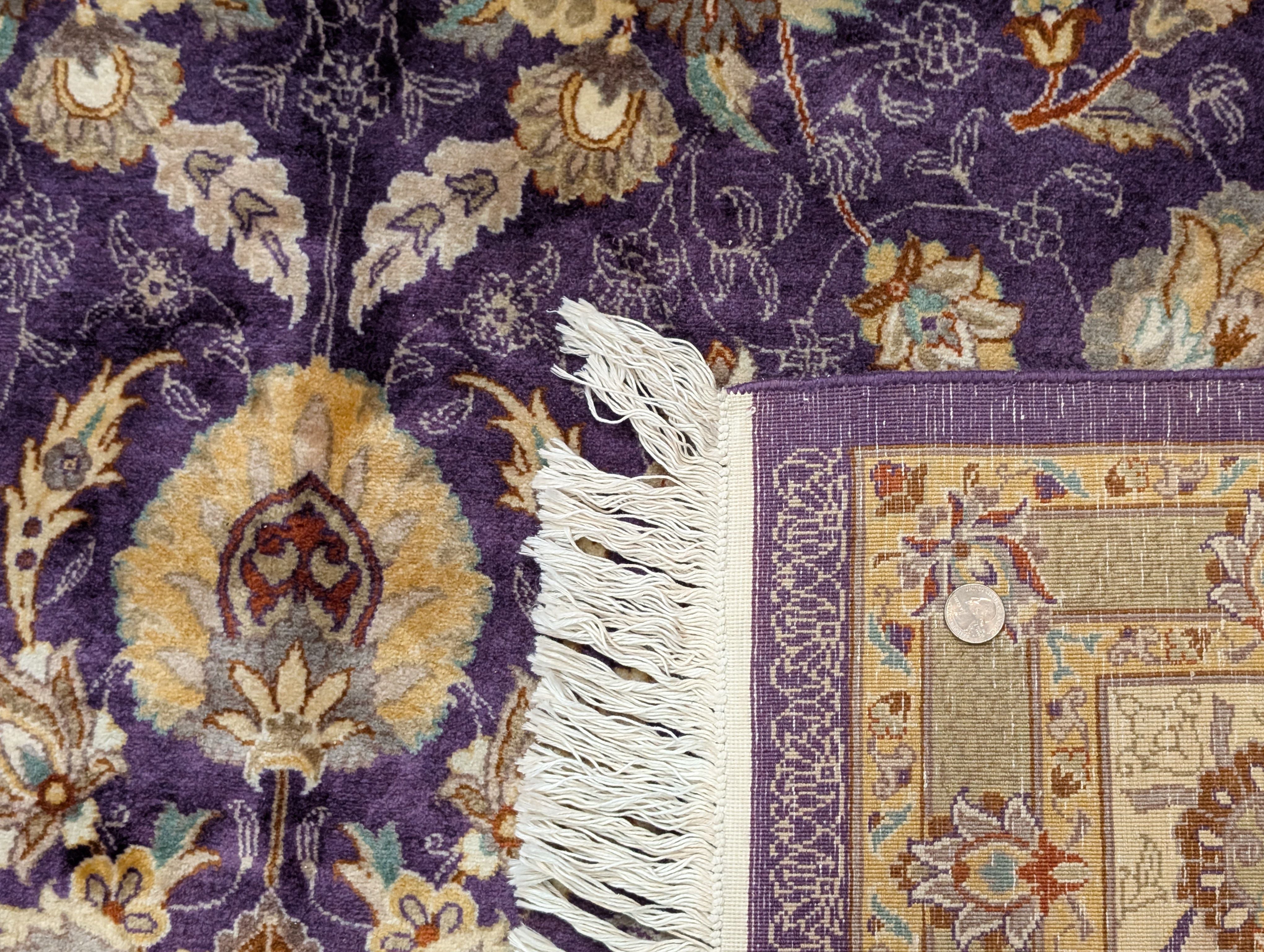 Fine Pak Persian Rug 9x12, Purple, Floral Allover, Signed By Masterweaver, 310 KPSI