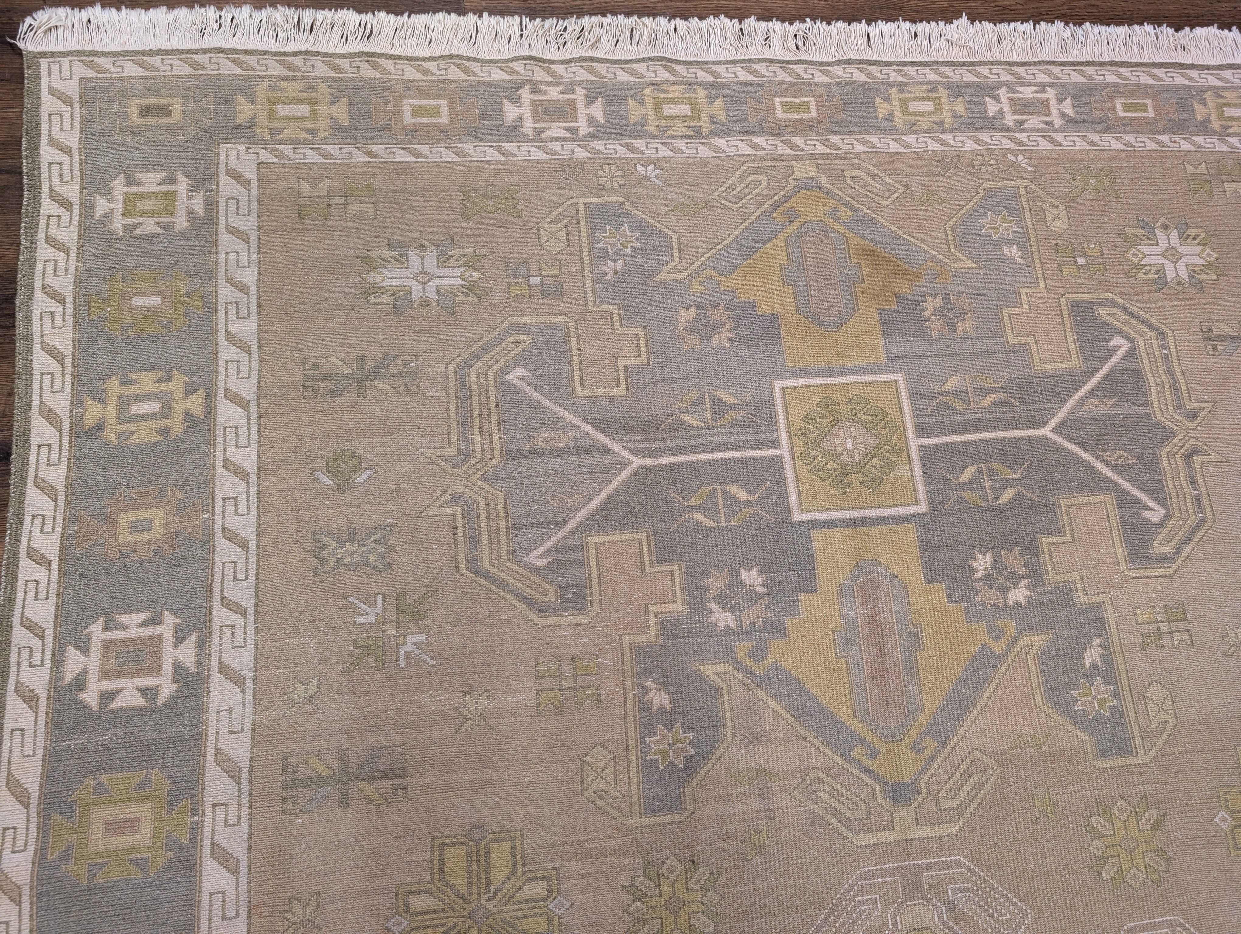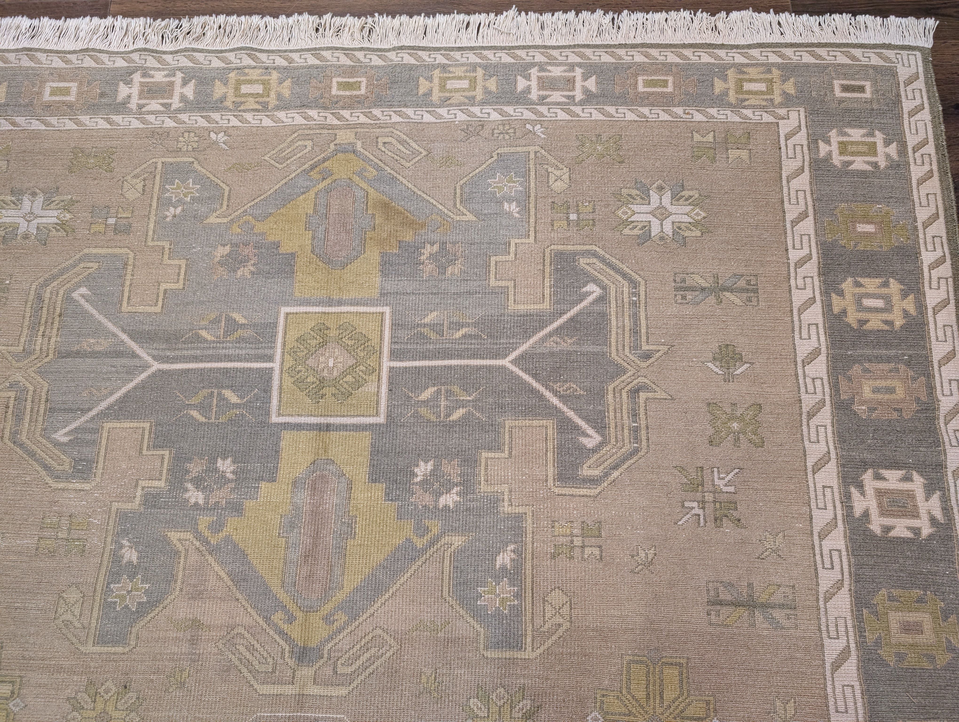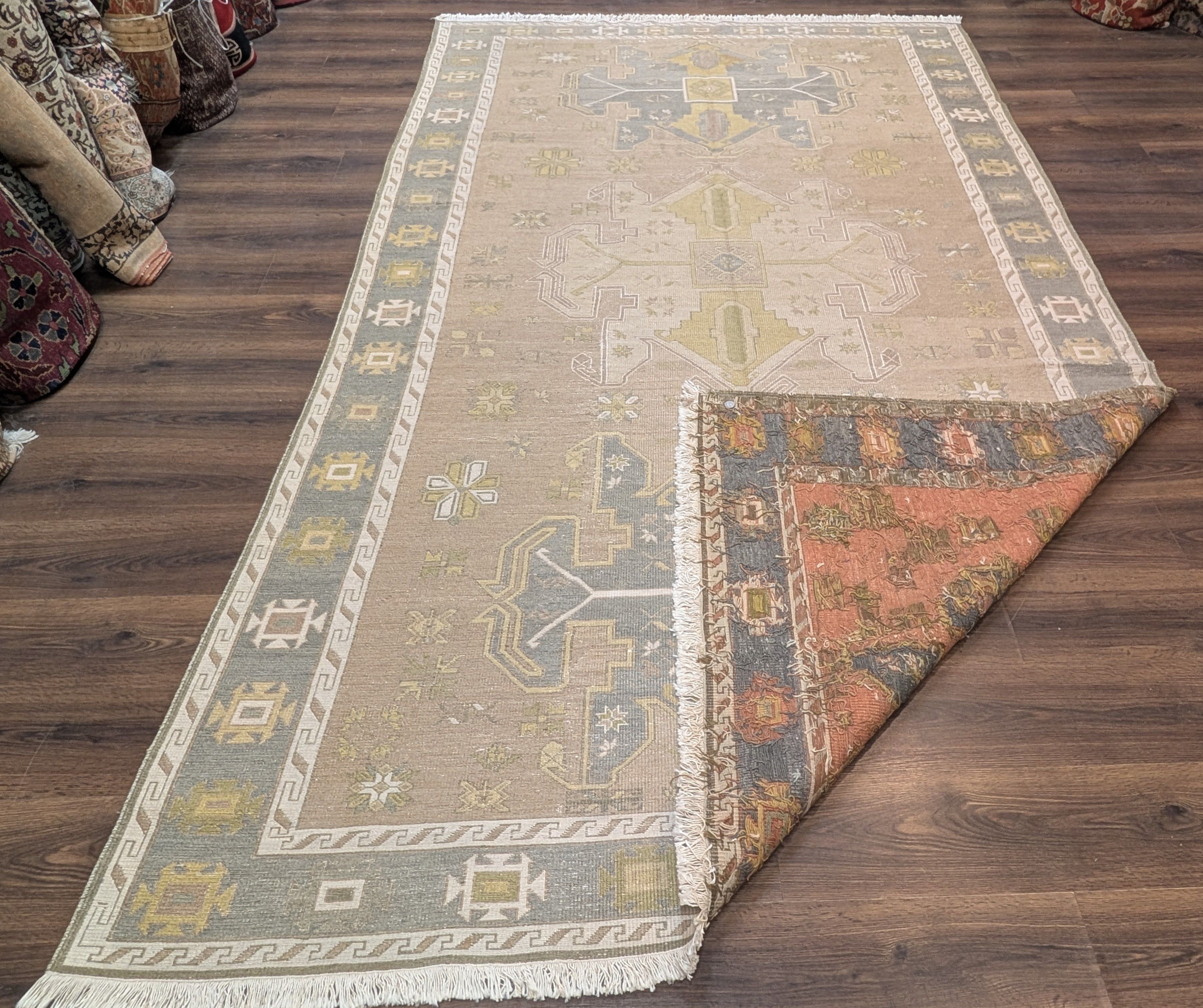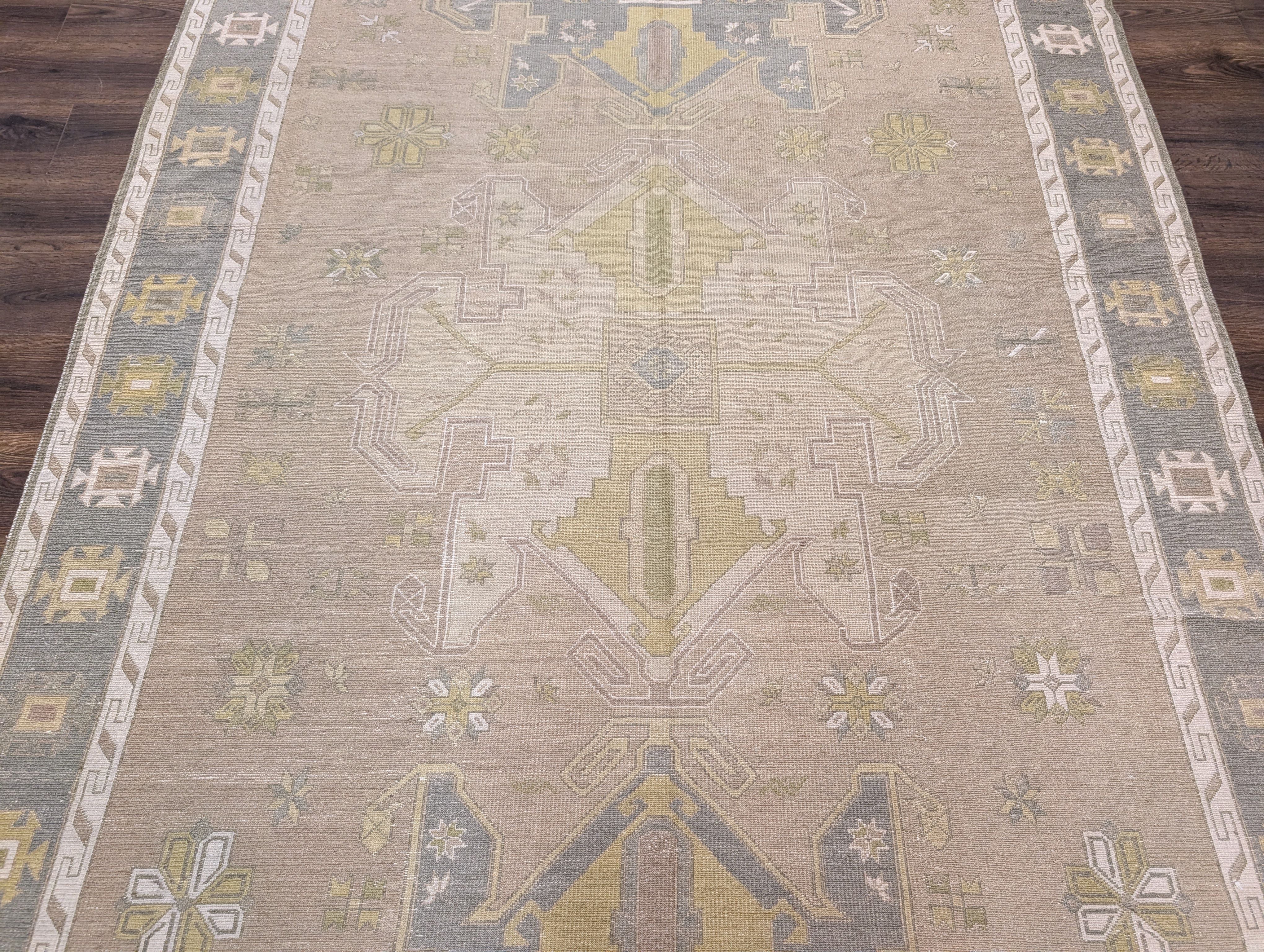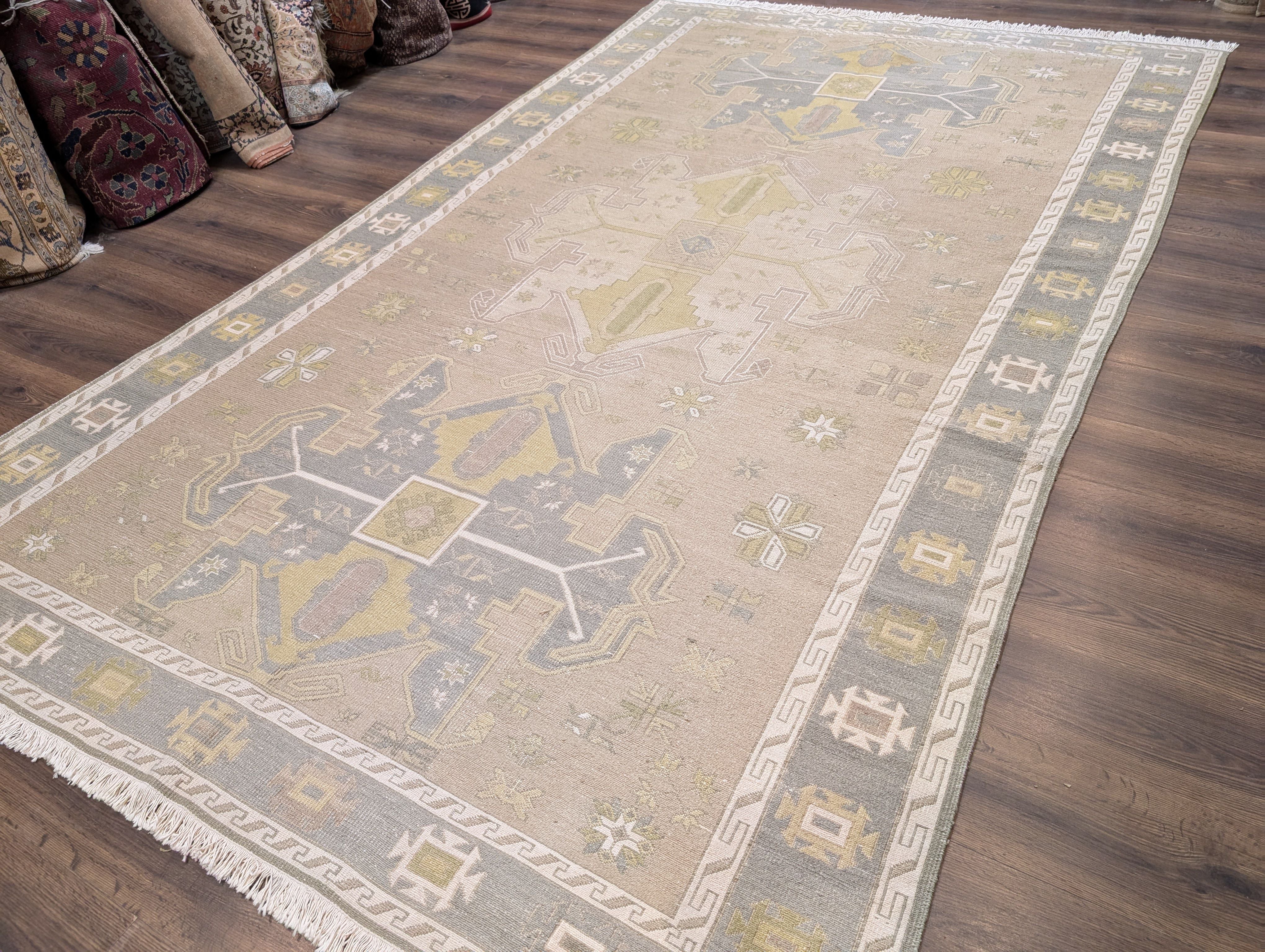 Flatweave Turkish Soumak Rug 7x11, Wool, Large Geometric Medallions, Light Colors