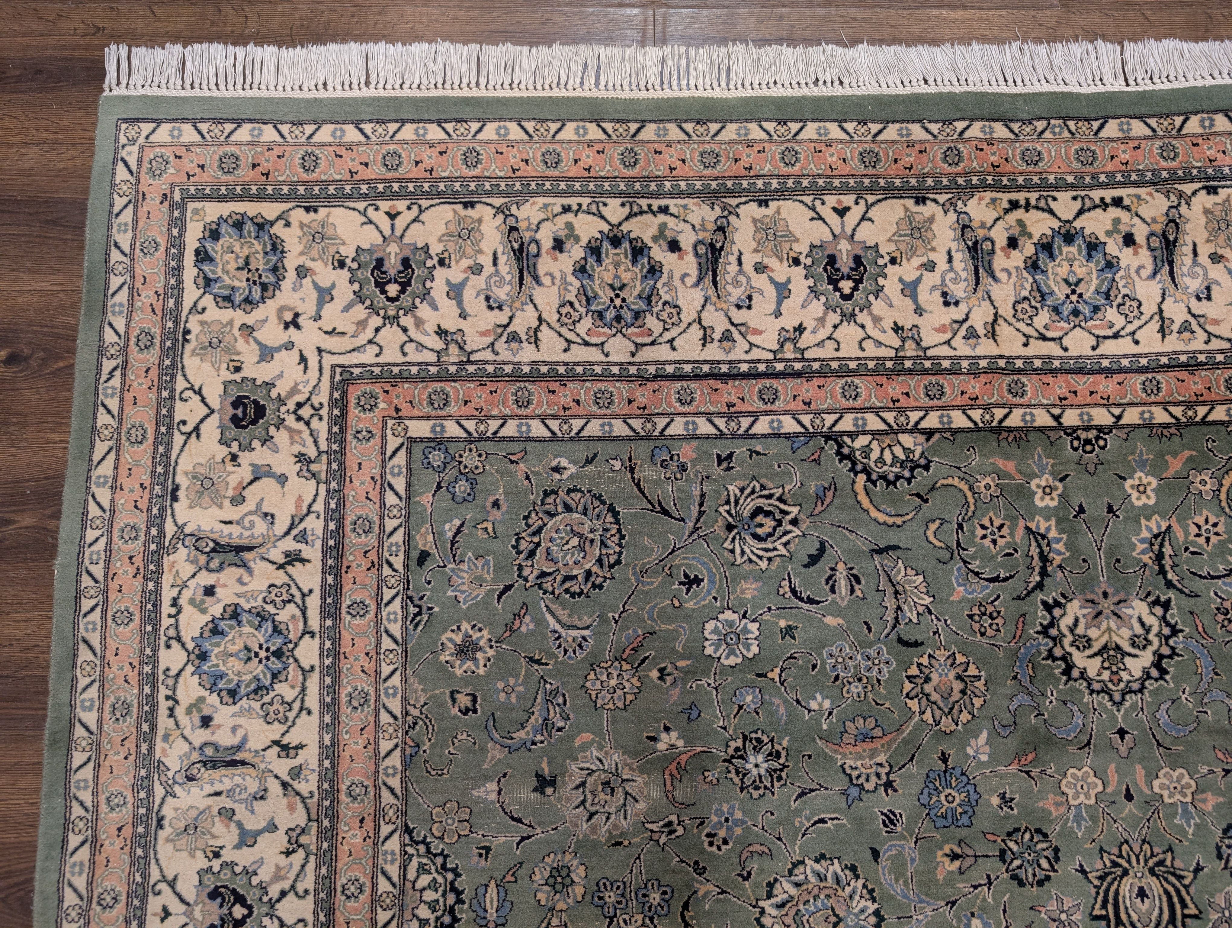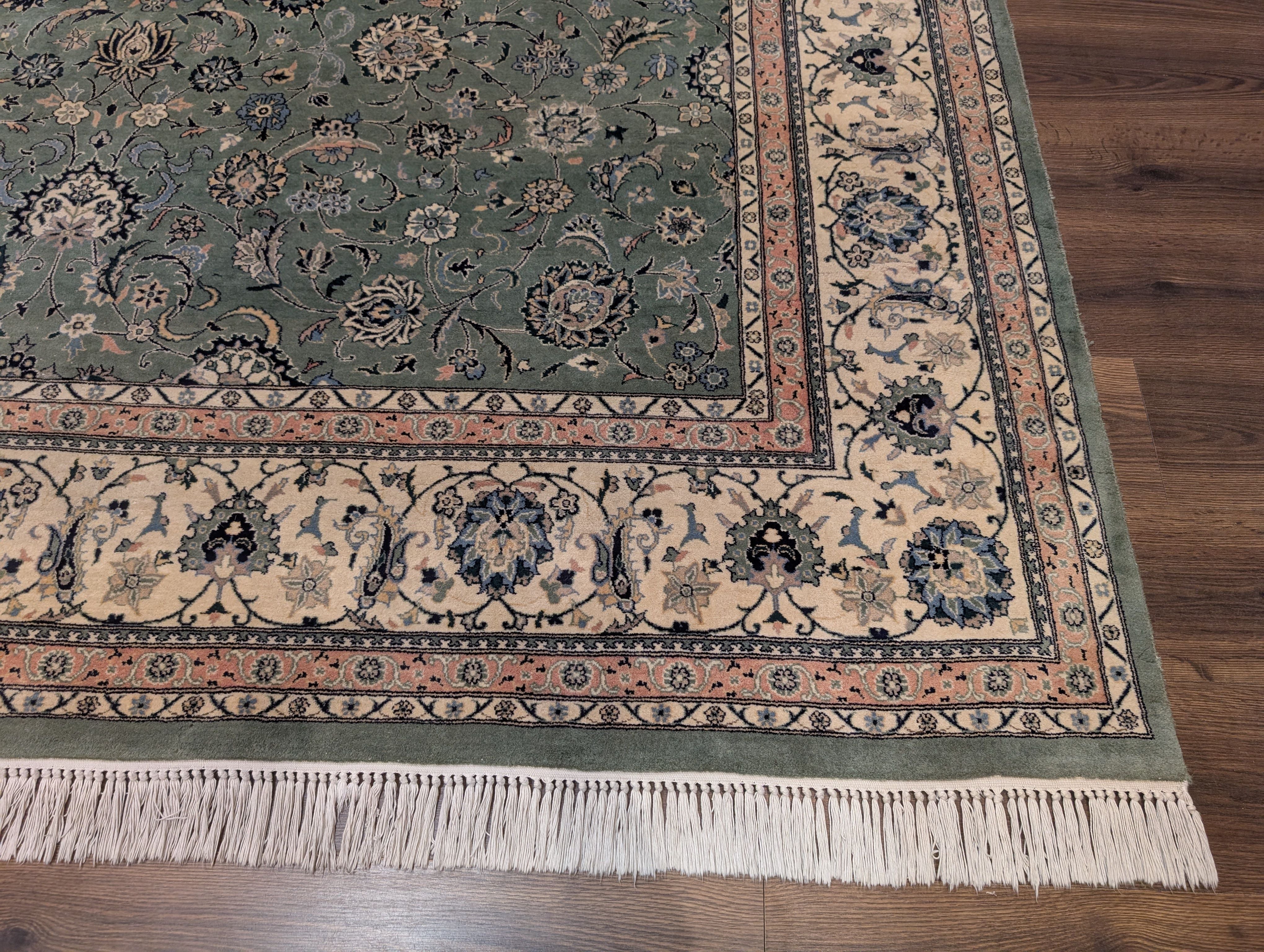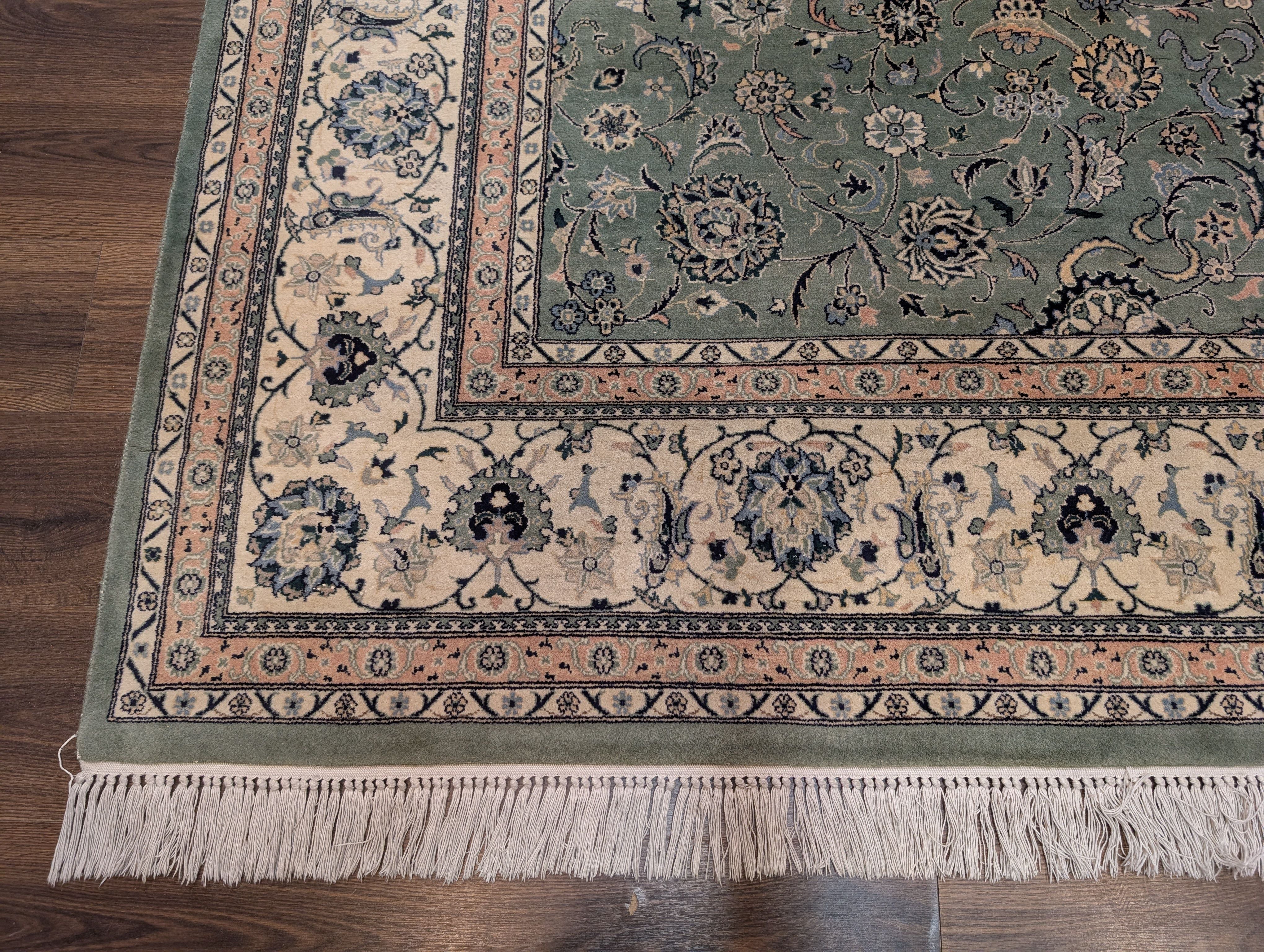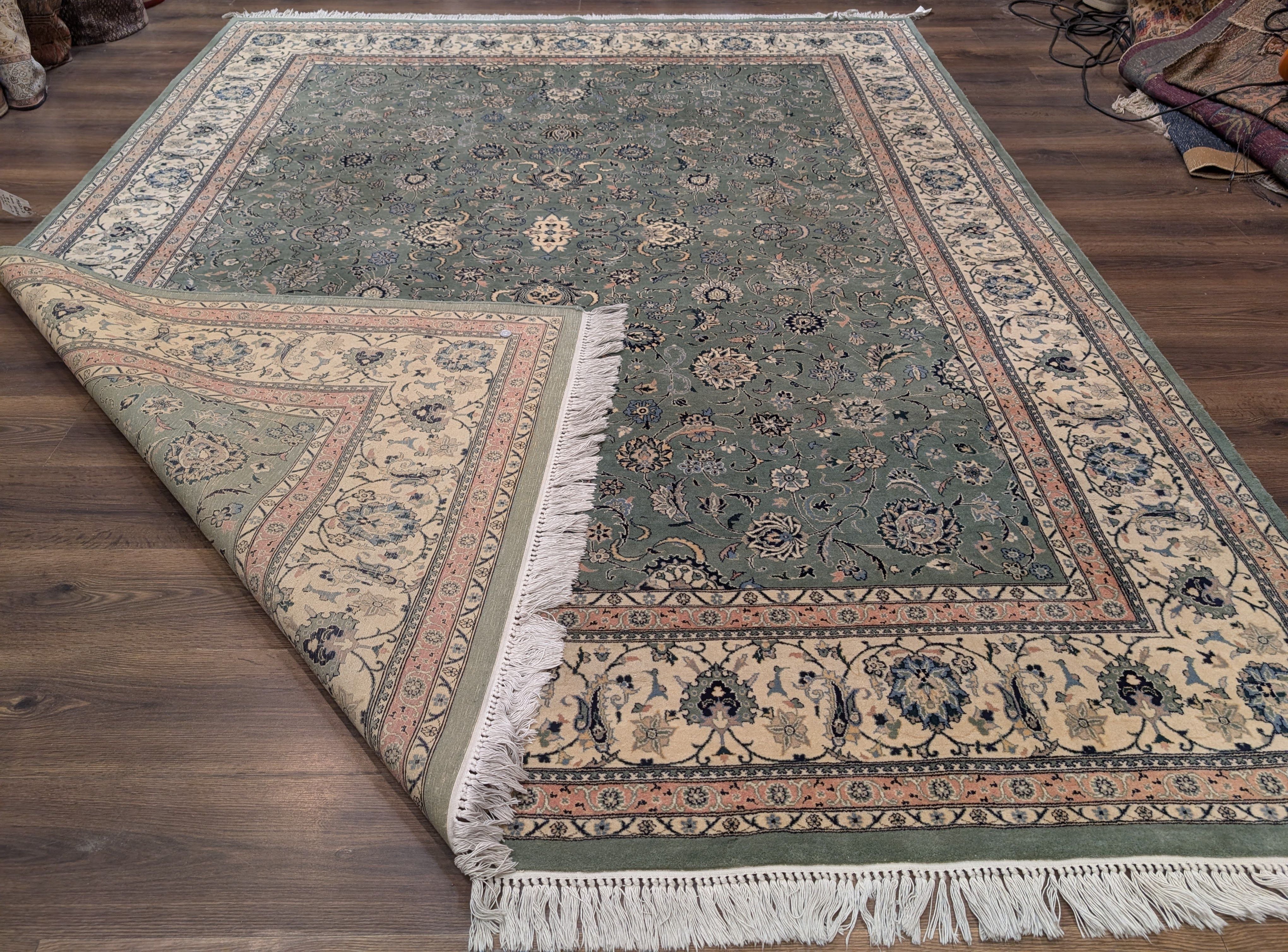 Green Persian Tabriz Rug 8x10, Fine 270 KPSI, Allover Pattern