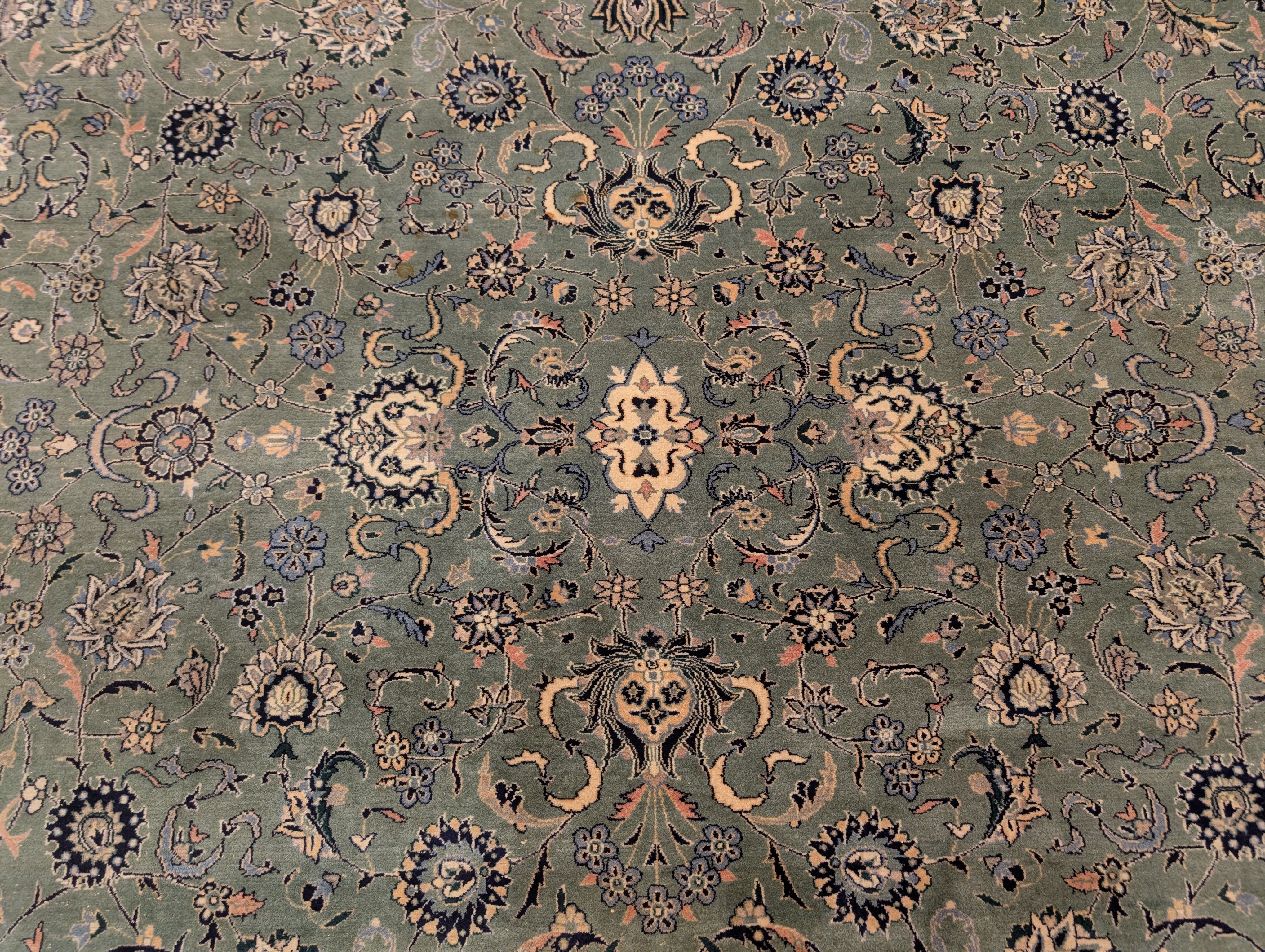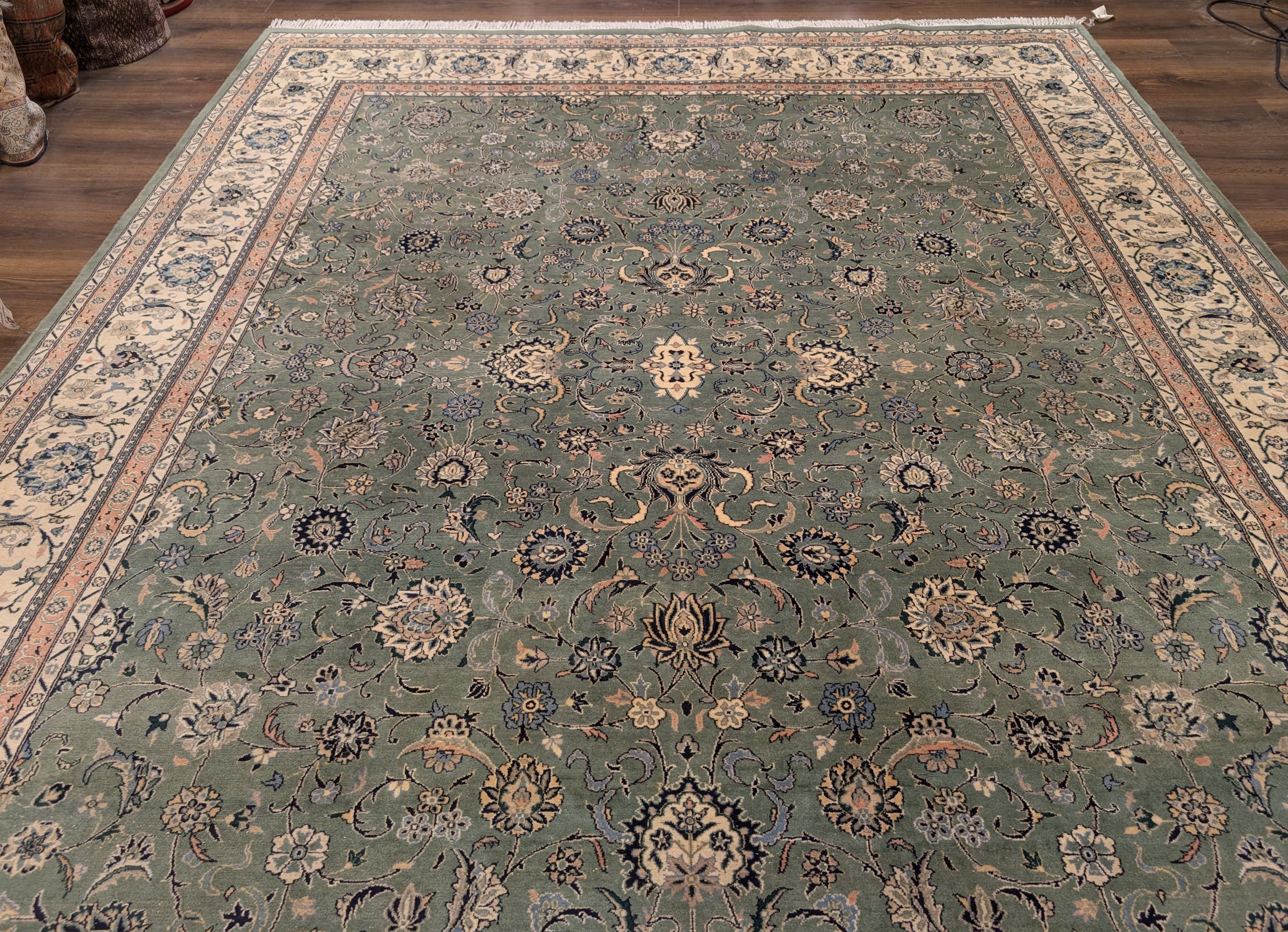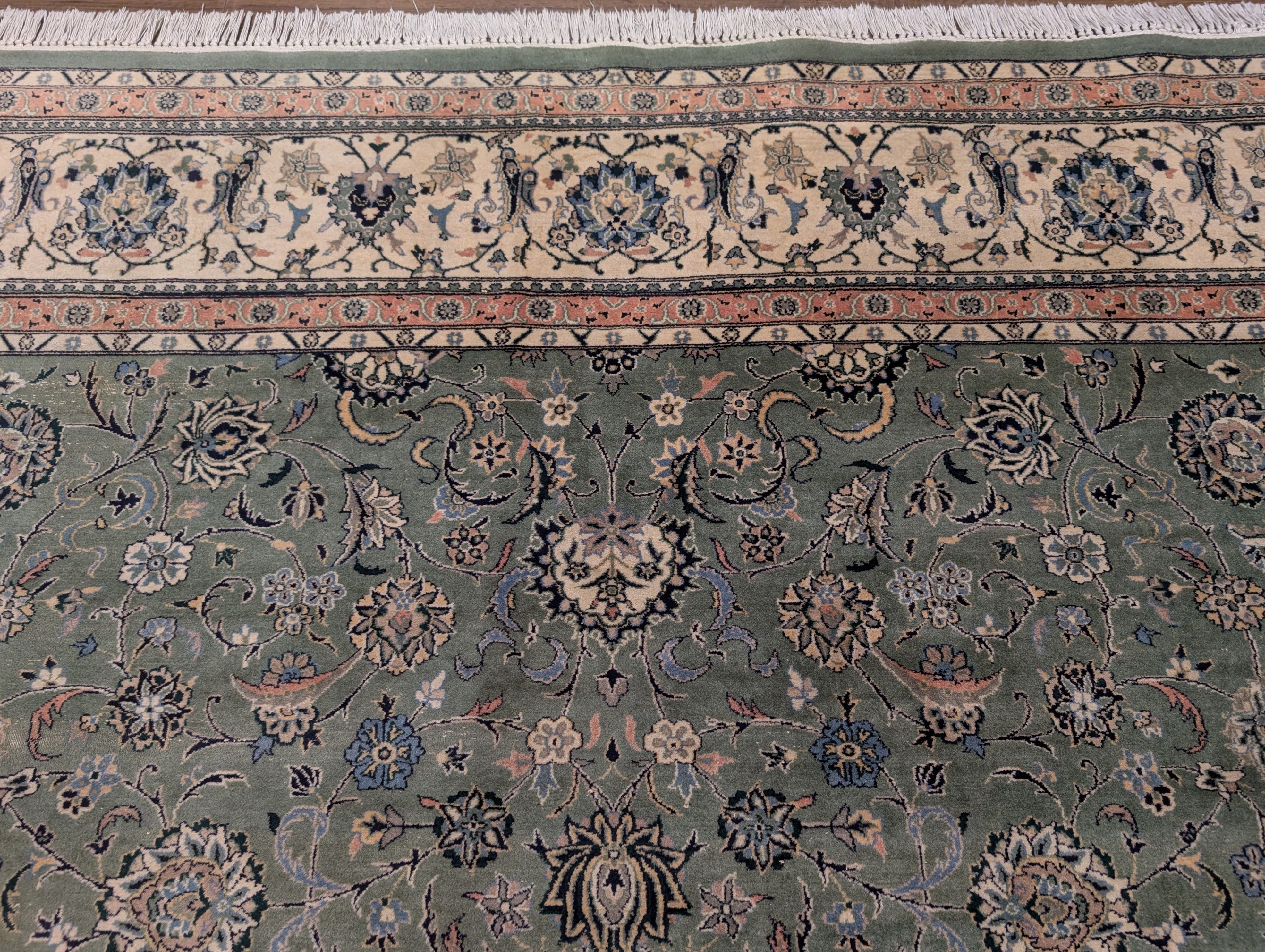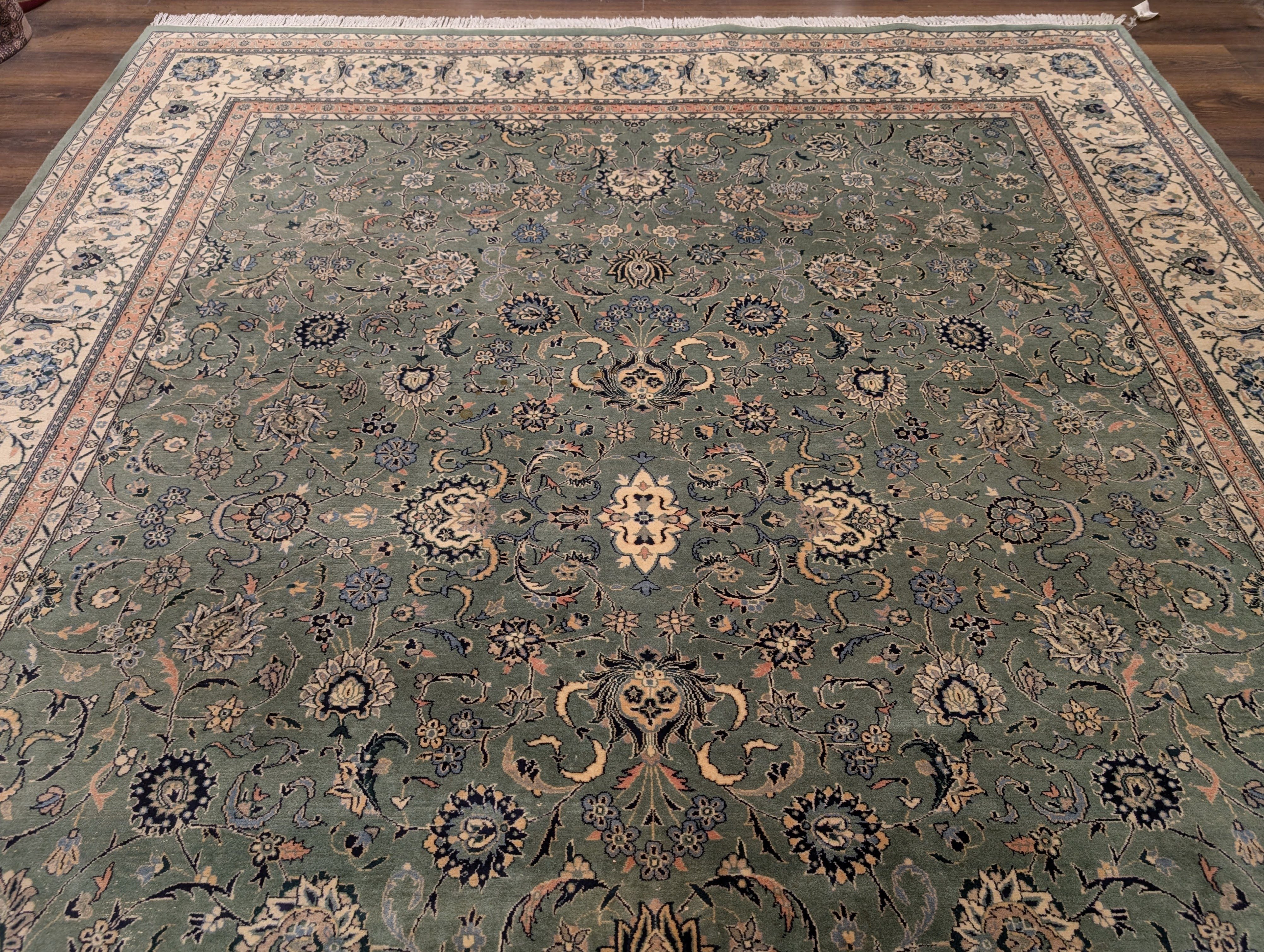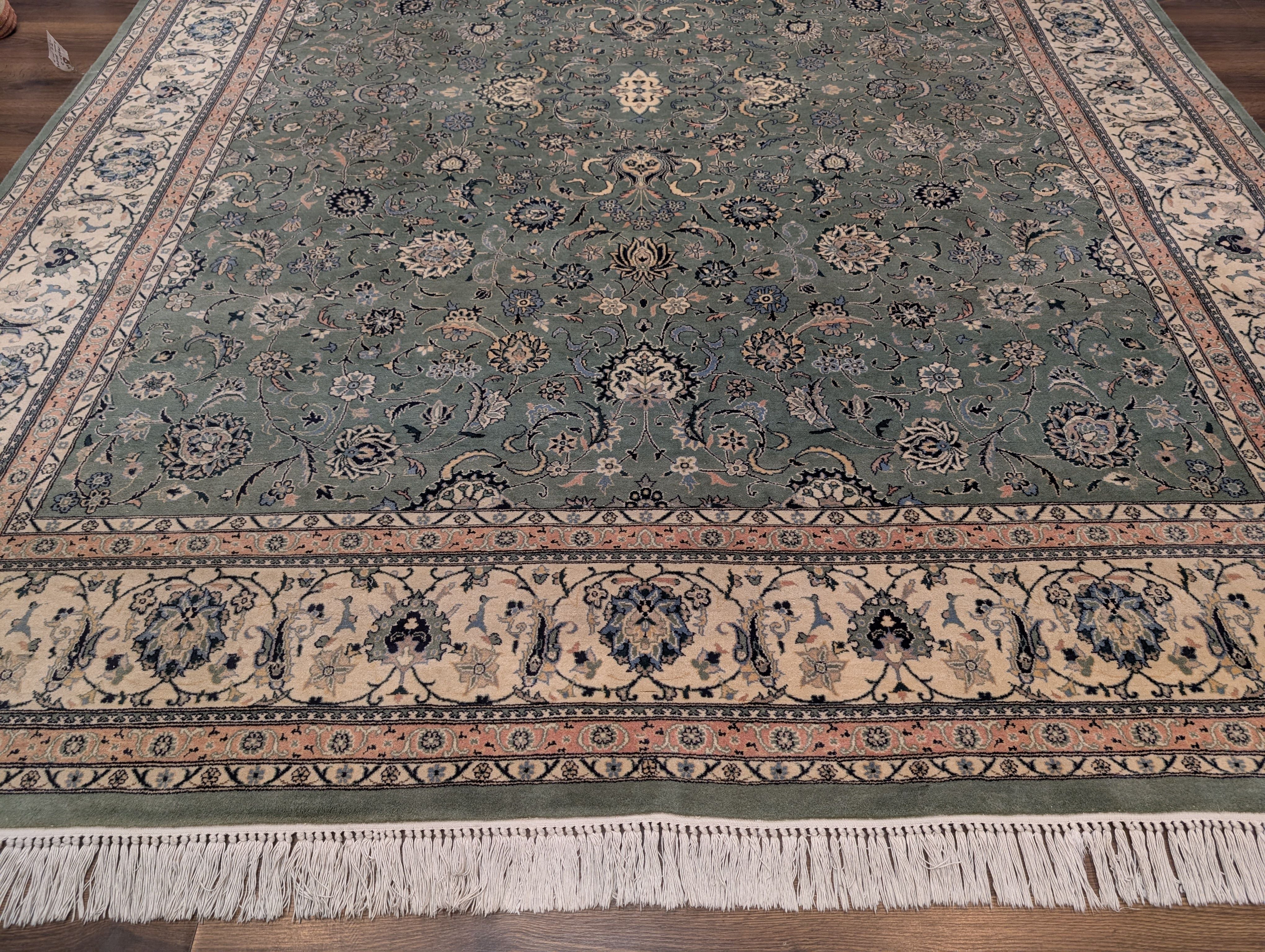 Green Persian Tabriz Rug 8x10, Fine 270 KPSI, Allover Pattern
