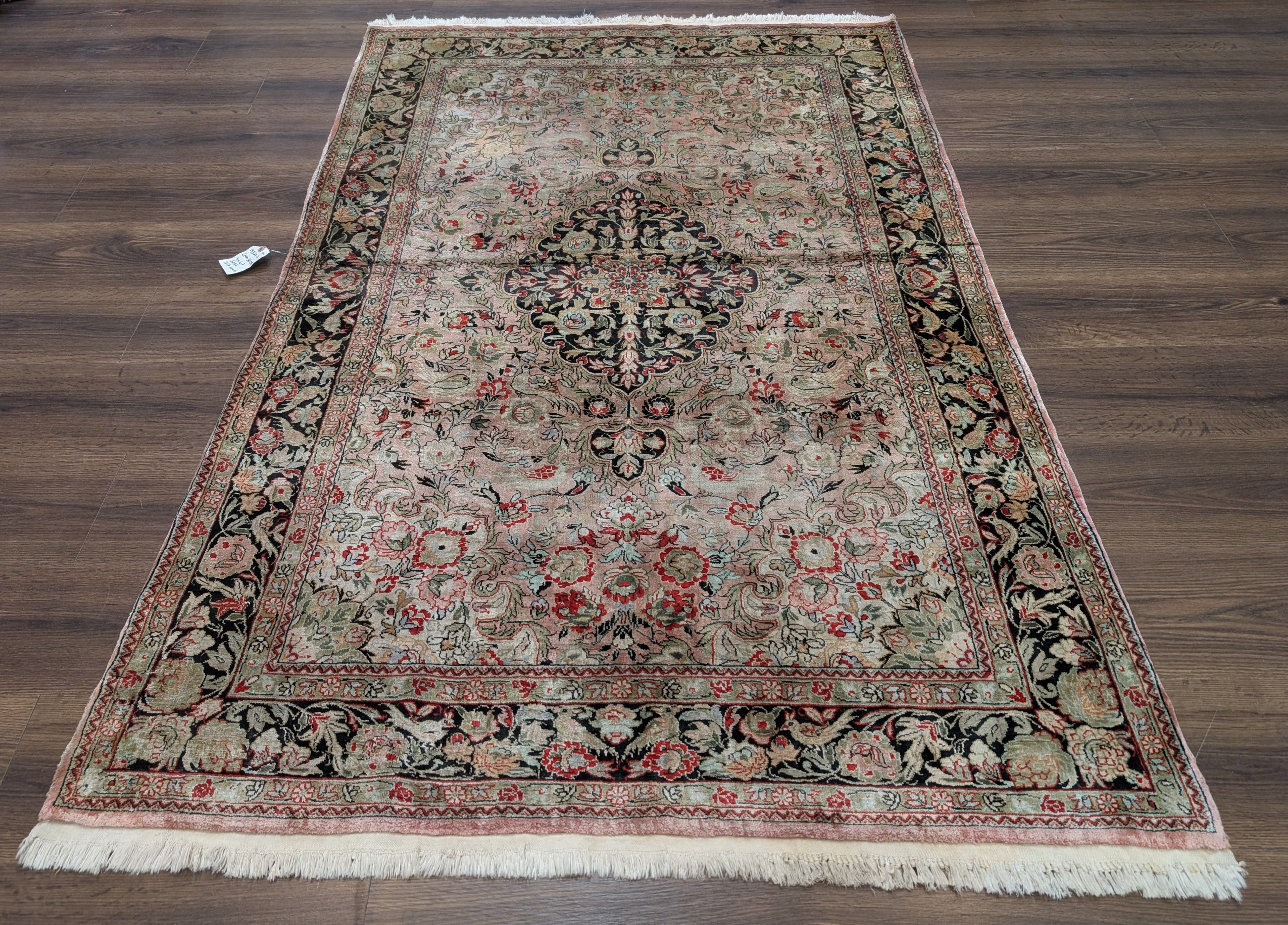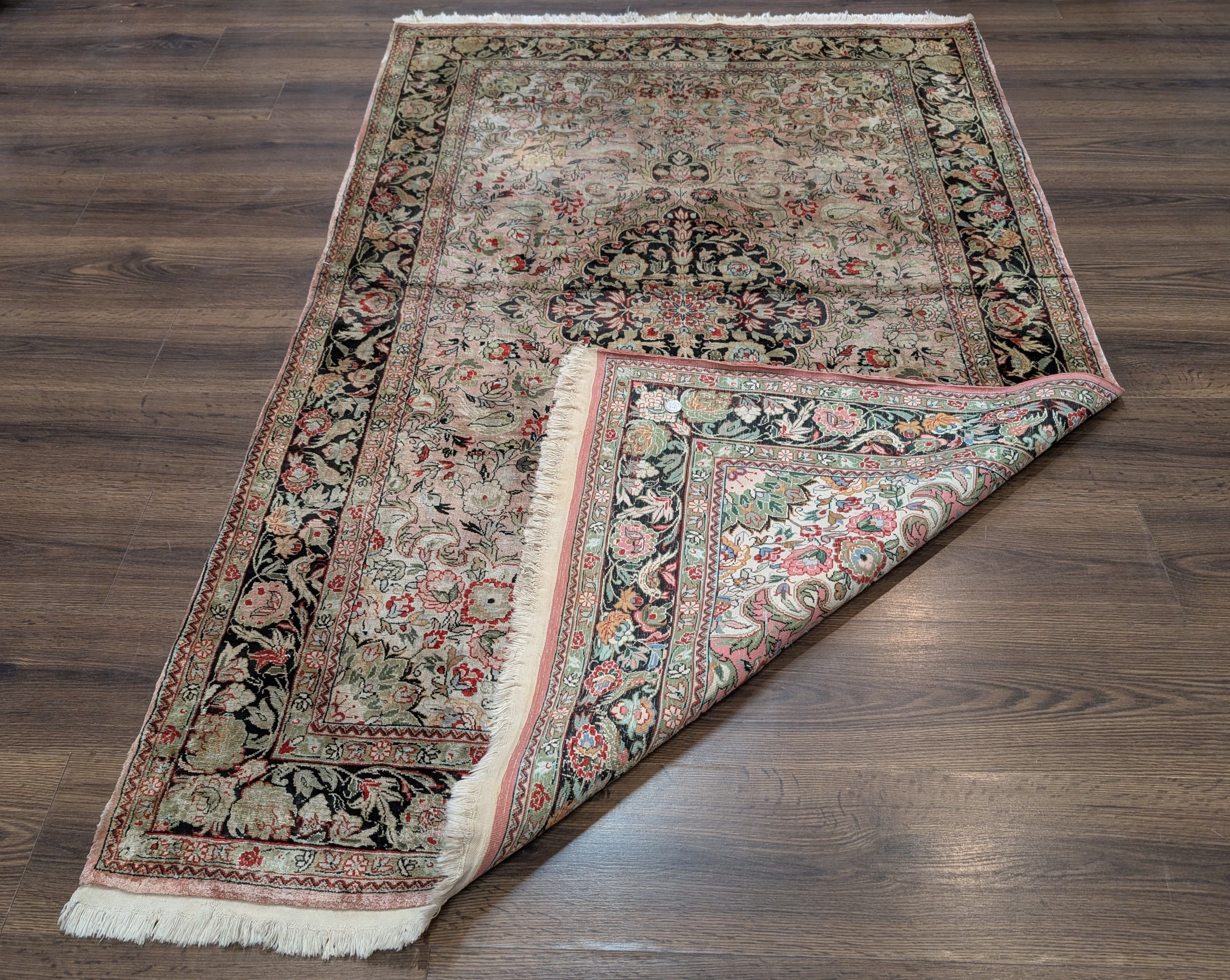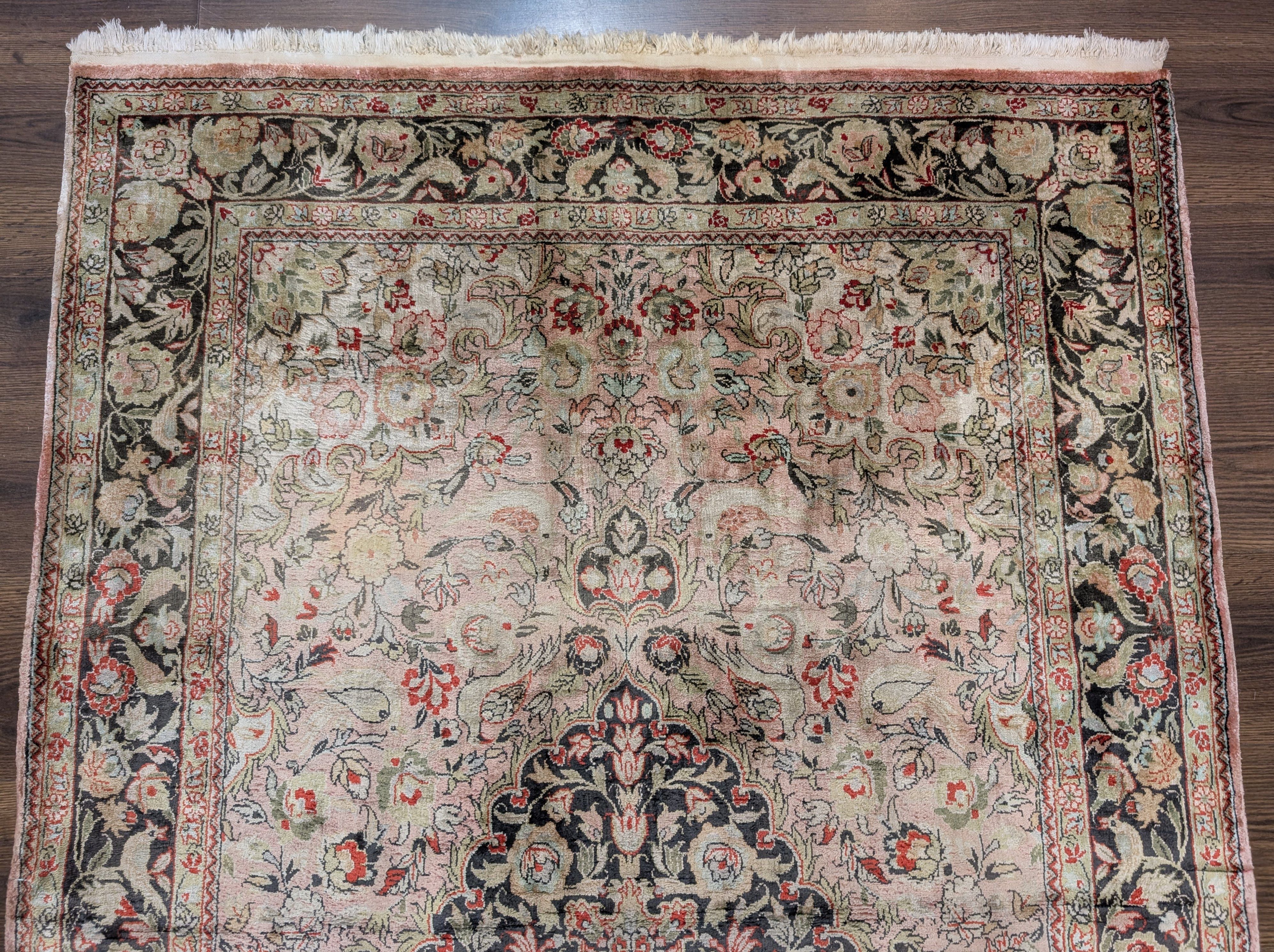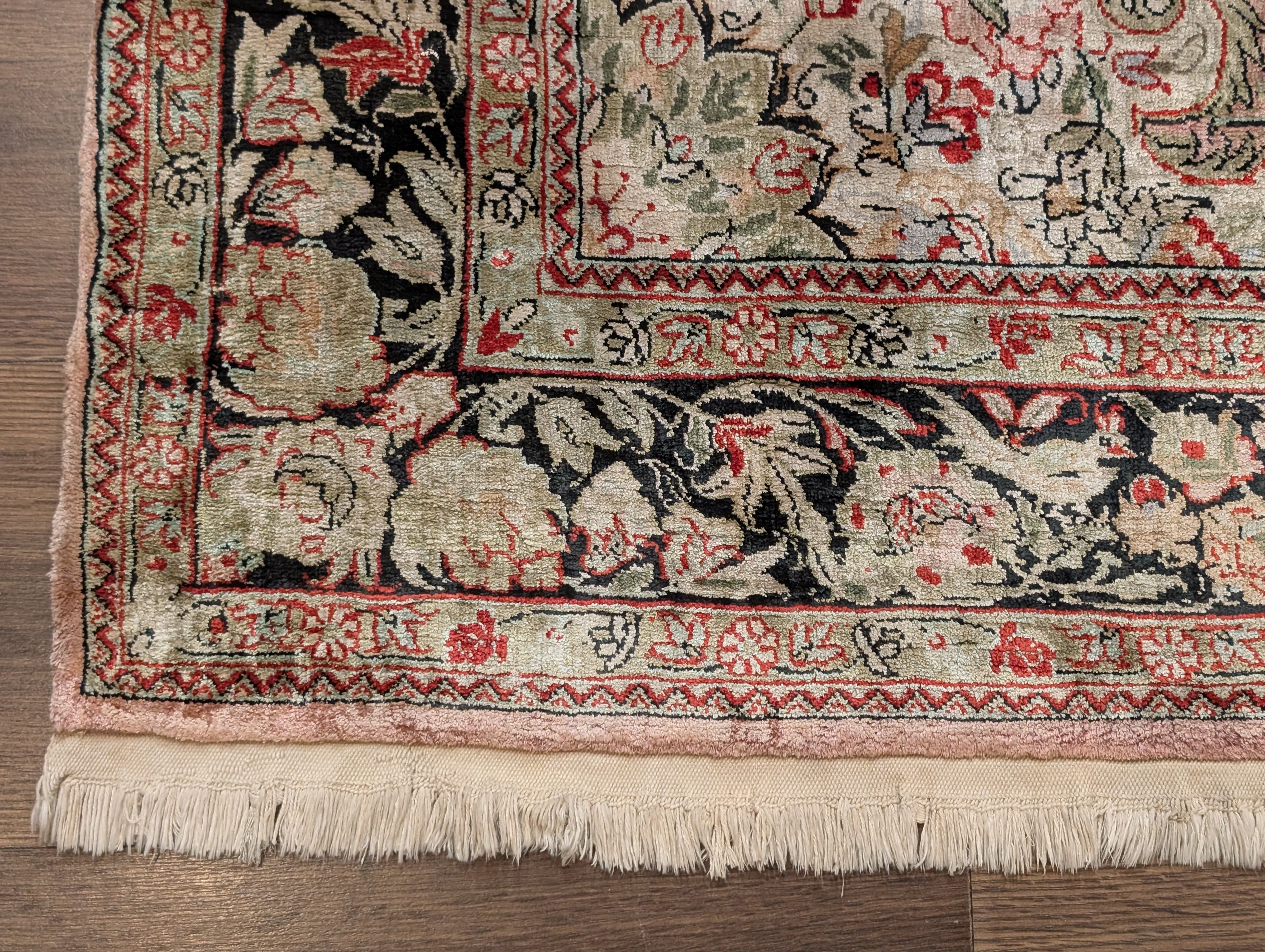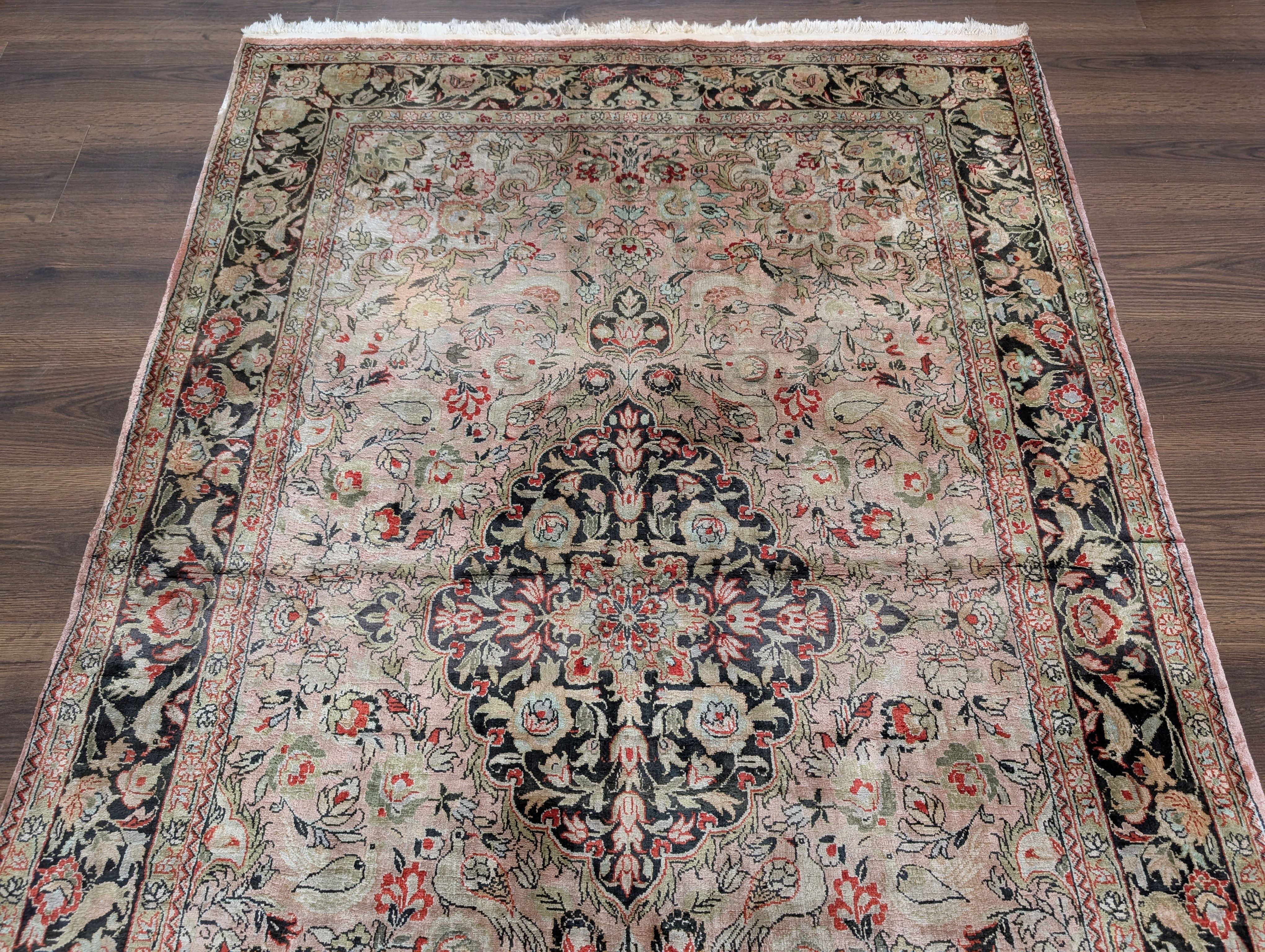 Indian Kashmiri Silk Rug 4x6, Bird Pictorials, Fine 330 KPSI