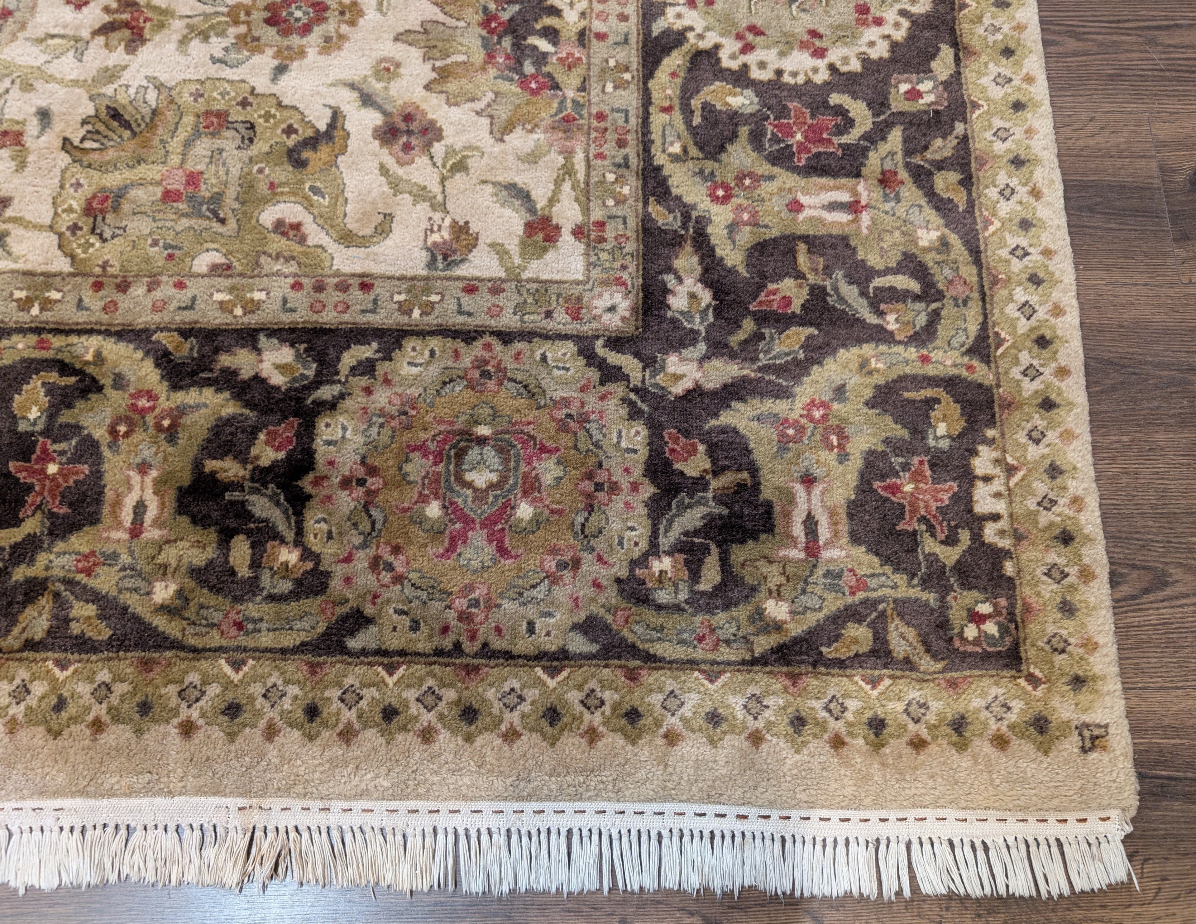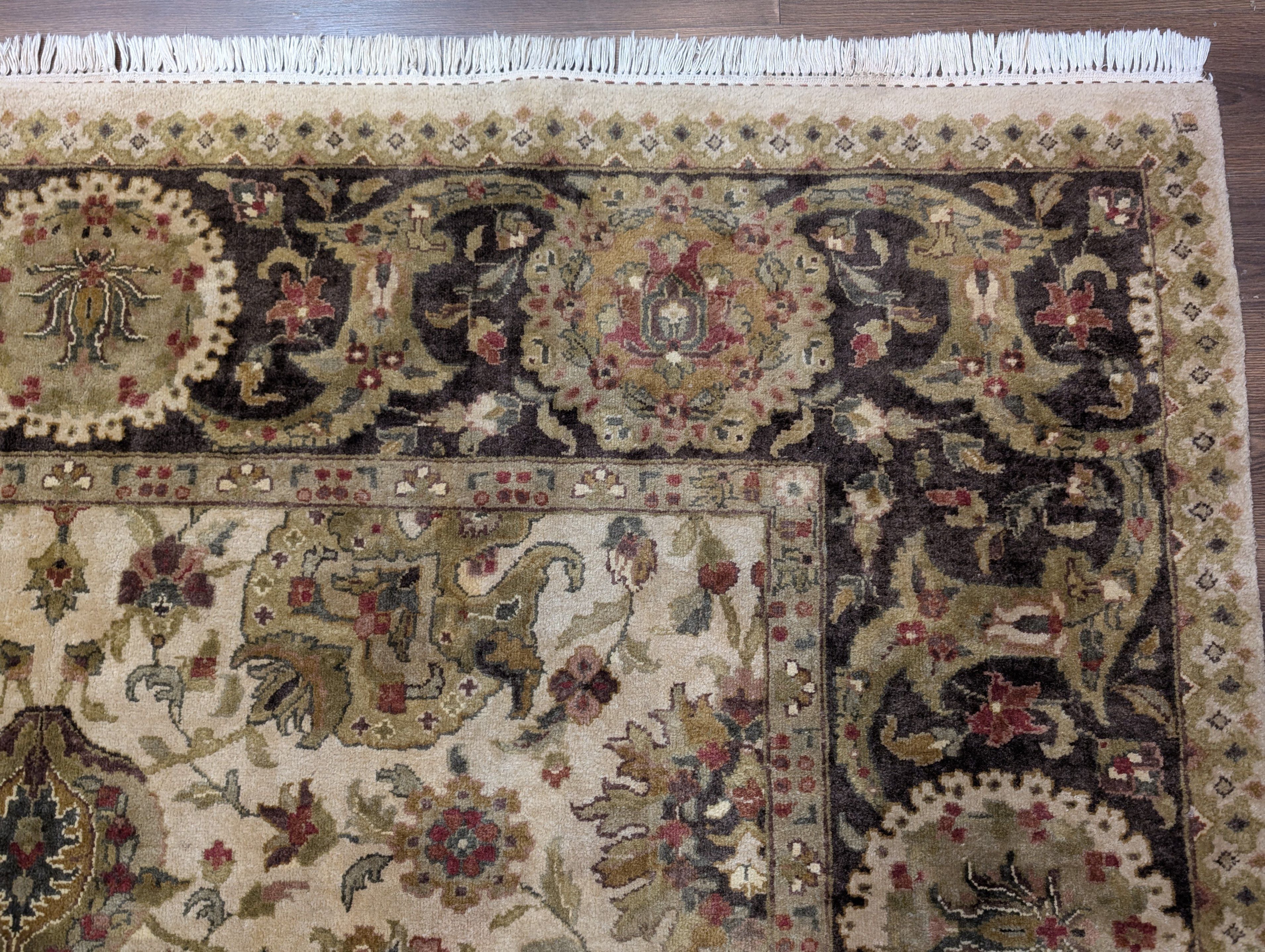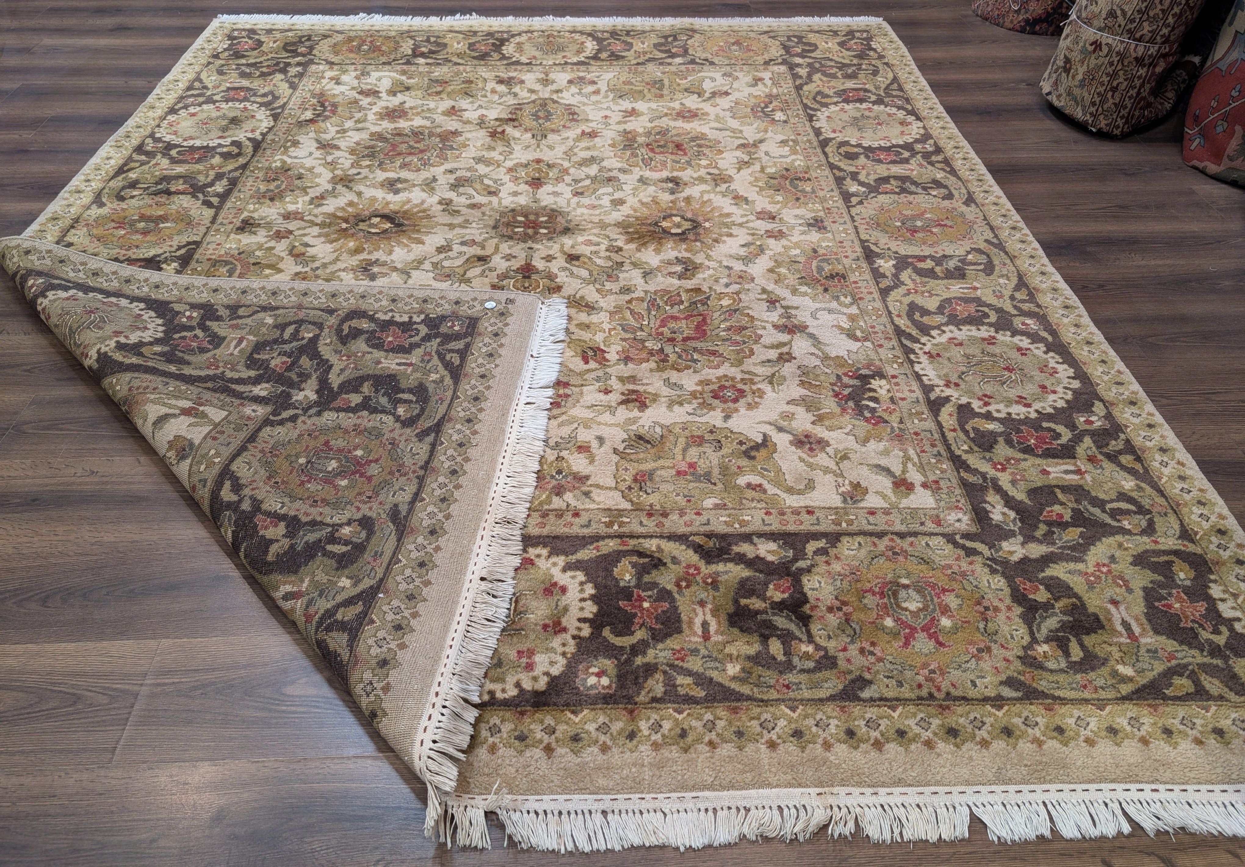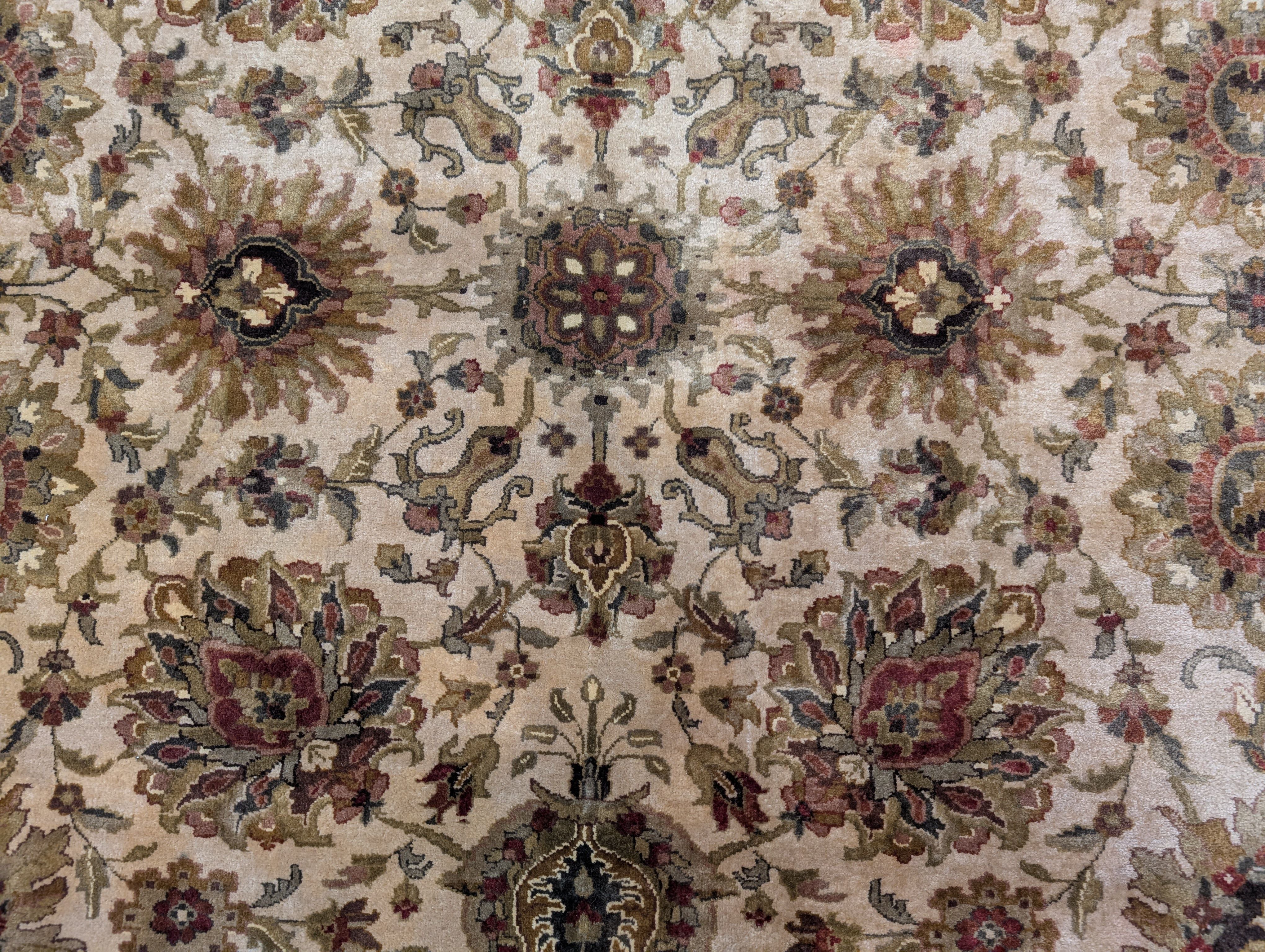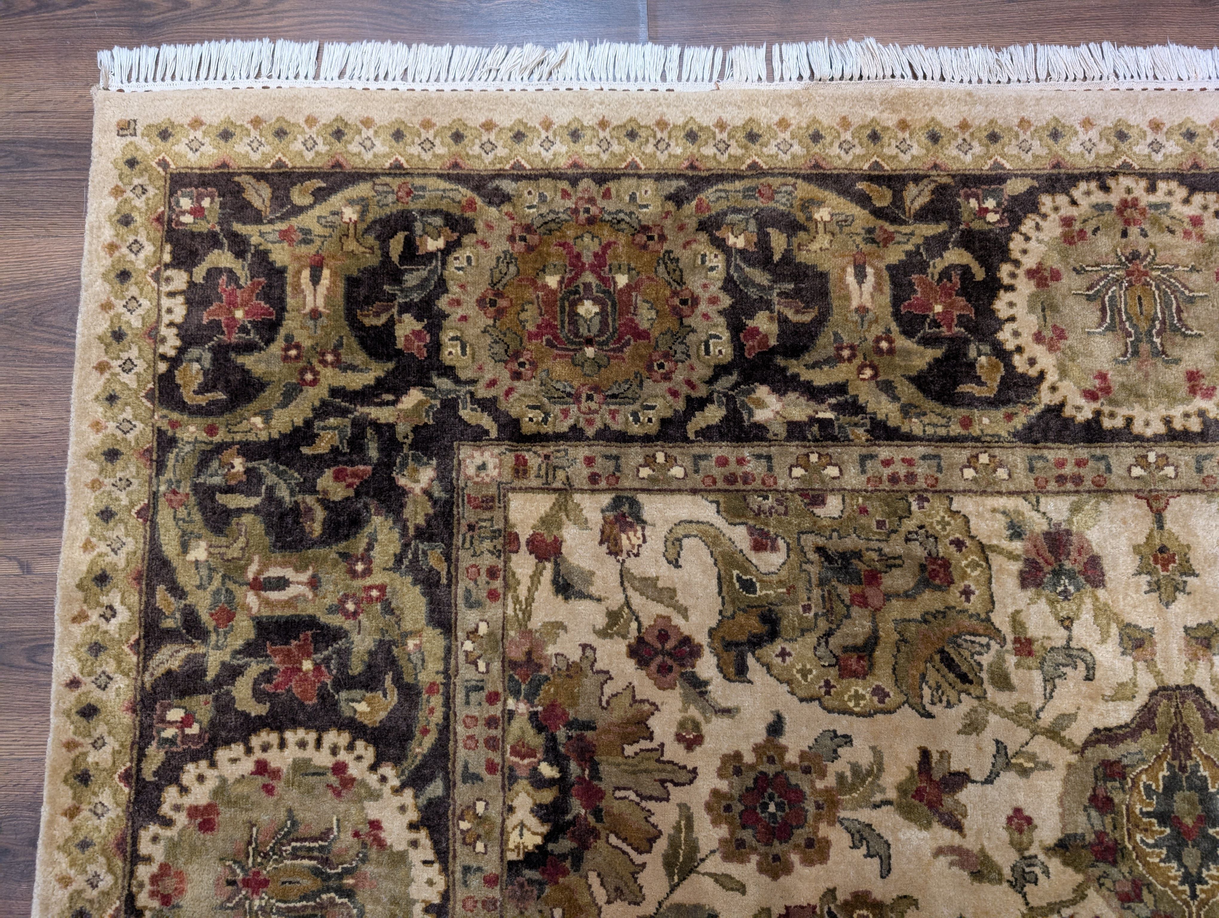 Indo Persian Mahal Rug 8x10, Beige, Handmade, Wool Carpet