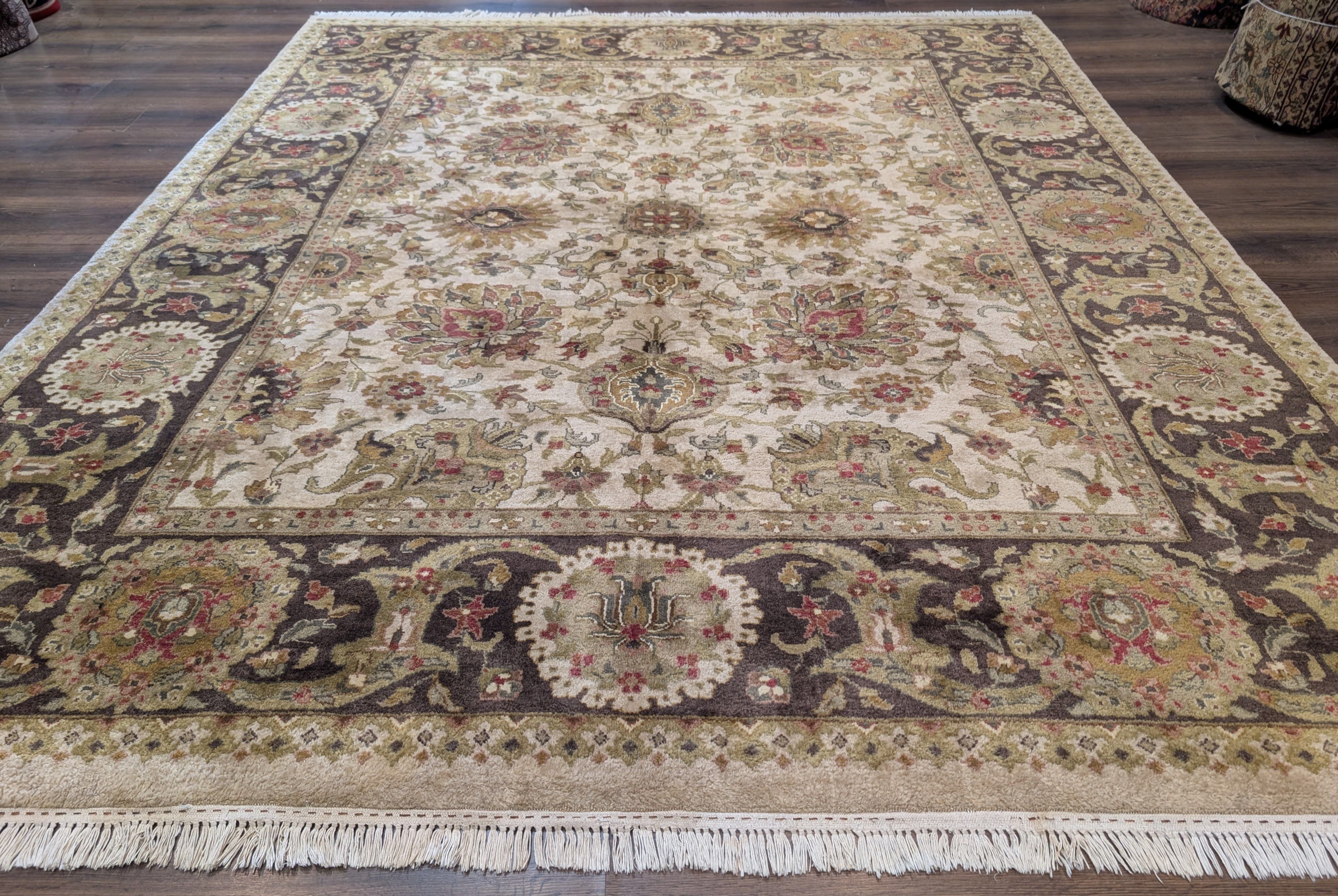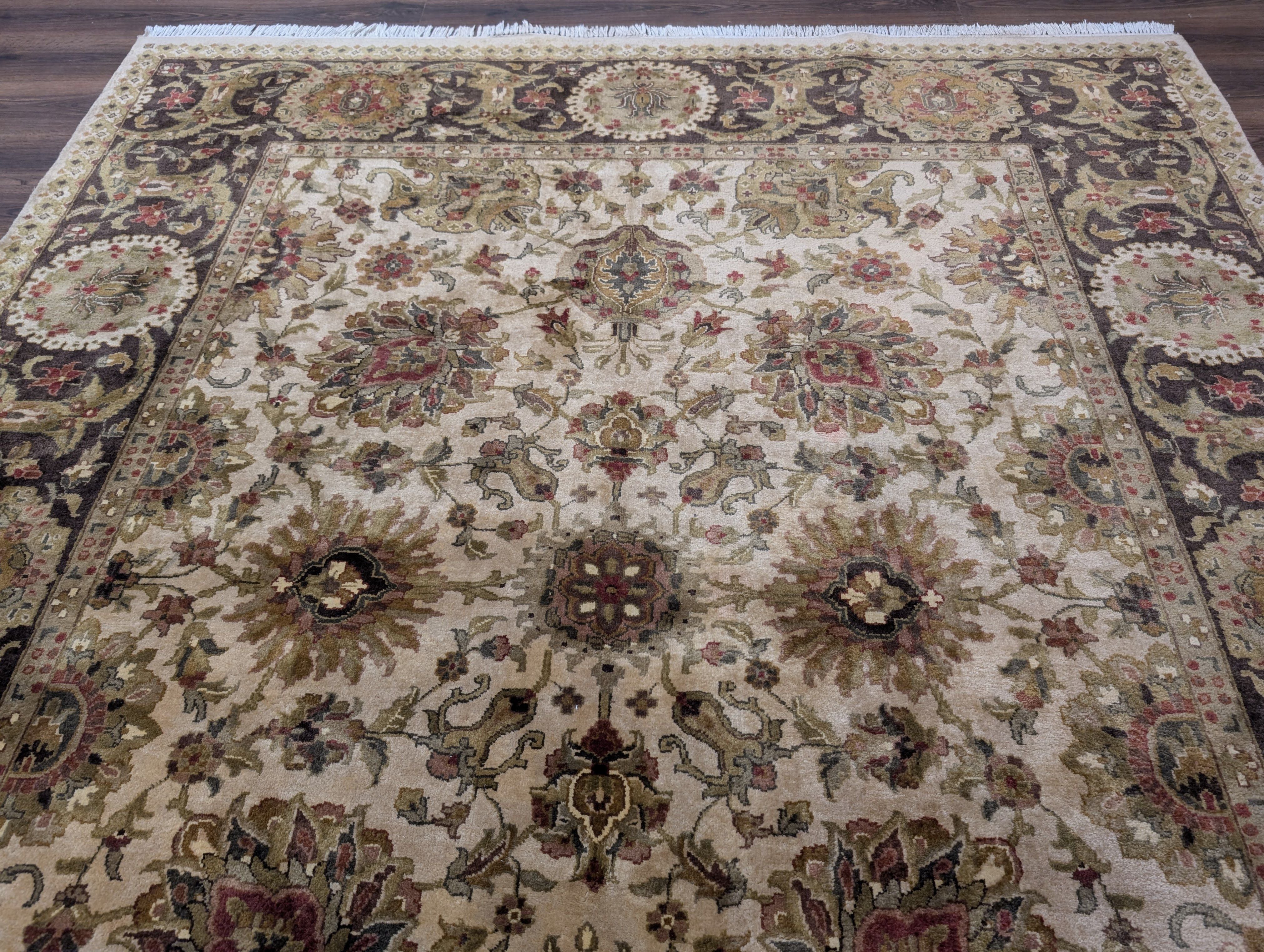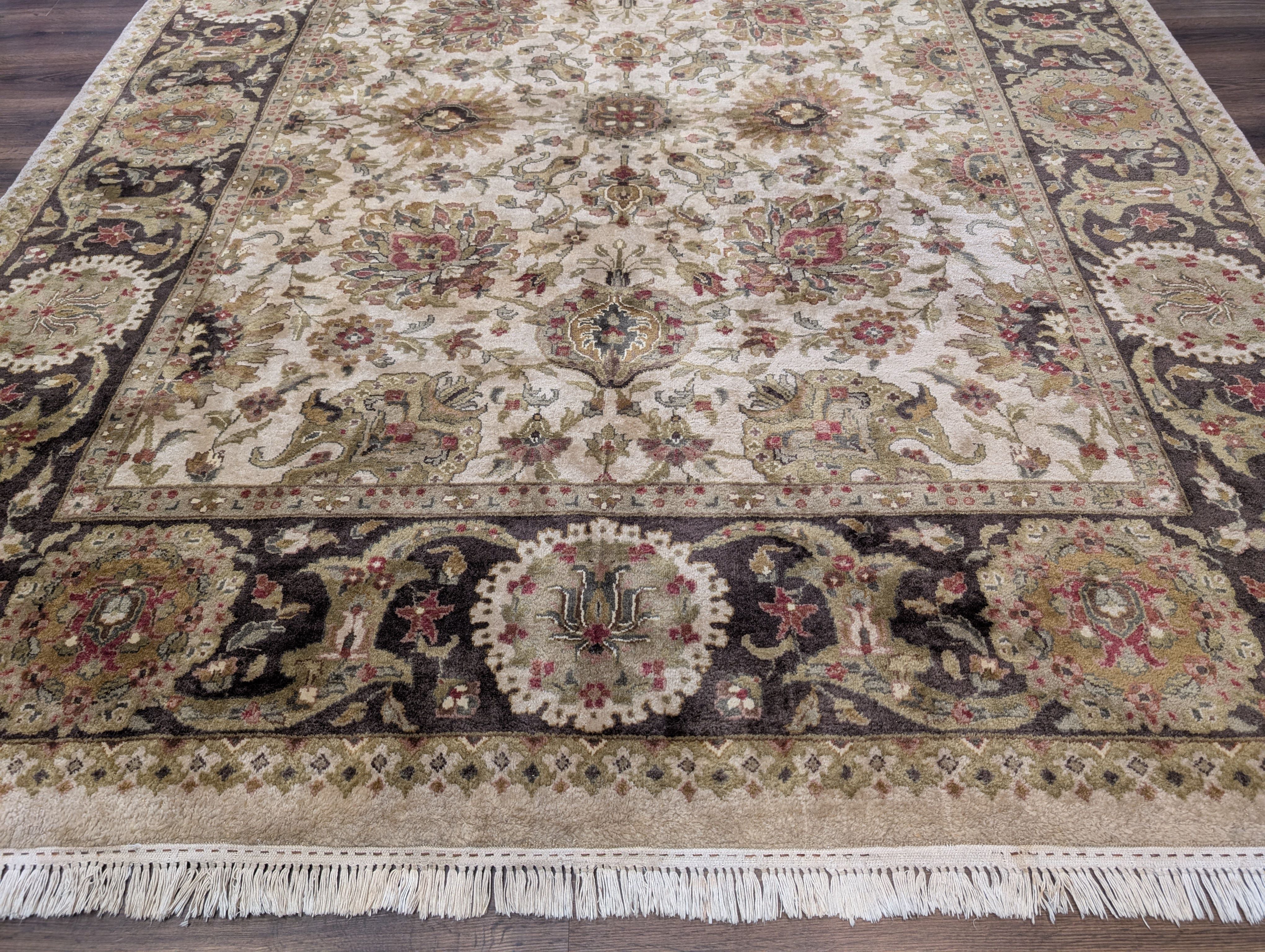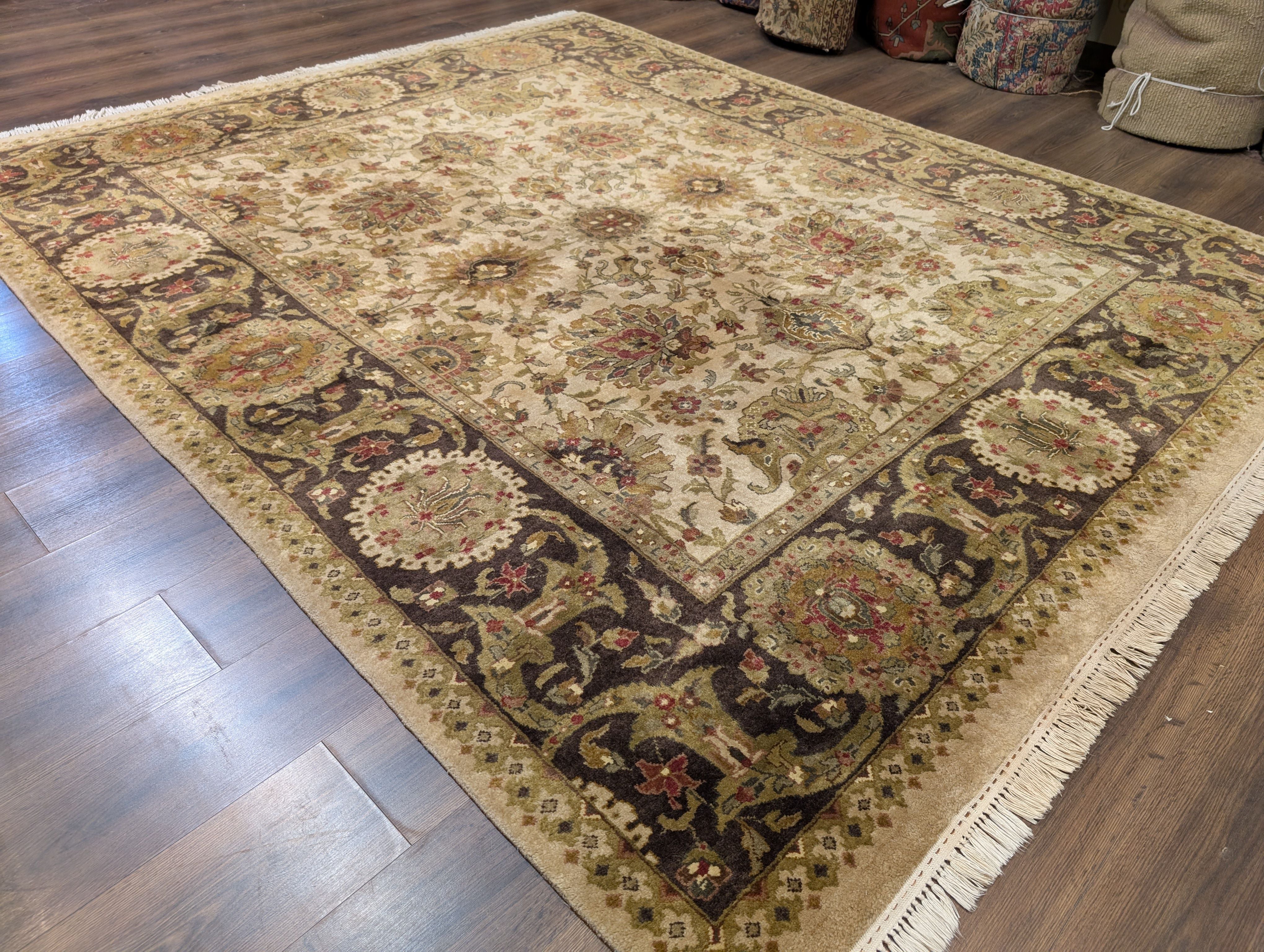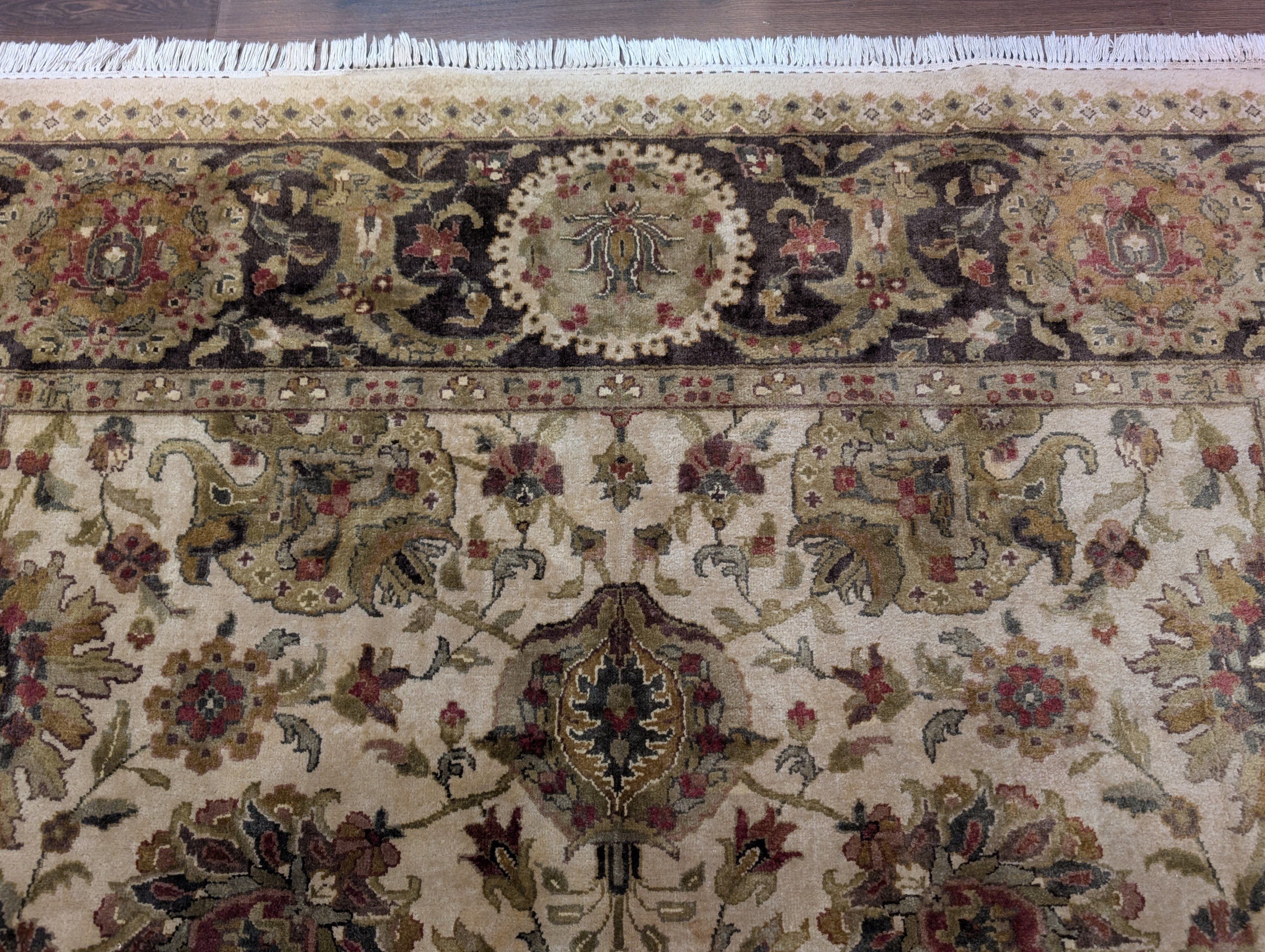Indo Persian Mahal Rug 8x10, Beige, Handmade, Wool Carpet