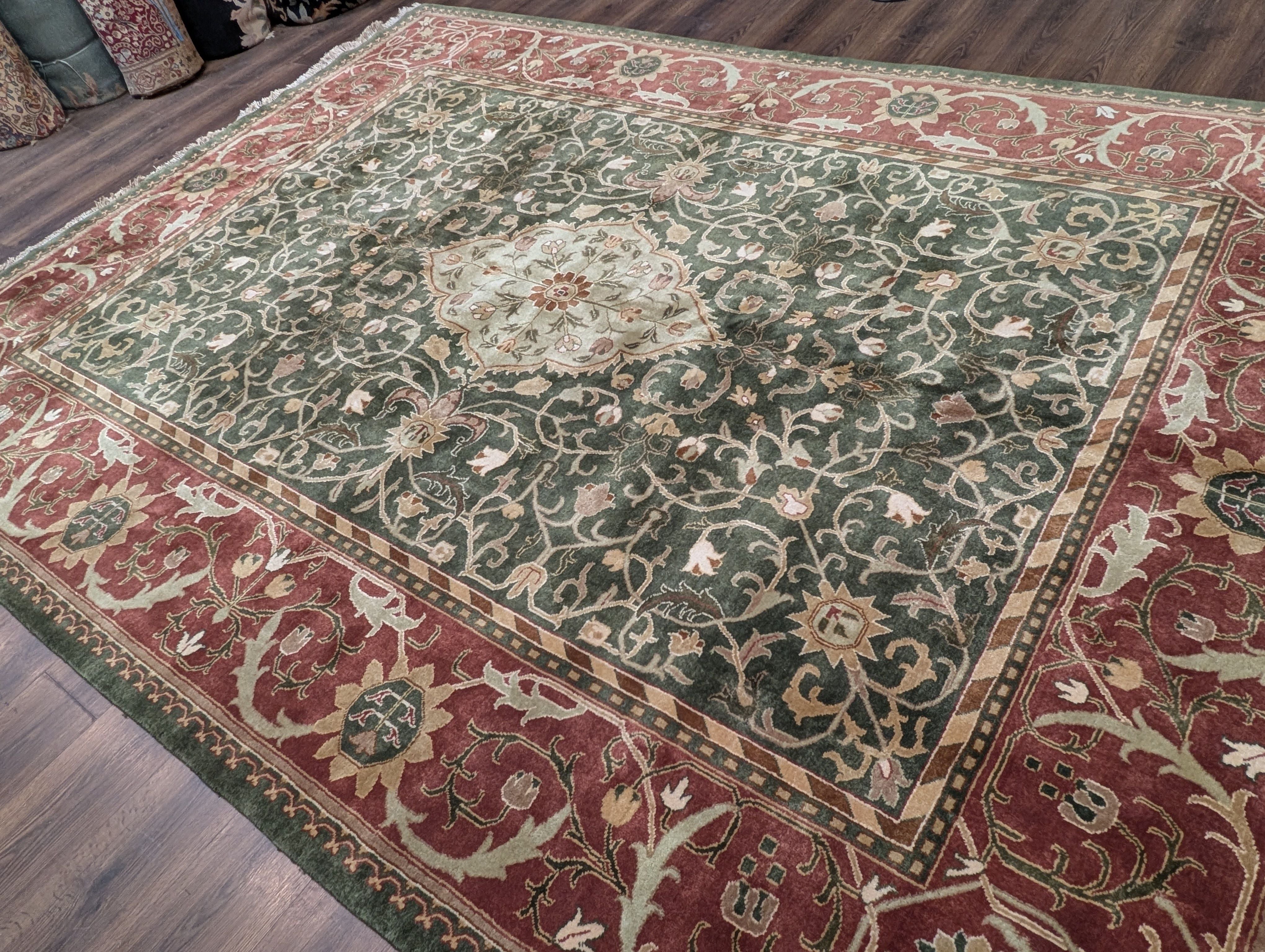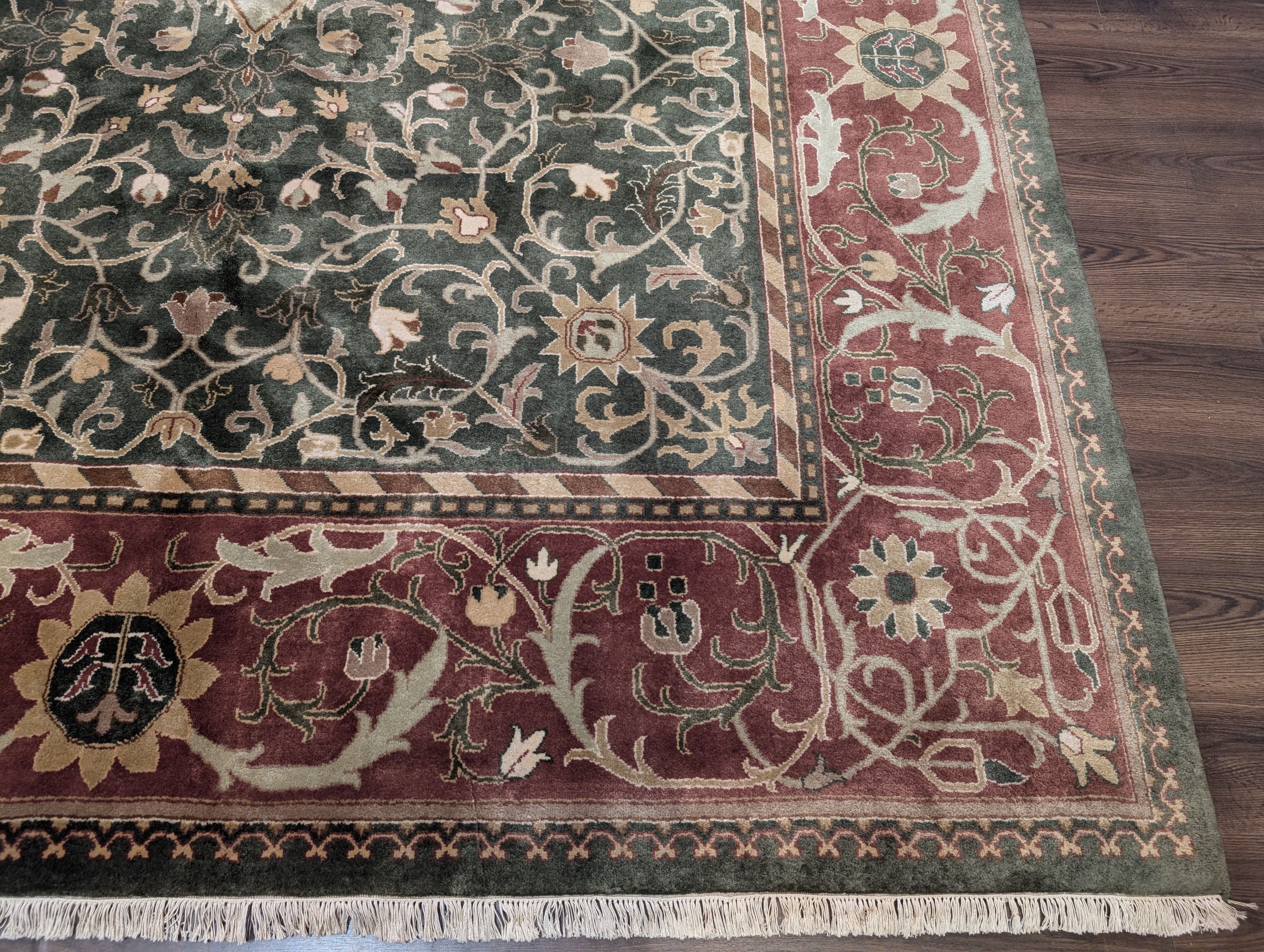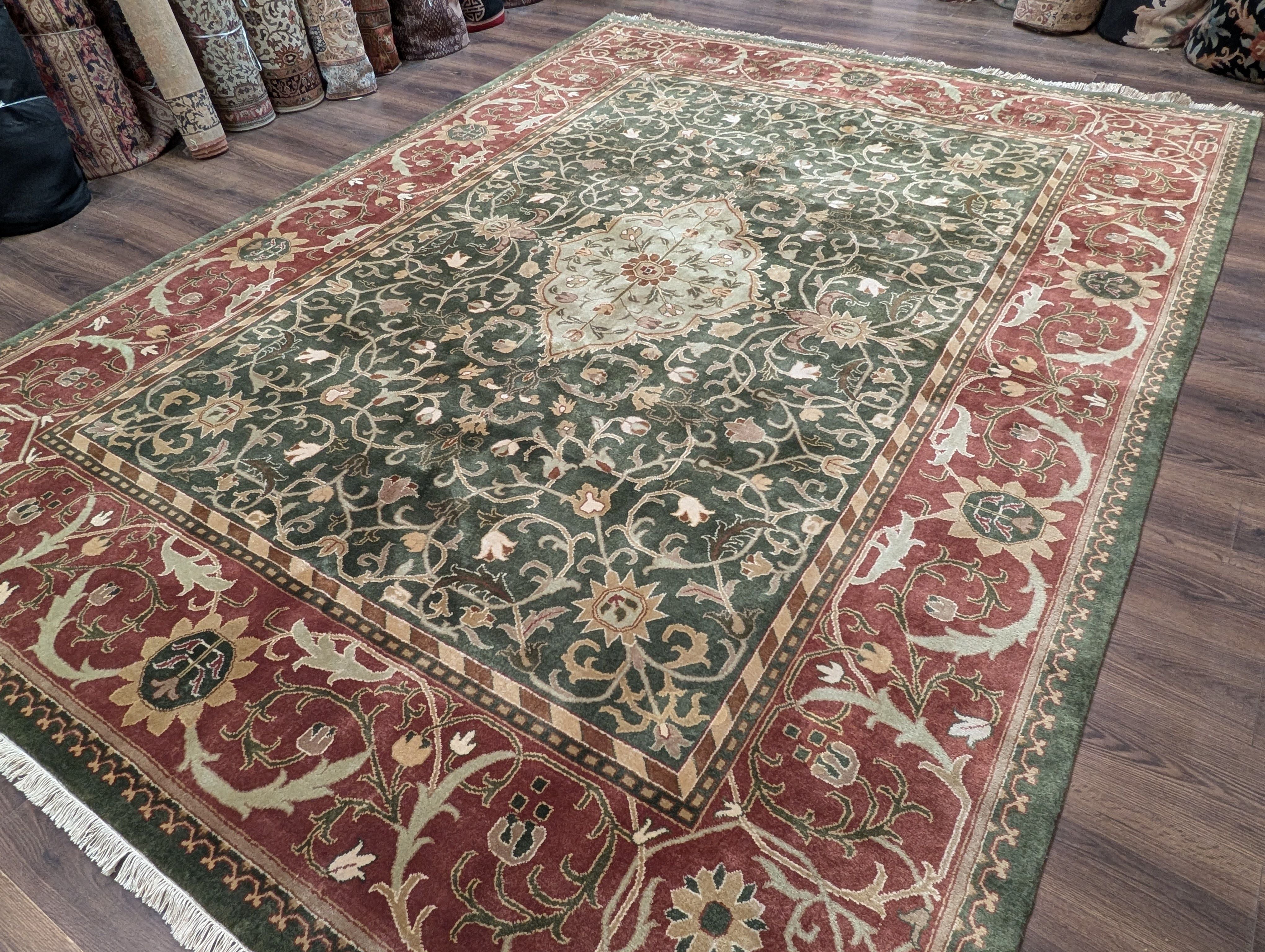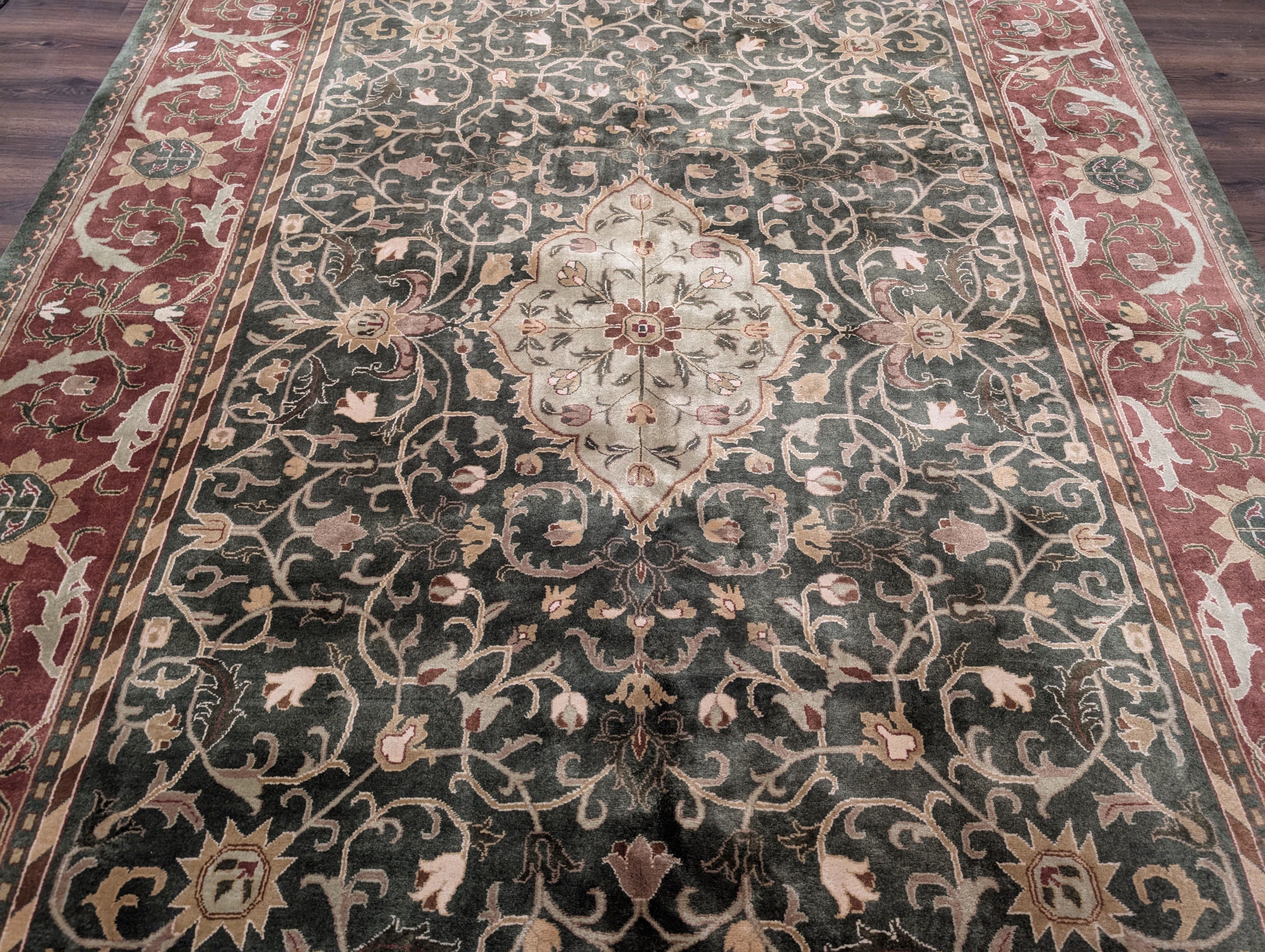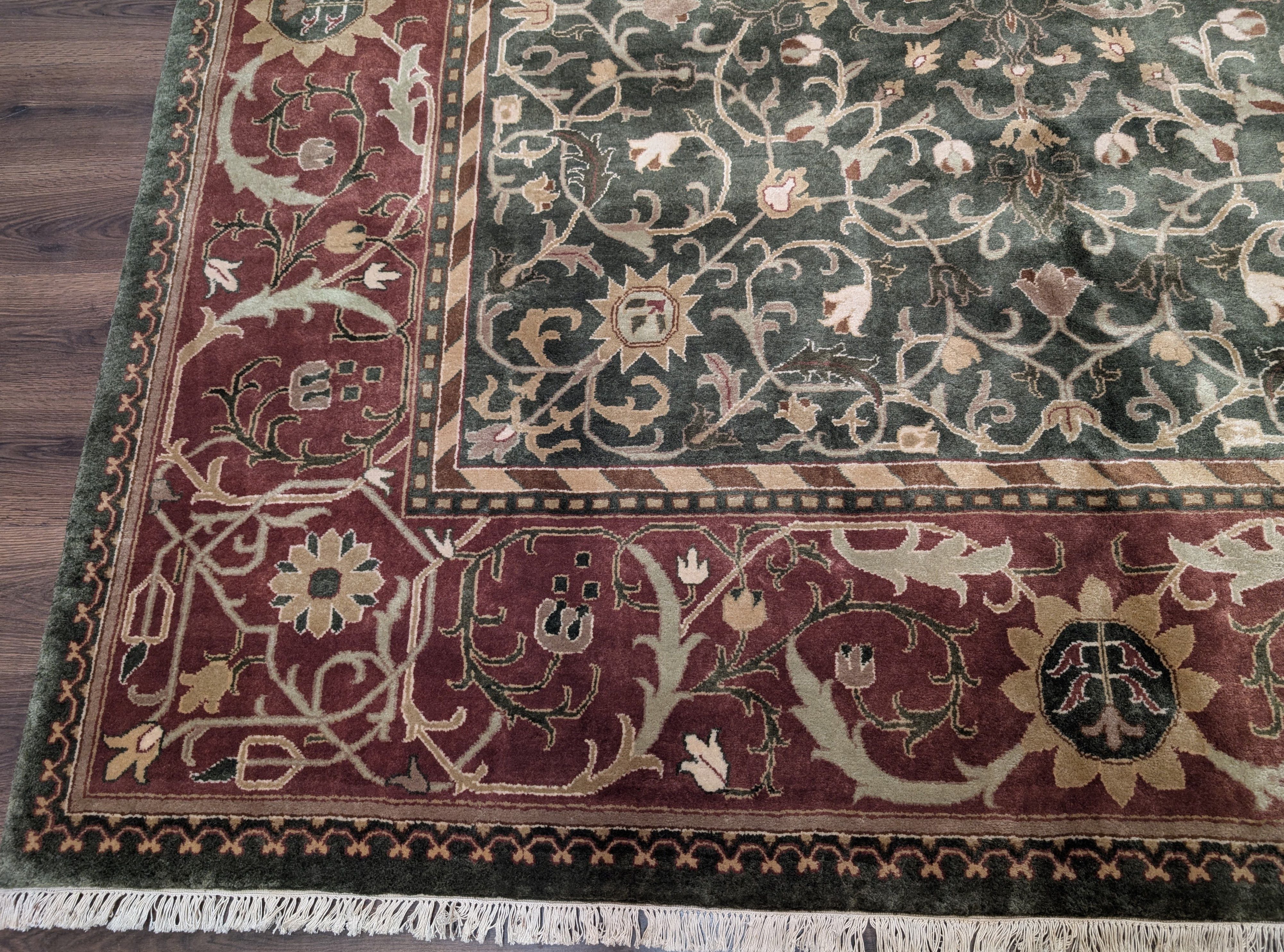 Indo Persian Mahal Rug 9x12, Wool Traditional Area Rug, Green, Ethan Allen Carpet, Handmade