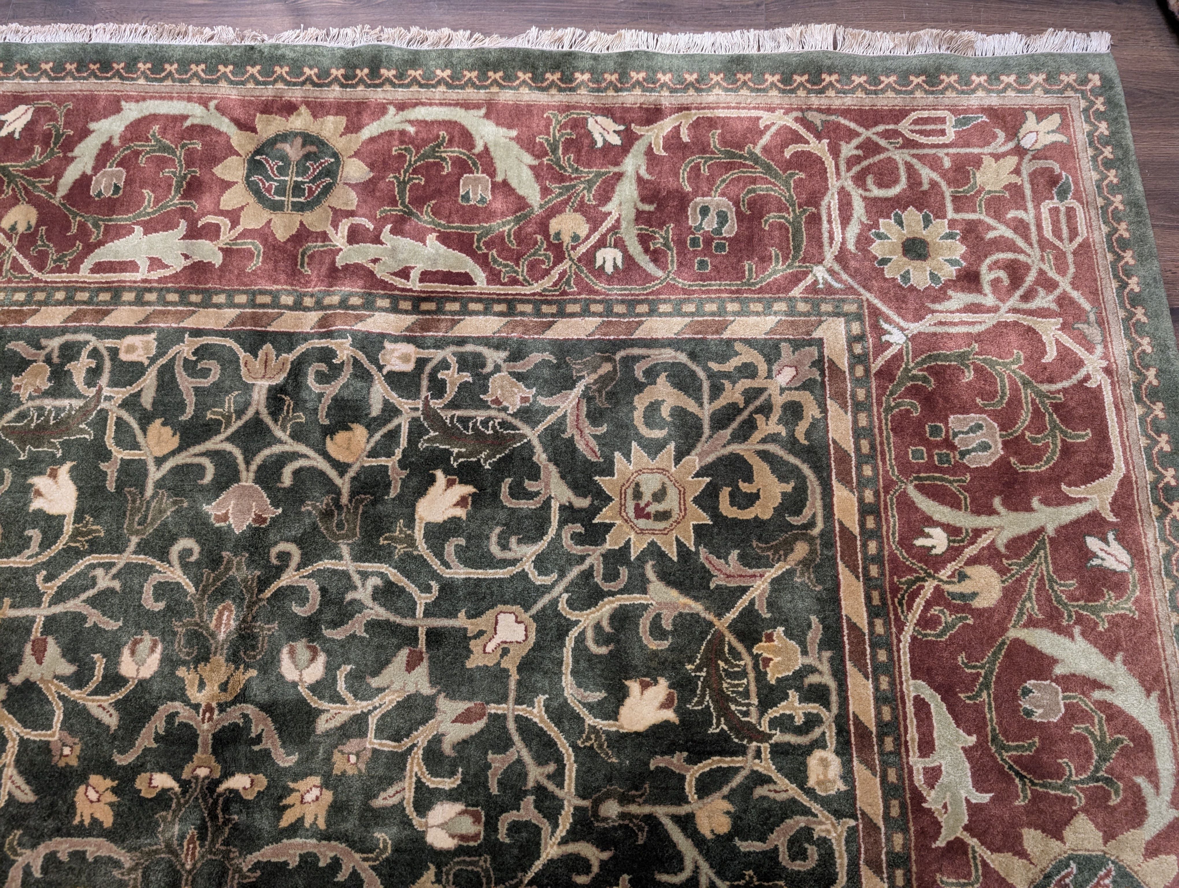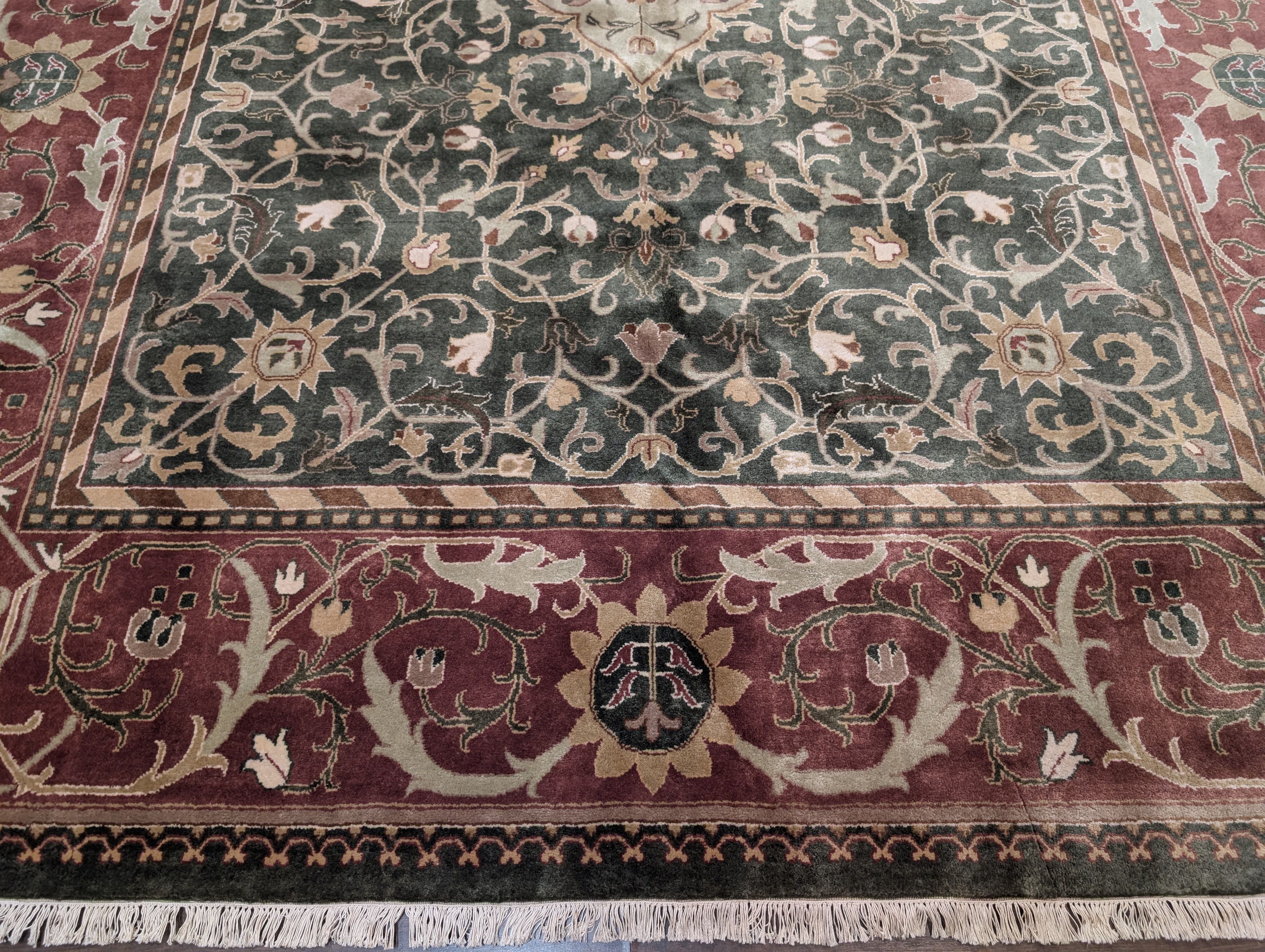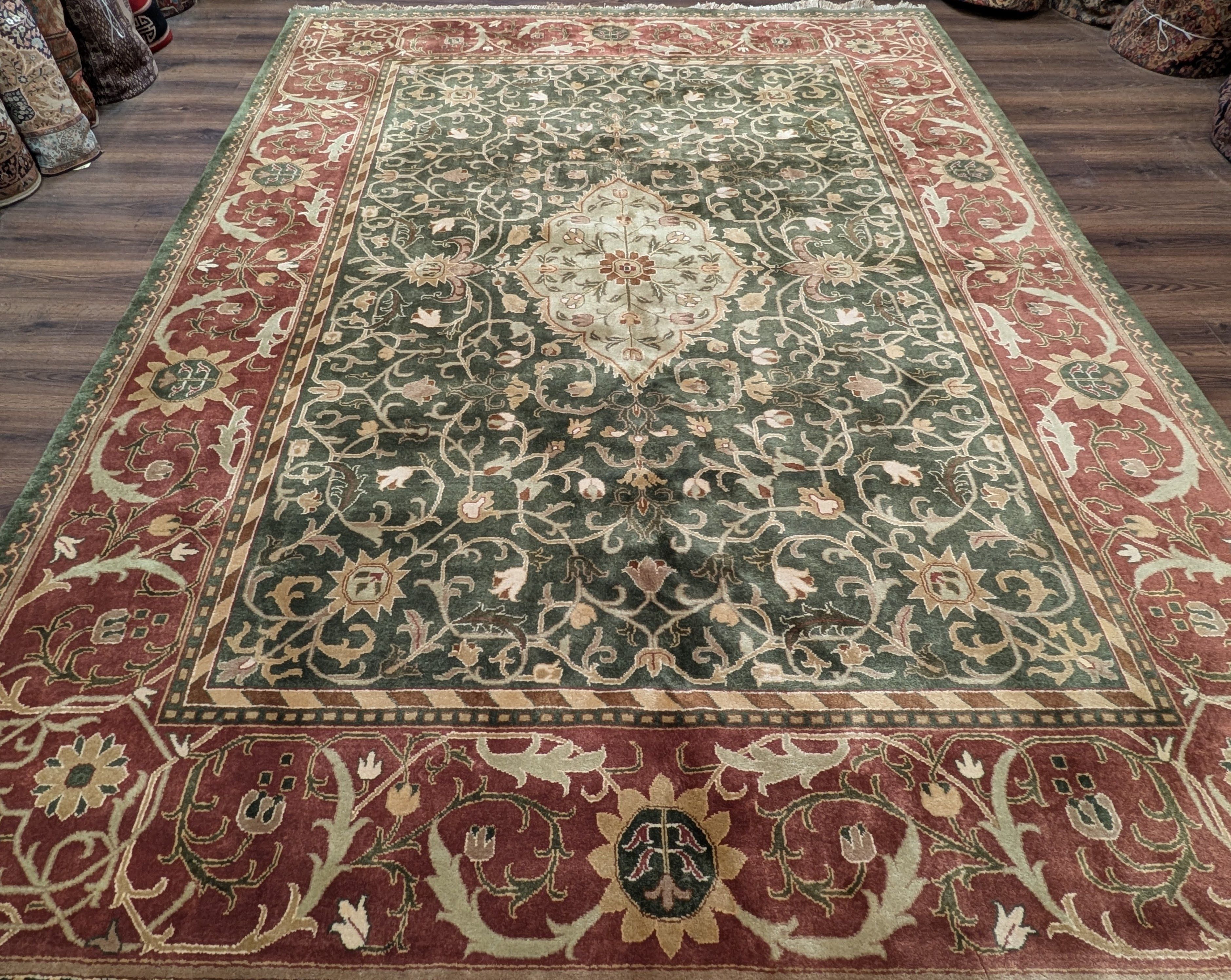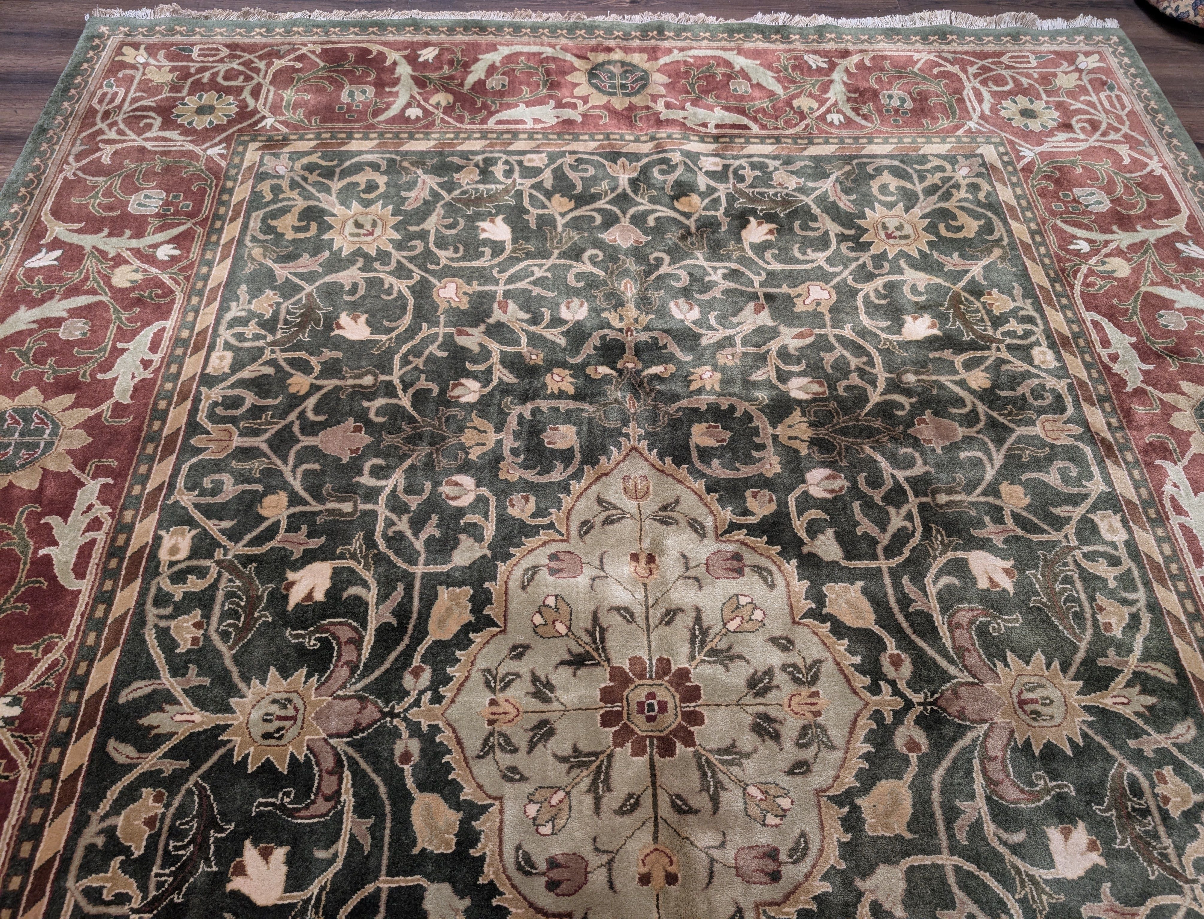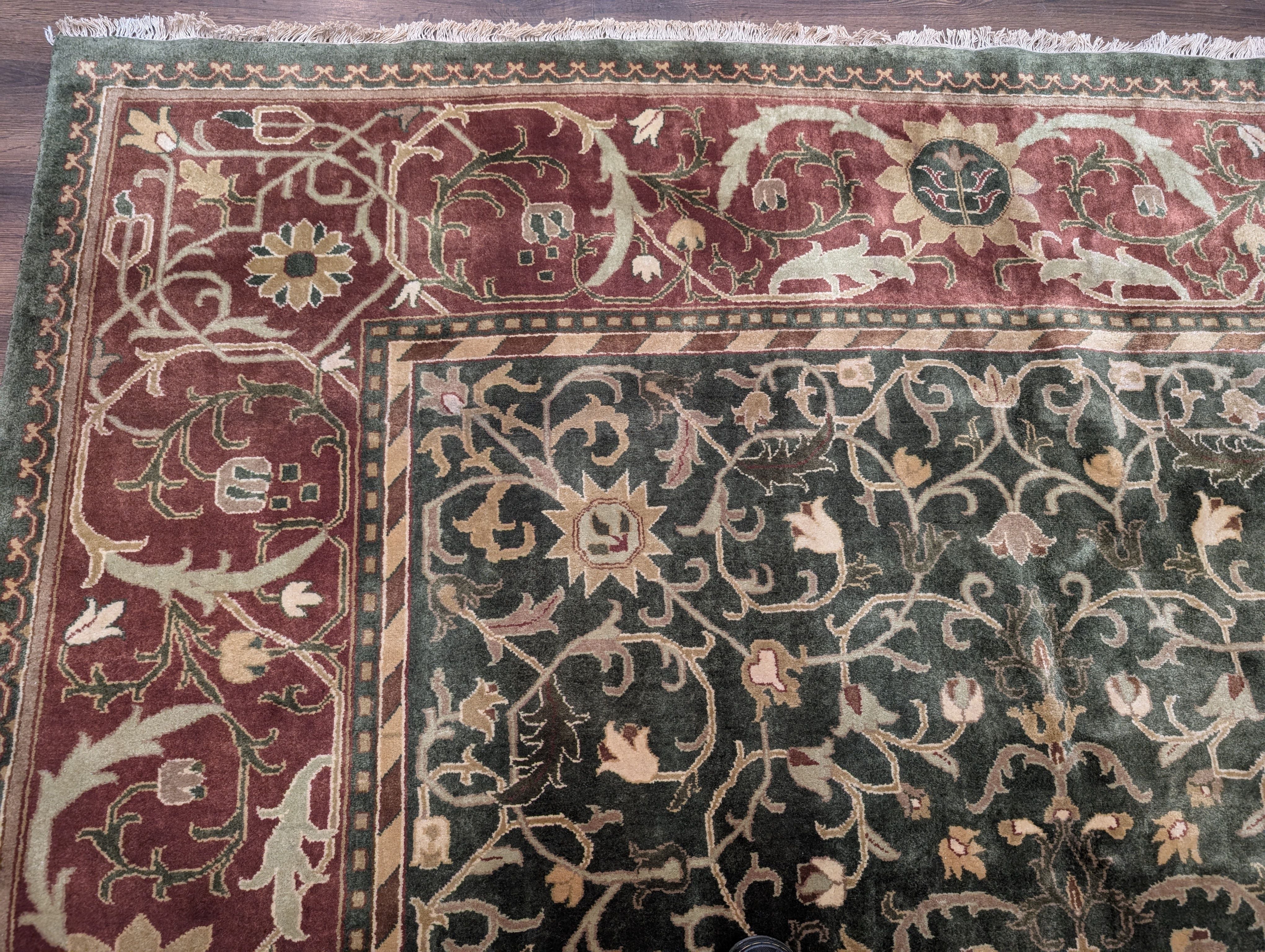 Indo Persian Mahal Rug 9x12, Wool Traditional Area Rug, Green, Ethan Allen Carpet, Handmade