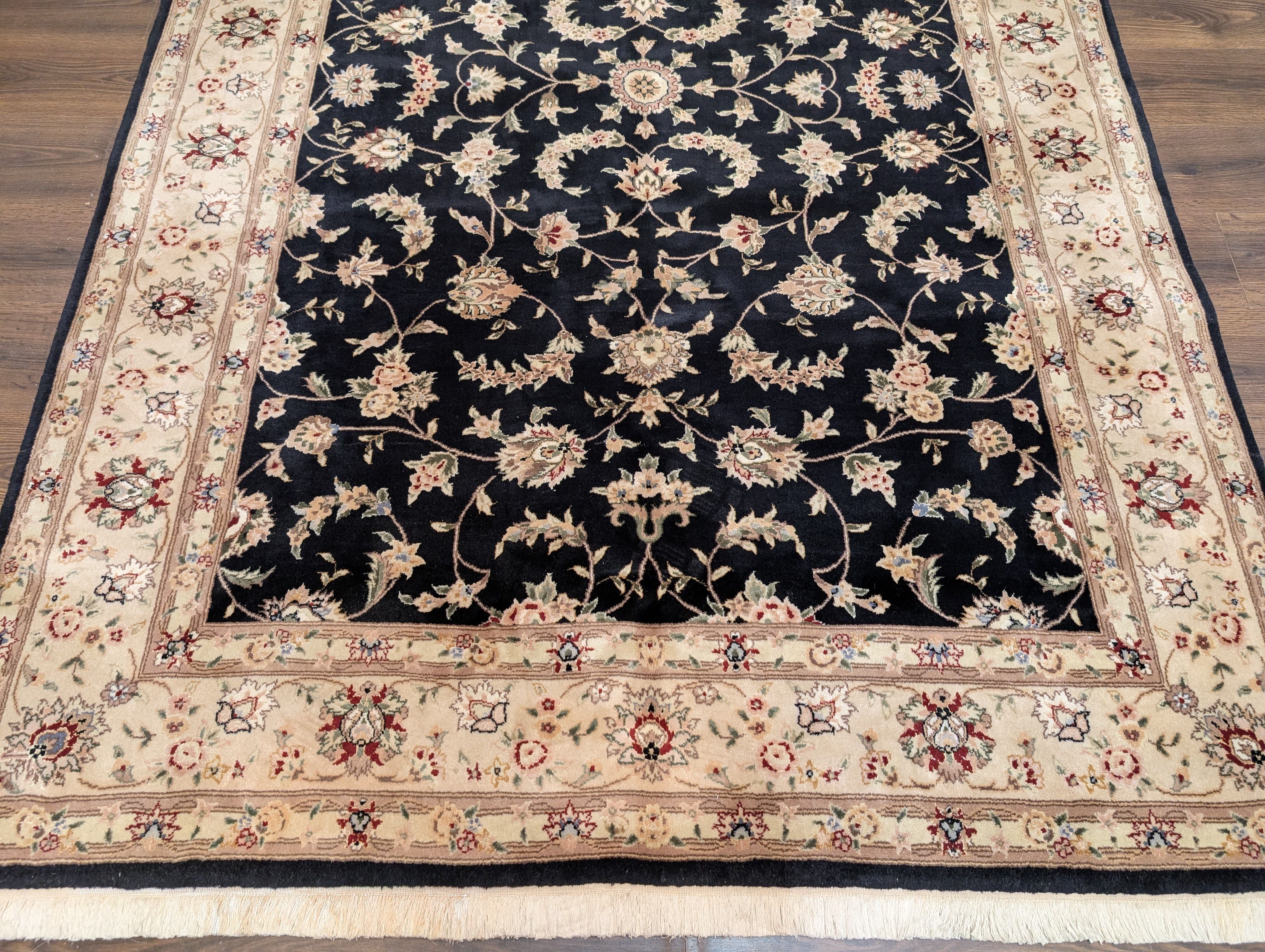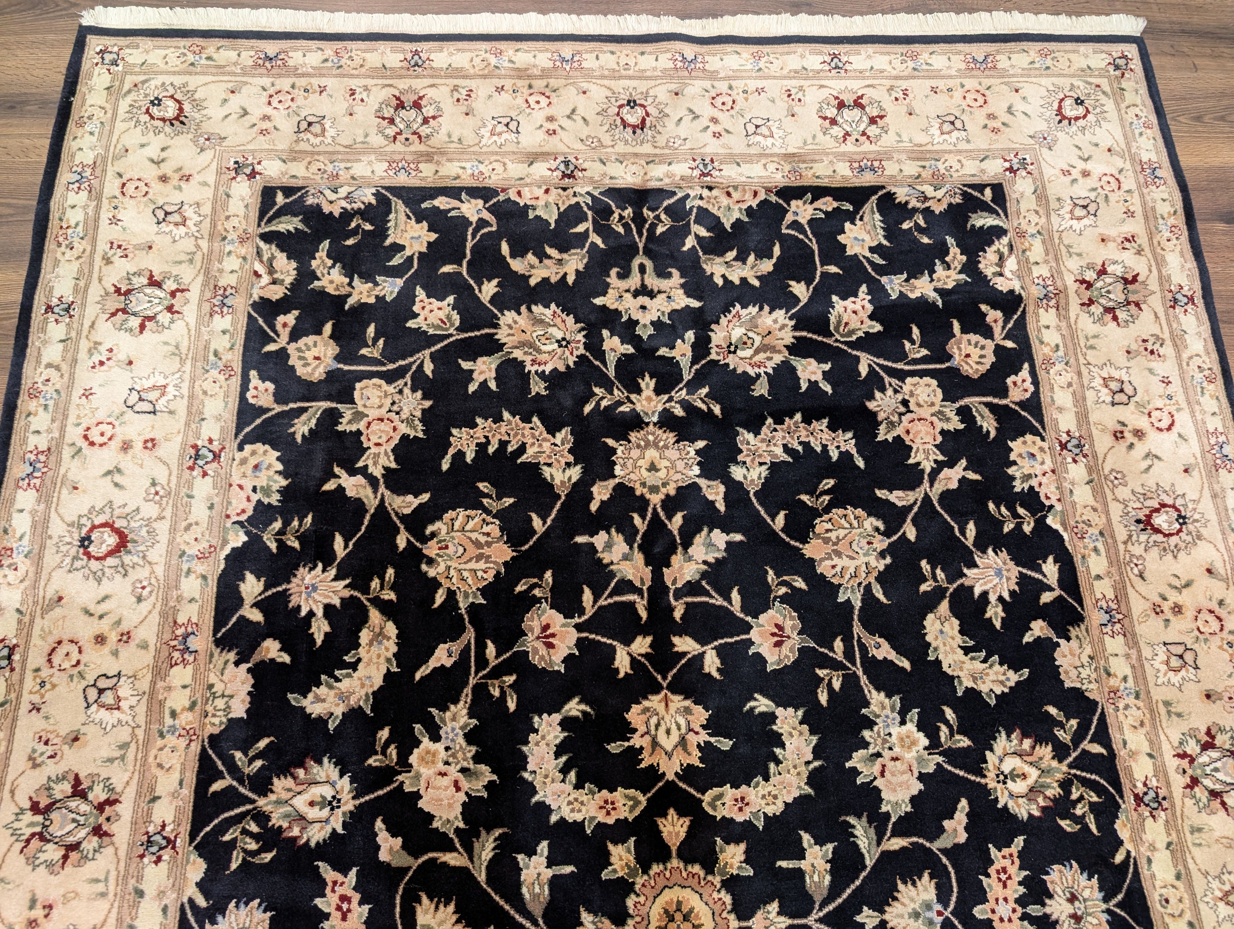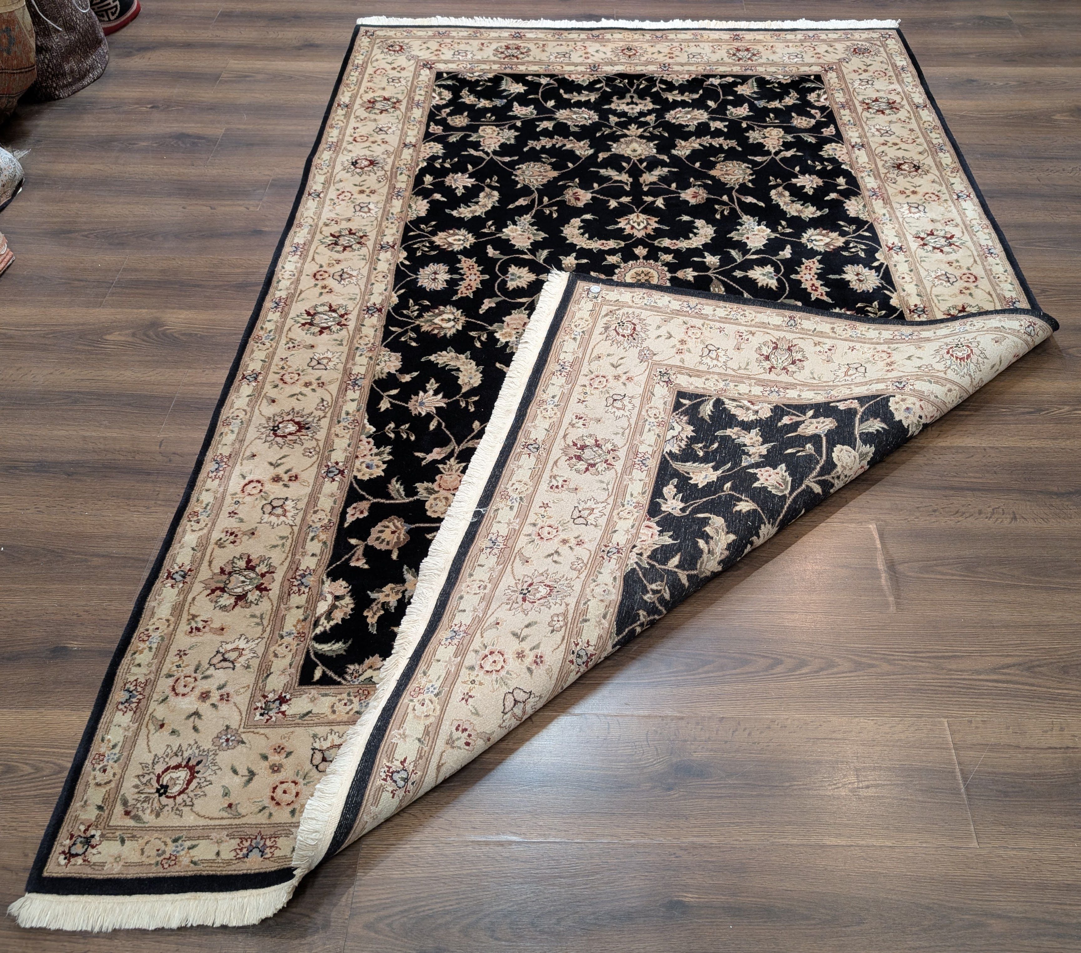 Indo Persian Rug 6x9, Fine, Hand Knotted, Wool & Silk, Allover Pattern