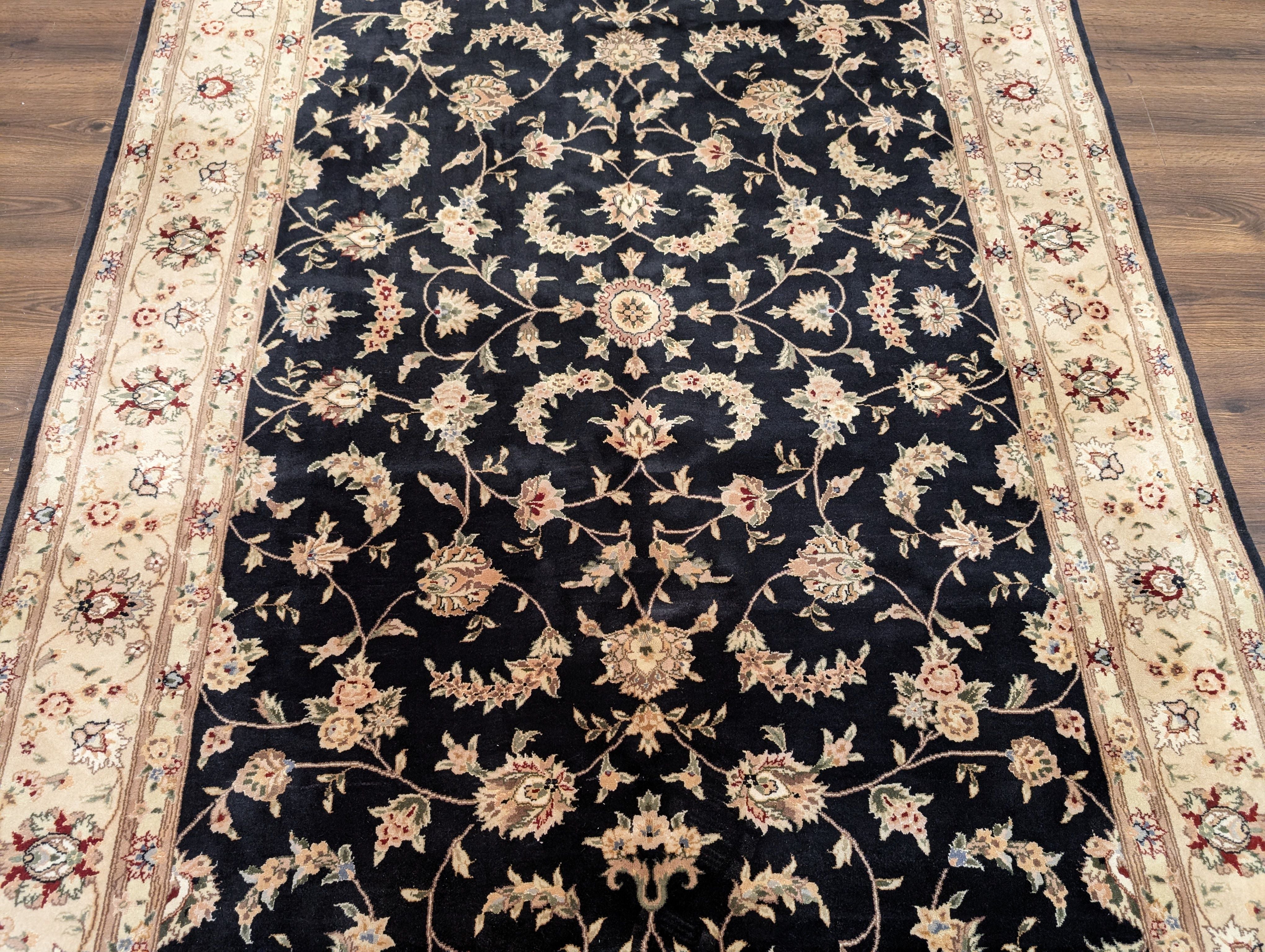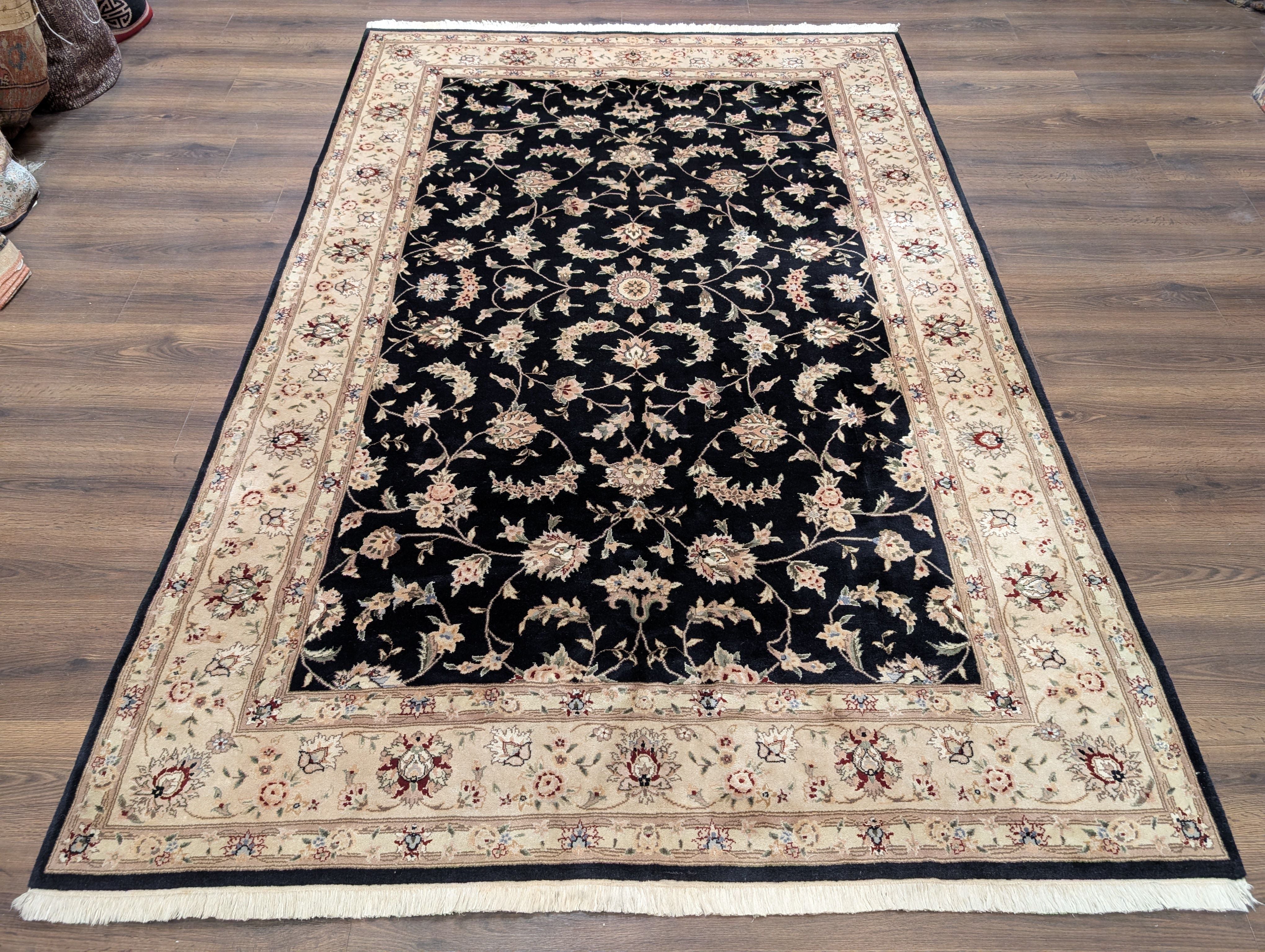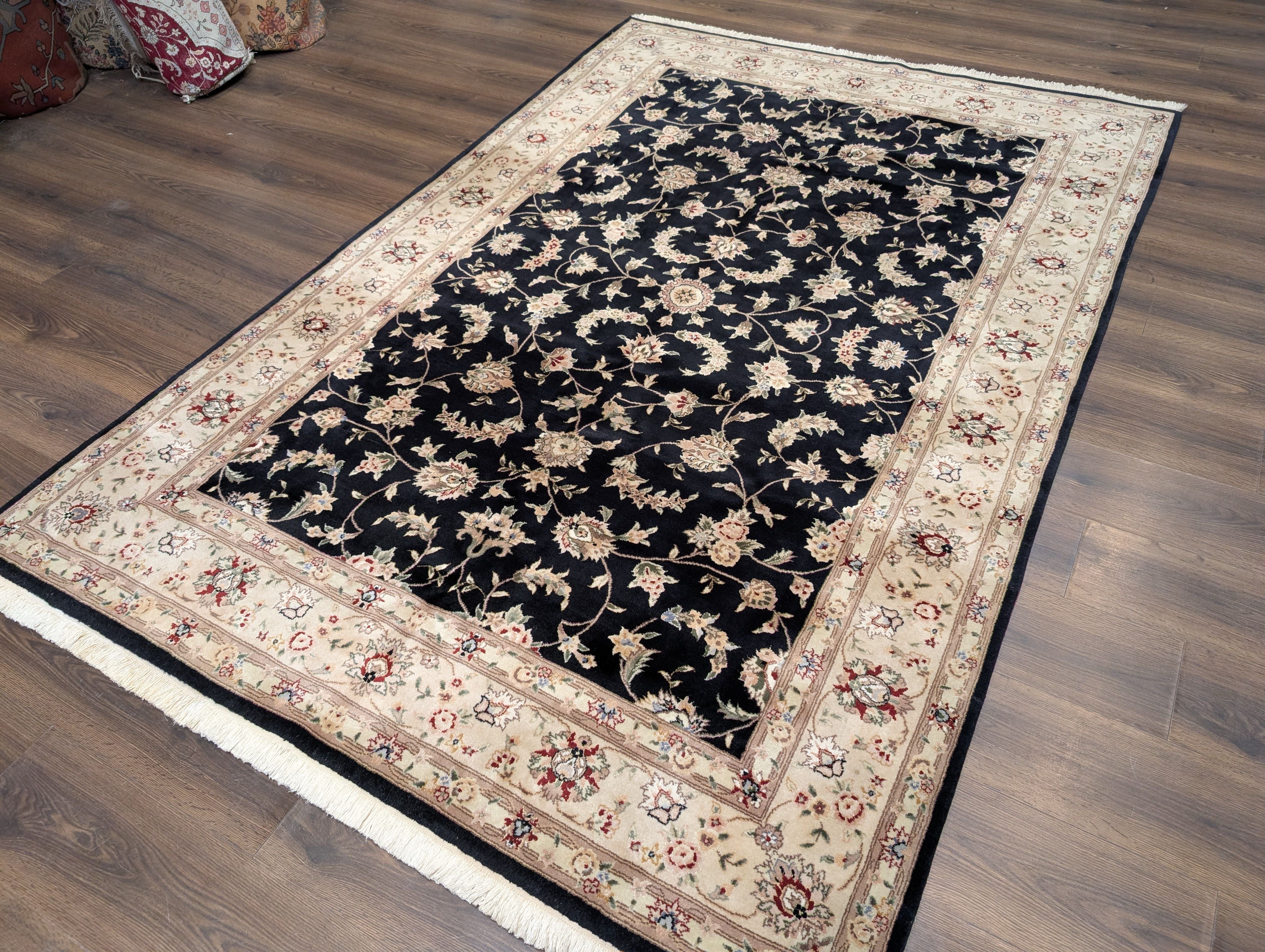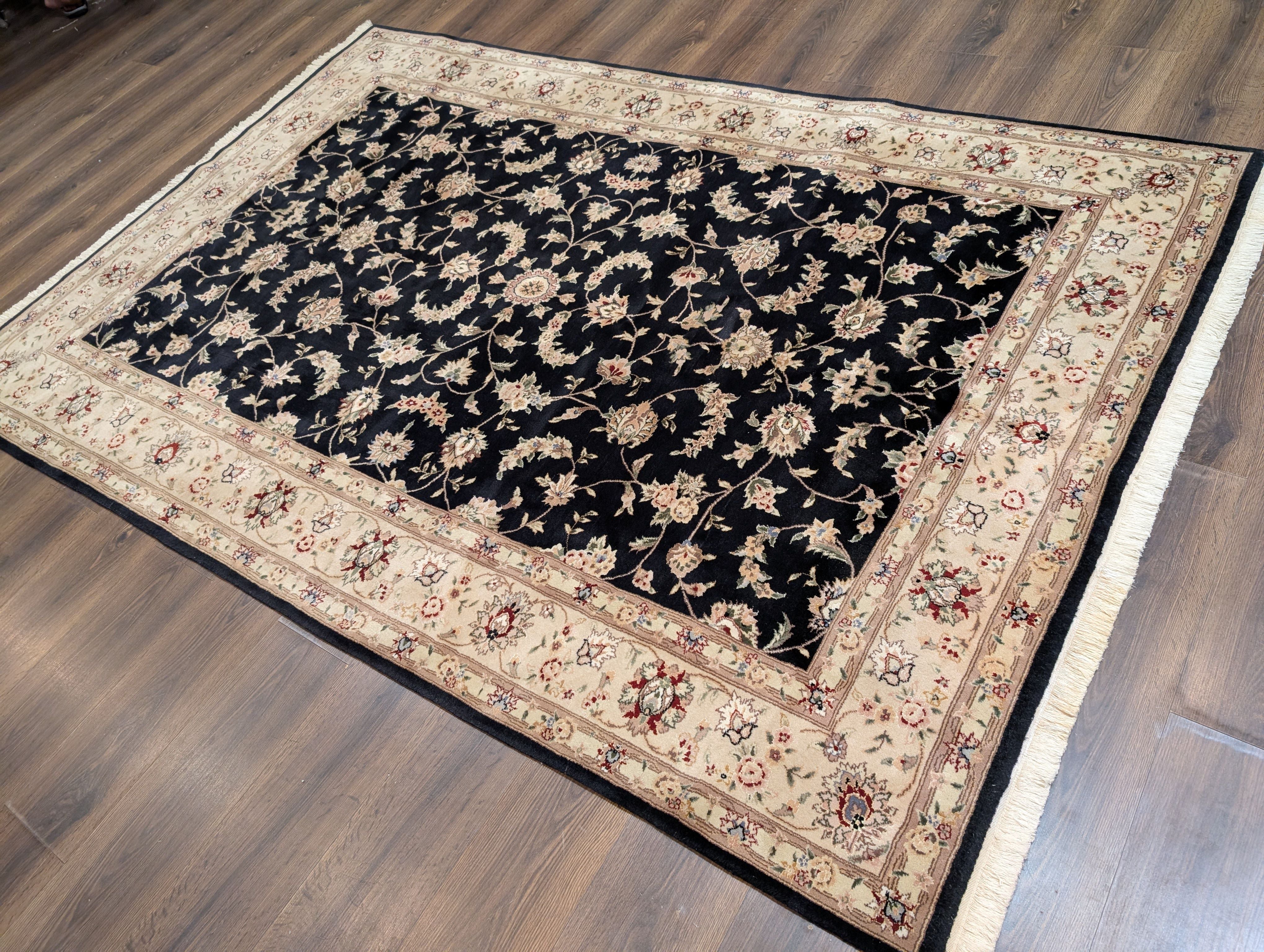 Indo Persian Rug 6x9, Fine, Hand Knotted, Wool & Silk, Allover Pattern