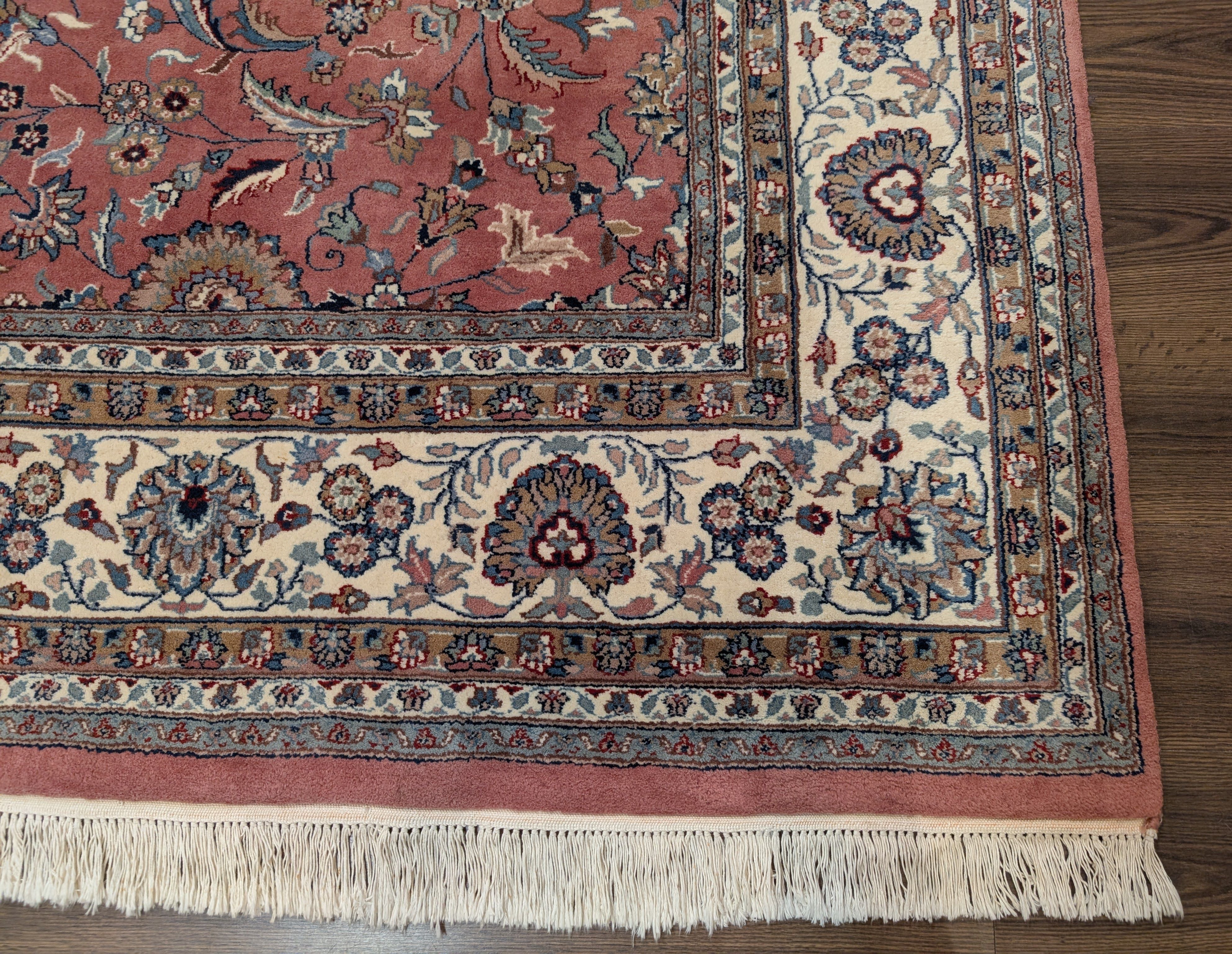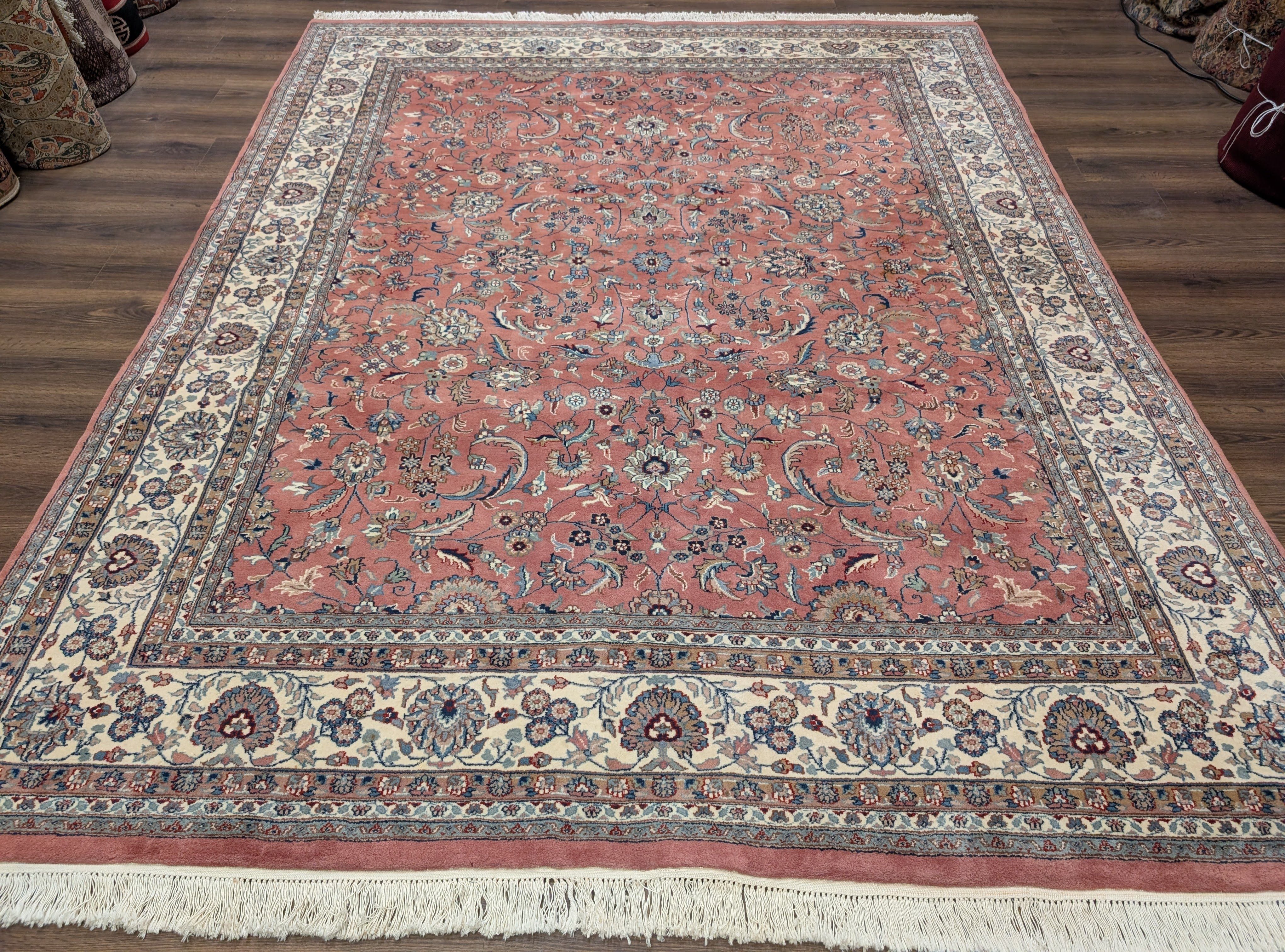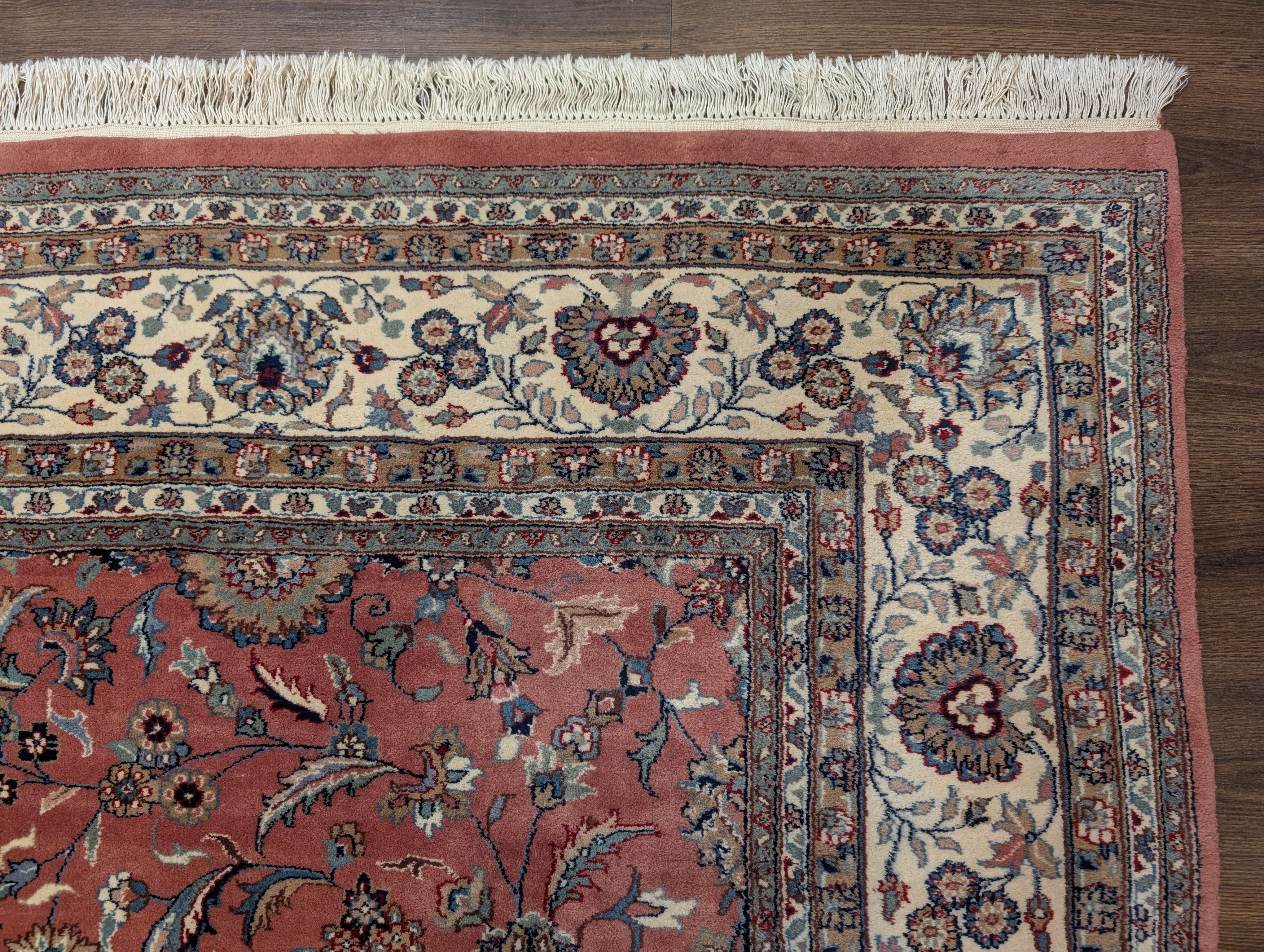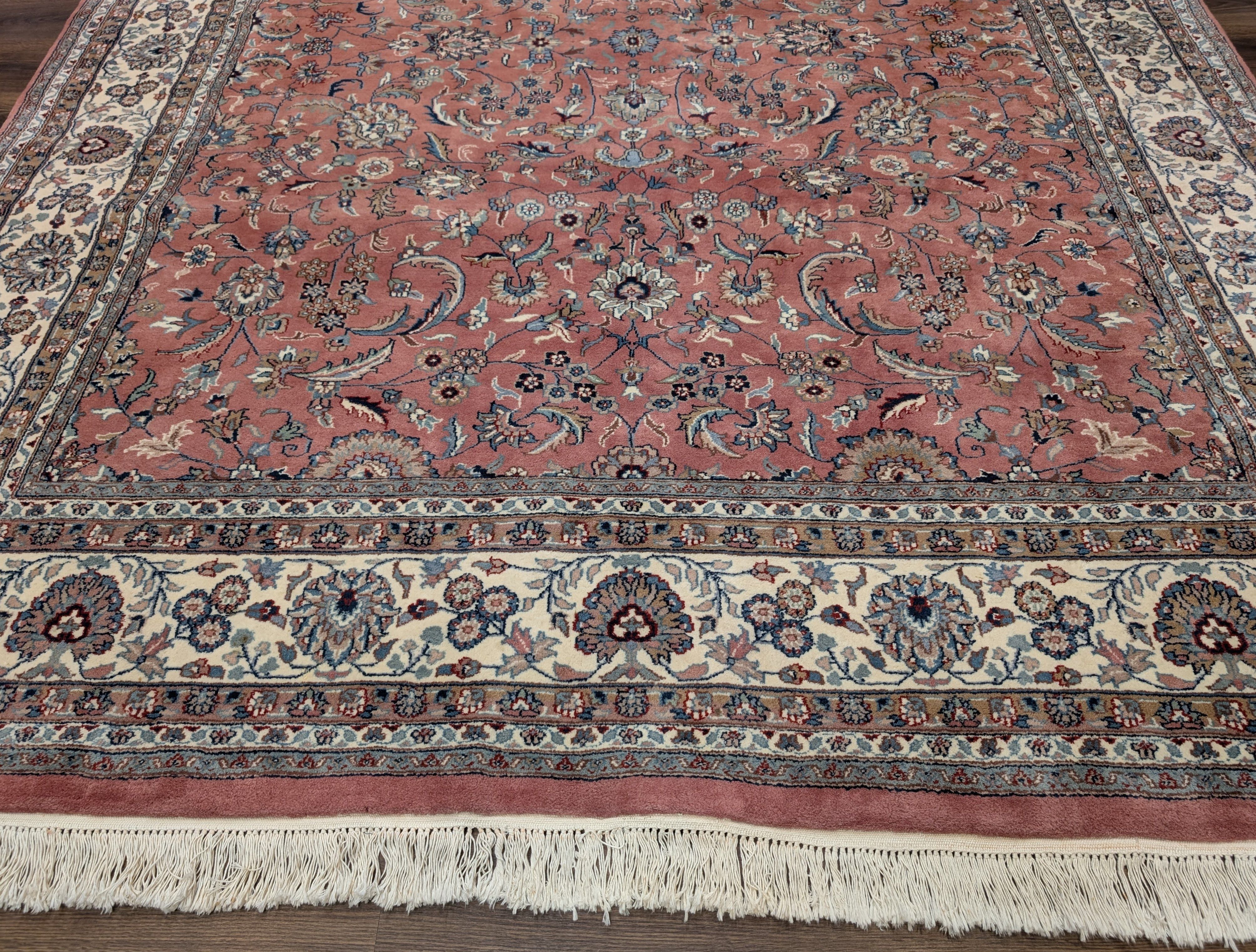 Indo Persian Rug 8x10, Salmon Pink and Cream, Allover Pattern, Wool
