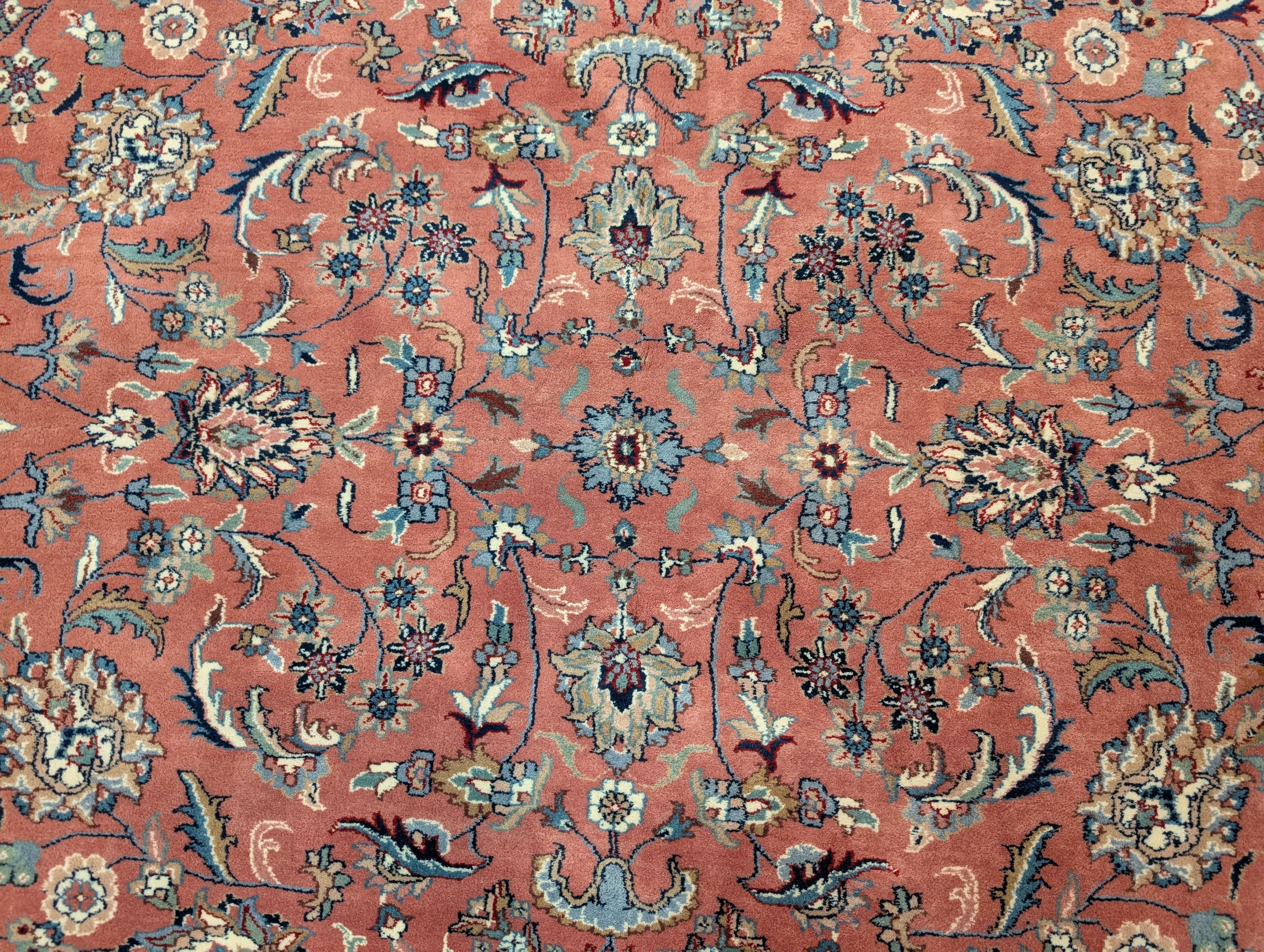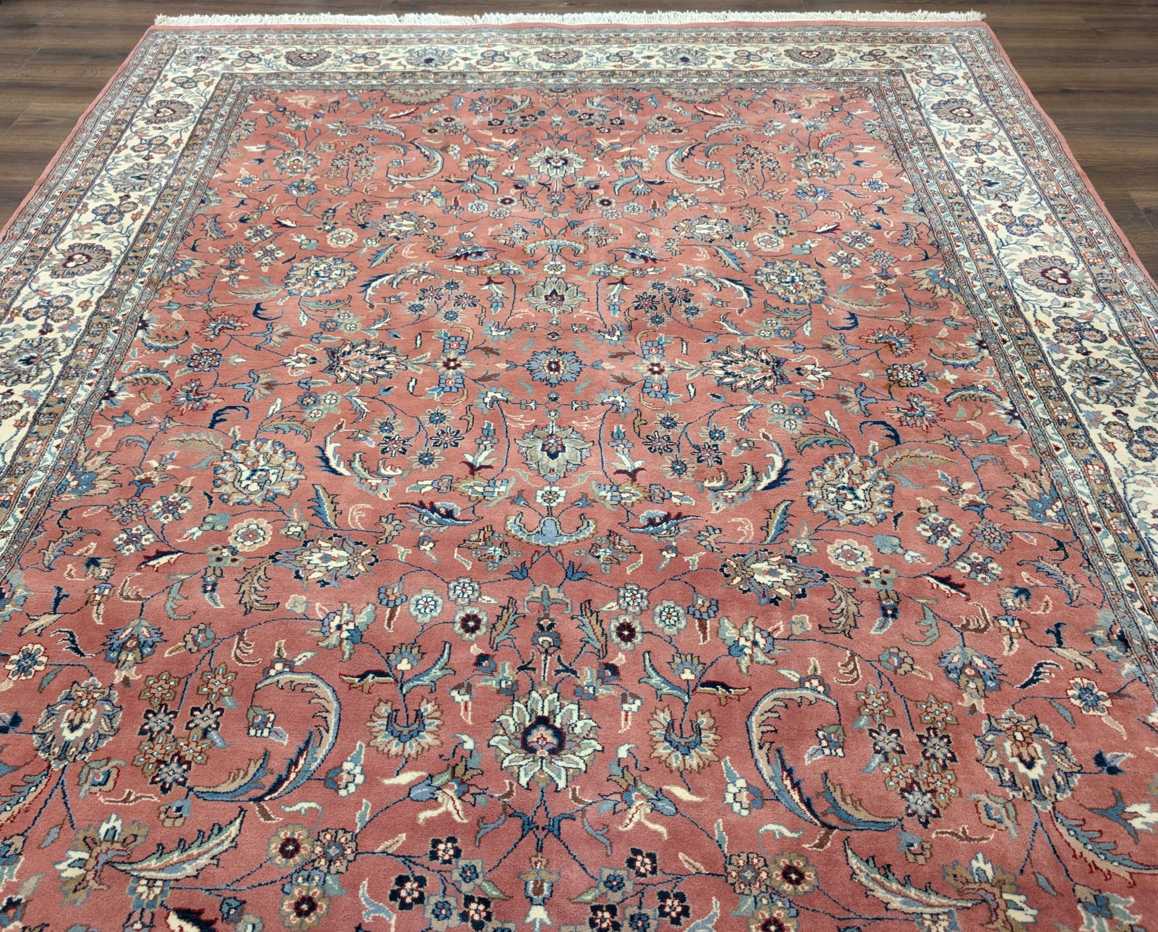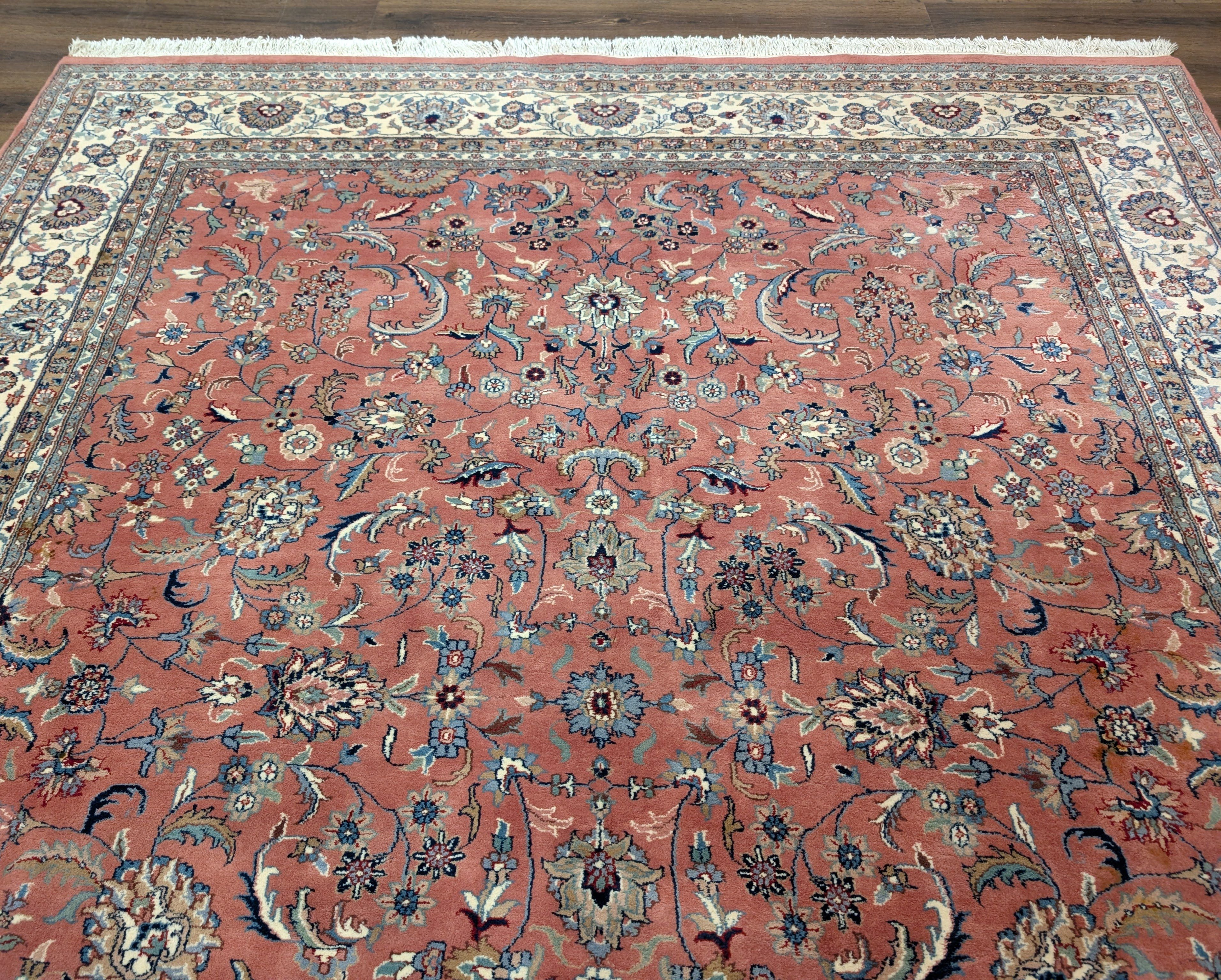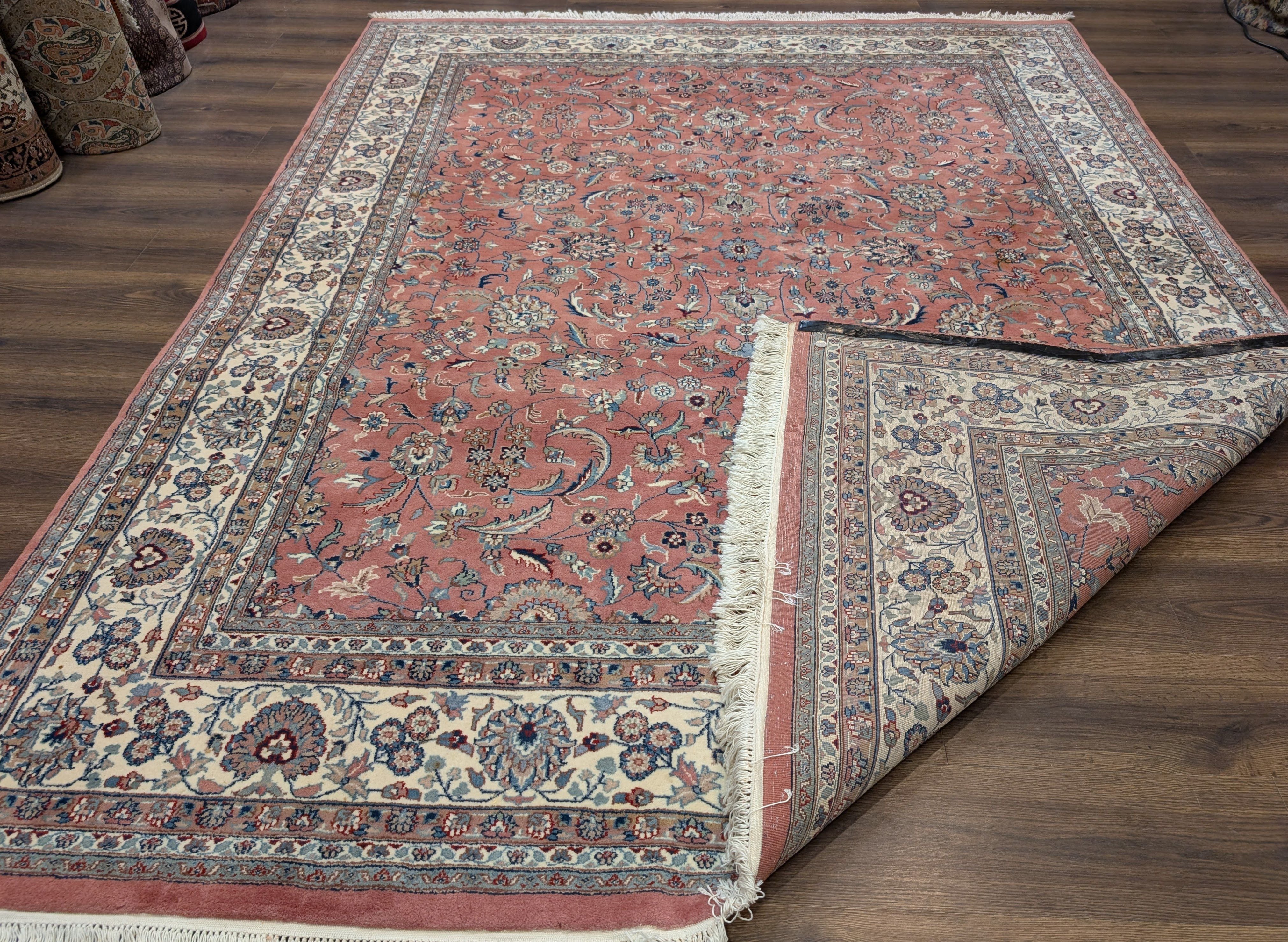 Indo Persian Rug 8x10, Salmon Pink and Cream, Allover Pattern, Wool