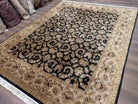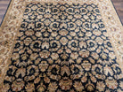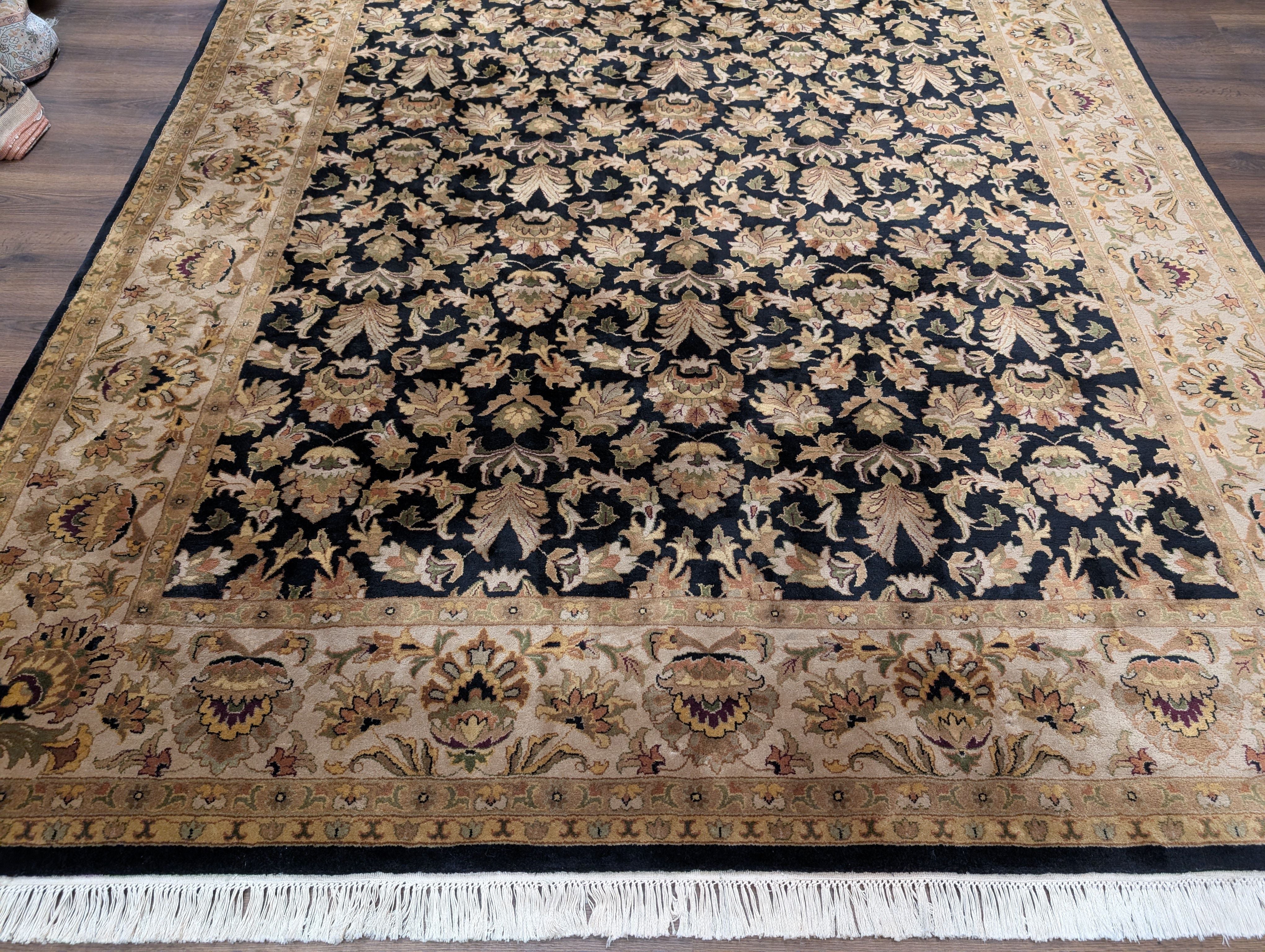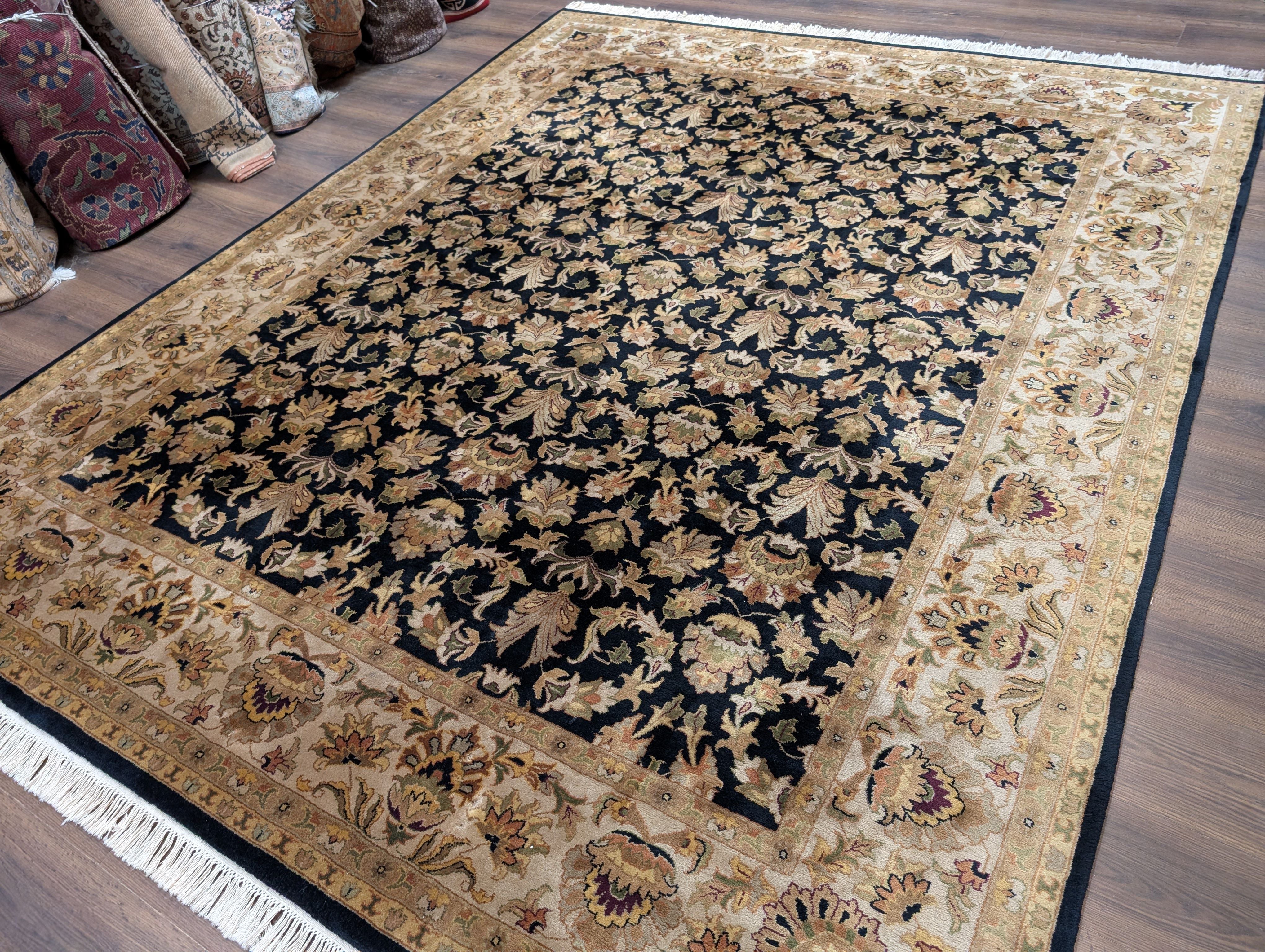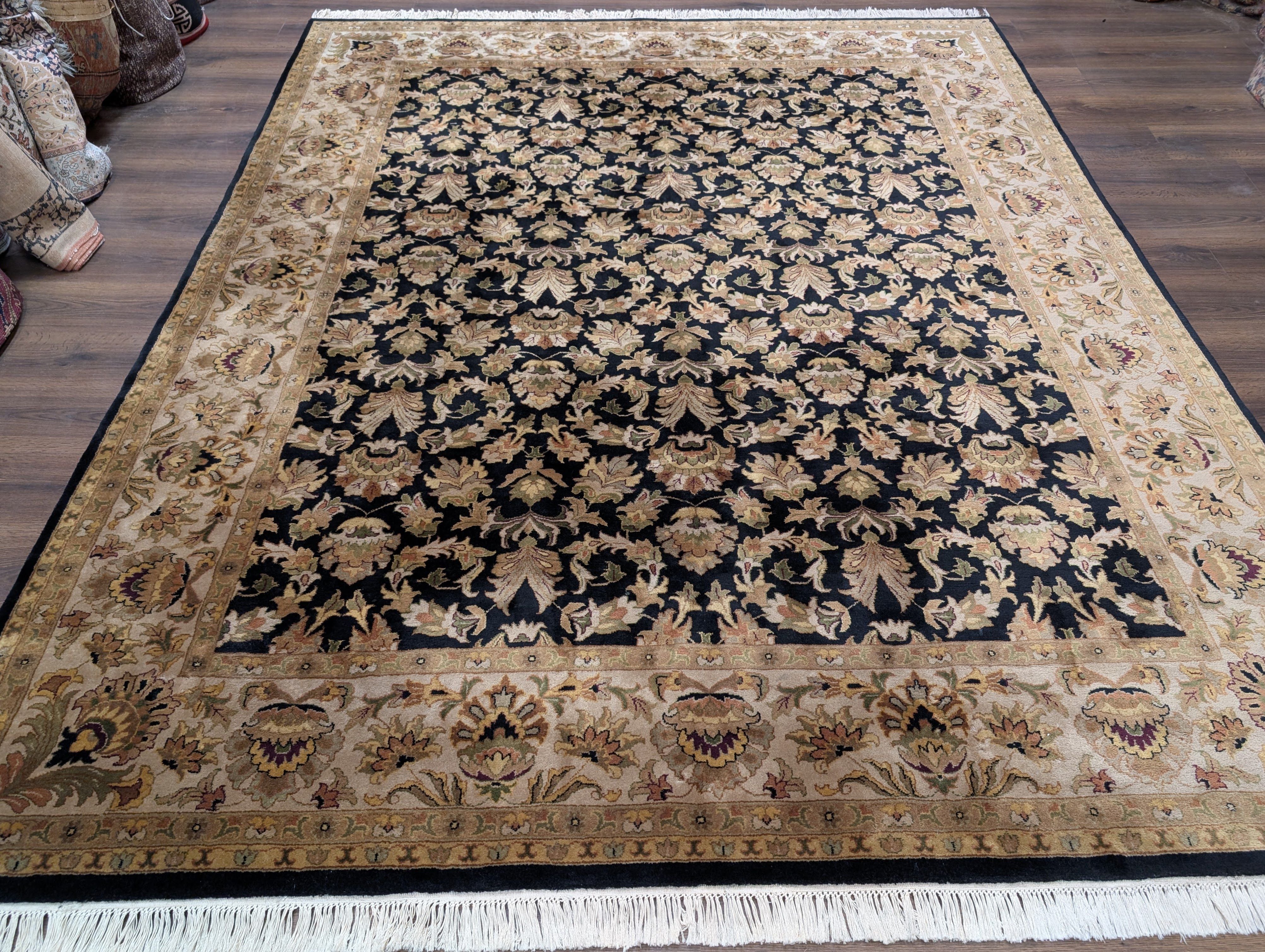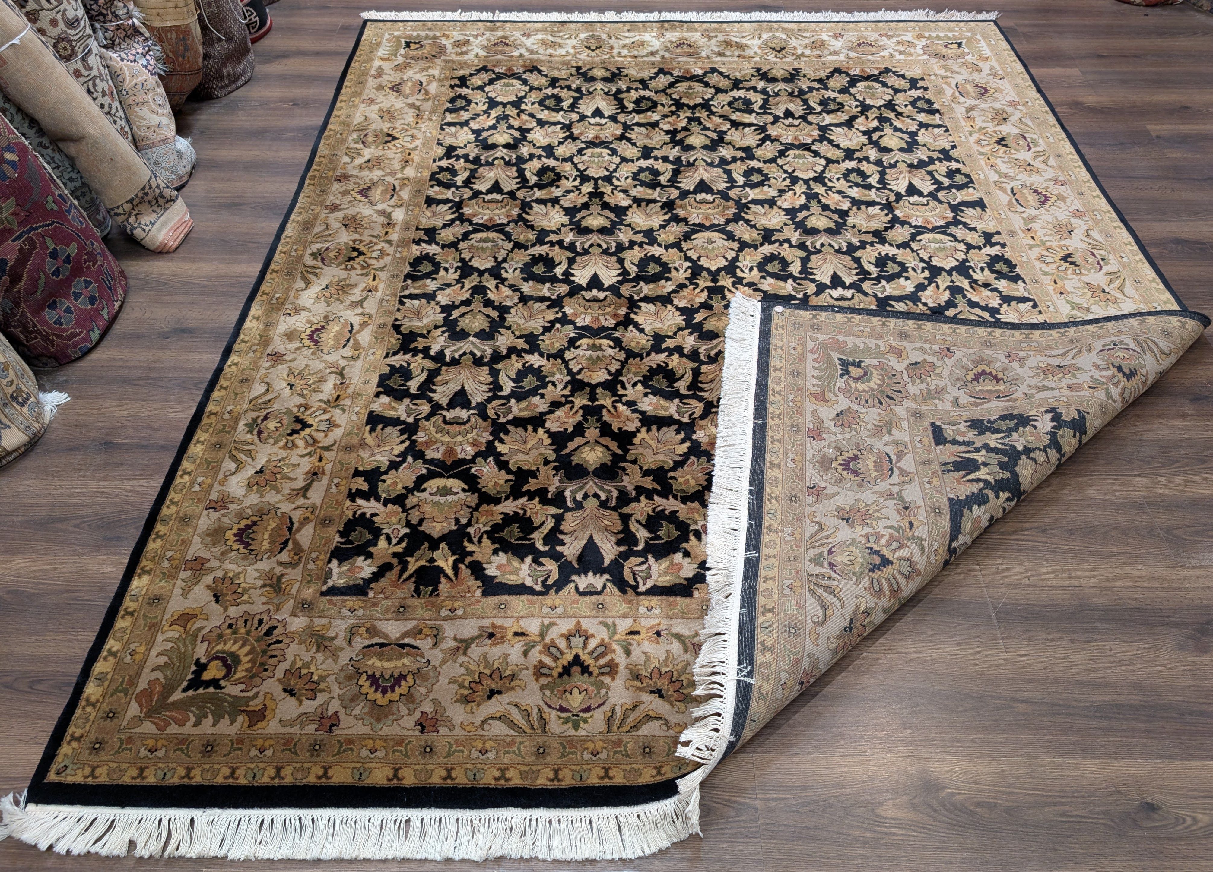 Indo Persian Rug 8x10, Wool, Hand Knotted, Black, Allover Pattern