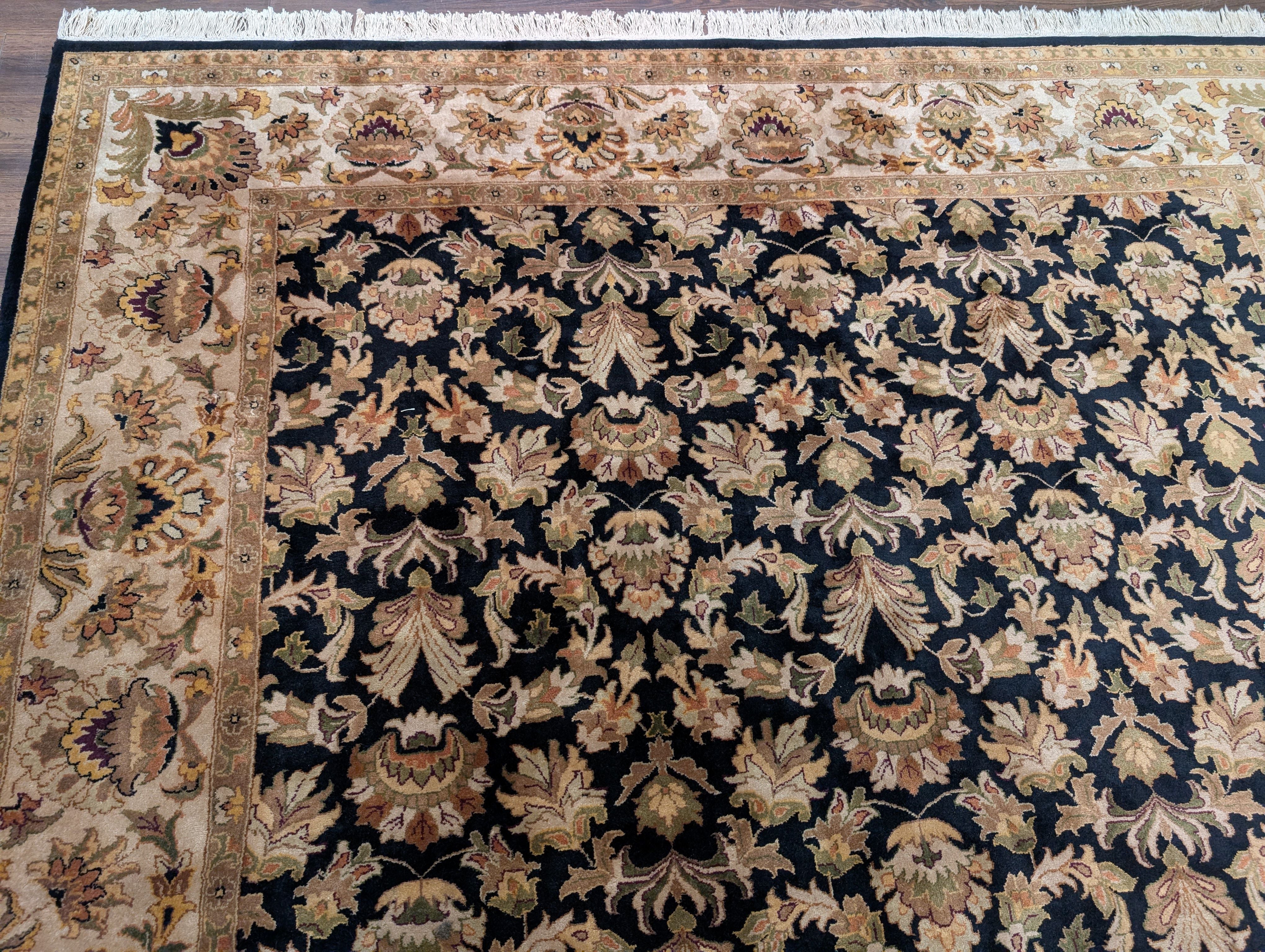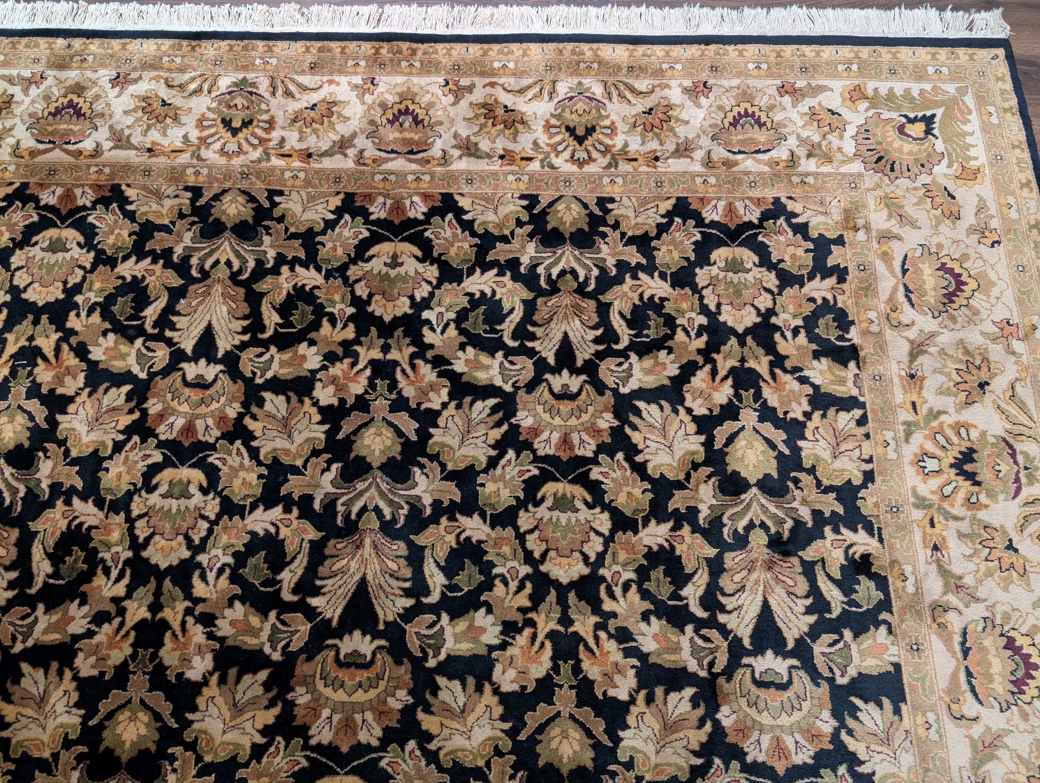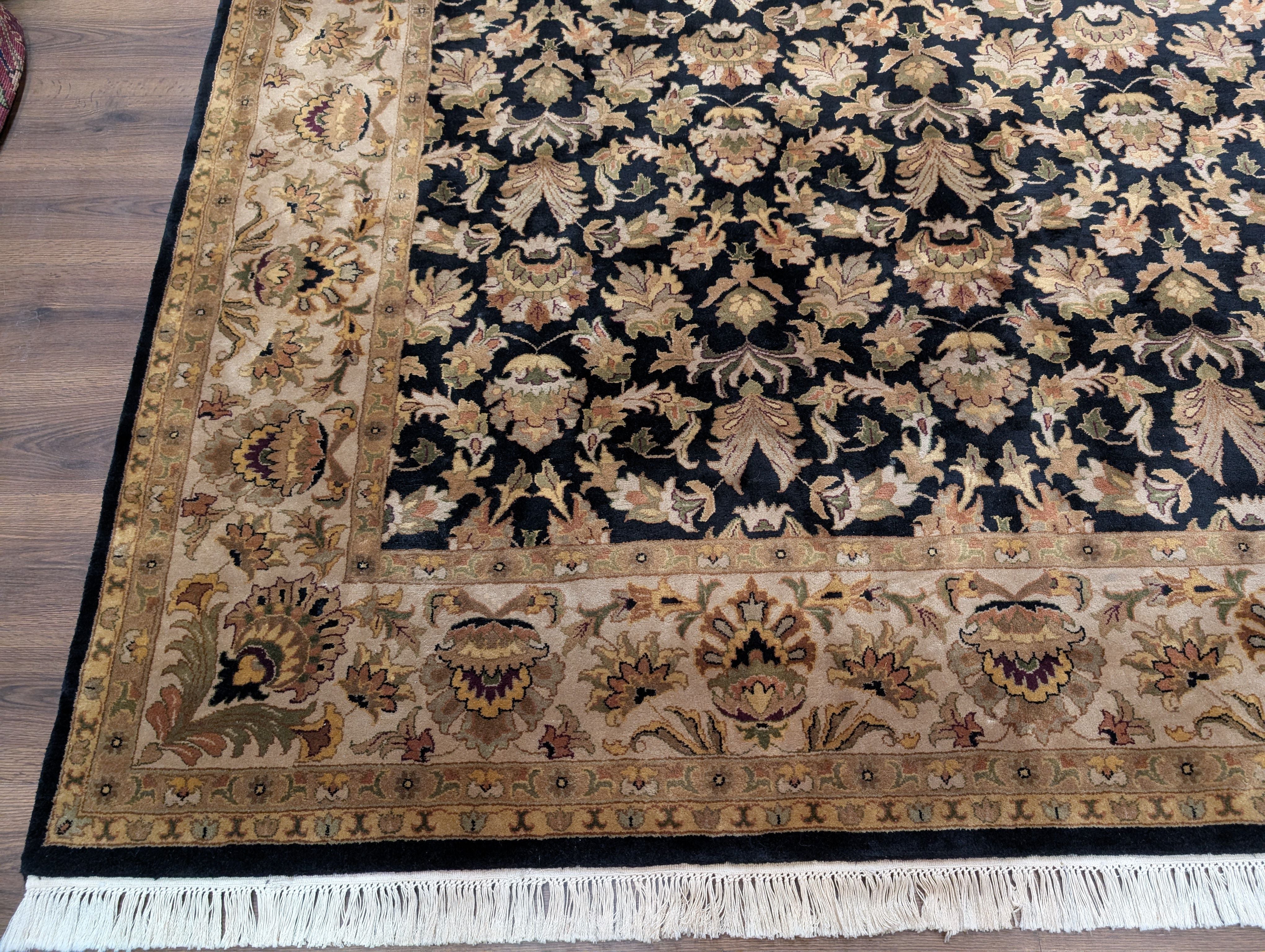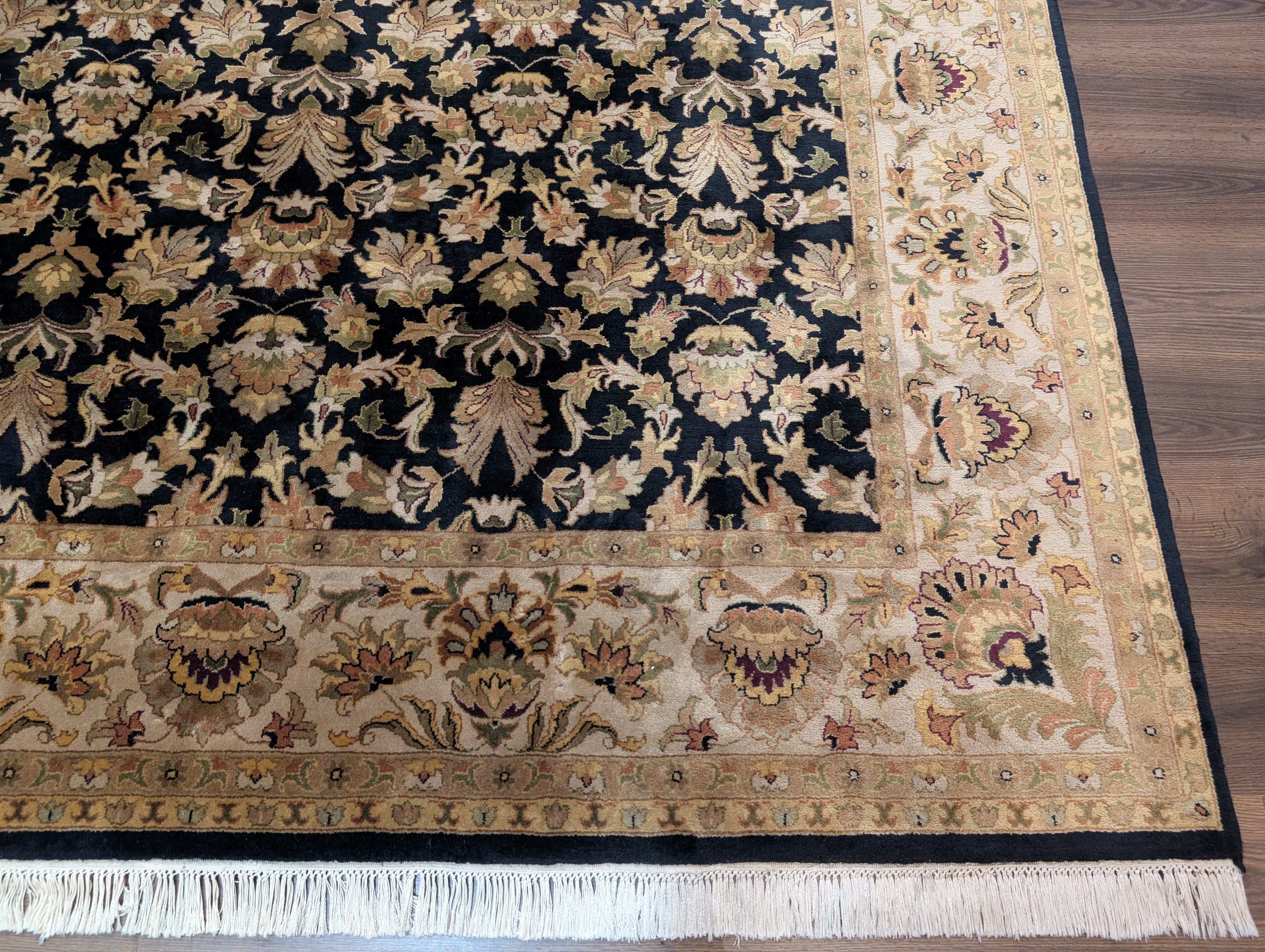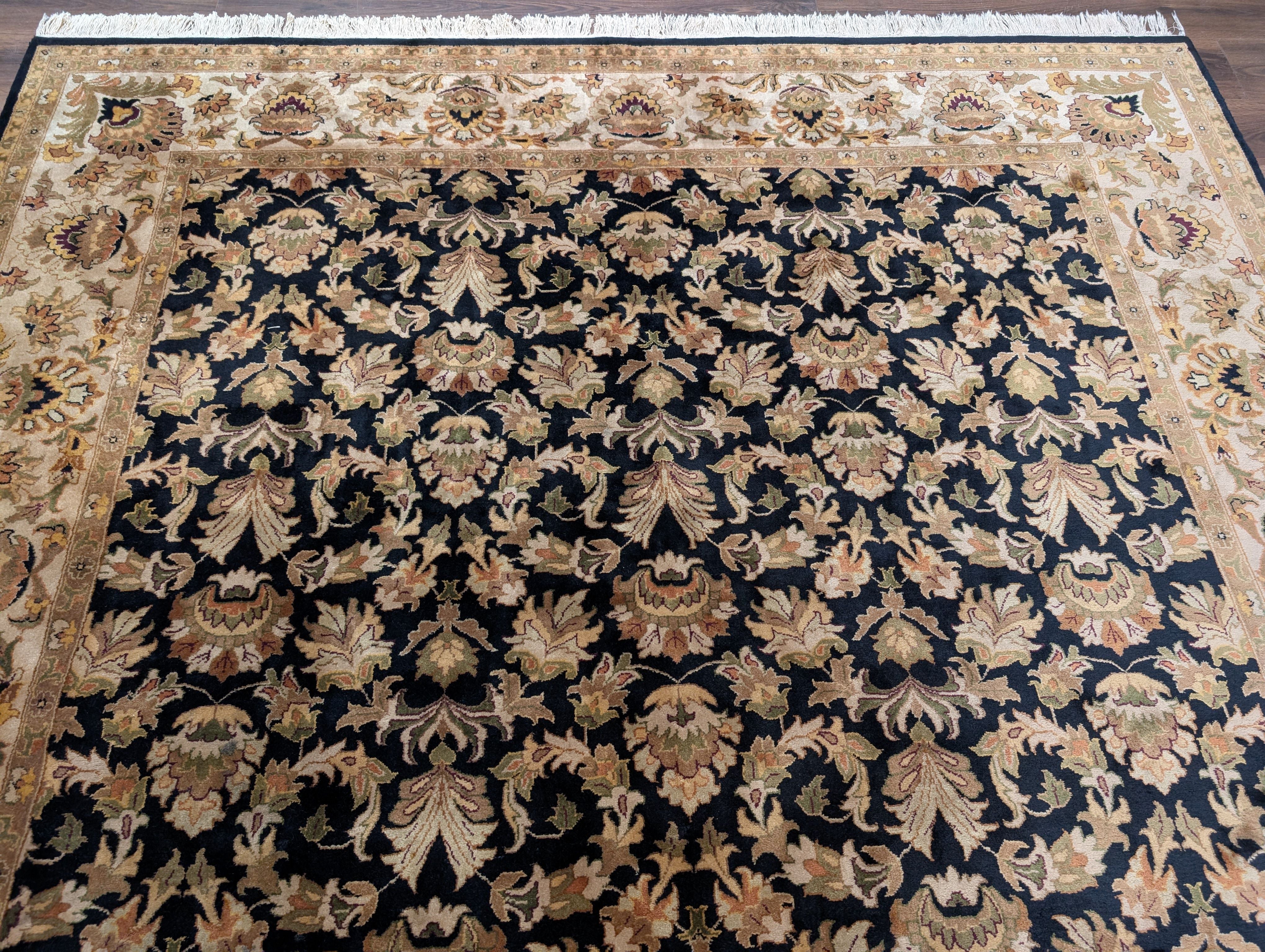 Indo Persian Rug 8x10, Wool, Hand Knotted, Black, Allover Pattern