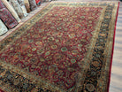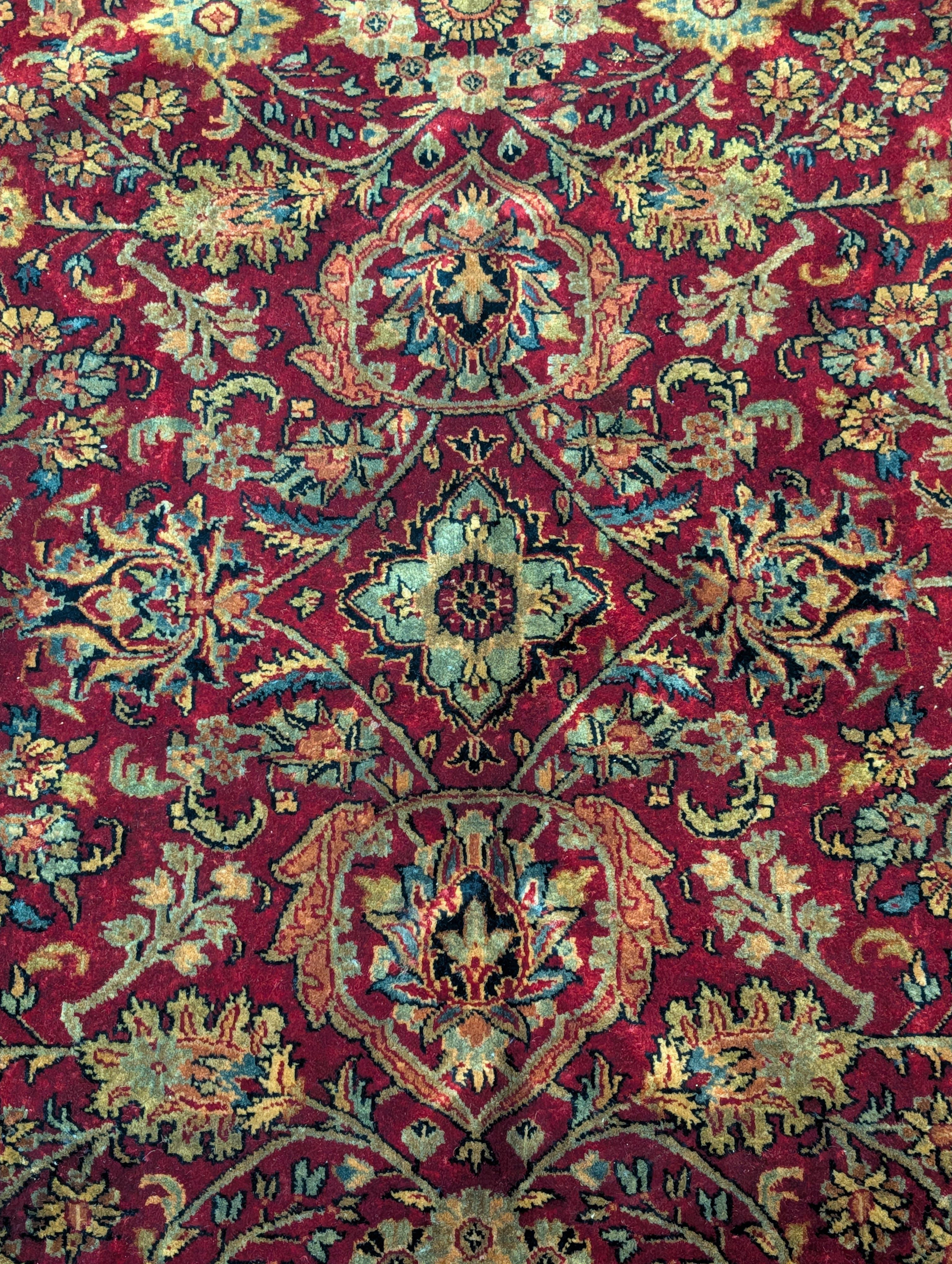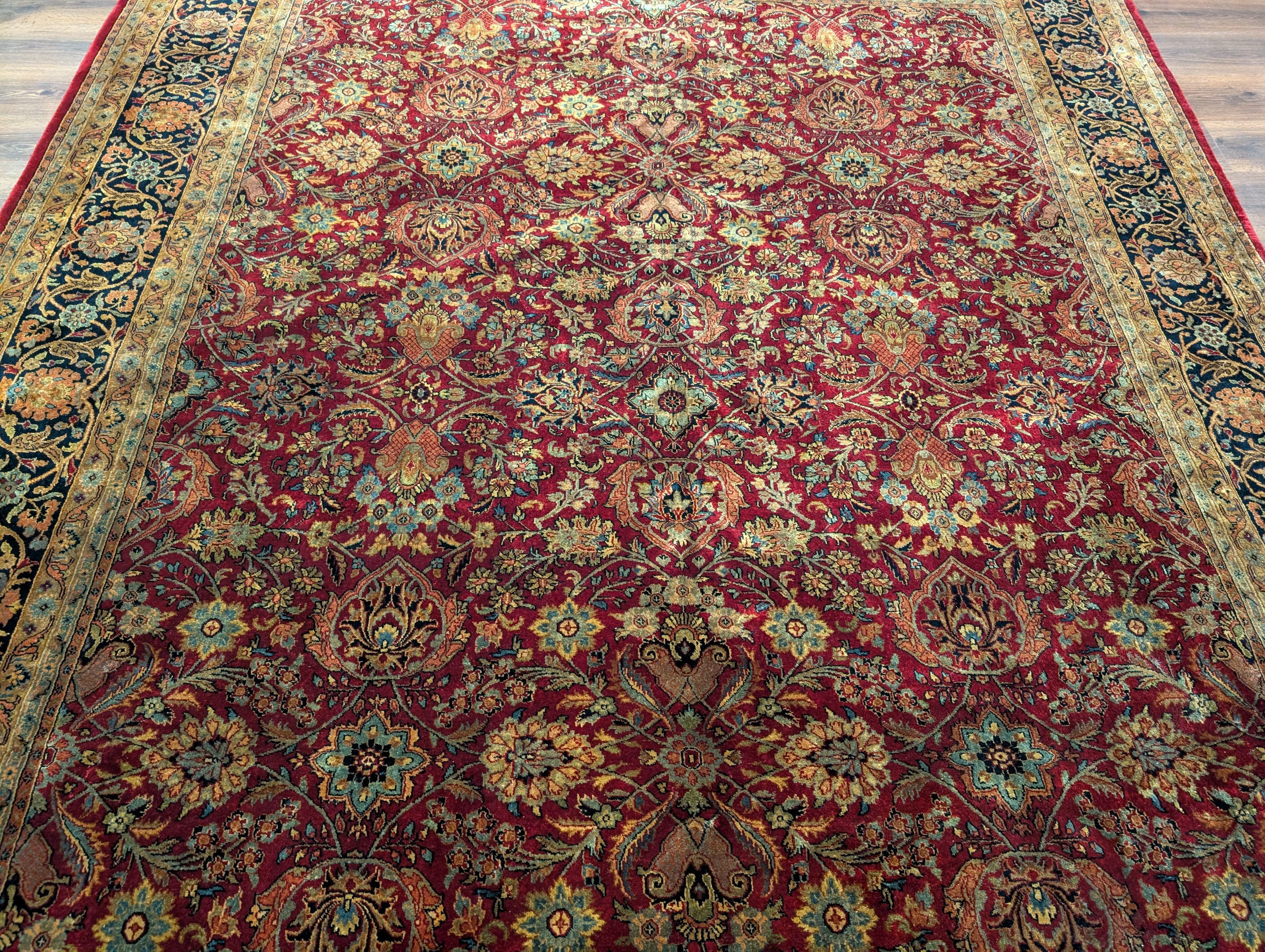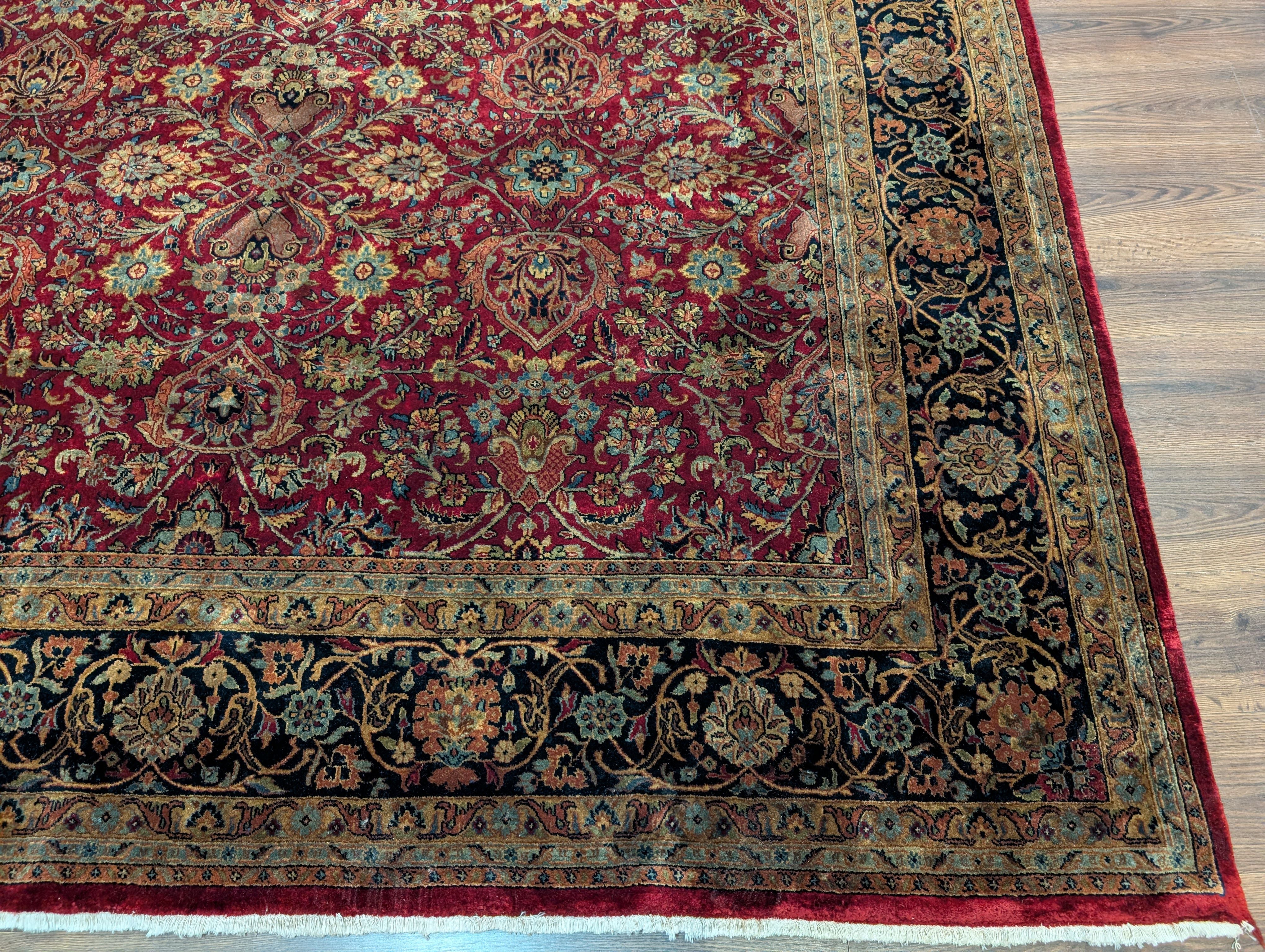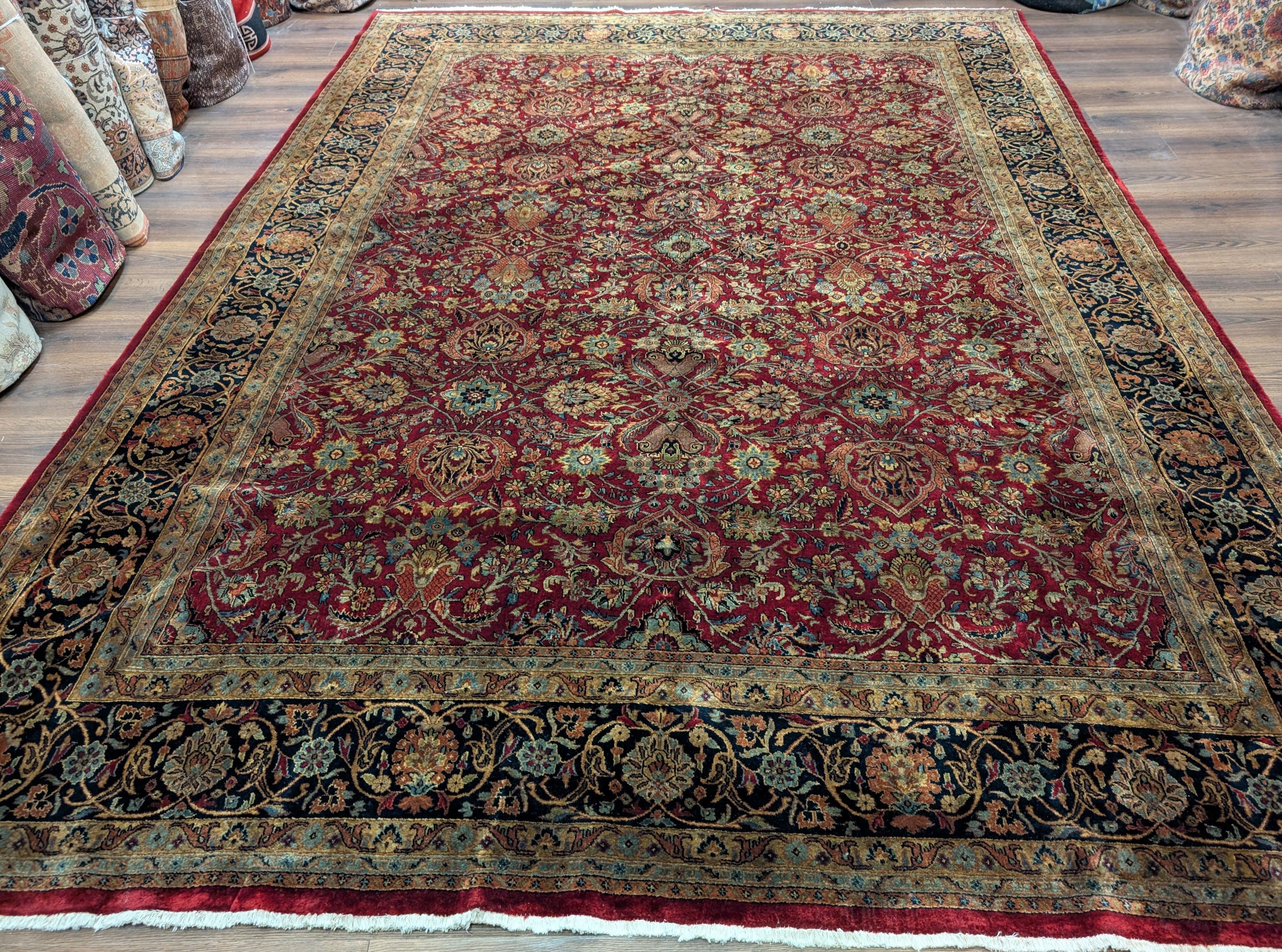 Indo Persian Rug 9x12, Allover Pattern, Dark Red, Hand Knotted Wool Oriental Carpet
