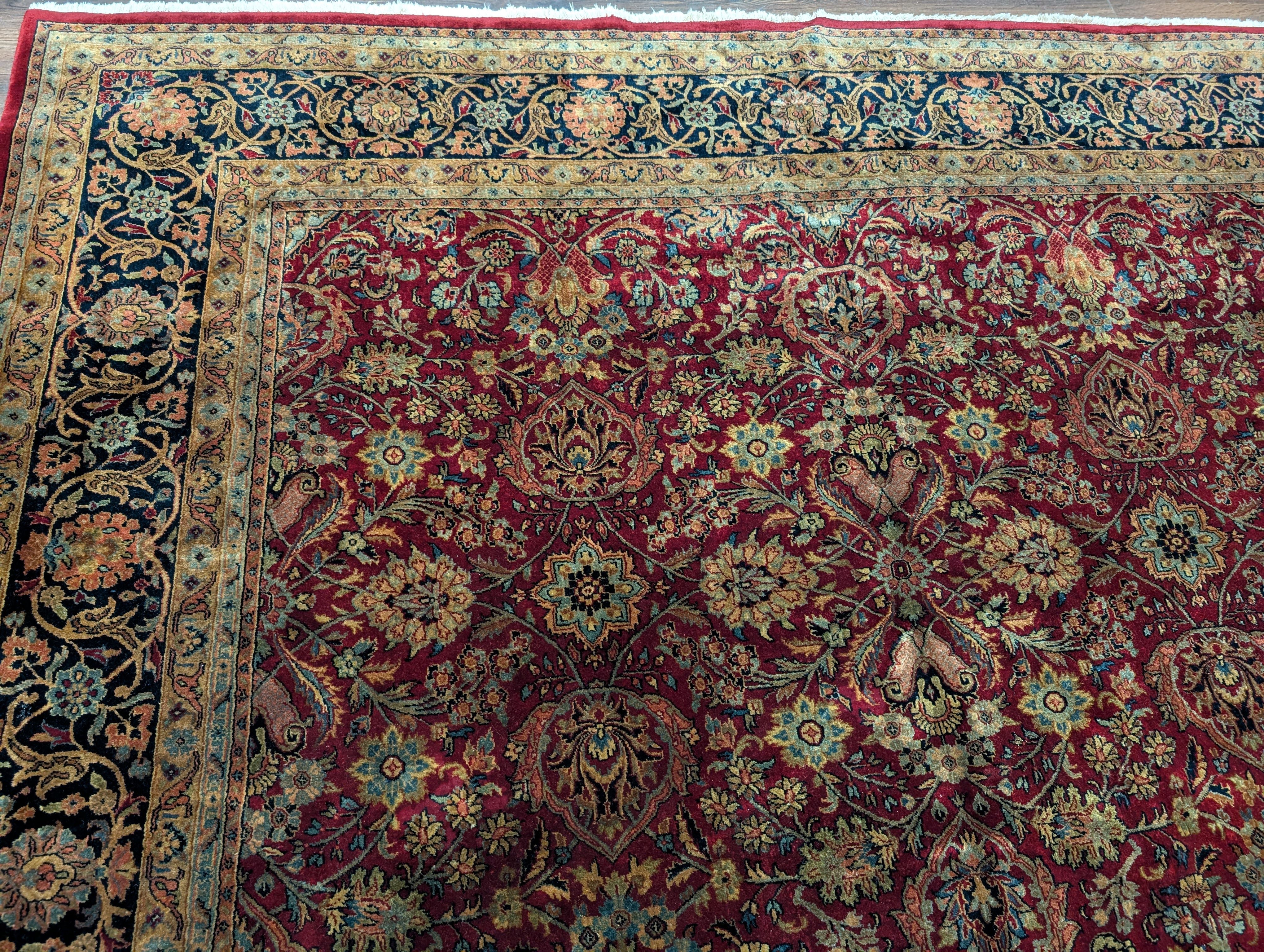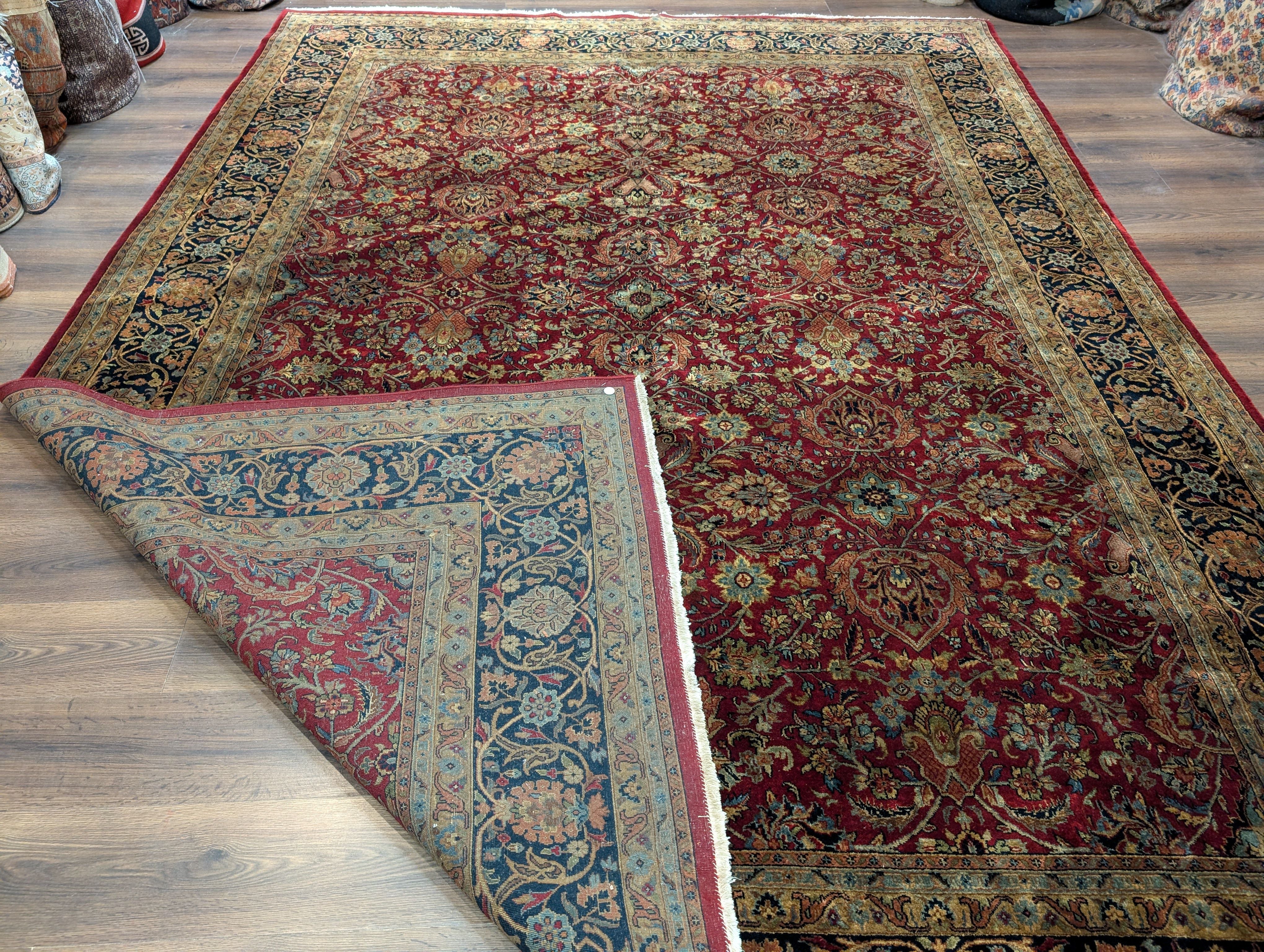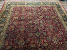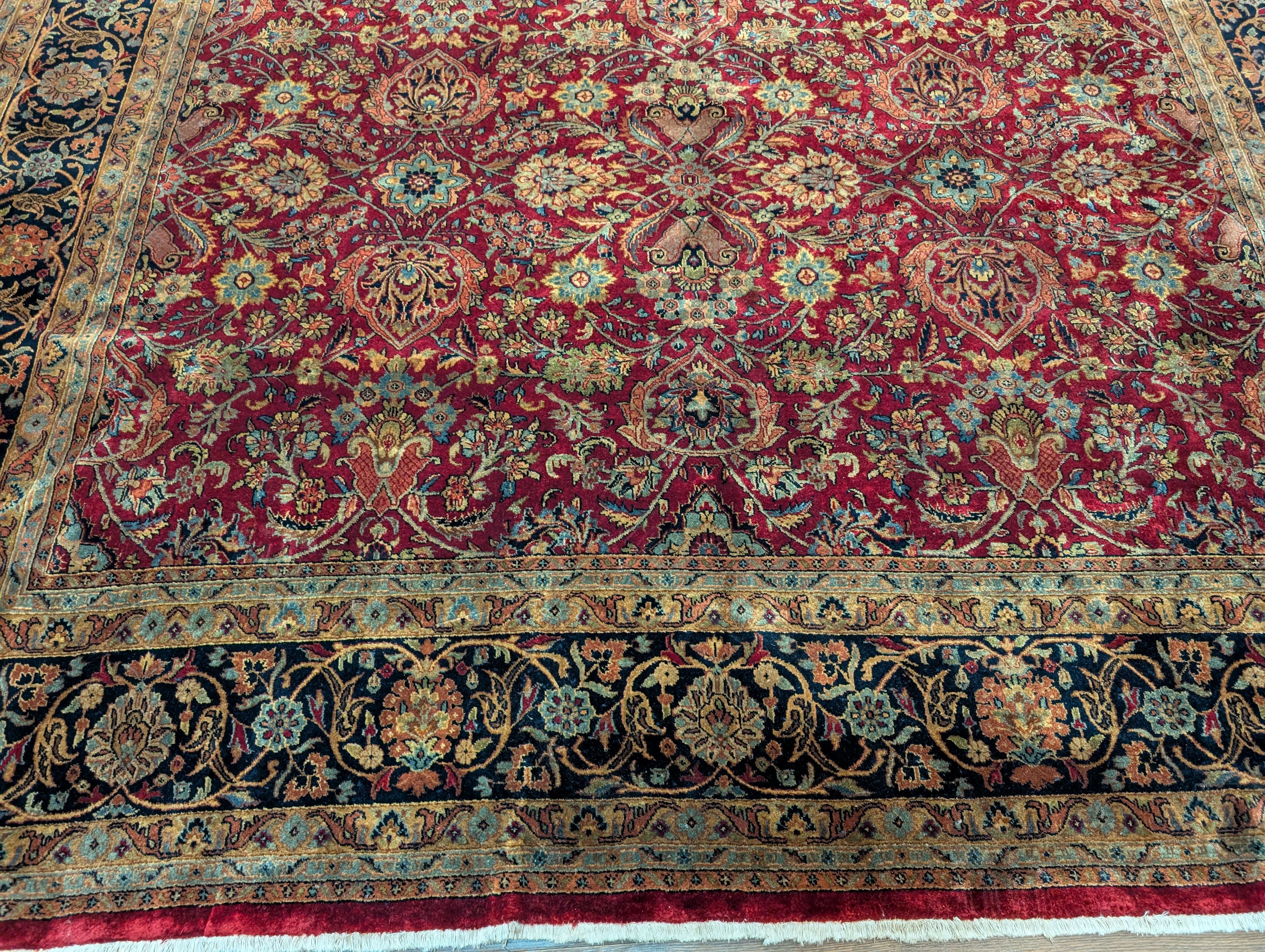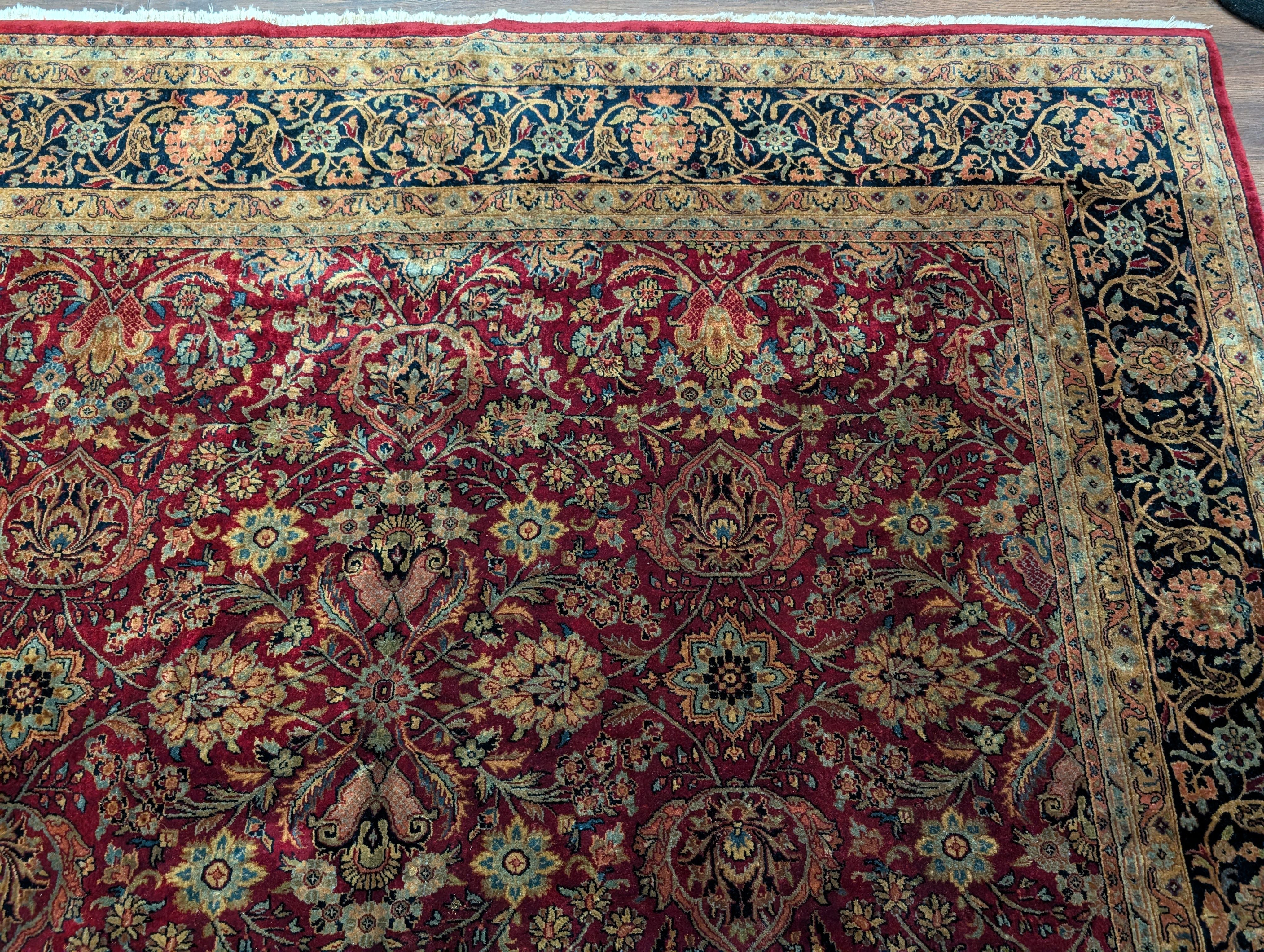 Indo Persian Rug 9x12, Allover Pattern, Dark Red, Hand Knotted Wool Oriental Carpet