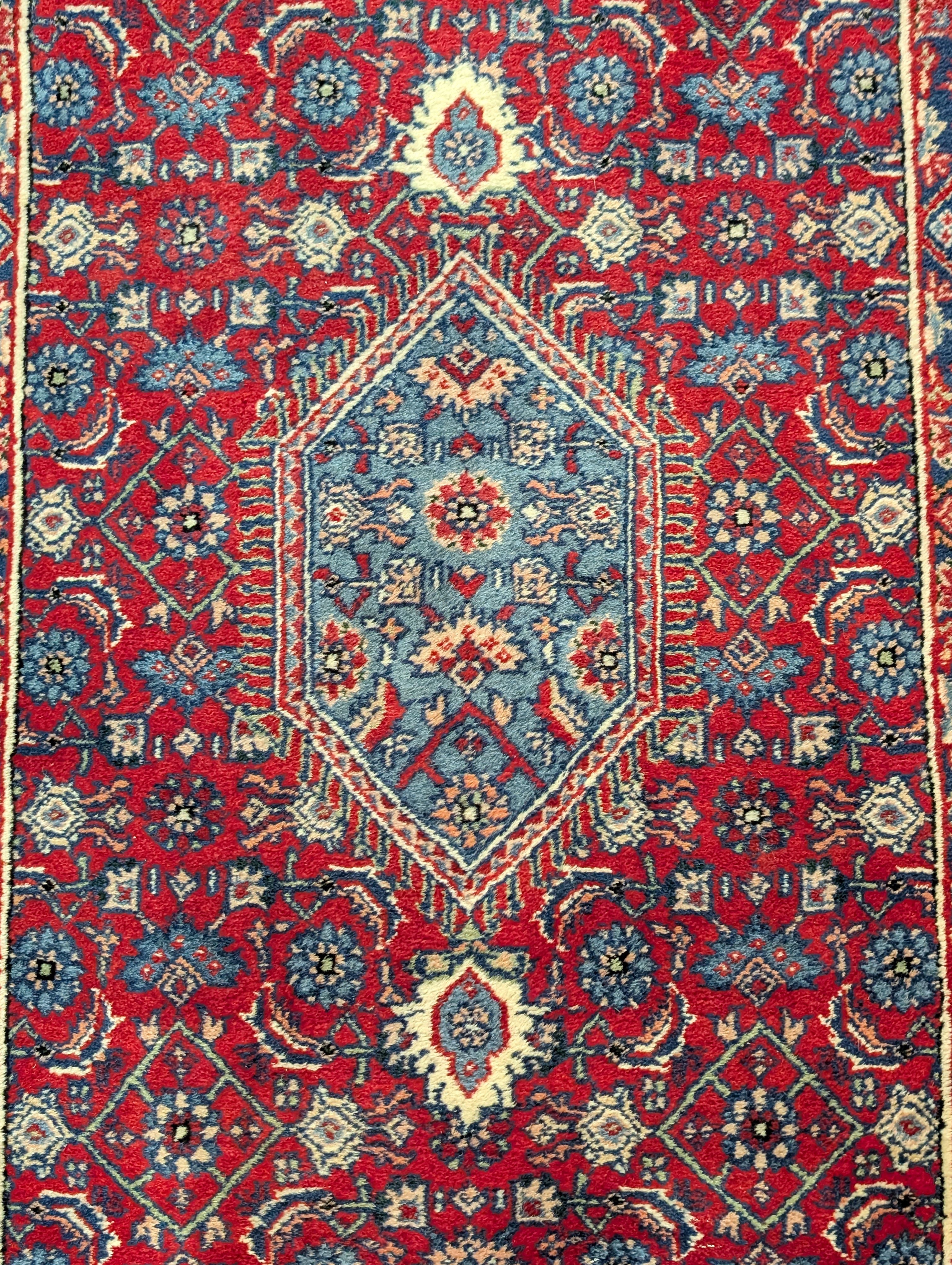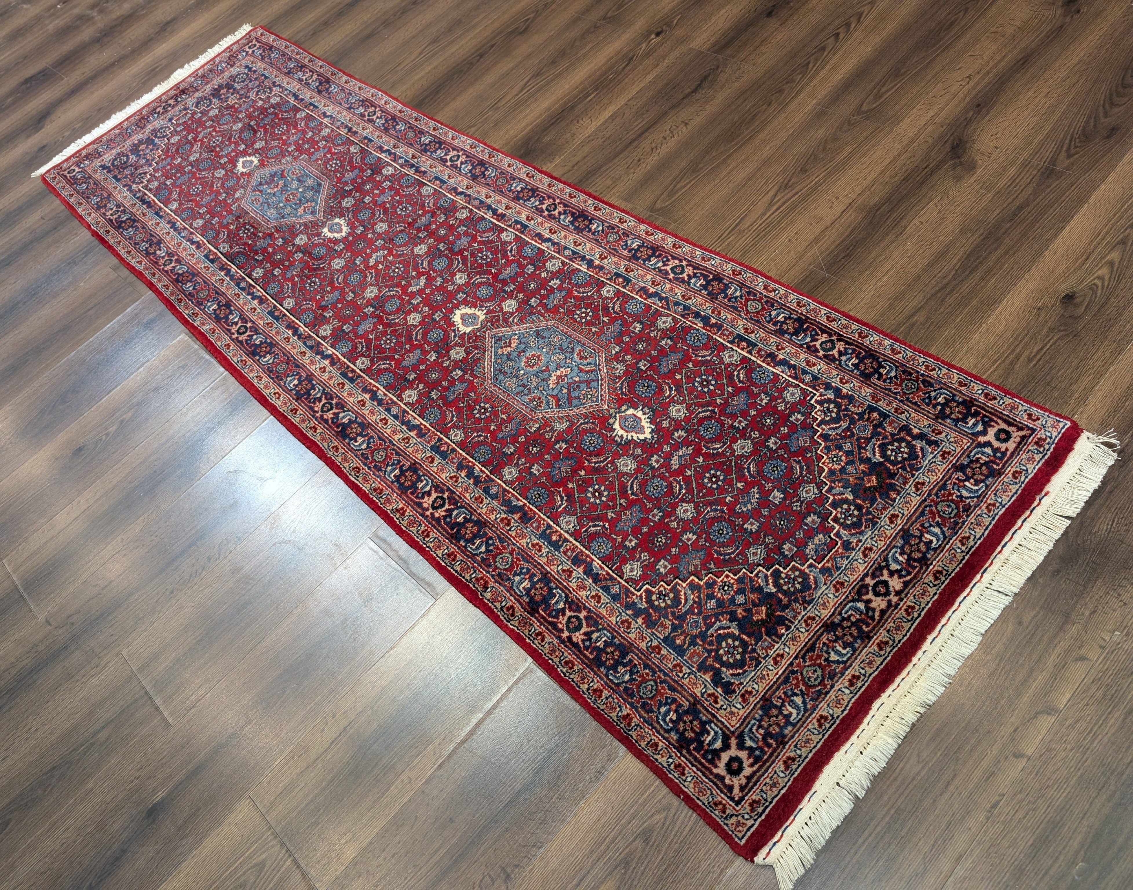 Indo Persian Runner Rug 2.8 x 8, Herati Mahi Pattern, Indo Bidjar, Fine